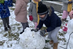 Dzieci z grupy Wiewiórki uwielbiają zabawy na śniegu. Mają dużo pomysłów, które realizują podczas zimowych harców na śniegu.