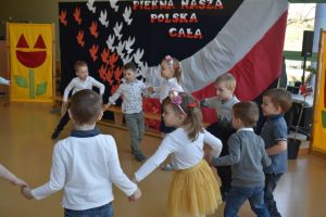 W dniach 25 – 29 kwietnia w naszym przedszkolu realizowaliśmy projekt edukacyjny „Piękna Nasza Polska Cała”. Codziennie każda grupa była w pełni zaangażowana w wykonanie zadań. Gościliśmy wspaniałe osoby z naszej gminy. Odwiedziła nas Pani Maria Miłoszewicz, która barwnie opowiadała dzieciom o książkach i o swojej pracy w bibliotece. Przeczytała również przedszkolakom bajkę. Nasze polskie tradycje ludowe, przyśpiewki przedstawił w swoim wykonaniu zespół Apassionata, który rozbudził w dzieciach ciekawość muzyką ludową.Dzieci z wielkim przejęciem realizowały kolejne zadania, przygotowały występy na ludową nutę, wzięły udział w pokazie mody w barwach narodowych, wykonały prace plastyczne związane z tradycjami polskimi, zaprojektowały stroje ludowe z konkretnego regionu Polski. Podsumowaniem całego projektu było posadzenie patriotycznego drzewka przez każdą grupę.