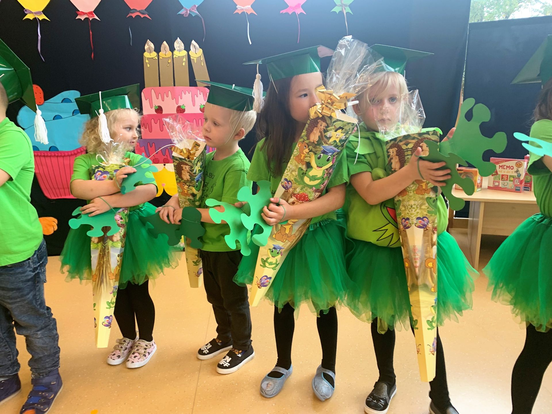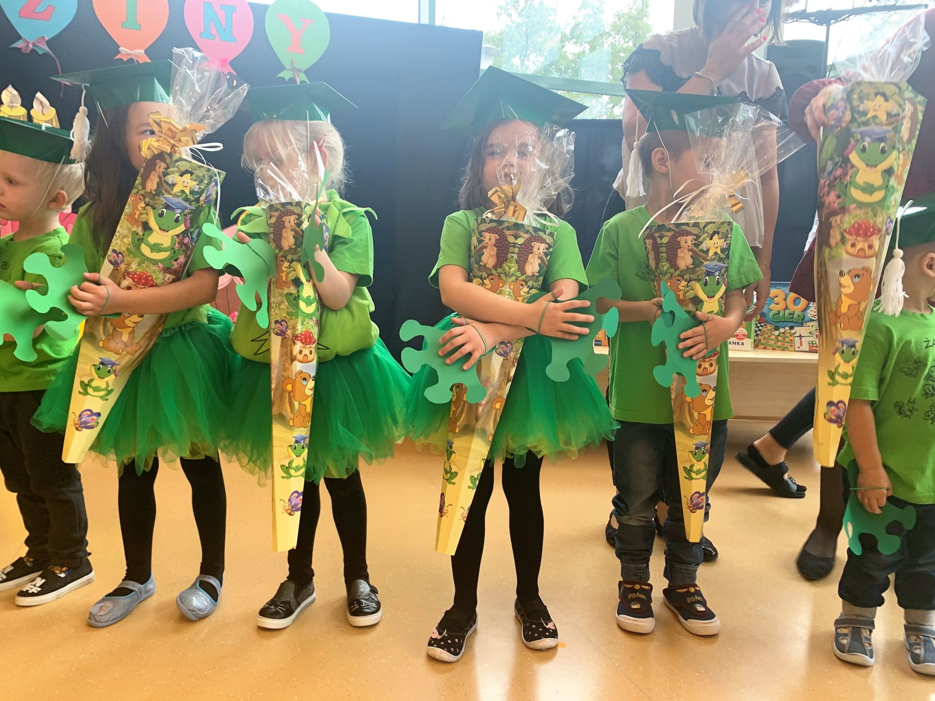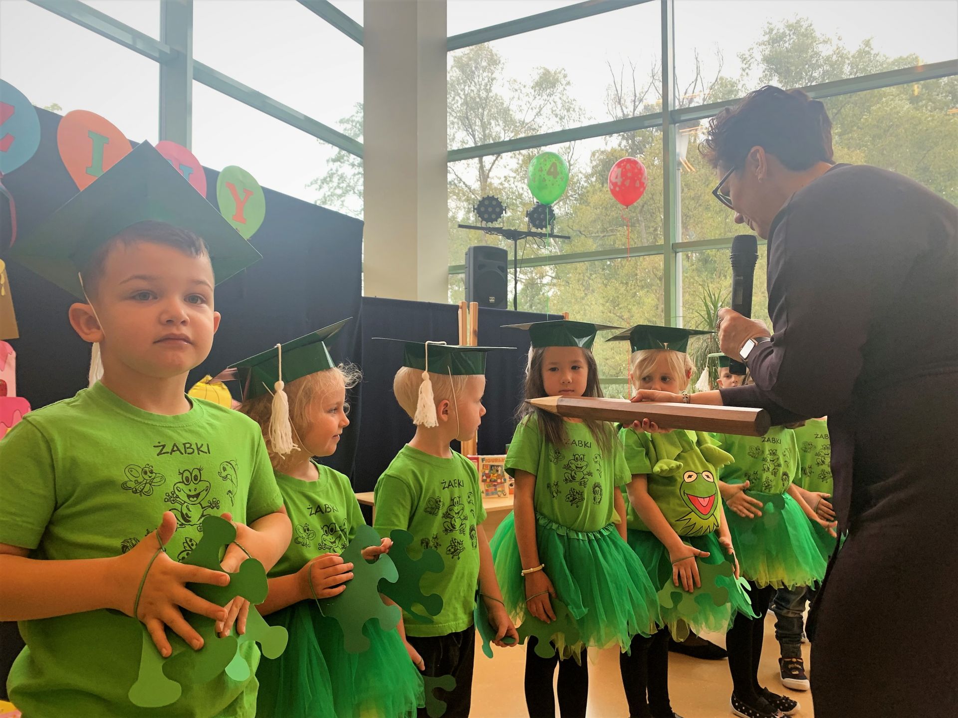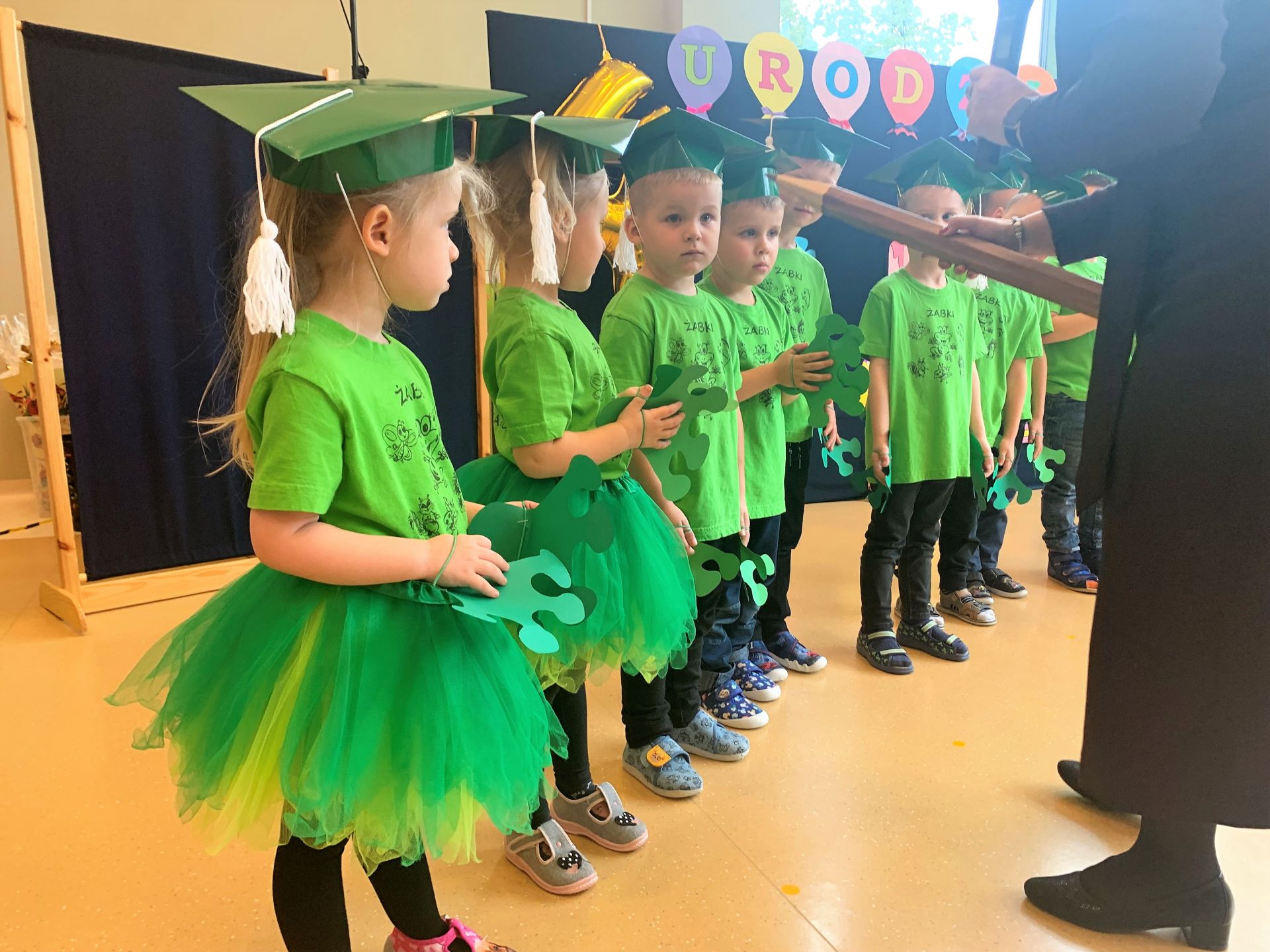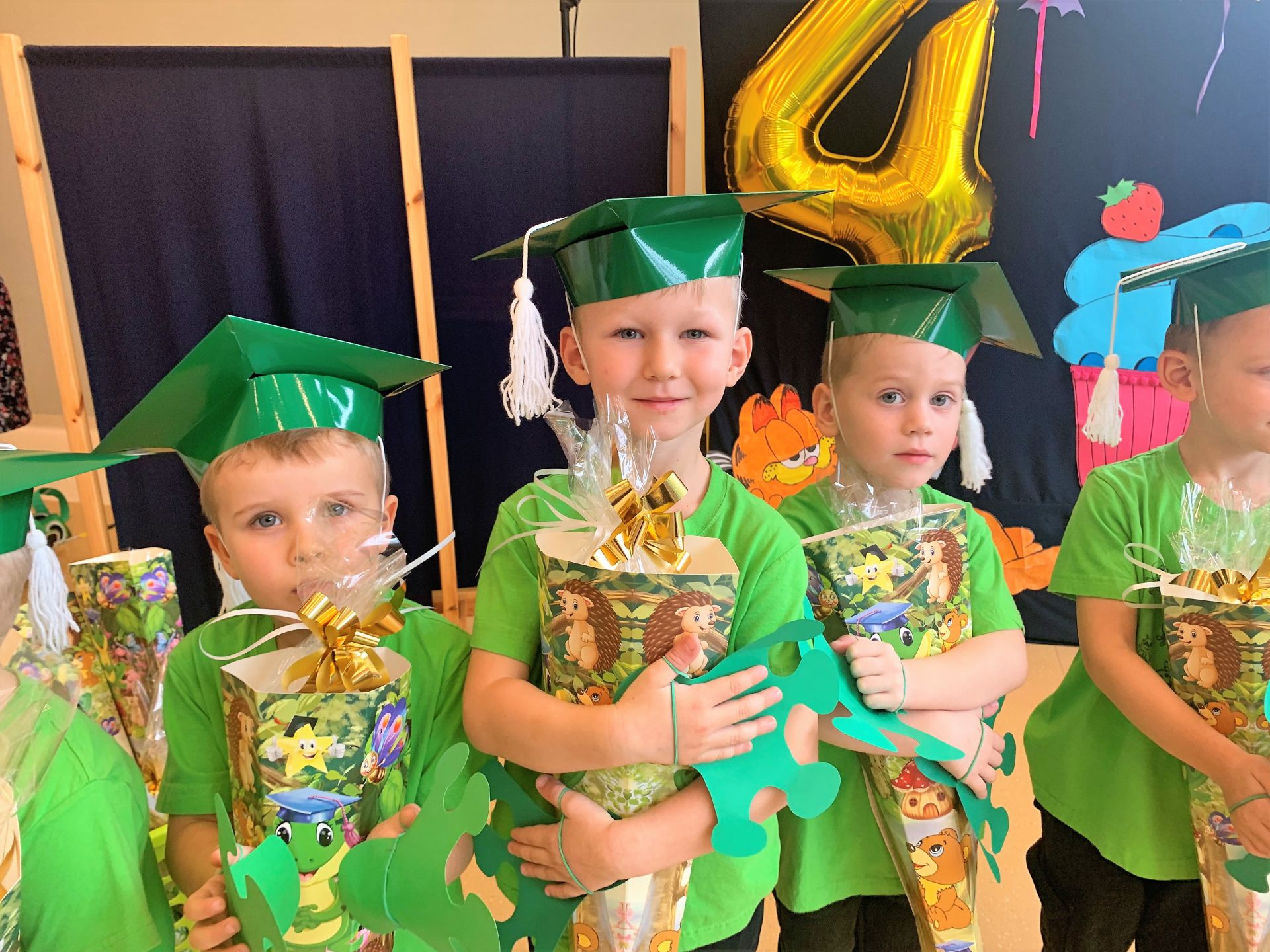 Dnia 15 października 2021 r. świętowaliśmy 4 urodziny przedszkola. Podczas tej uroczystości dzieci zostały pasowane na przedszkolaka. Dzieci wystąpiły w krótkiej części artystycznej, zaprezentowały swoje umiejętności wokalno-taneczne, dając tym samym dowód, jak dużo już potrafią. Po części artystycznej, dzieci obiecały: zgodnie bawić się w przedszkolu, przychodzić każdego dnia z uśmiechem, słuchać pani i pomagać kolegom oraz być dzielnym przedszkolakiem. Na pamiątkę tego ważnego wydarzenia każdy przedszkolak otrzymał dyplom pasowania oraz słodki upominek.