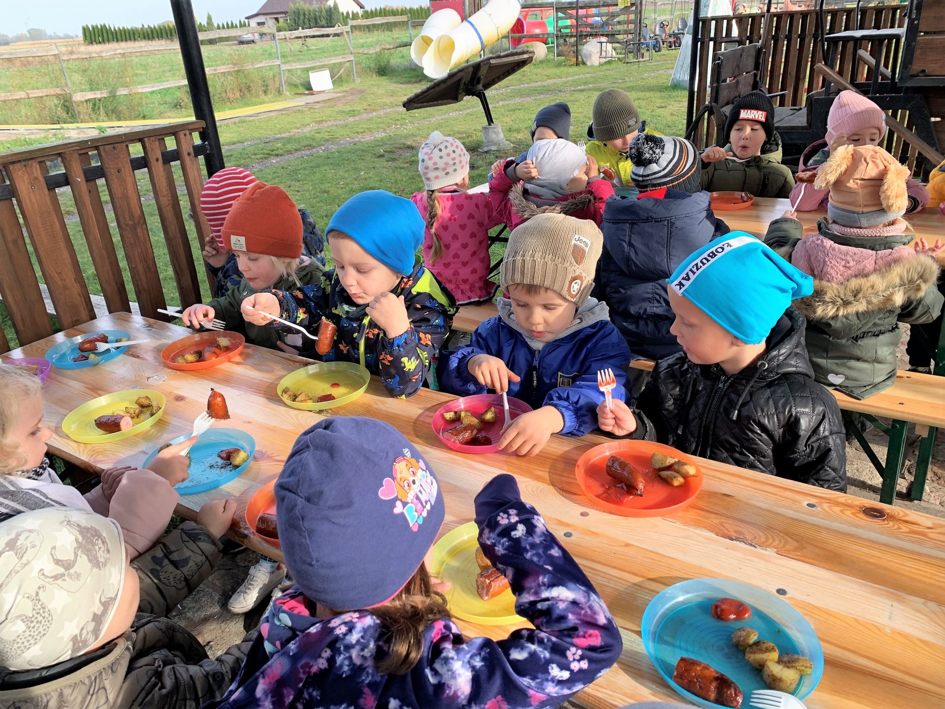 Dnia 20 października 2021 r. obchodziliśmy Święto Ziemniaka. Z tej okazji wyruszyliśmy na wycieczkę do Zagrody Edukacyjnej w Gostkowie. cały dzień upłynął nam na wesołej zabawie w towarzystwie Pana Ziemniaka.