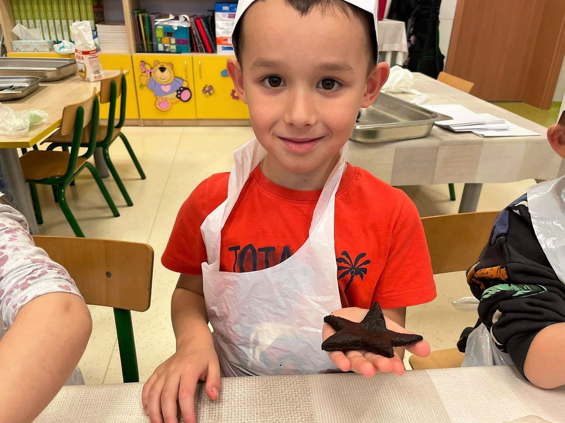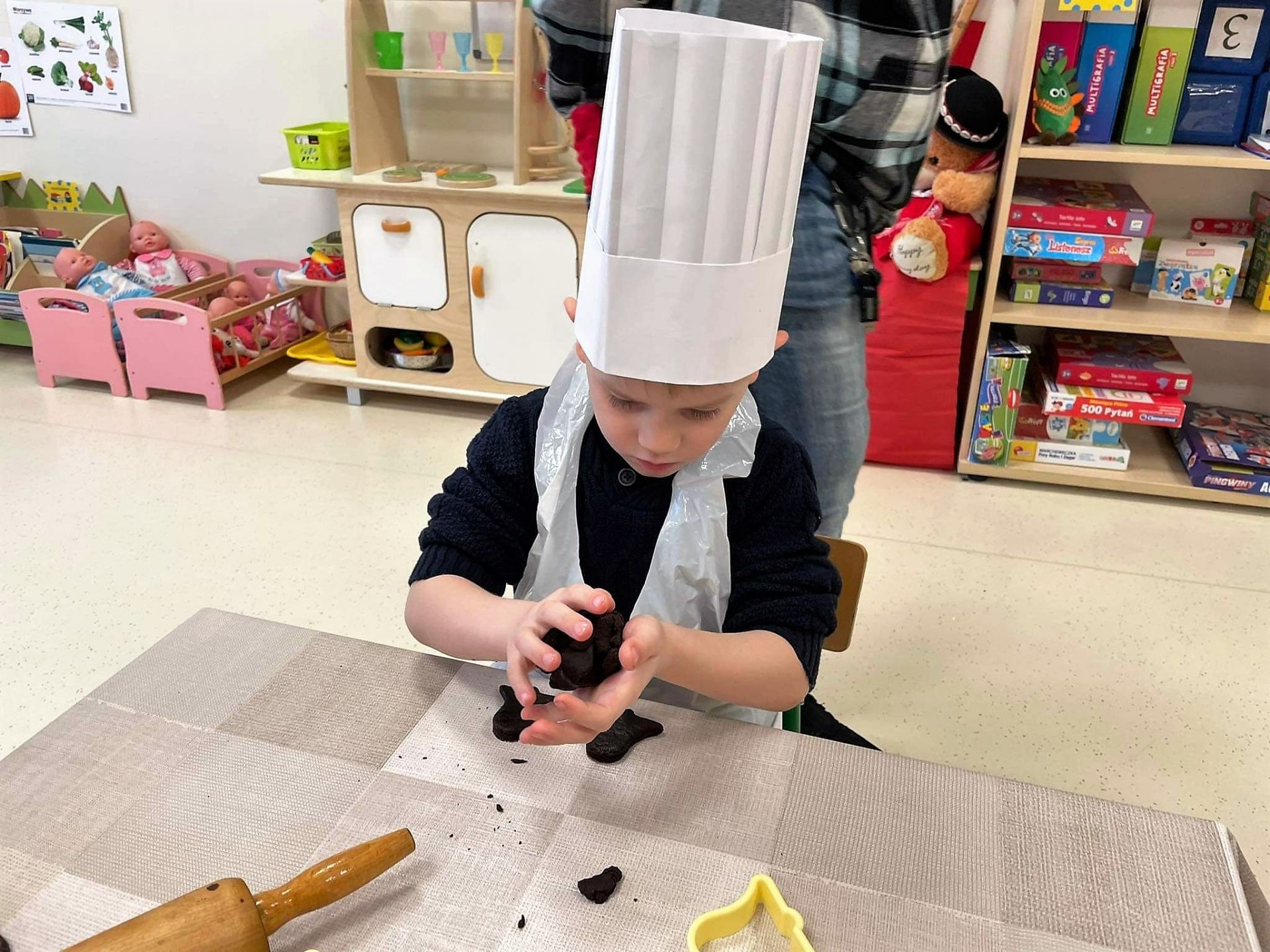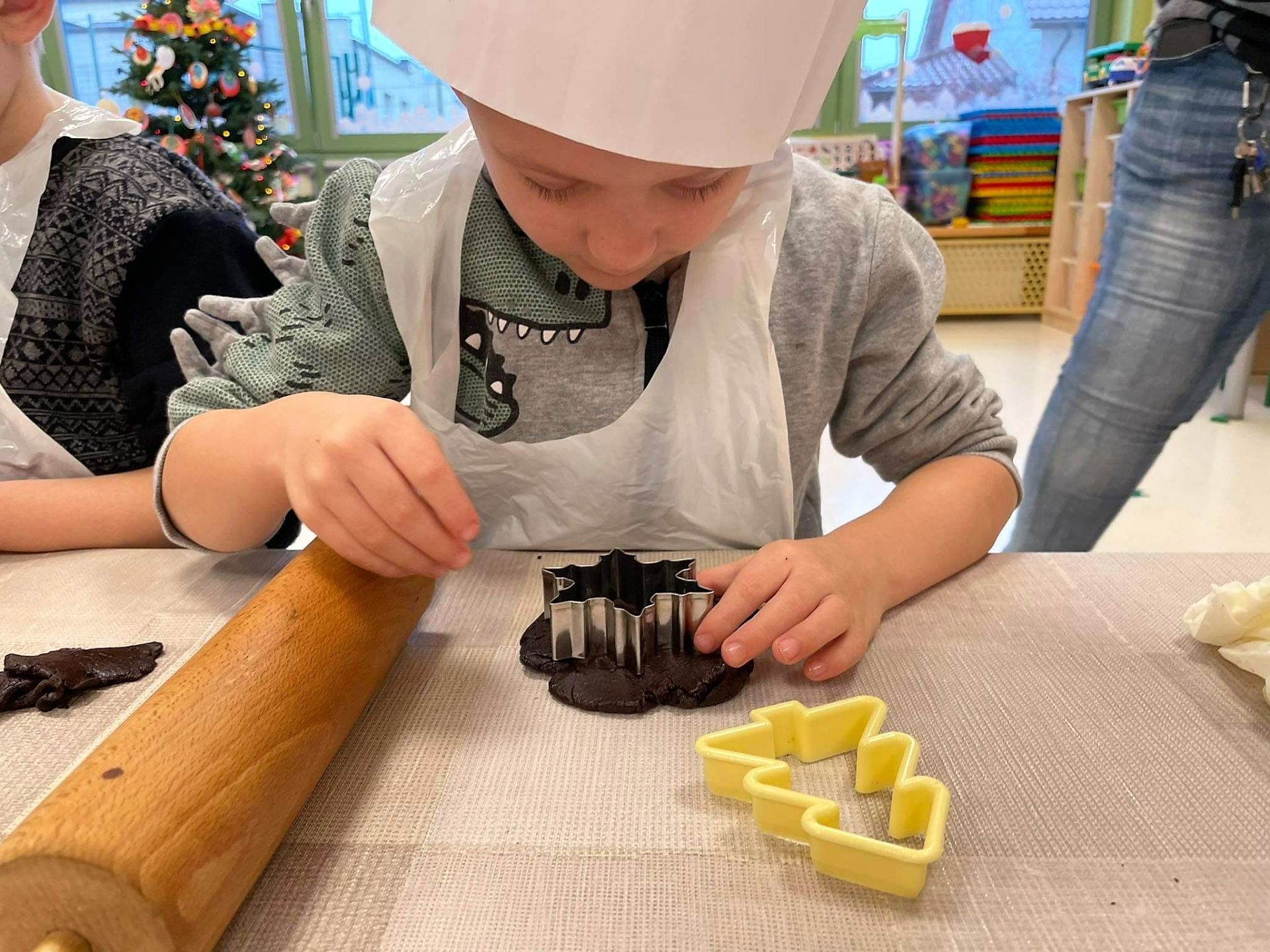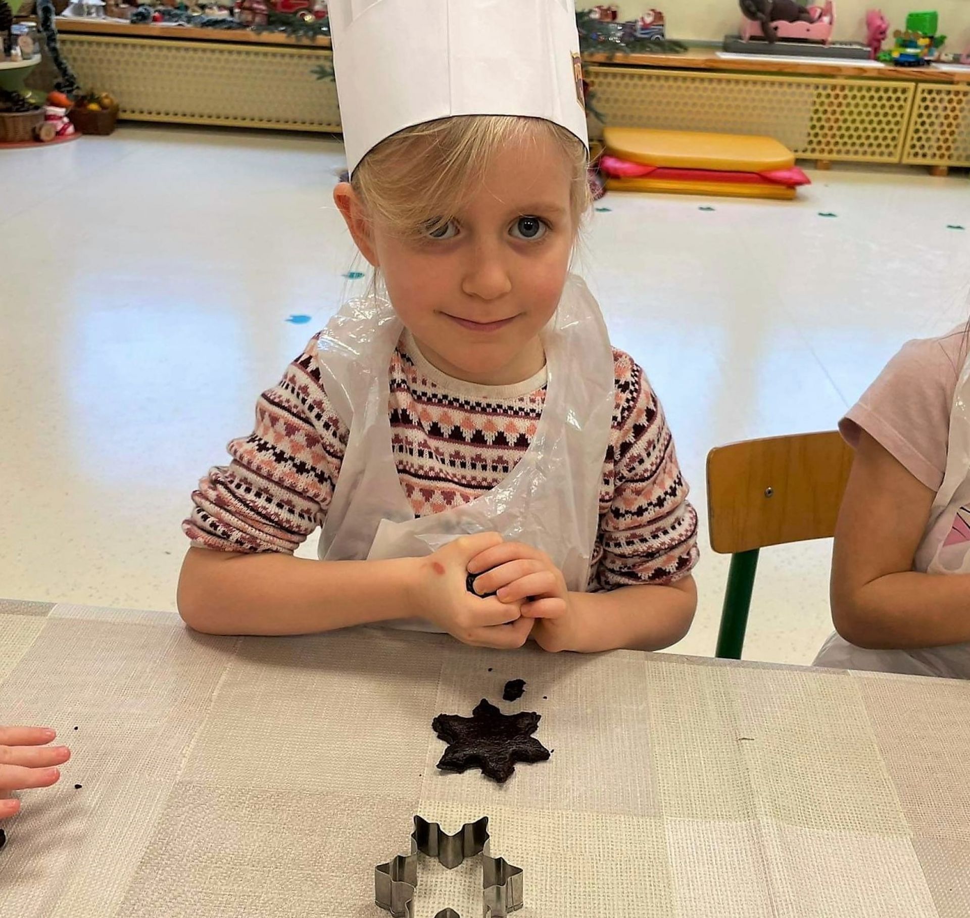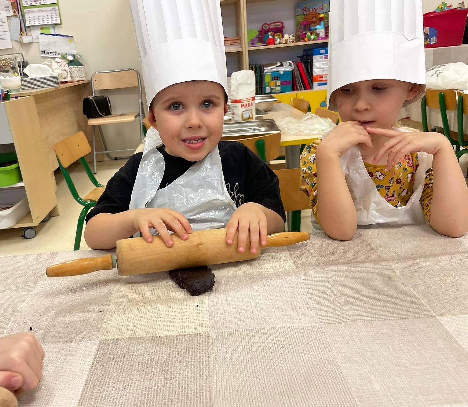 Dzień 15 grudnia 2021 r. był dla nas szczególnie pracowity. Wspólnie piekliśmy świąteczne pierniczki. Żabki z ogromnym zapałem i zaangażowaniem zabrały się do pracy – wałkowały ciasto, wykrawały ciasteczka. Efektem naszej pracy były blaszki pełne pierniczków, które zanieśliśmy do kuchni. Tu pod czujnym okiem Pani Agnieszki pierniki nabierały koloru, piekąc się w piekarniku.