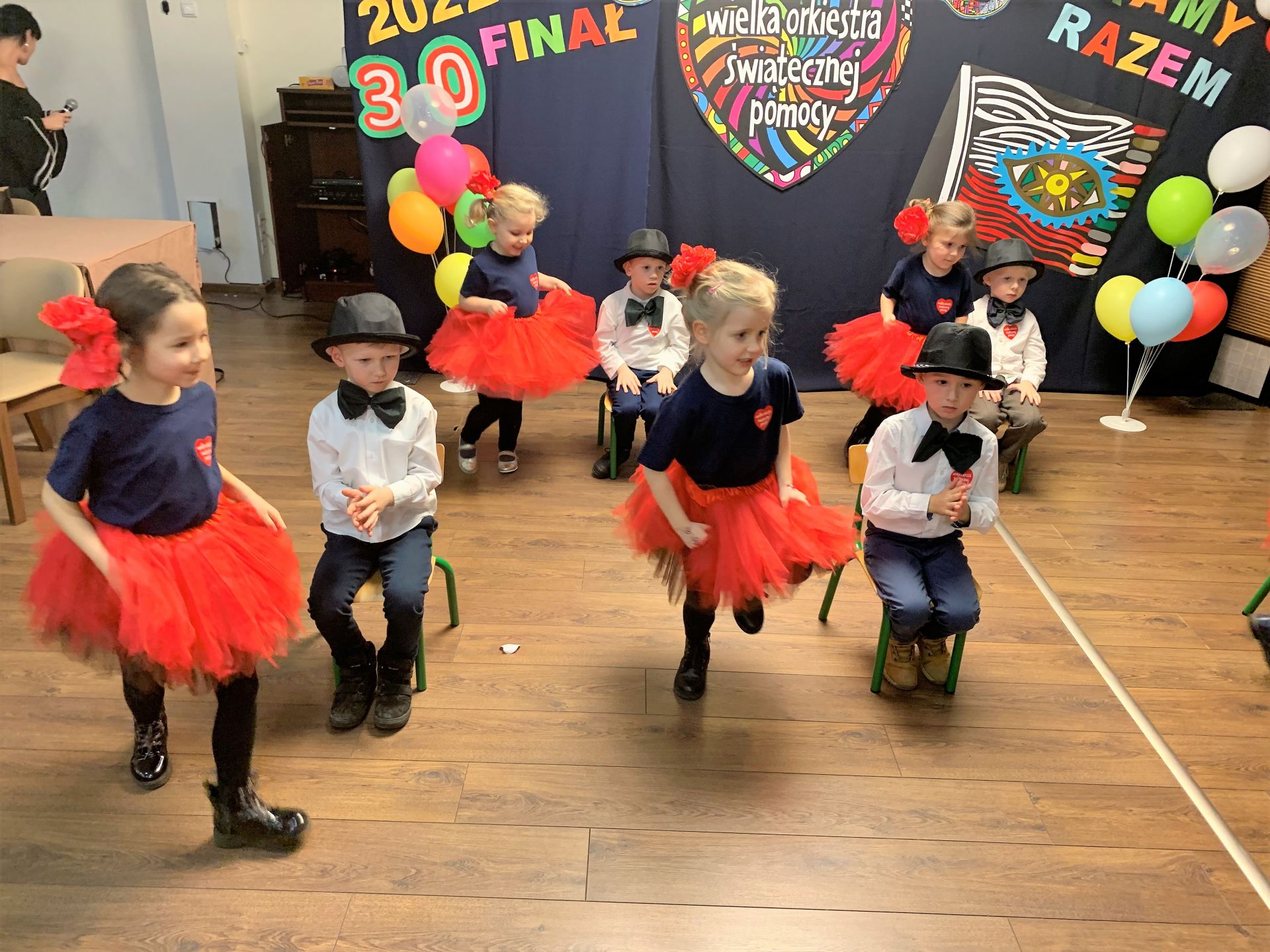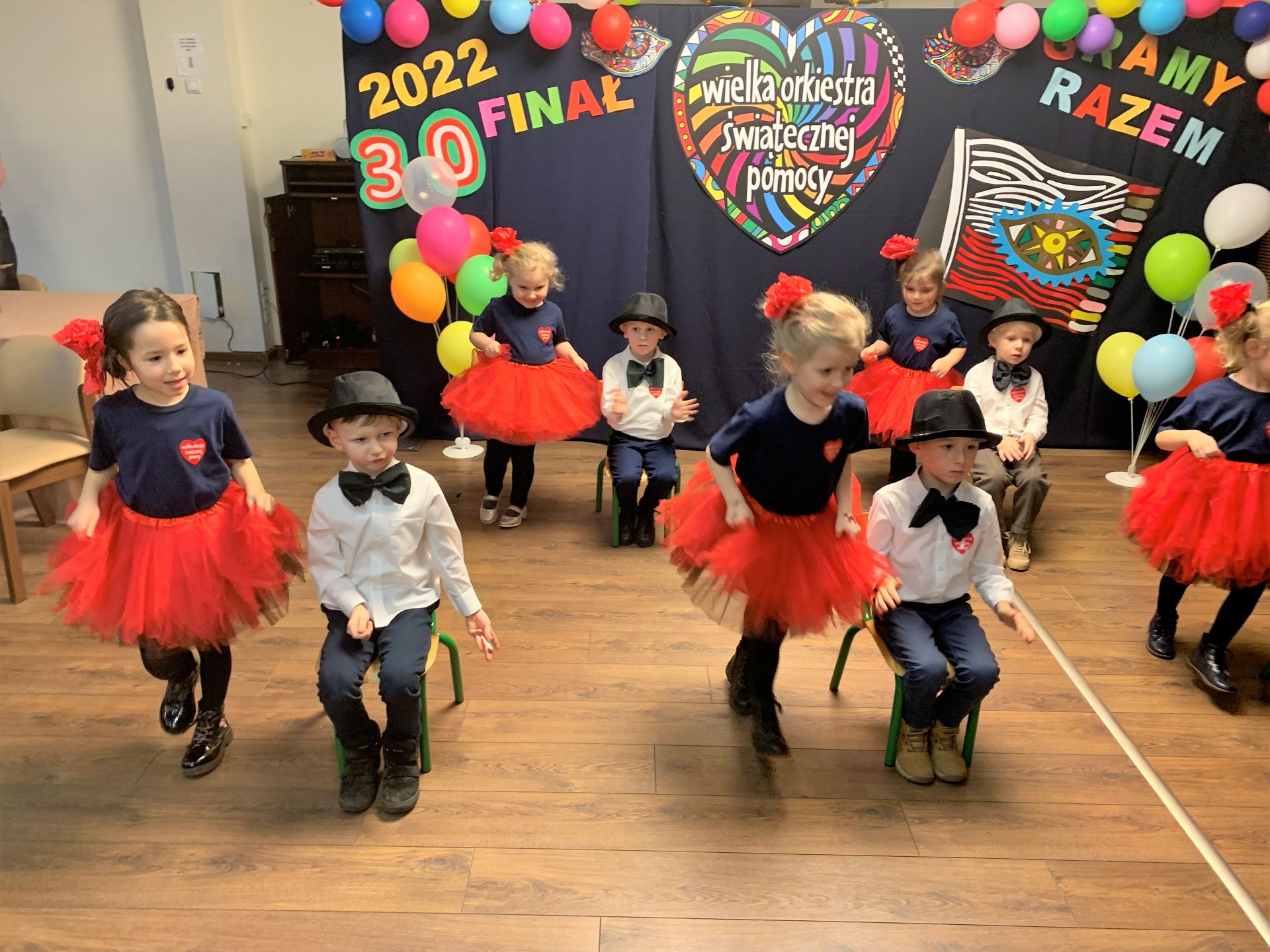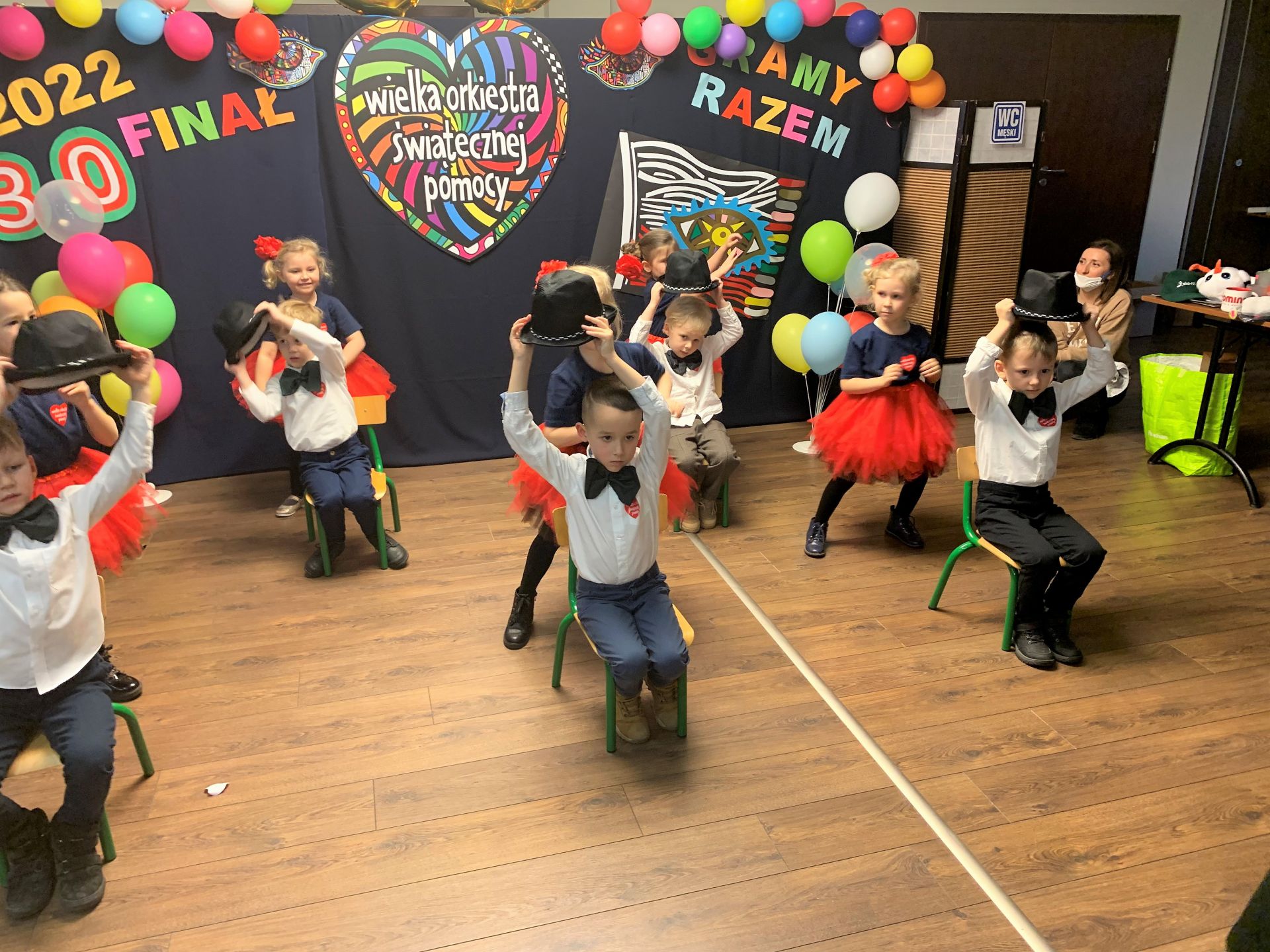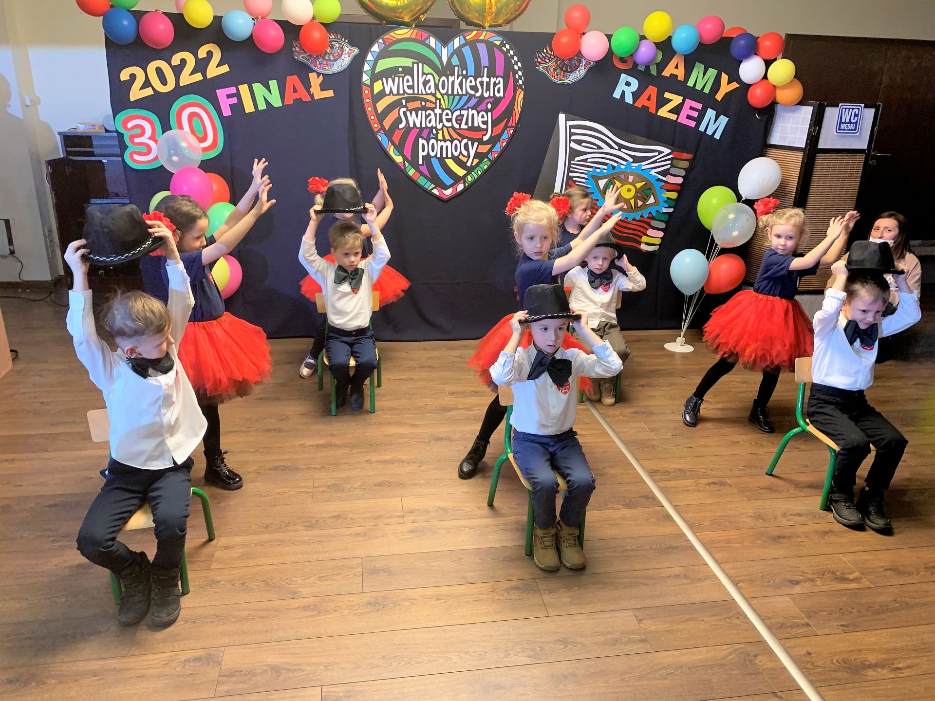 Dnia 30 stycznia 2022 r. zaprezentowaliśmy nasz taniec z kapeluszami podczas gminnej akcji "Wspólne granie dla WOŚP" zorganizowanej w CSiR "Olender".