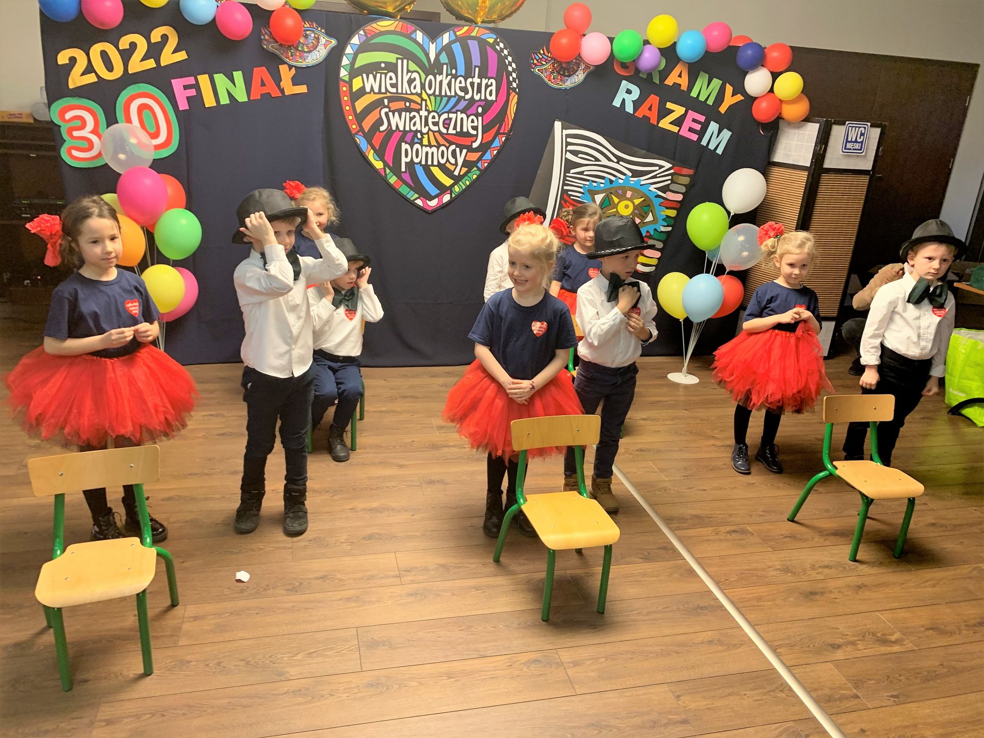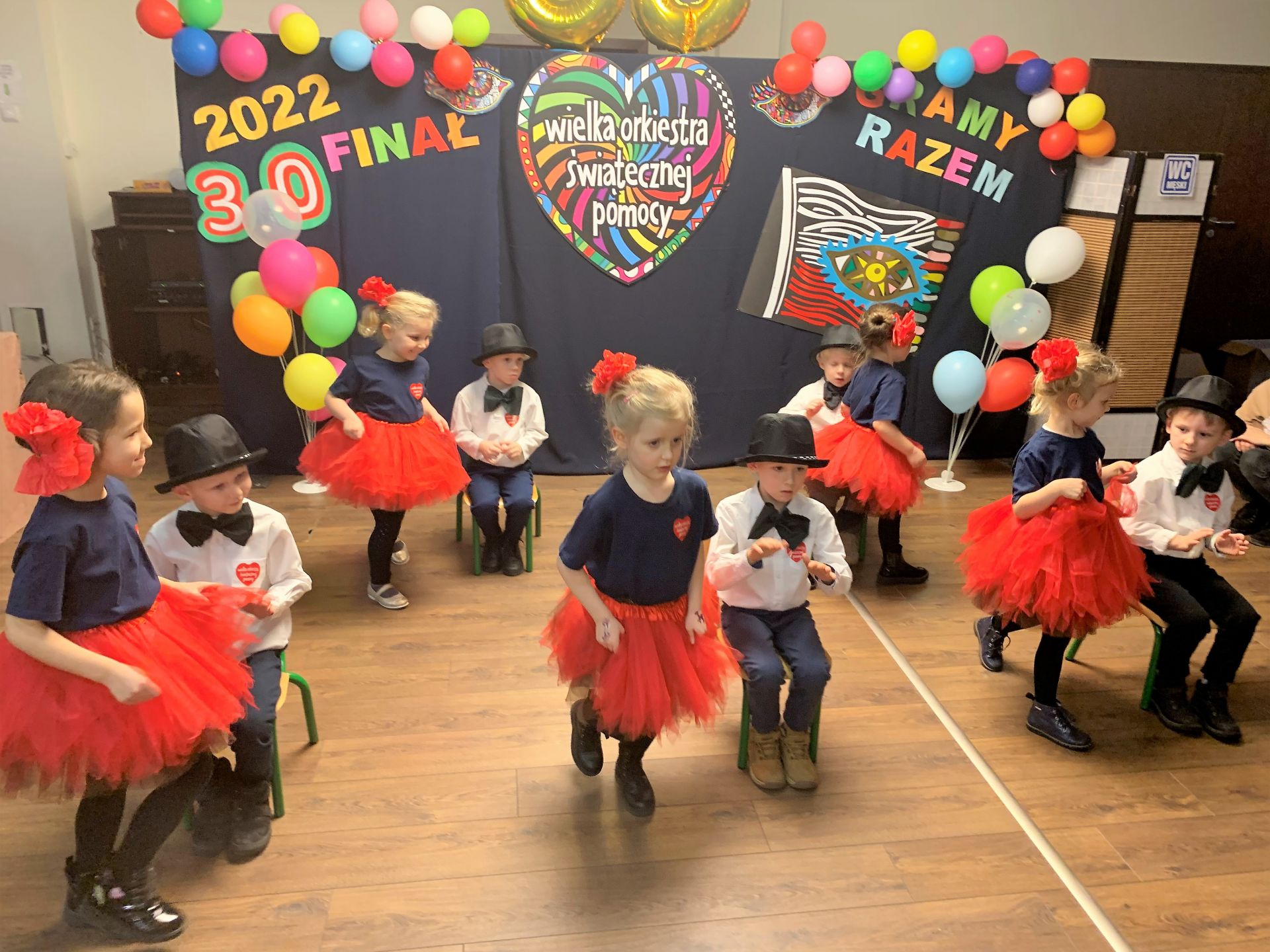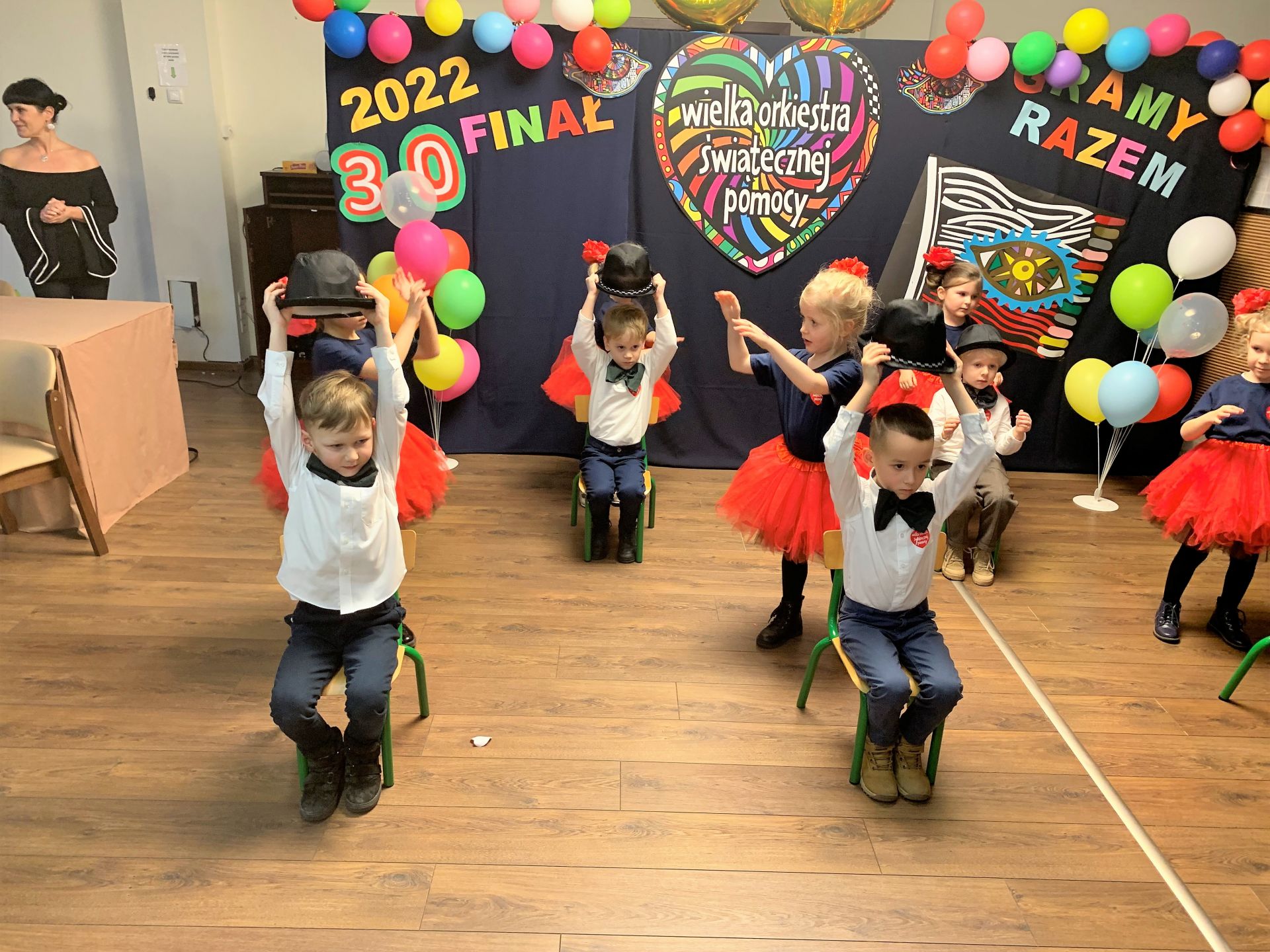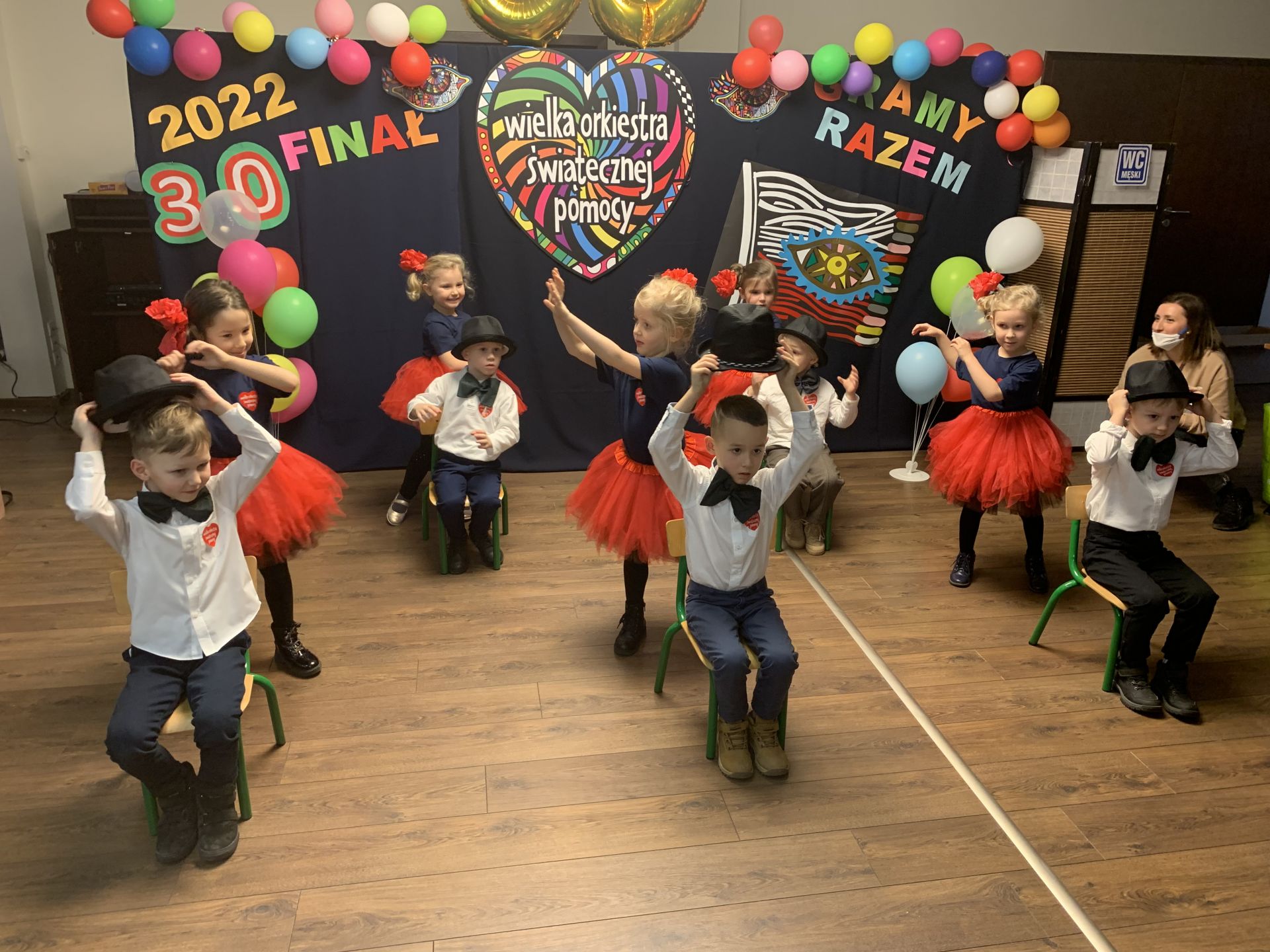 Dnia 30 stycznia 2022 r. zaprezentowaliśmy nasz taniec z kapeluszami podczas gminnej akcji "Wspólne granie dla WOŚP" zorganizowanej w CSiR "Olender".