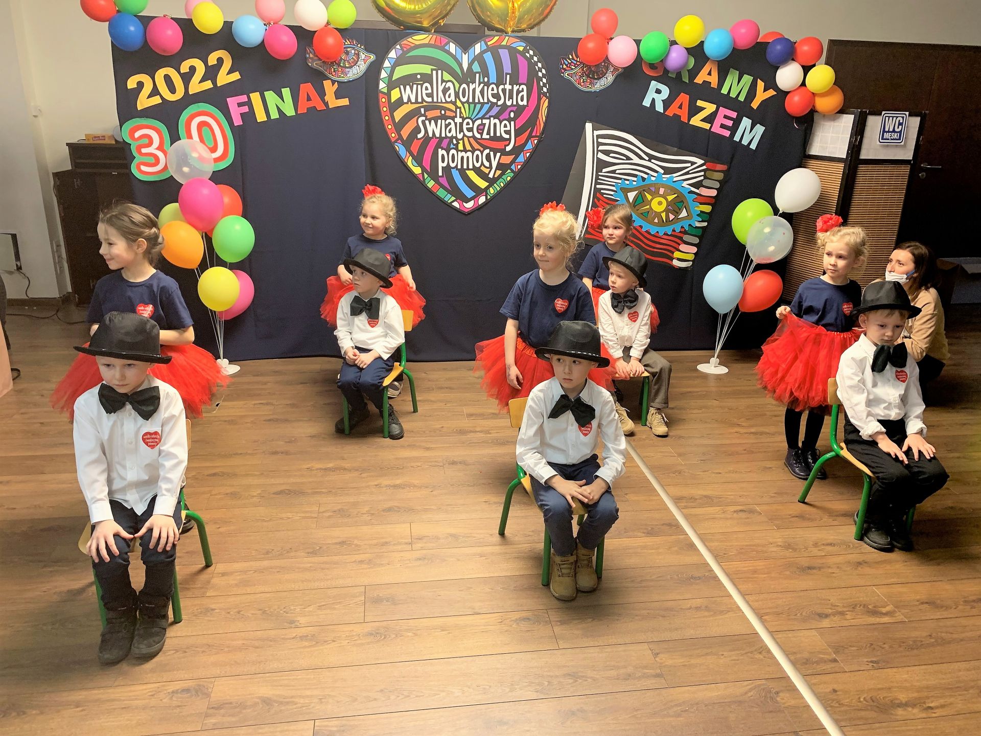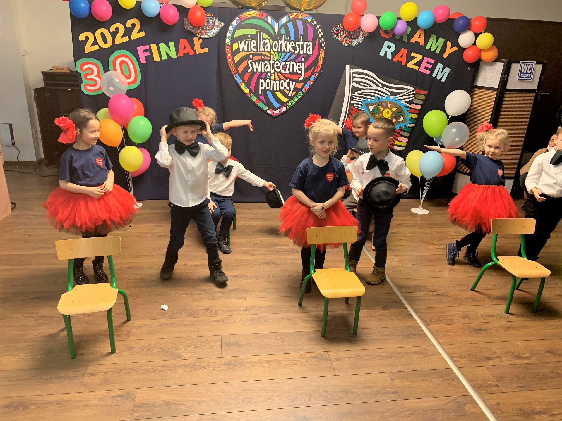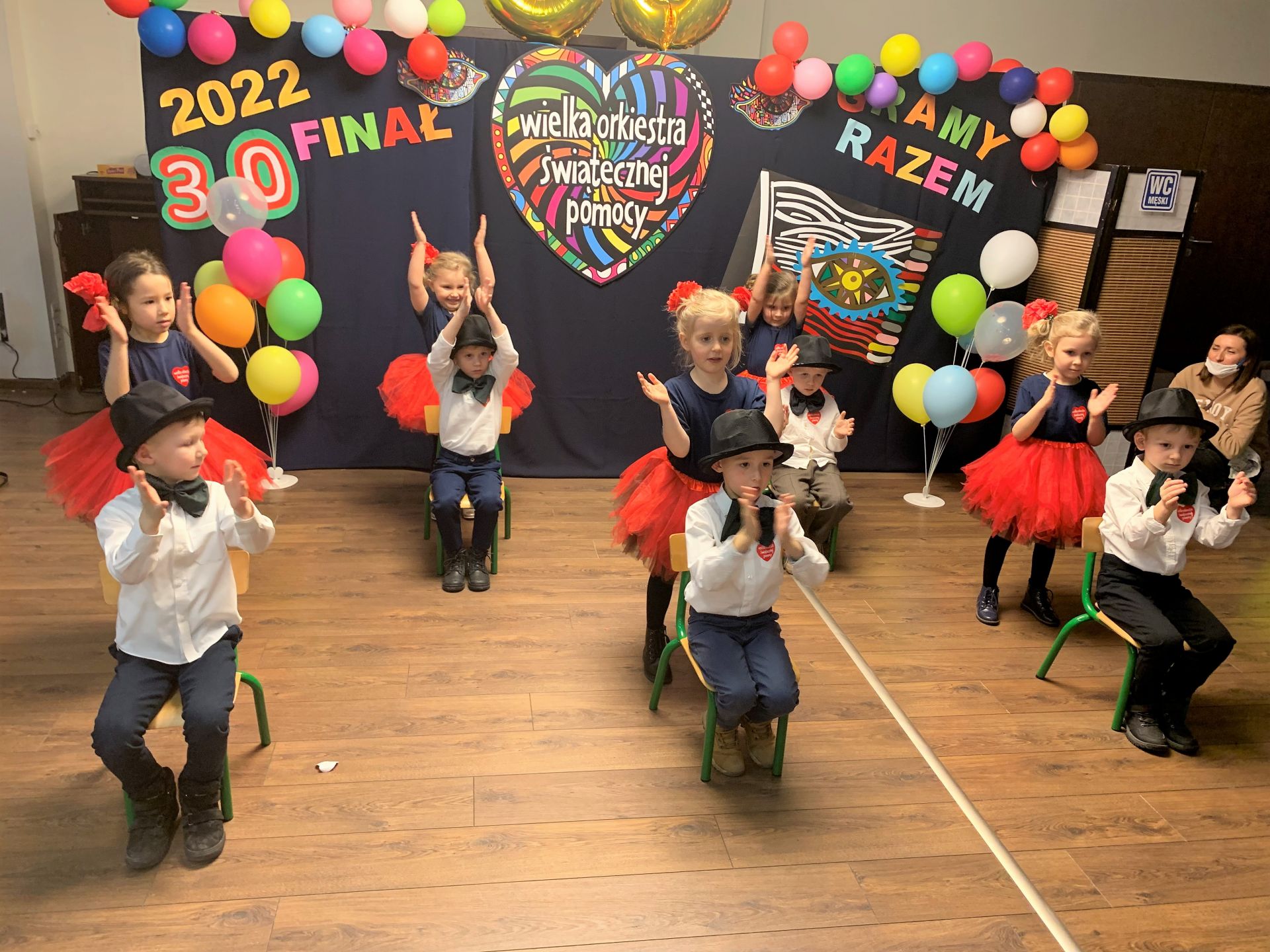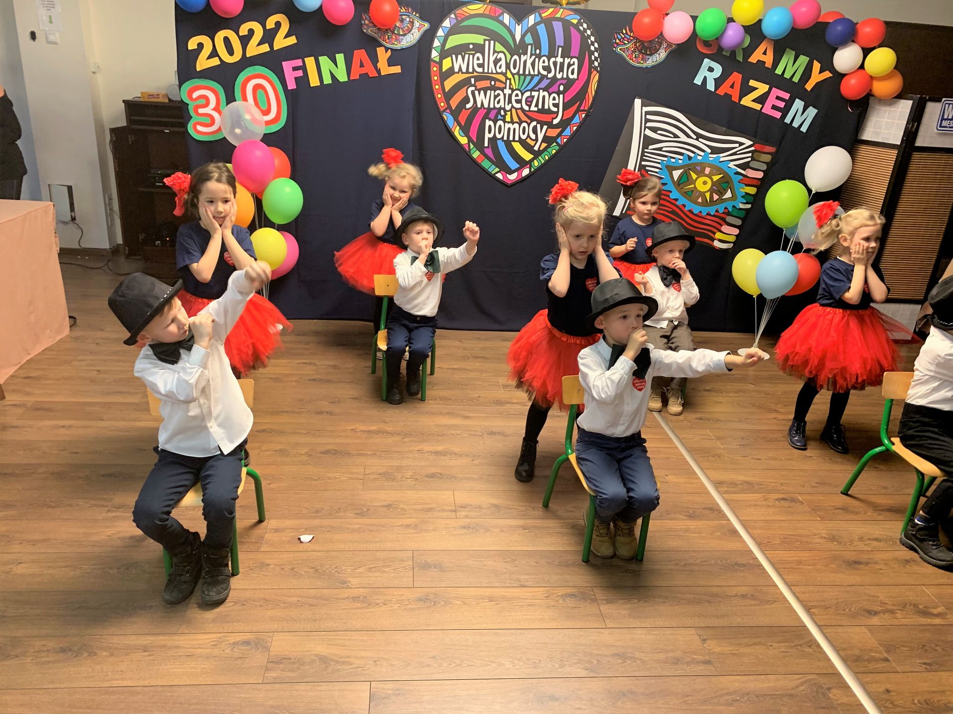 Dnia 30 stycznia 2022 r. zaprezentowaliśmy nasz taniec z kapeluszami podczas gminnej akcji "Wspólne granie dla WOŚP" zorganizowanej w CSiR "Olender".