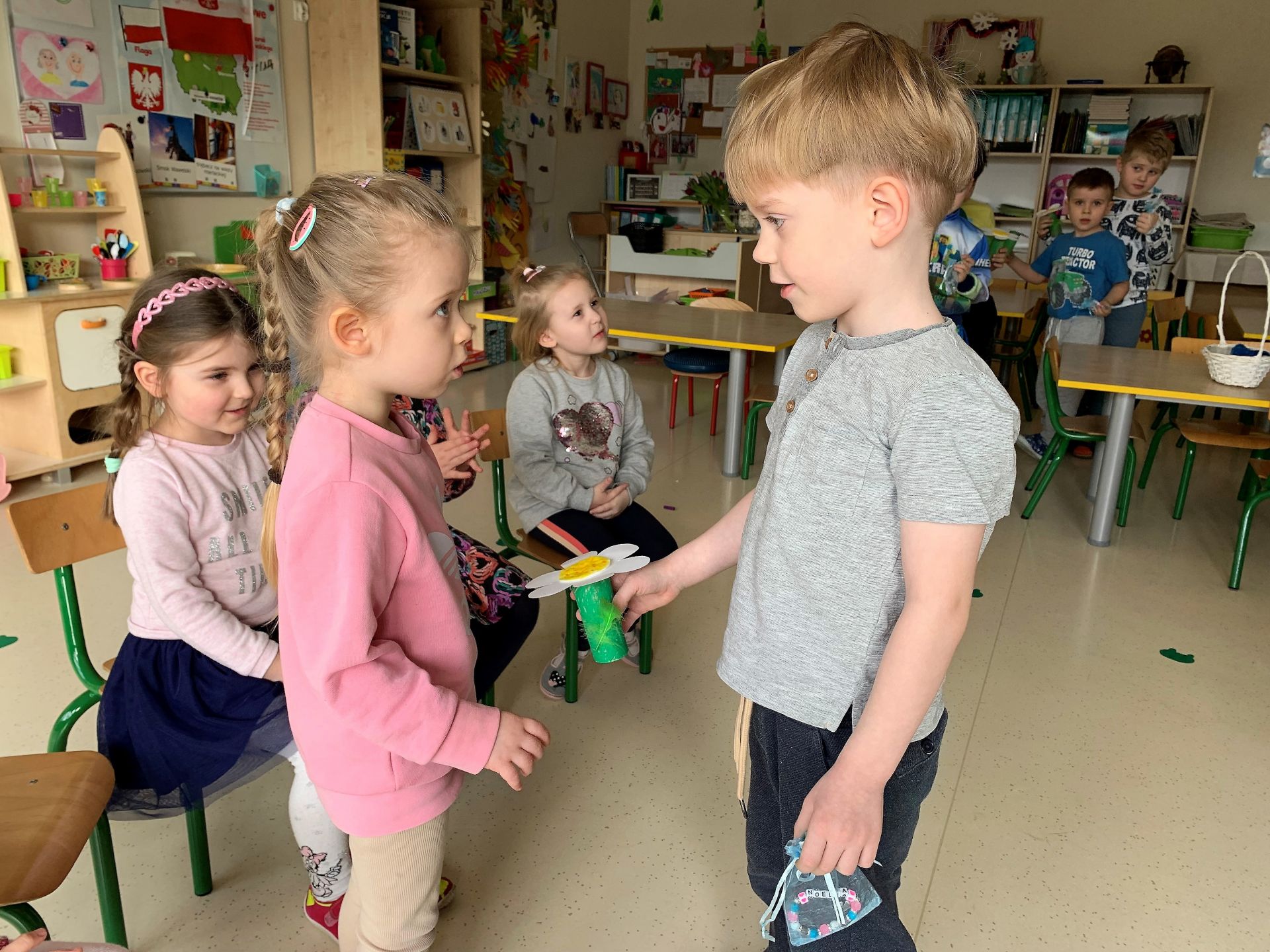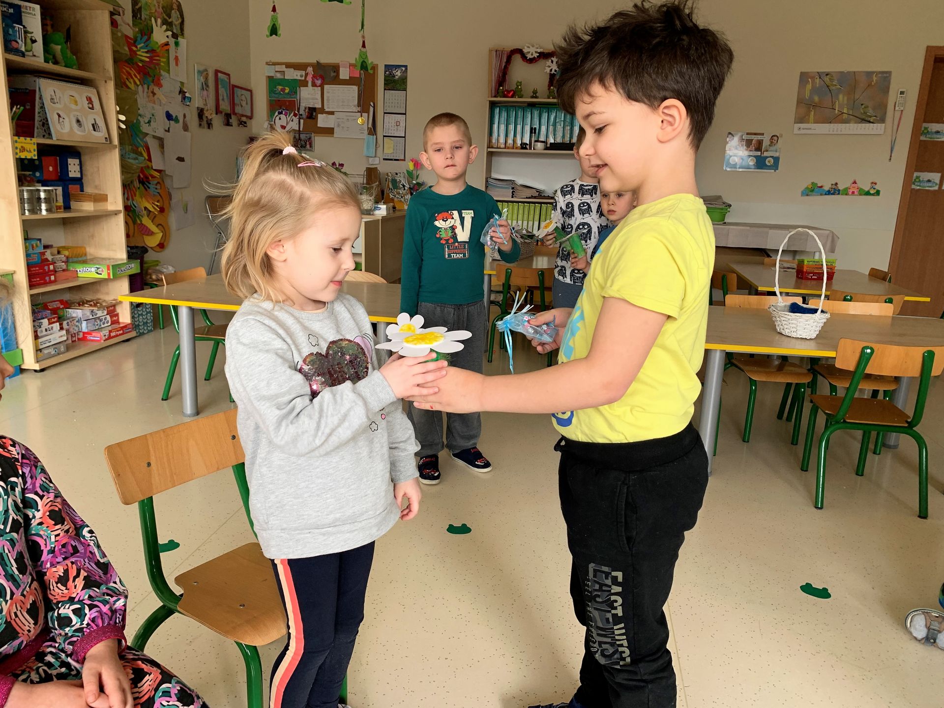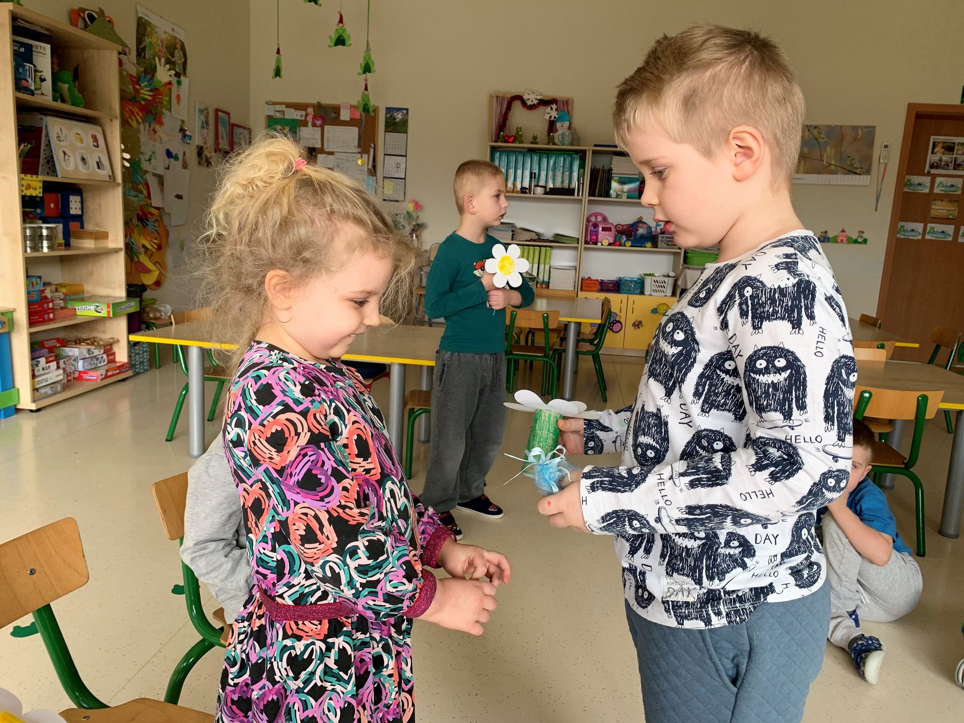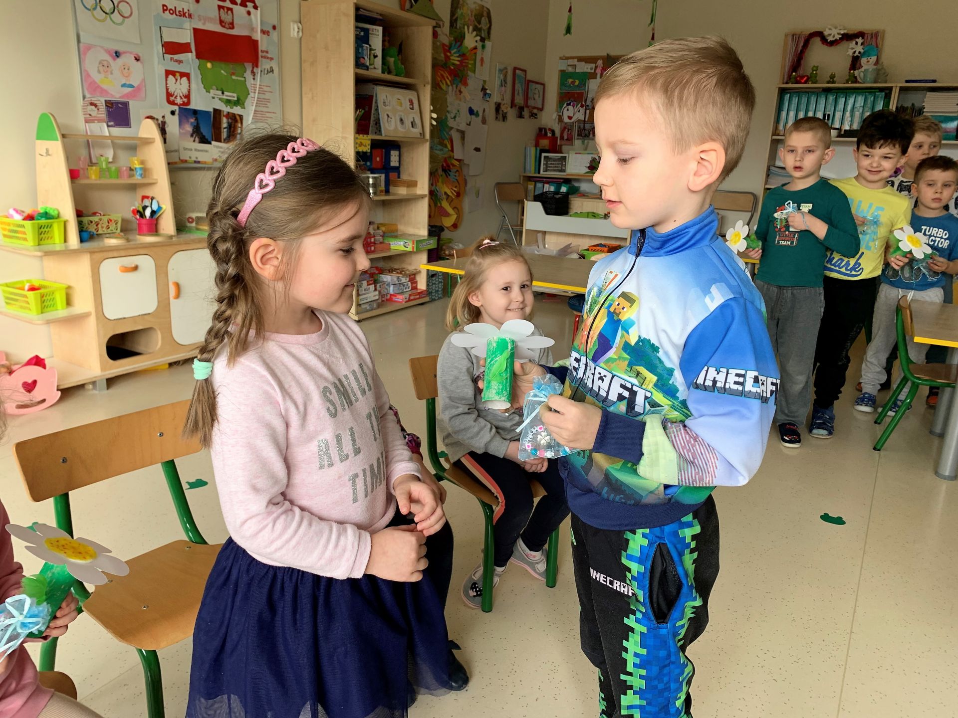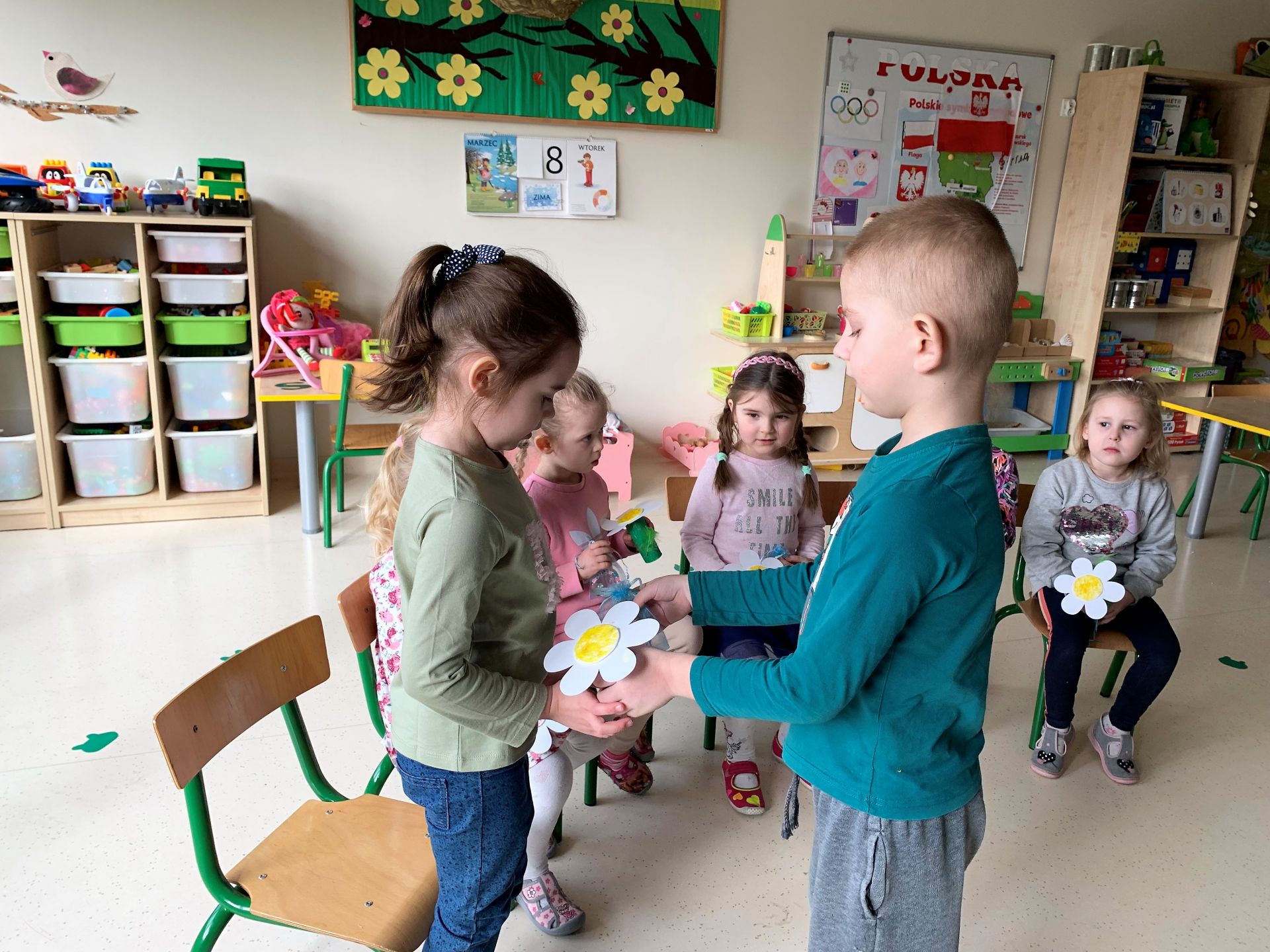 Dnia 8 marca 2022 r. obchodziliśmy Święto Dziewczynek. Nasi chłopcy wręczyli dziewczynkom własnoręcznie zrobiony kwiatek oraz upominek - biżuterię małej damy.