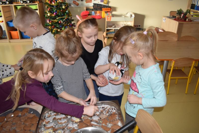 Dzisiaj dekorowaliśmy upieczone w piątek pierniczki. Upiekliśmy ich ponad 200 sztuk. Dekorowanie sprawiło nam wielką radość i przyjemność. Na koniec konsumowaliśmy w wielkim apetytem nasze wyroby.