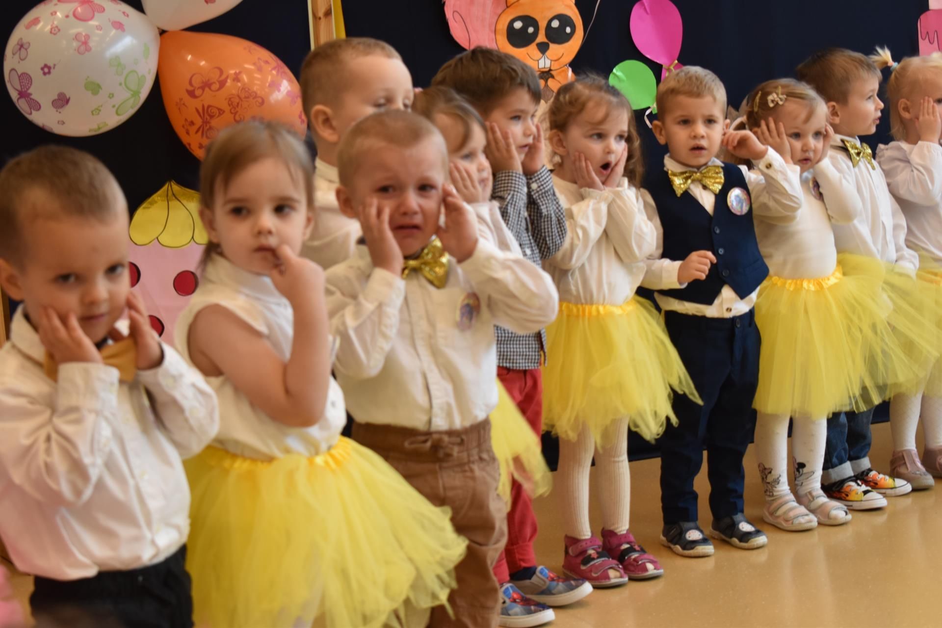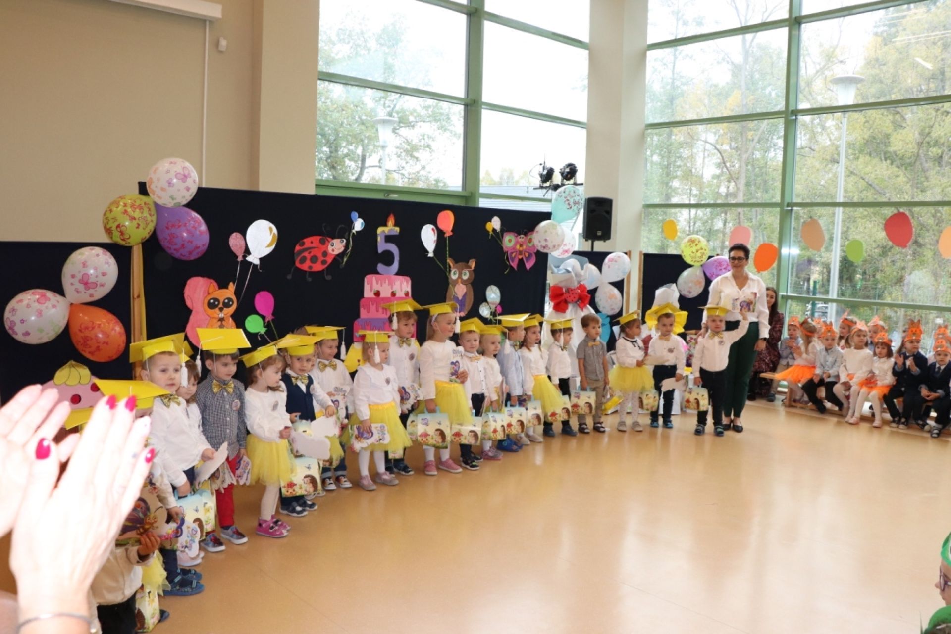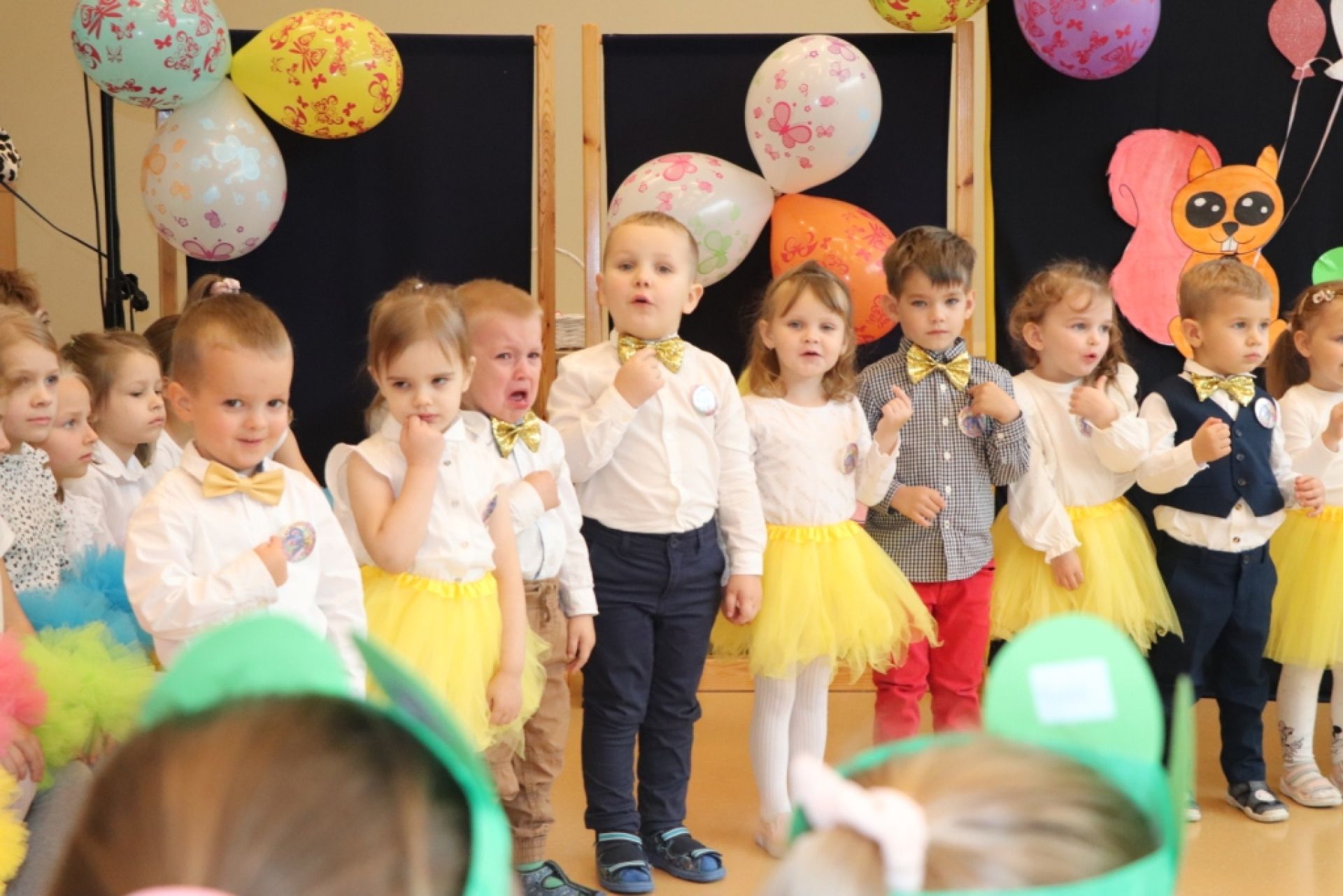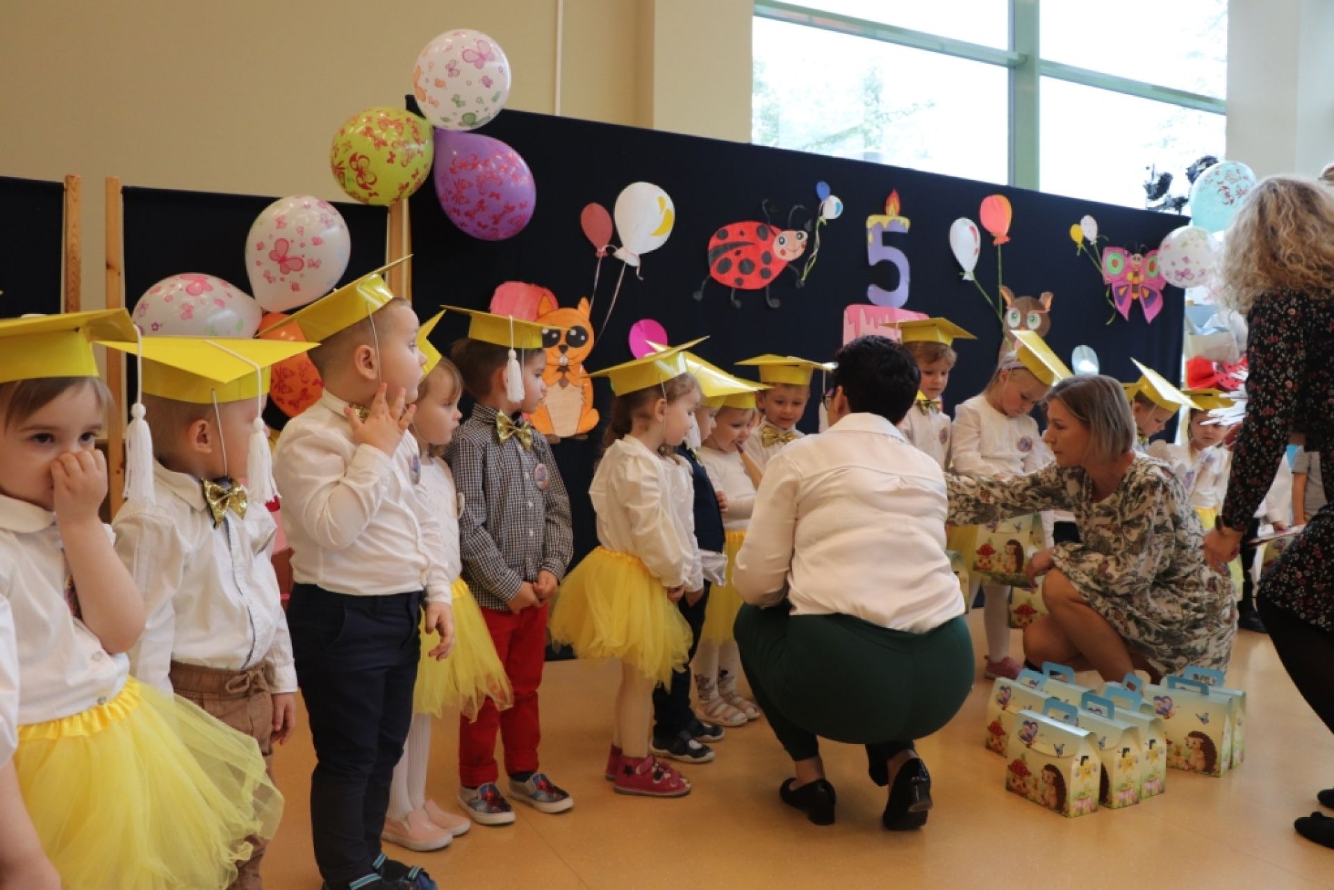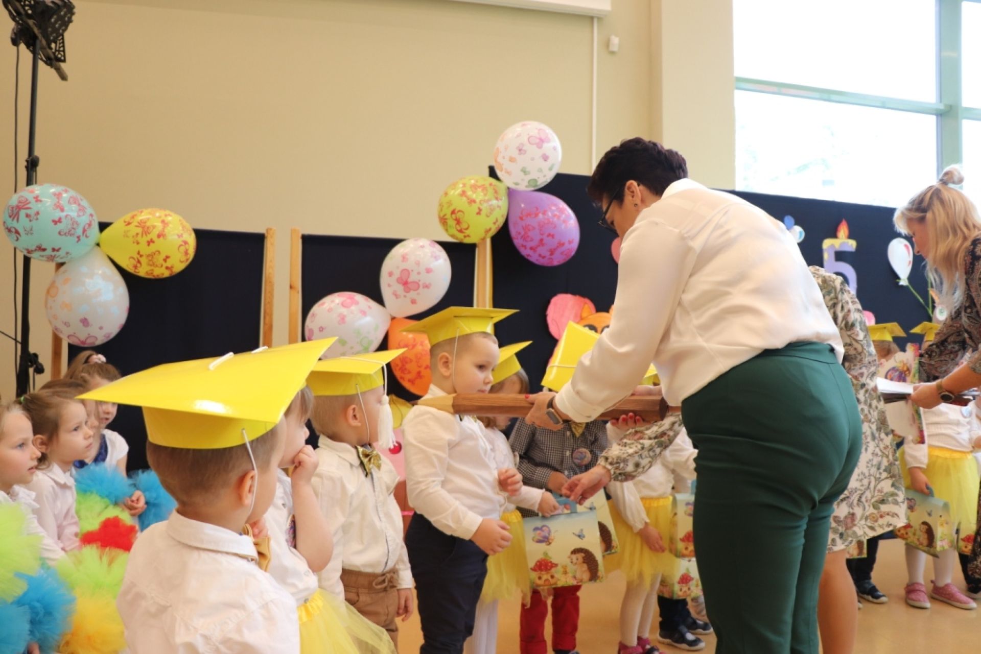 Dnia 21 października 2022 r. świętowaliśmy Piąte urodziny naszego przedszkola. Przybyli do nas wspaniali goście i rodzice najmłodszych przedszkolaków. Z tej okazji wszystkie grupy zaprezentowały swoje umiejętności wokalno-taneczne. Tego właśnie dnia odbyło się również pasowanie na przedszkolaka Biedronek oraz Motylków. Maluszki zaprezentowały swoje umiejętności – dając tym samym dowód, jak dużo już potrafią. Po części artystycznej, dzieci obiecały: zgodnie bawić się w przedszkolu, przychodzić każdego dnia z uśmiechem, słuchać pani i pomagać kolegom, być dzielnym przedszkolakiem. Następnie pani dyrektor Barbara Mrugalska dokonała uroczystego pasowania każdego dziecka na przedszkolaka. Na pamiątkę tego ważnego wydarzenia każdy przedszkolak otrzymał dyplom pasowania, medal z symbolem Zucha Przedszkolaka oraz mały słodki upominek. Był również ogromny tort dla wszystkich gości i dzieci oraz prezenty dla każdej z grup. Wszystkim gościom towarzyszył na twarzy uśmiech, chociaż w niejednym oku pojawiły się łzy wzruszenia.