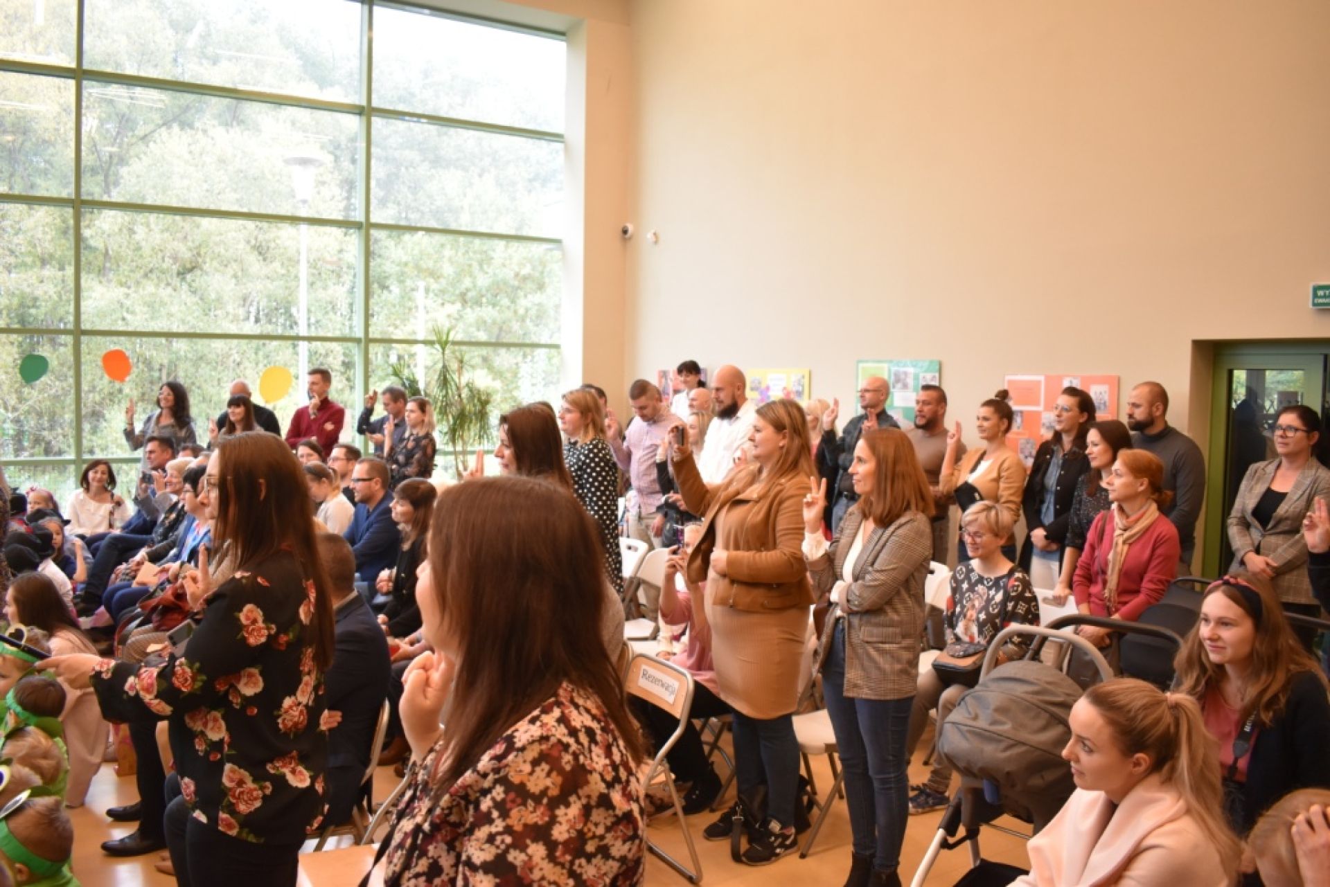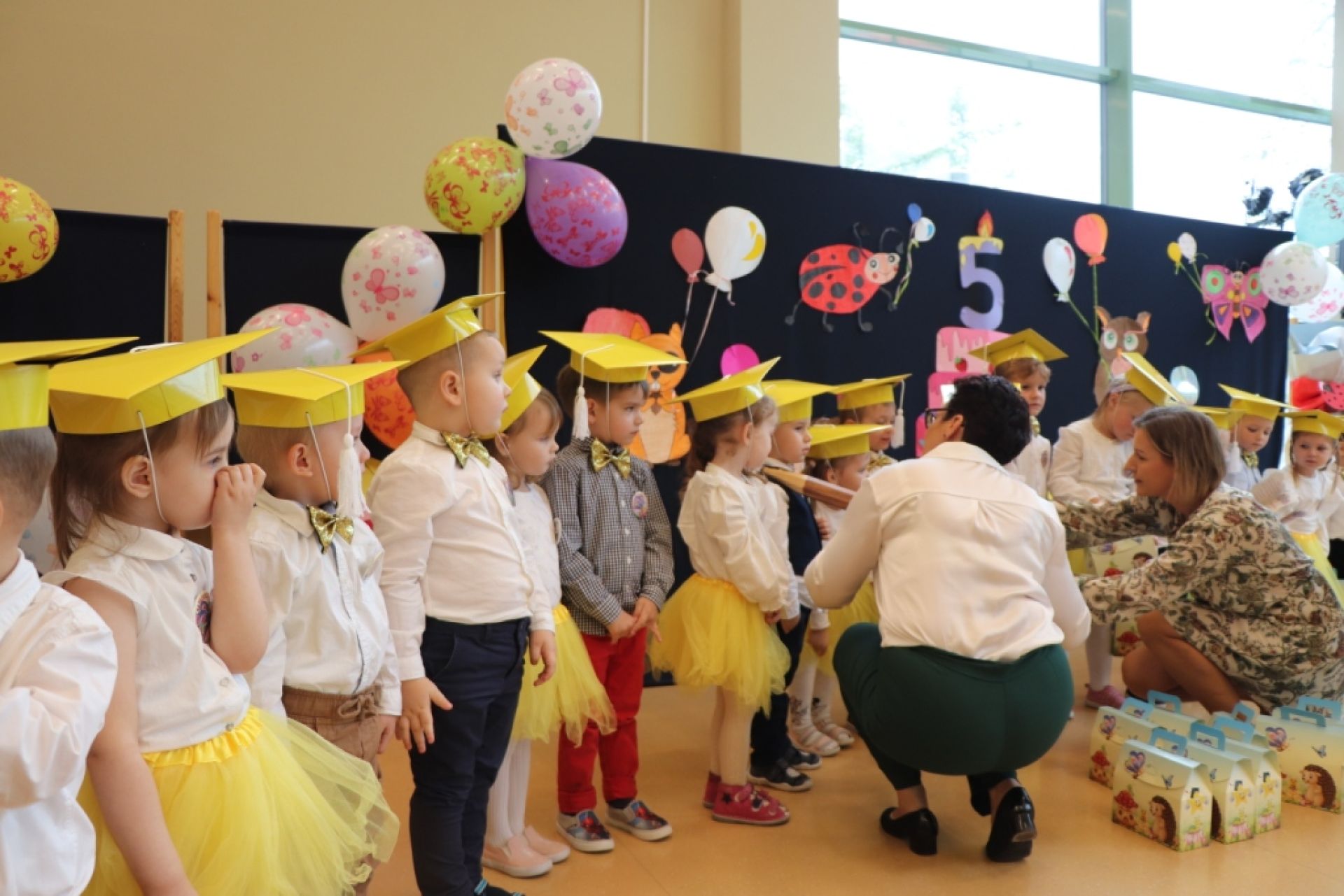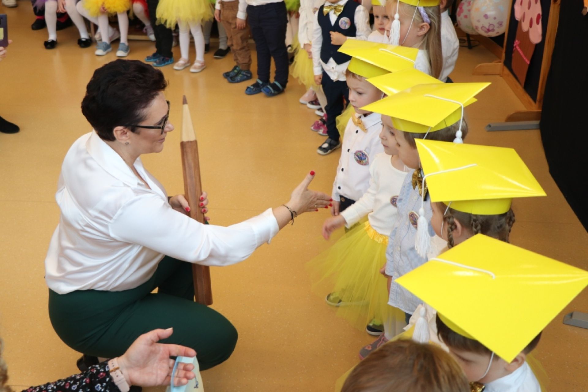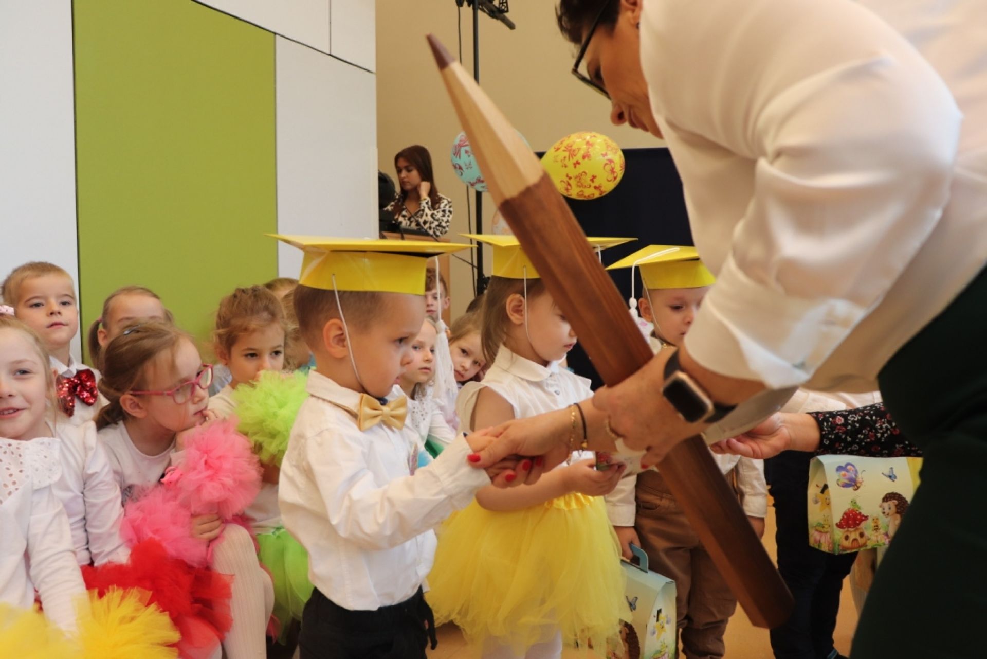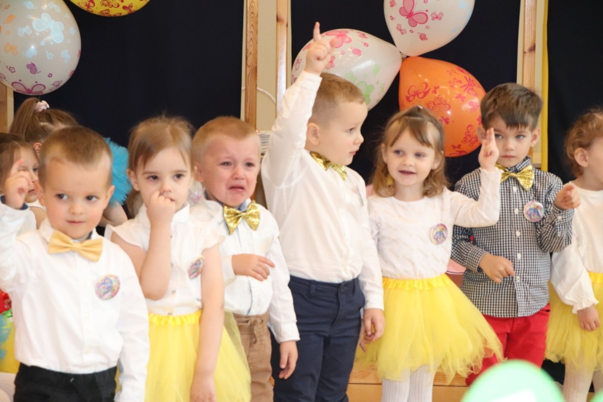 Dnia 21 października 2022 r. świętowaliśmy Piąte urodziny naszego przedszkola. Przybyli do nas wspaniali goście i rodzice najmłodszych przedszkolaków. Z tej okazji wszystkie grupy zaprezentowały swoje umiejętności wokalno-taneczne. Tego właśnie dnia odbyło się również pasowanie na przedszkolaka Biedronek oraz Motylków. Maluszki zaprezentowały swoje umiejętności – dając tym samym dowód, jak dużo już potrafią. Po części artystycznej, dzieci obiecały: zgodnie bawić się w przedszkolu, przychodzić każdego dnia z uśmiechem, słuchać pani i pomagać kolegom, być dzielnym przedszkolakiem. Następnie pani dyrektor Barbara Mrugalska dokonała uroczystego pasowania każdego dziecka na przedszkolaka. Na pamiątkę tego ważnego wydarzenia każdy przedszkolak otrzymał dyplom pasowania, medal z symbolem Zucha Przedszkolaka oraz mały słodki upominek. Był również ogromny tort dla wszystkich gości i dzieci oraz prezenty dla każdej z grup. Wszystkim gościom towarzyszył na twarzy uśmiech, chociaż w niejednym oku pojawiły się łzy wzruszenia.