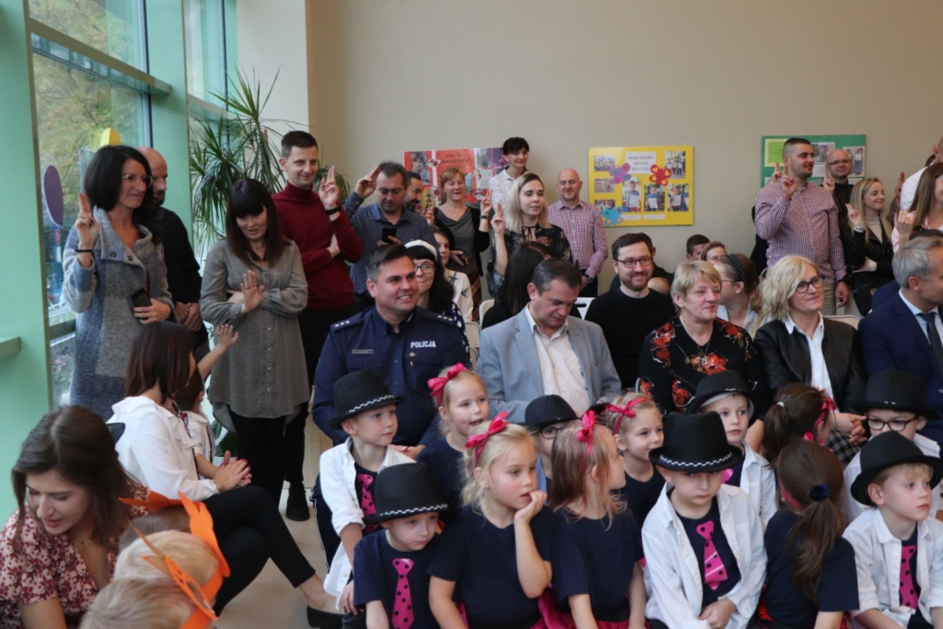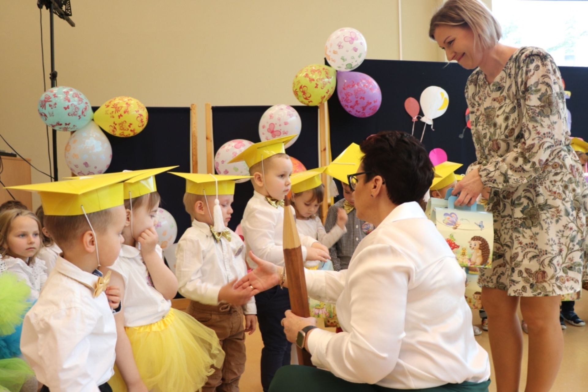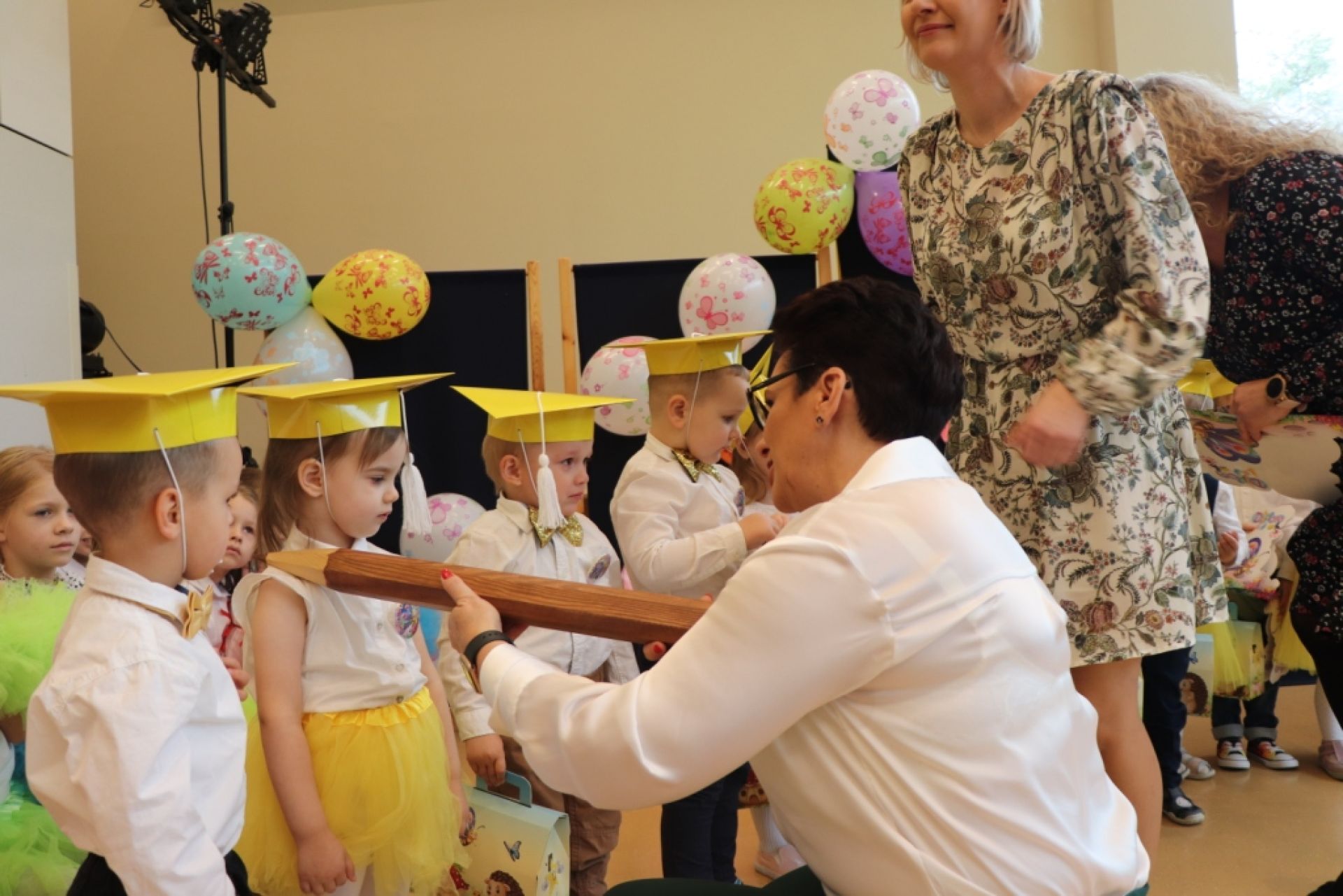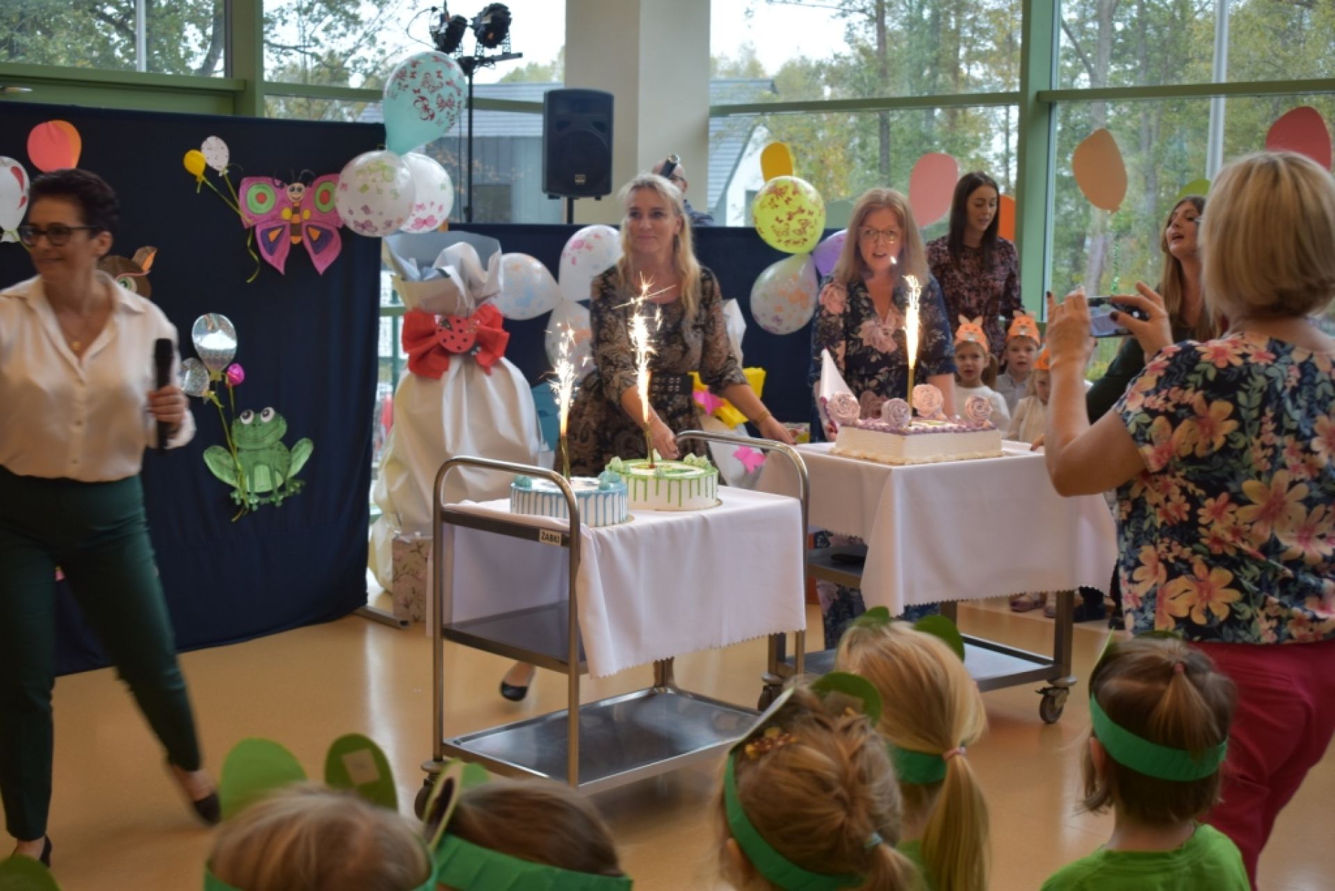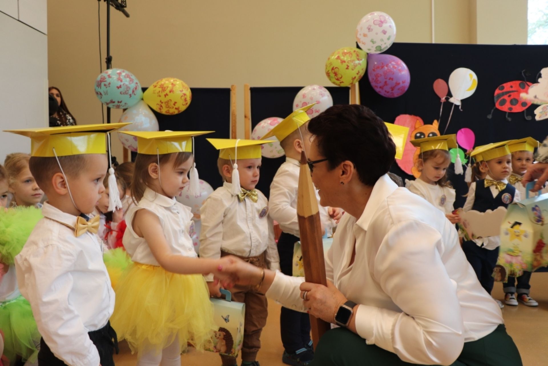 Dnia 21 października 2022 r. świętowaliśmy Piąte urodziny naszego przedszkola. Przybyli do nas wspaniali goście i rodzice najmłodszych przedszkolaków. Z tej okazji wszystkie grupy zaprezentowały swoje umiejętności wokalno-taneczne. Tego właśnie dnia odbyło się również pasowanie na przedszkolaka Biedronek oraz Motylków. Maluszki zaprezentowały swoje umiejętności – dając tym samym dowód, jak dużo już potrafią. Po części artystycznej, dzieci obiecały: zgodnie bawić się w przedszkolu, przychodzić każdego dnia z uśmiechem, słuchać pani i pomagać kolegom, być dzielnym przedszkolakiem. Następnie pani dyrektor Barbara Mrugalska dokonała uroczystego pasowania każdego dziecka na przedszkolaka. Na pamiątkę tego ważnego wydarzenia każdy przedszkolak otrzymał dyplom pasowania, medal z symbolem Zucha Przedszkolaka oraz mały słodki upominek. Był również ogromny tort dla wszystkich gości i dzieci oraz prezenty dla każdej z grup. Wszystkim gościom towarzyszył na twarzy uśmiech, chociaż w niejednym oku pojawiły się łzy wzruszenia.