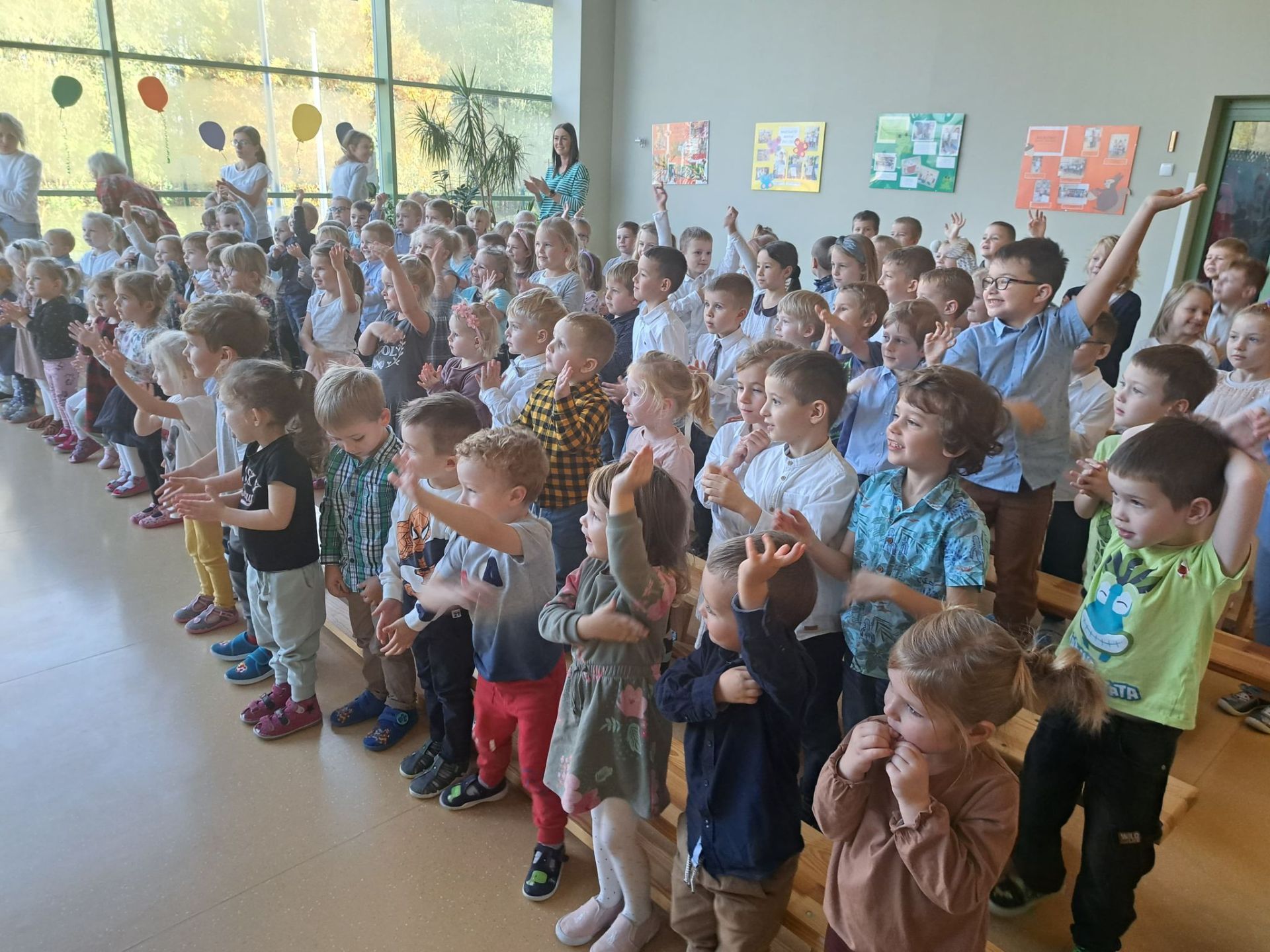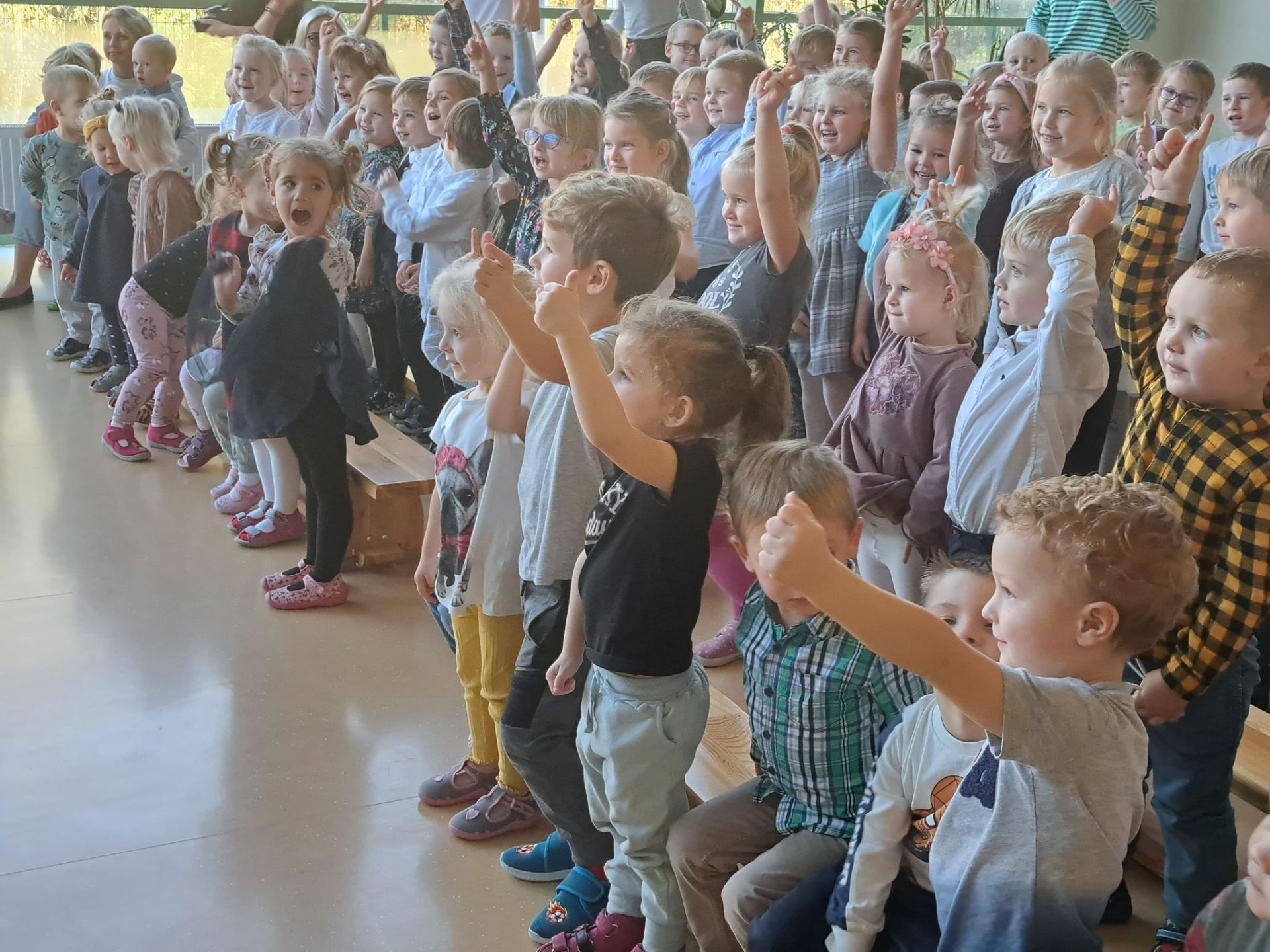 Dzisiaj nasze przedszkole odwiedził Zespół Teatralny „Grupa T” z przedstawieniem „Bajki na jednej nodze”. W spektaklu tym poruszony został problem zdrowego trybu życia oraz mówiono o niebezpieczeństwach codziennego życia. W sposób zabawny i humorystyczny nasi uczniowie zostali ostrzeżeni aby nie ufali nieznajomym, myli owoce i warzywa przed jedzeniem oraz dbali o swoją higienę. Bohaterowie przestrzegali również dzieci przed nieznajomymi.