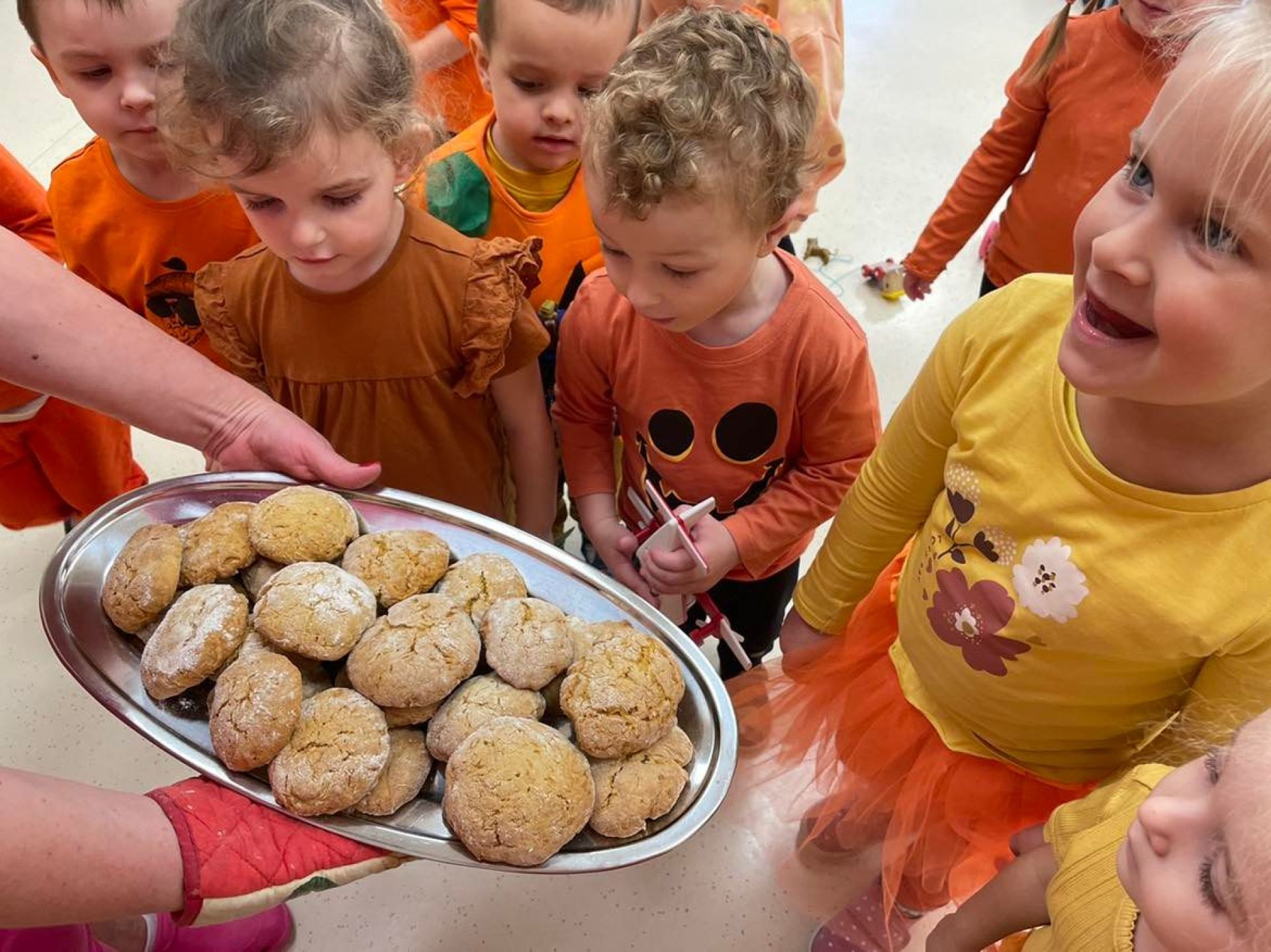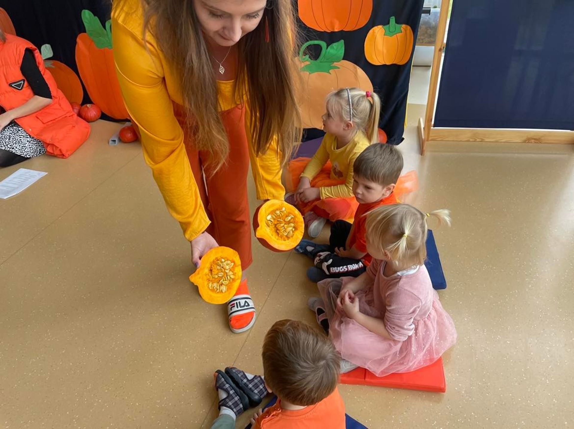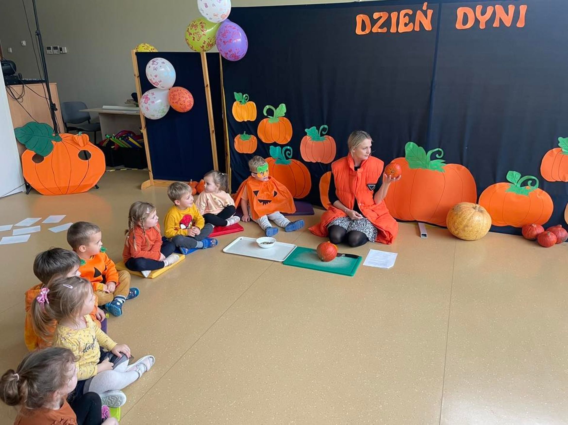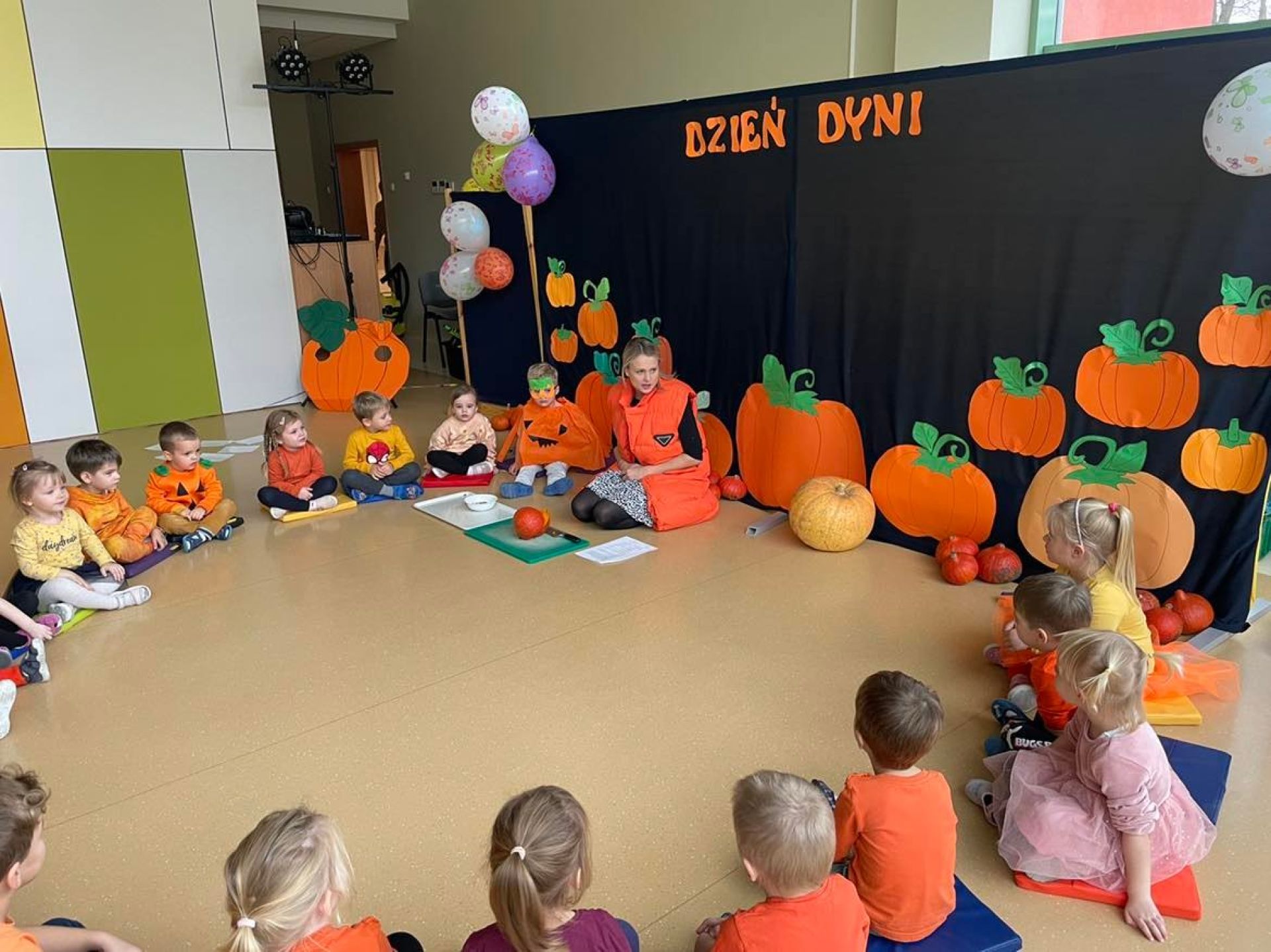W dniu dzisiejszym obchodziliśmy w naszym przedszkolu dzień dyni. Dzieci dowiedziały się jakie wartości odżywcze ma dynia i co kryje w środku. Dzieci brały udział w licznych zabawach z akcentem dyniowym . Na zakonczenie tego uroczego dnia wszystkie dzieci robiły ciasteczka dyniowe , które zabrały do domów. Był to bardzo udany dzień .