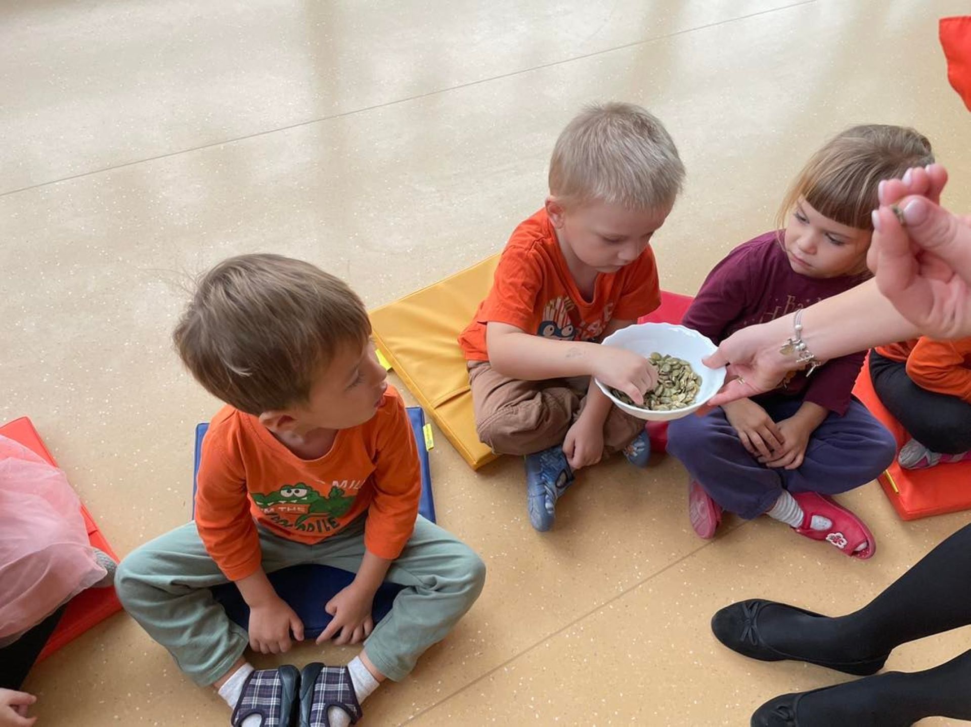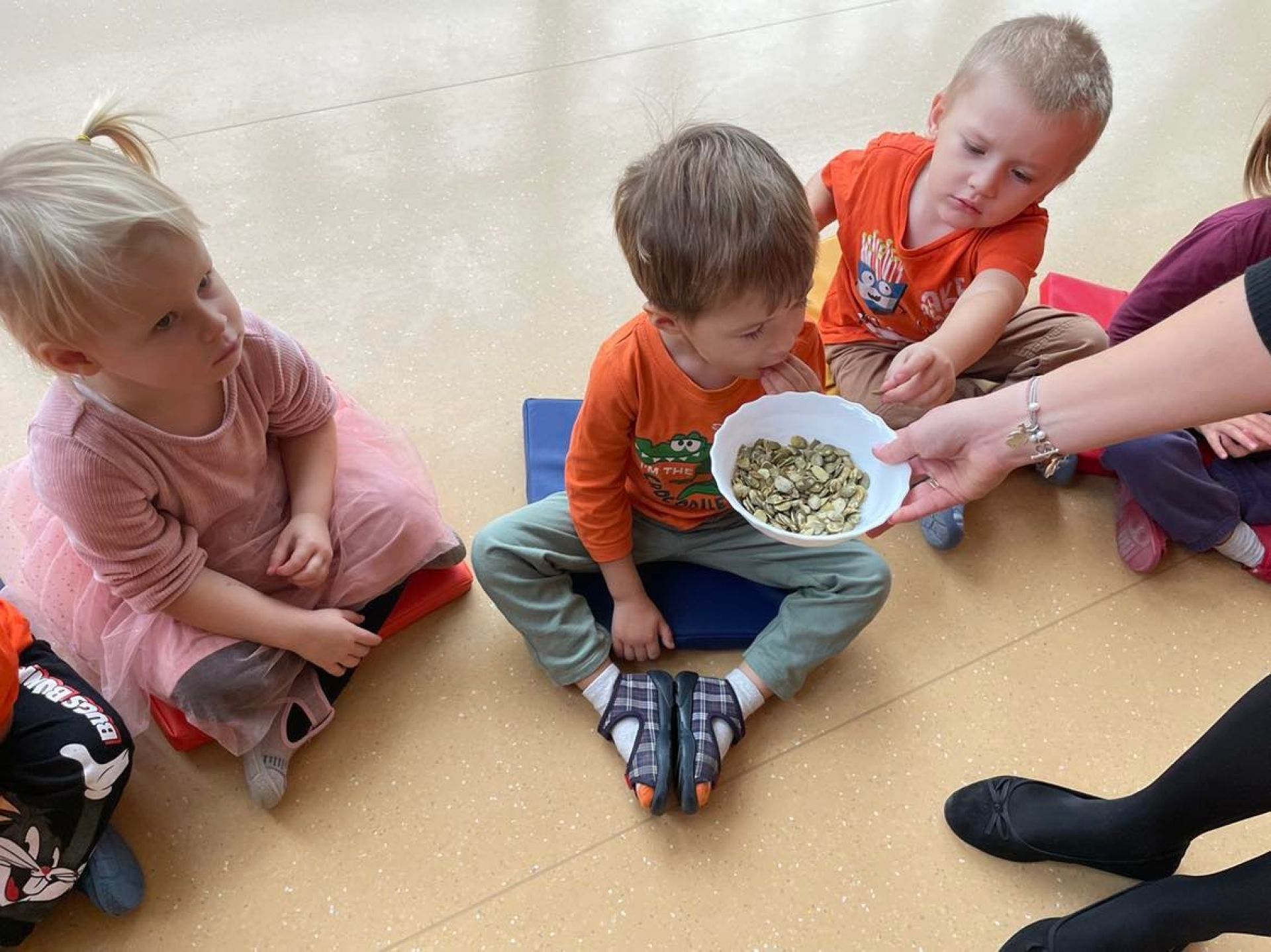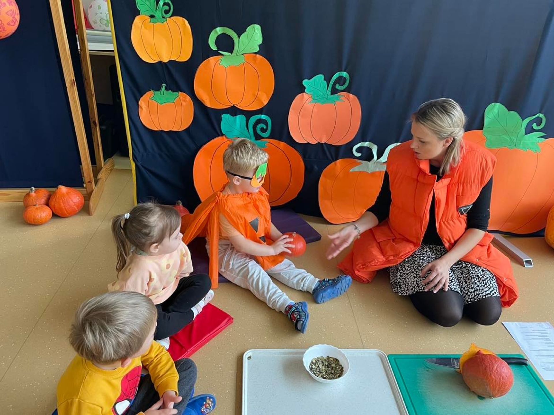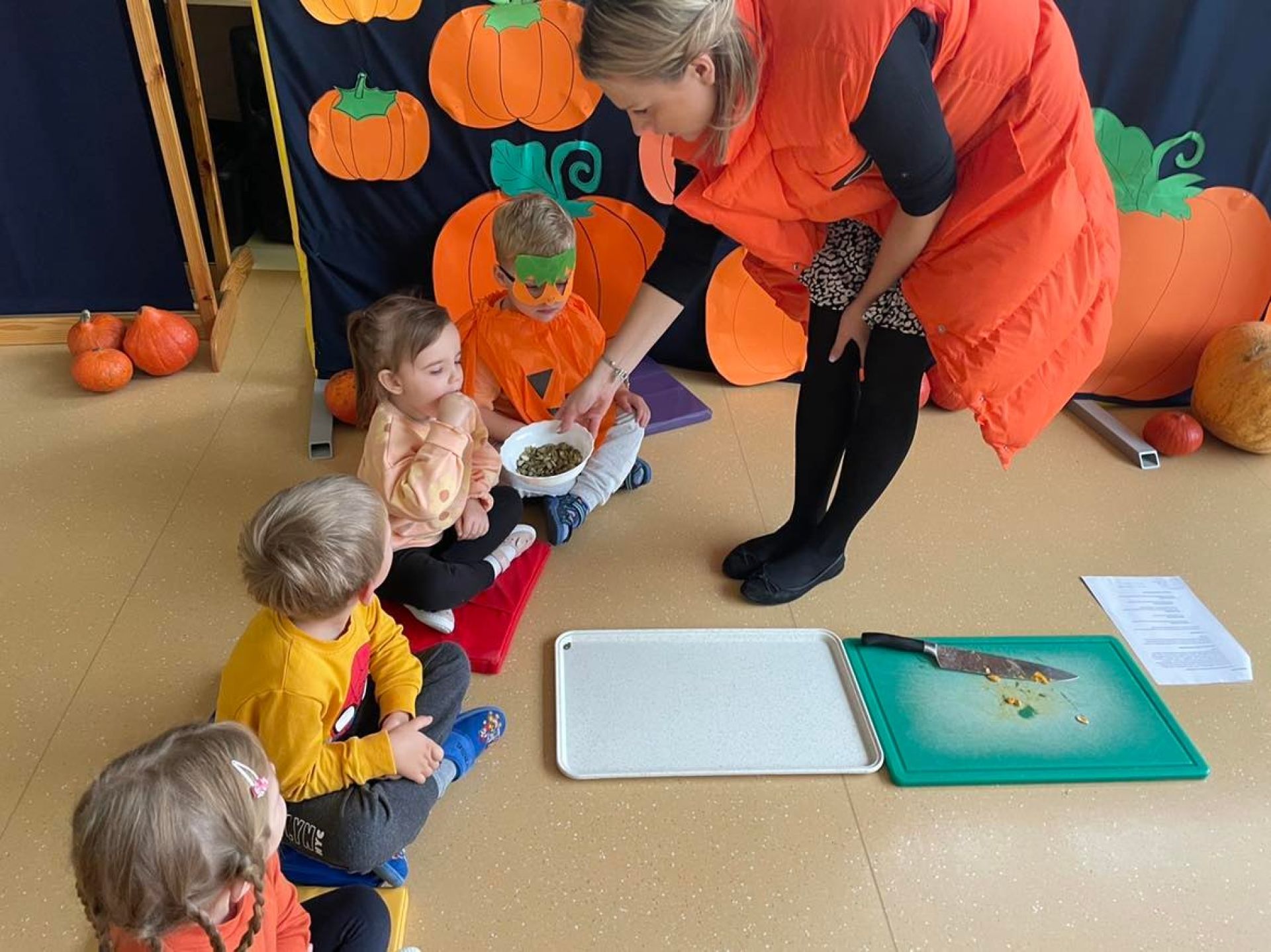 W dniu dzisiejszym obchodziliśmy w naszym przedszkolu dzień dyni. Dzieci dowiedziały się jakie wartości odżywcze ma dynia i co kryje w środku. Dzieci brały udział w licznych zabawach z akcentem dyniowym . Na zakonczenie tego uroczego dnia wszystkie dzieci robiły ciasteczka dyniowe , które zabrały do domów. Był to bardzo udany dzień .