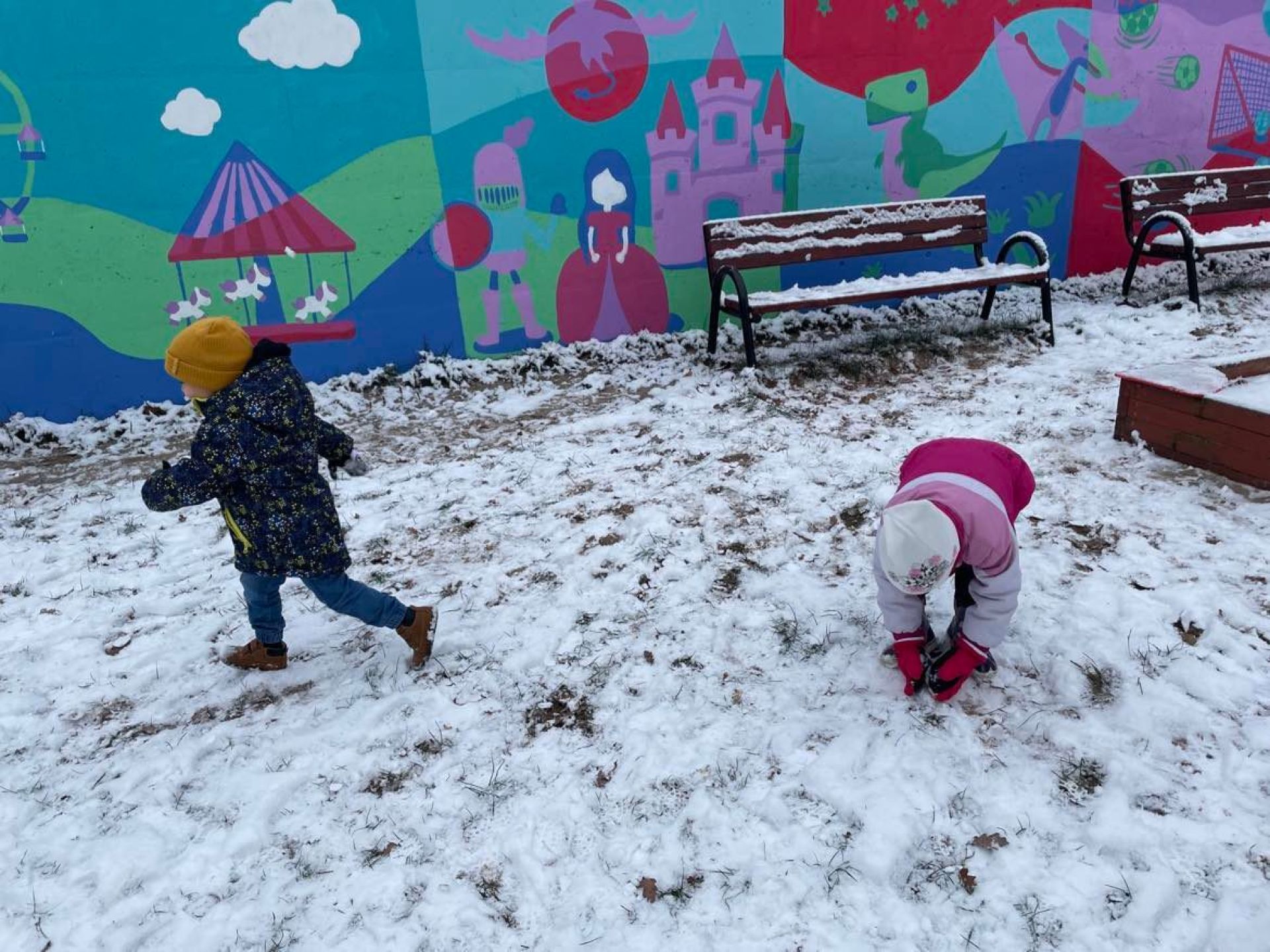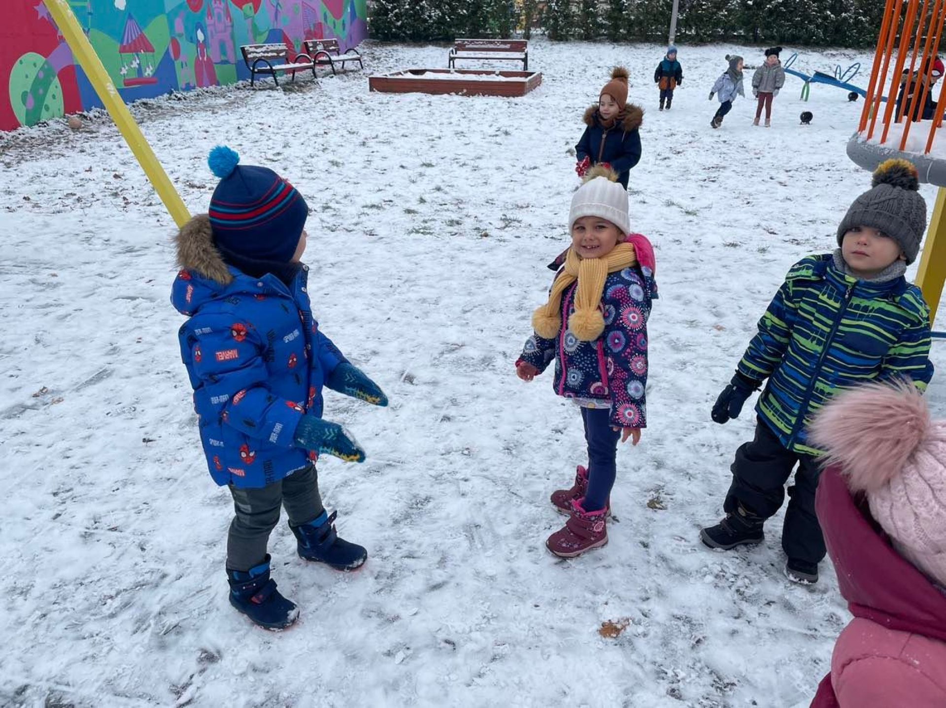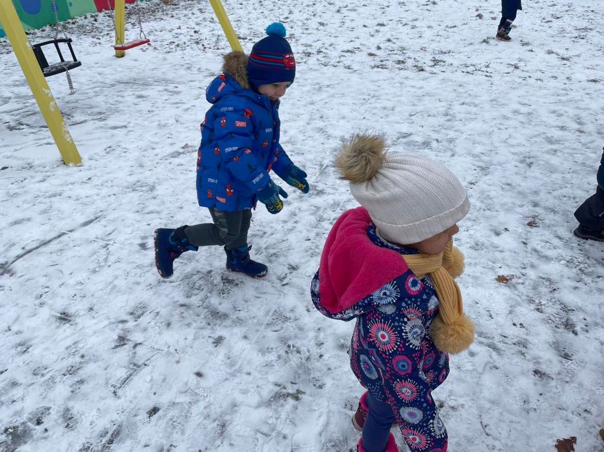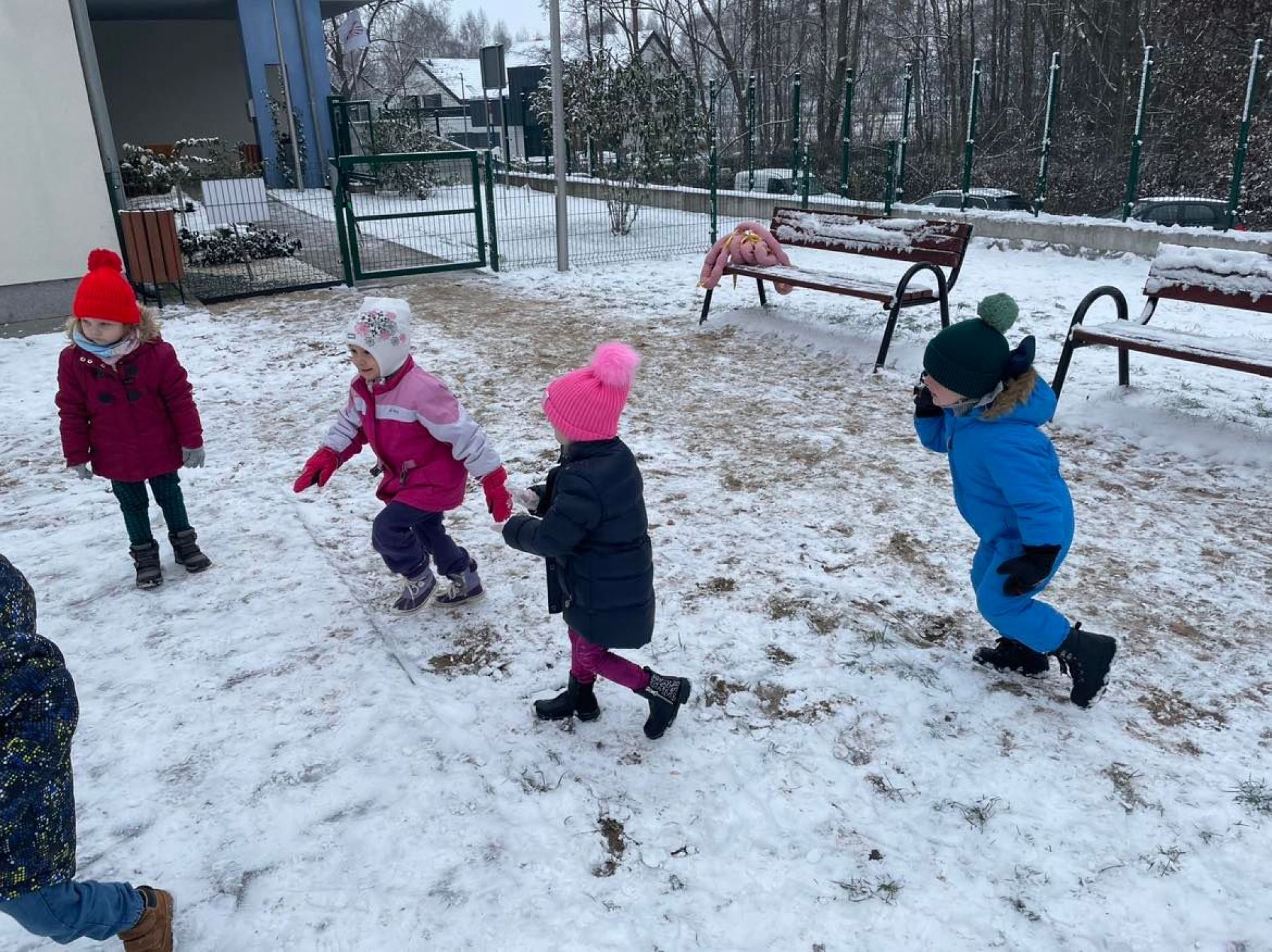 Motylki korzystając z pogody świetnie bawiły się w śniegu.