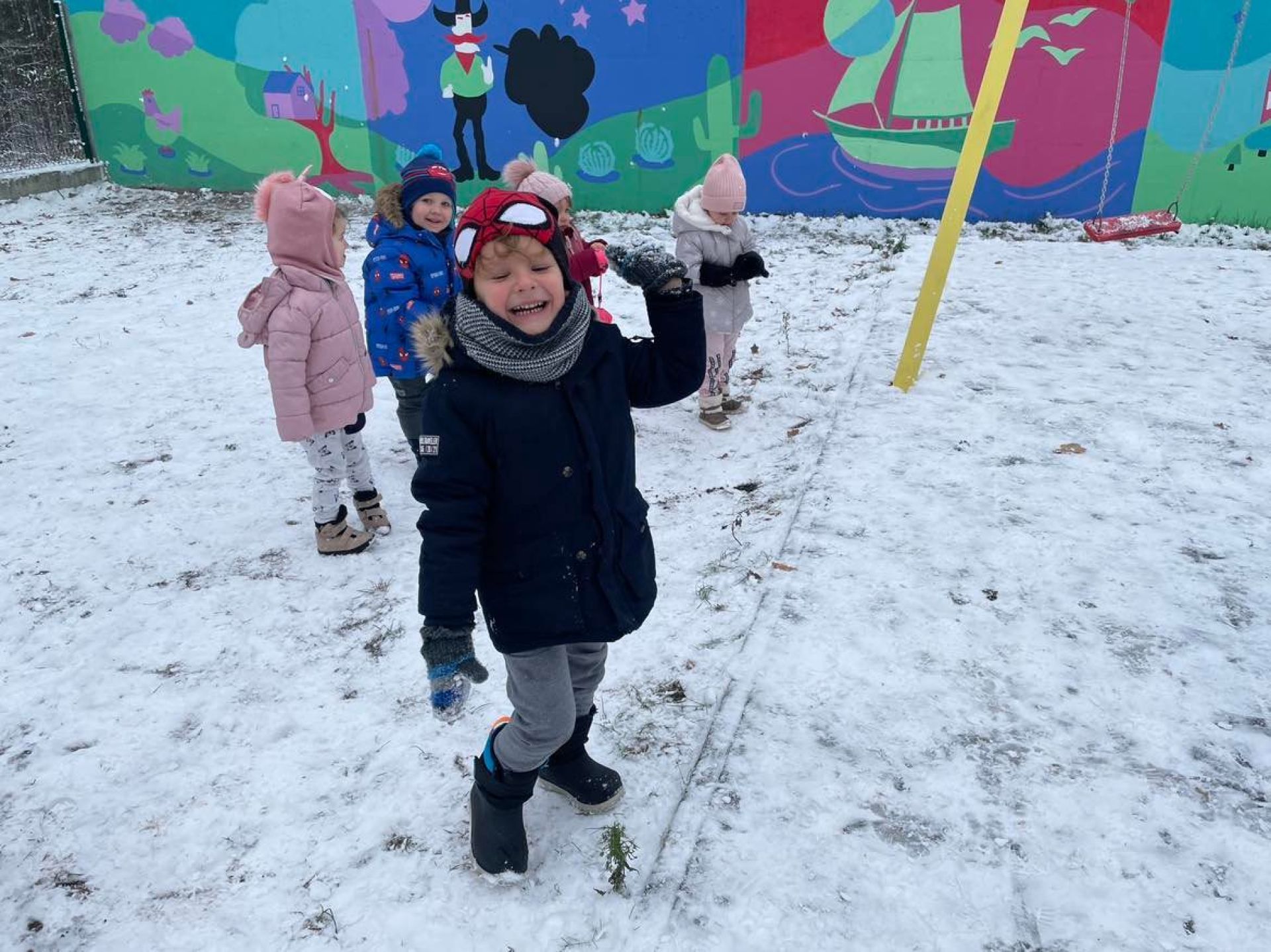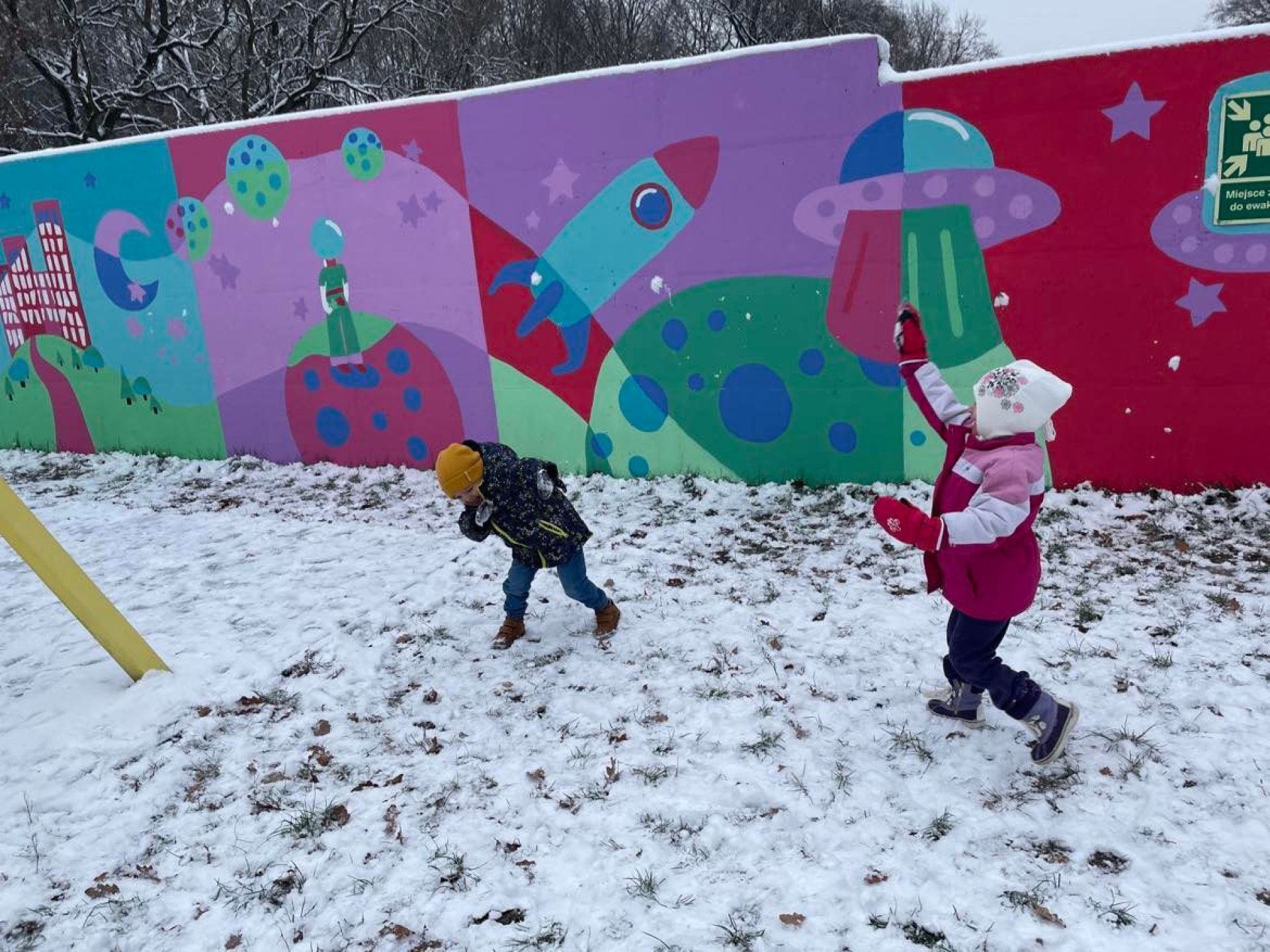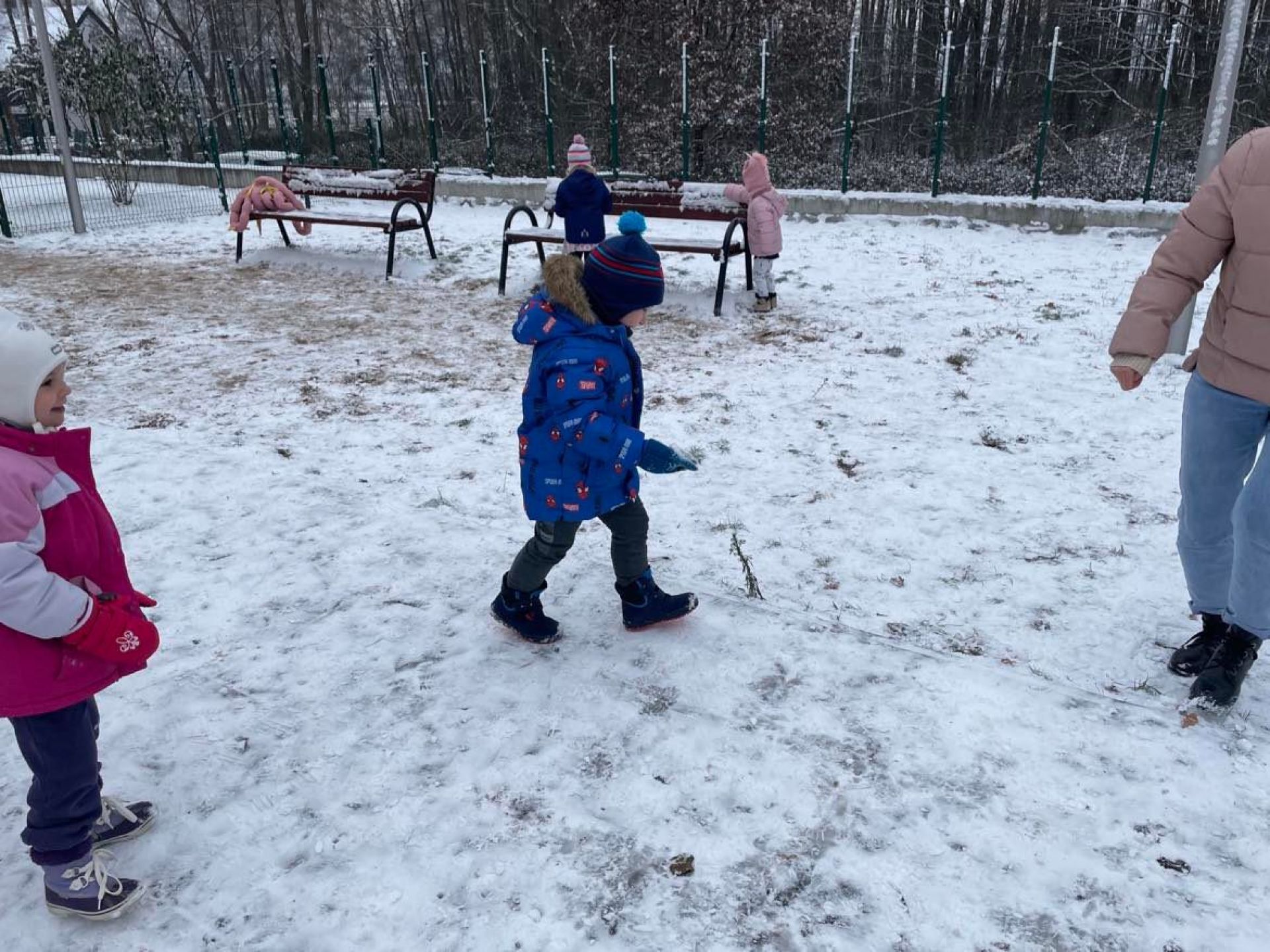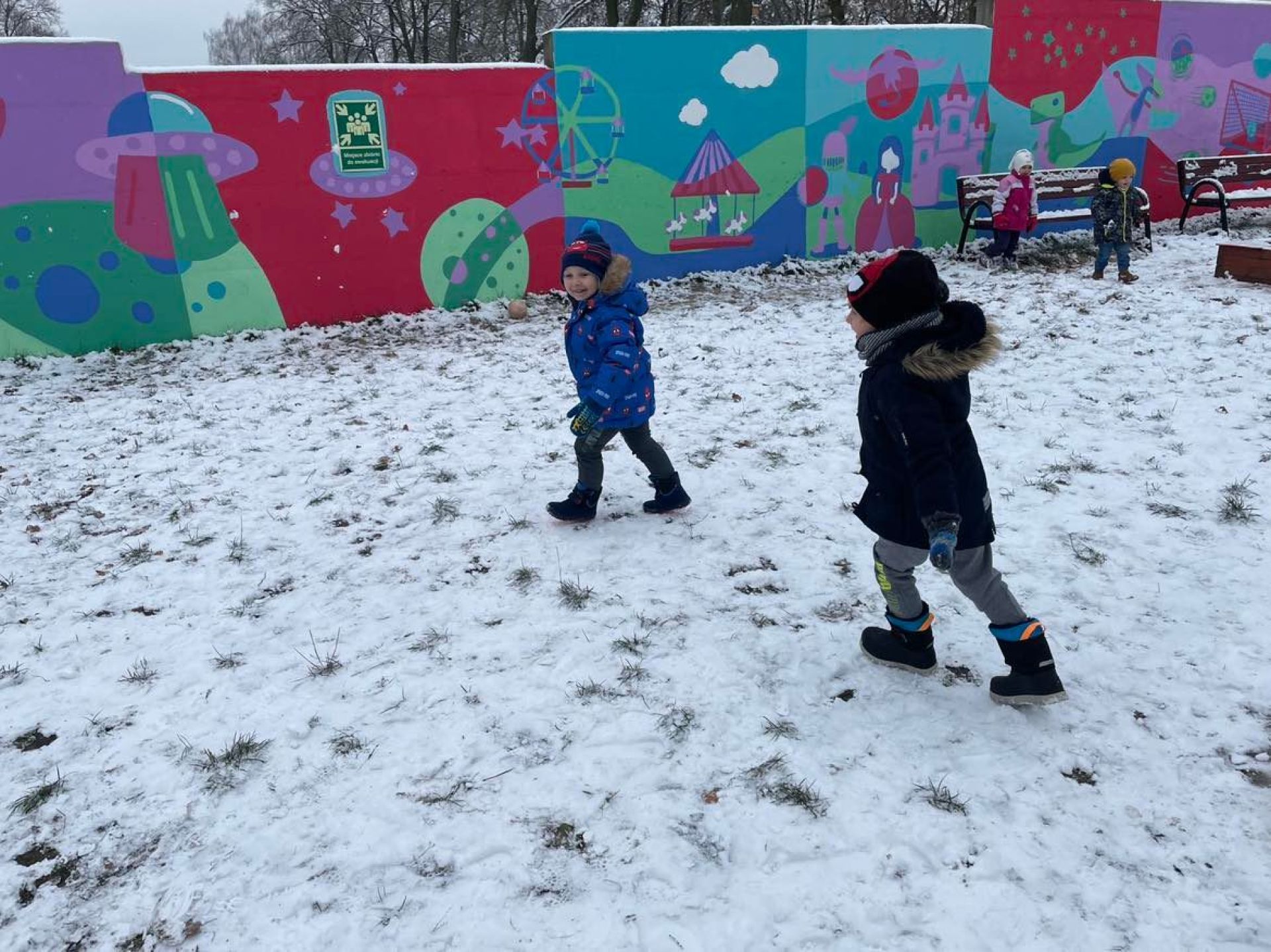 Motylki korzystając z pogody świetnie bawiły się w śniegu.