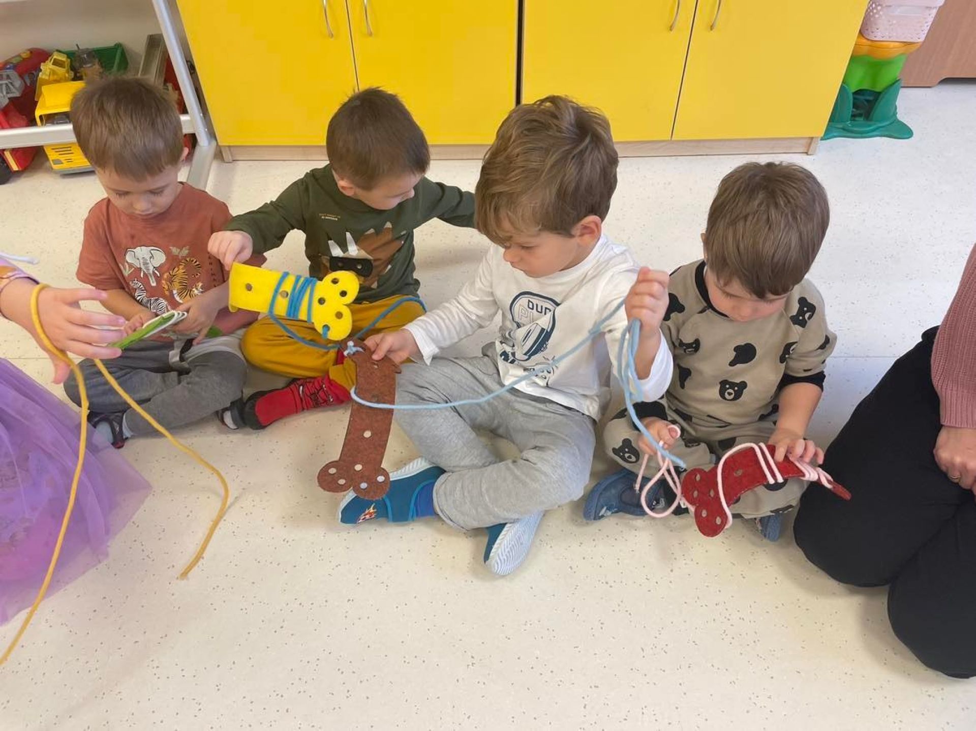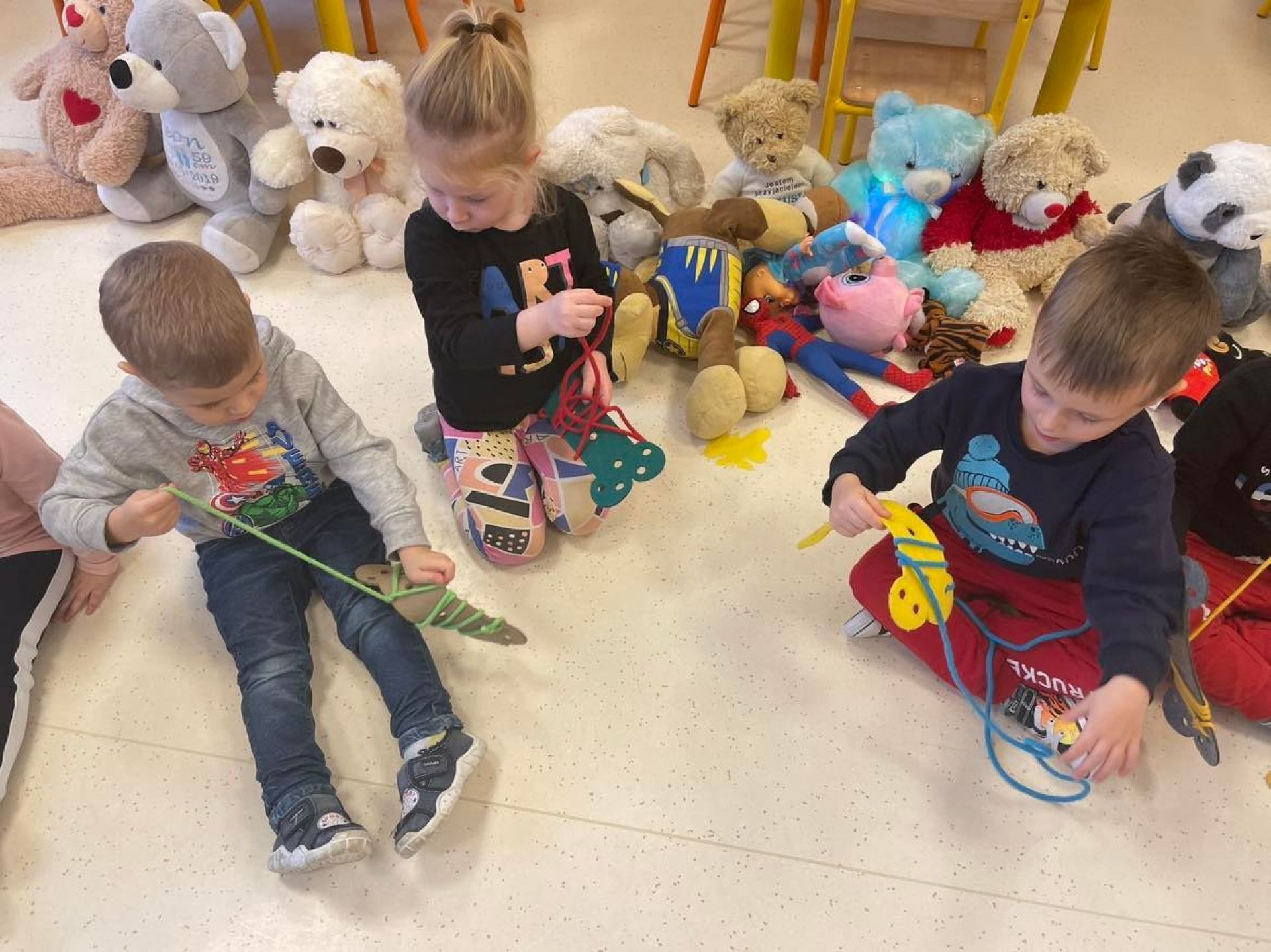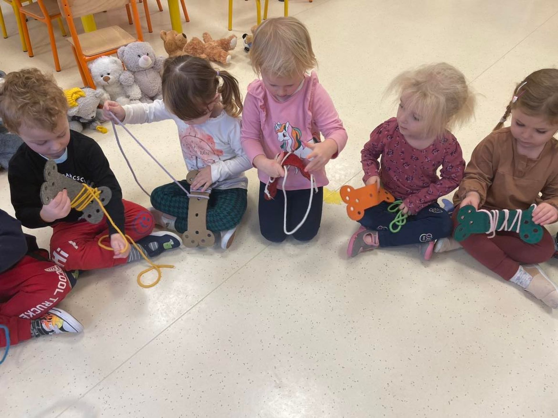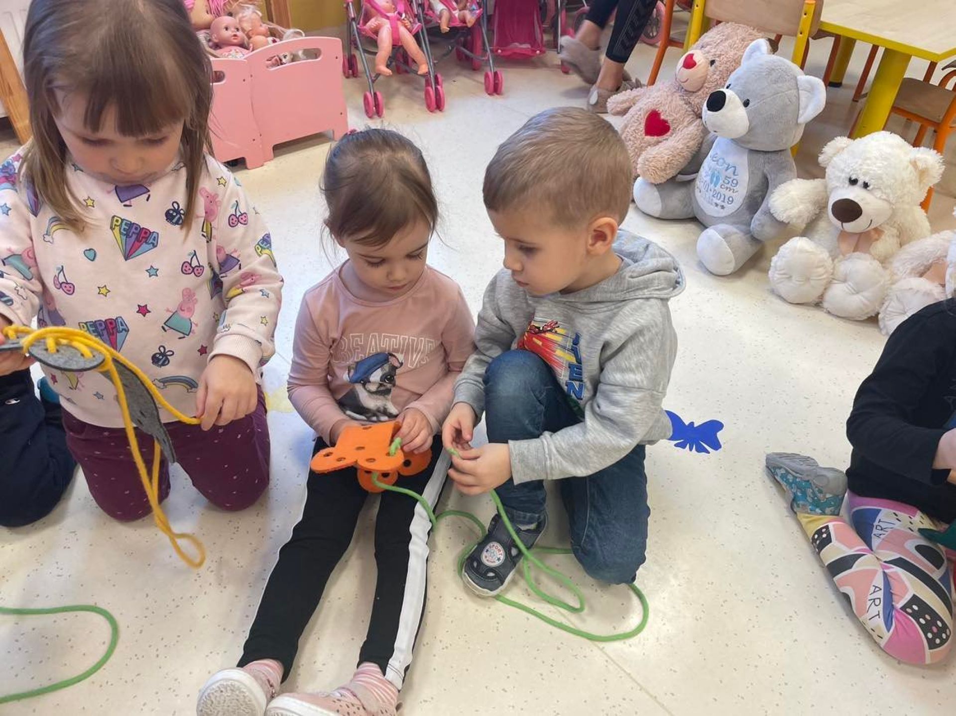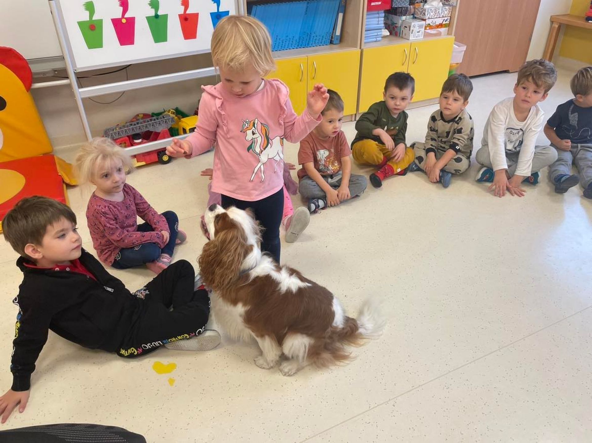 Dziś był dzień pełen atrakcji. Obchodziliśmy dzień pluszowego misia , dzieci przyniosły swoje misie z którymi mogły bawić się i je dekorować. Motylki uczestniczyły również w zabawach o tematyce misiowej . Następnie odwiedziły nas pieski Koko i Karmel z którymi dzieci mogły bliżej  zapoznać się. Dzieci poznały najważniejsze  zasady dotyczące bezpiecznego kontaktu z psami. Wspólnie się bawiły i nabywały śmiałości w kontaktach z zwierzętami.