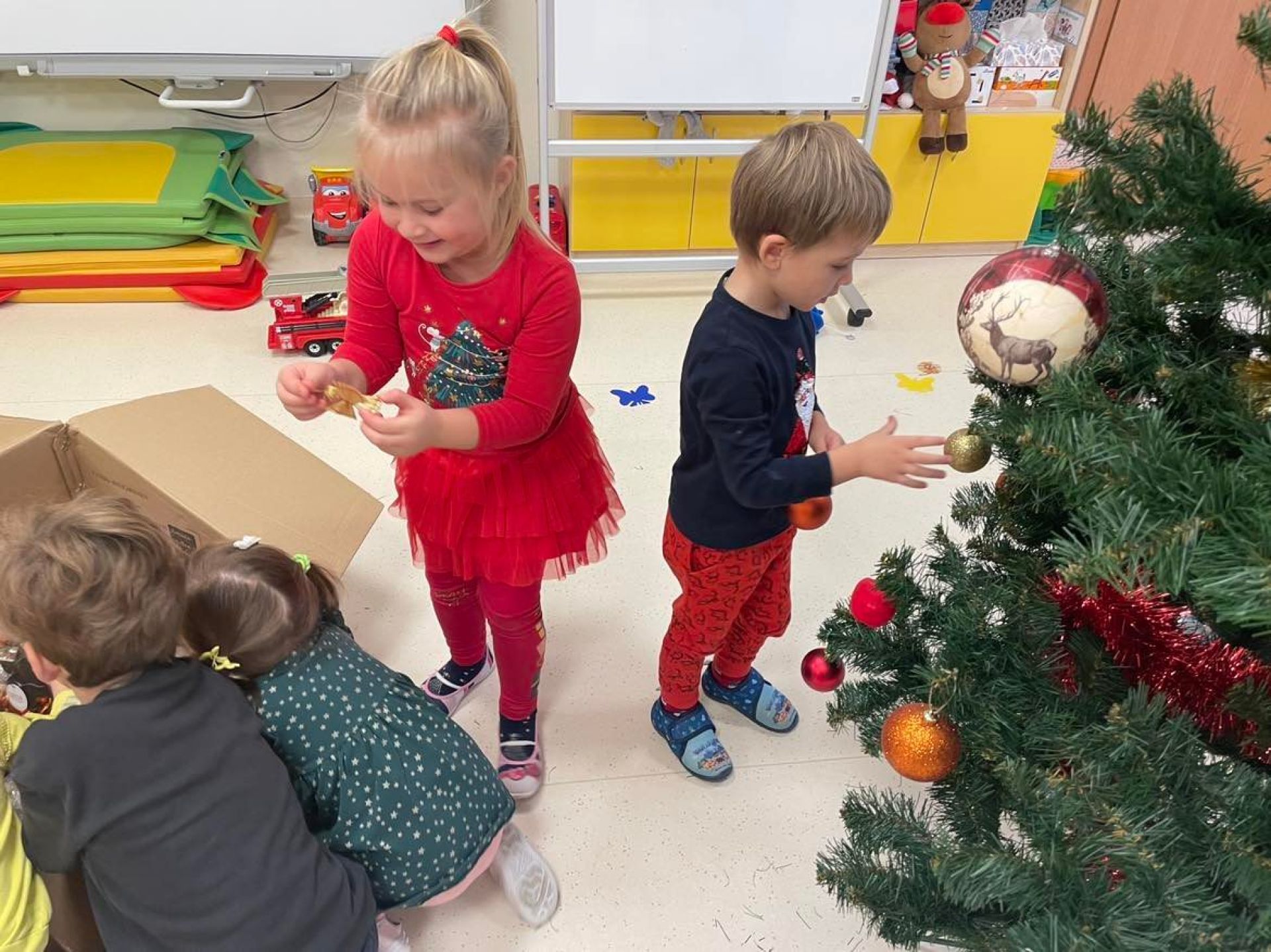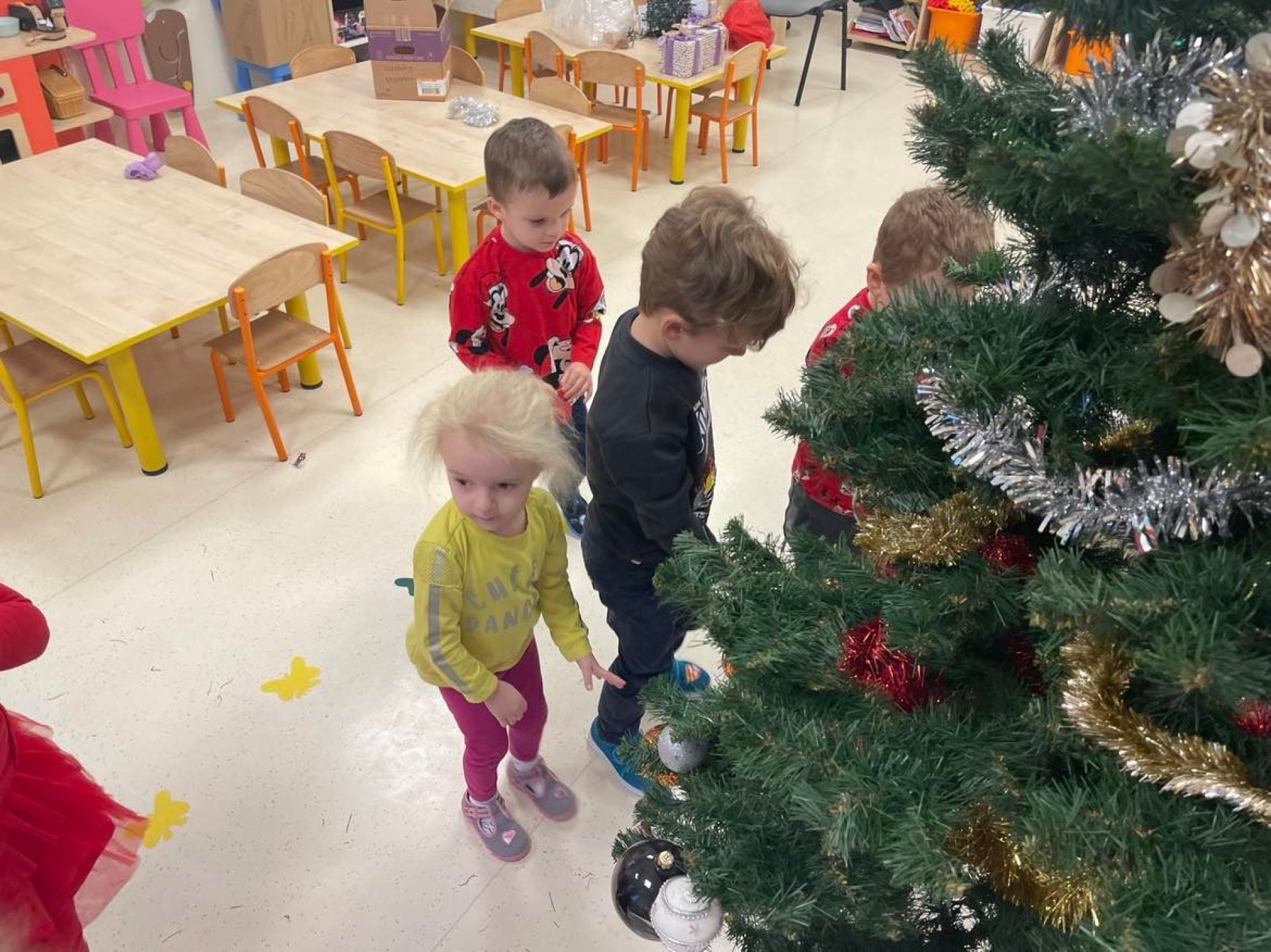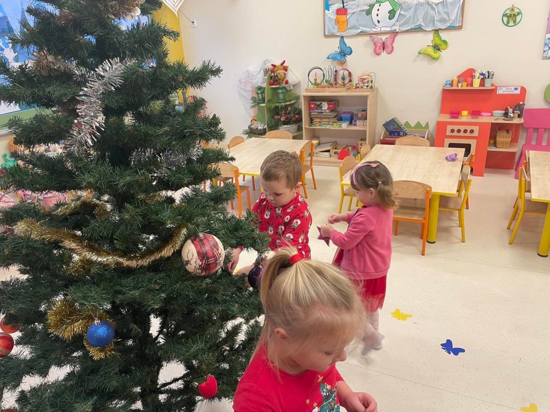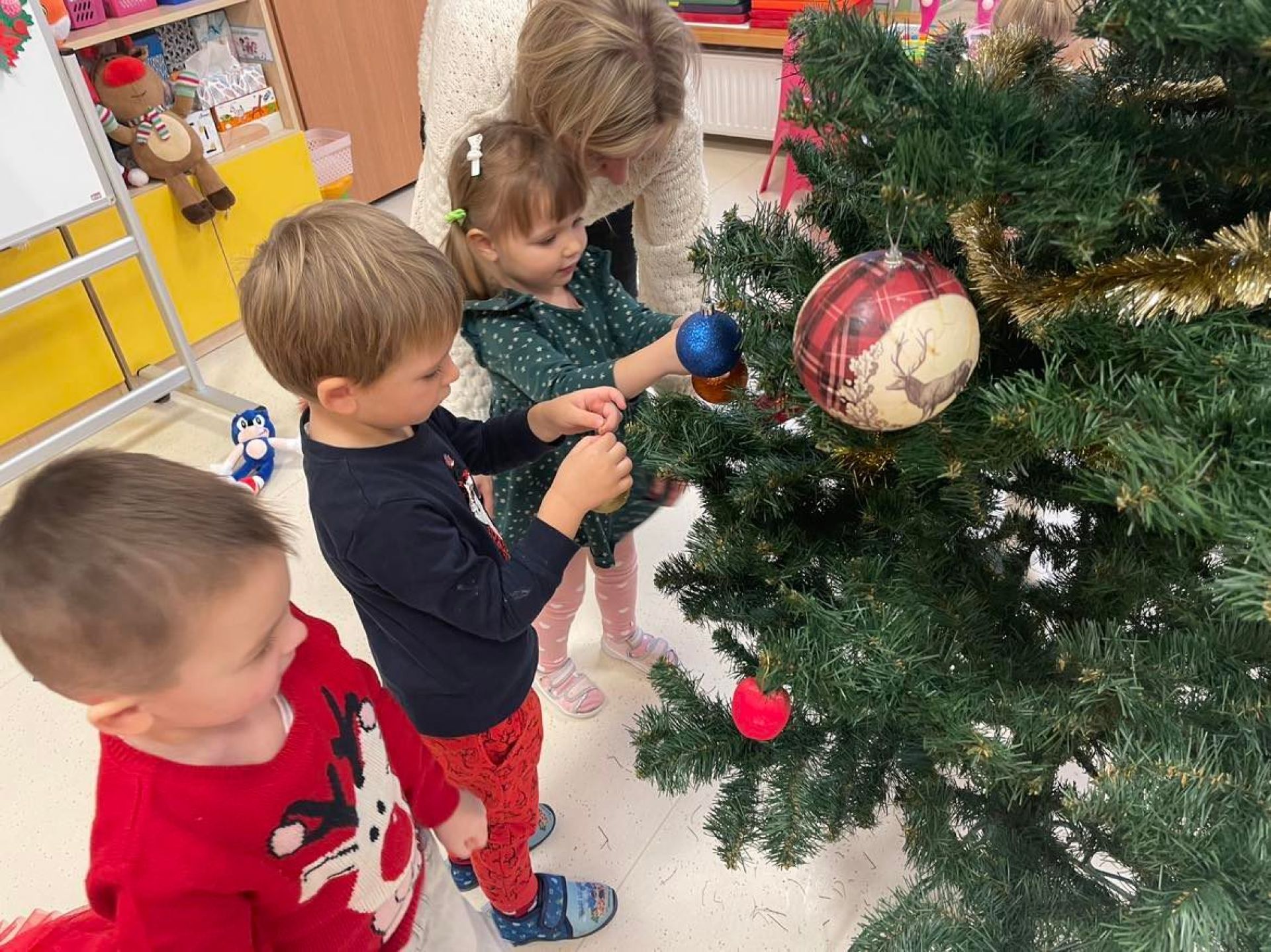 W dniu dzisiejszym odwiedził nas "Bano Show", który zaprezentował nam niesamowite przedstawienie o Elfie, Rudolfie i oczywiście Mikołaju.Nie skończyło się na samym przedstawieniu... Mikołaj wręczył dzieciom słodki upominek. Następnie dzieci ubierały w swoich salach choinkę. Motylki z wielką radością zawieszały ozdoby. Sala przygotowana,teraz wspólnie będziemy wyczekiwać Świąt Bożego Narodzenia.