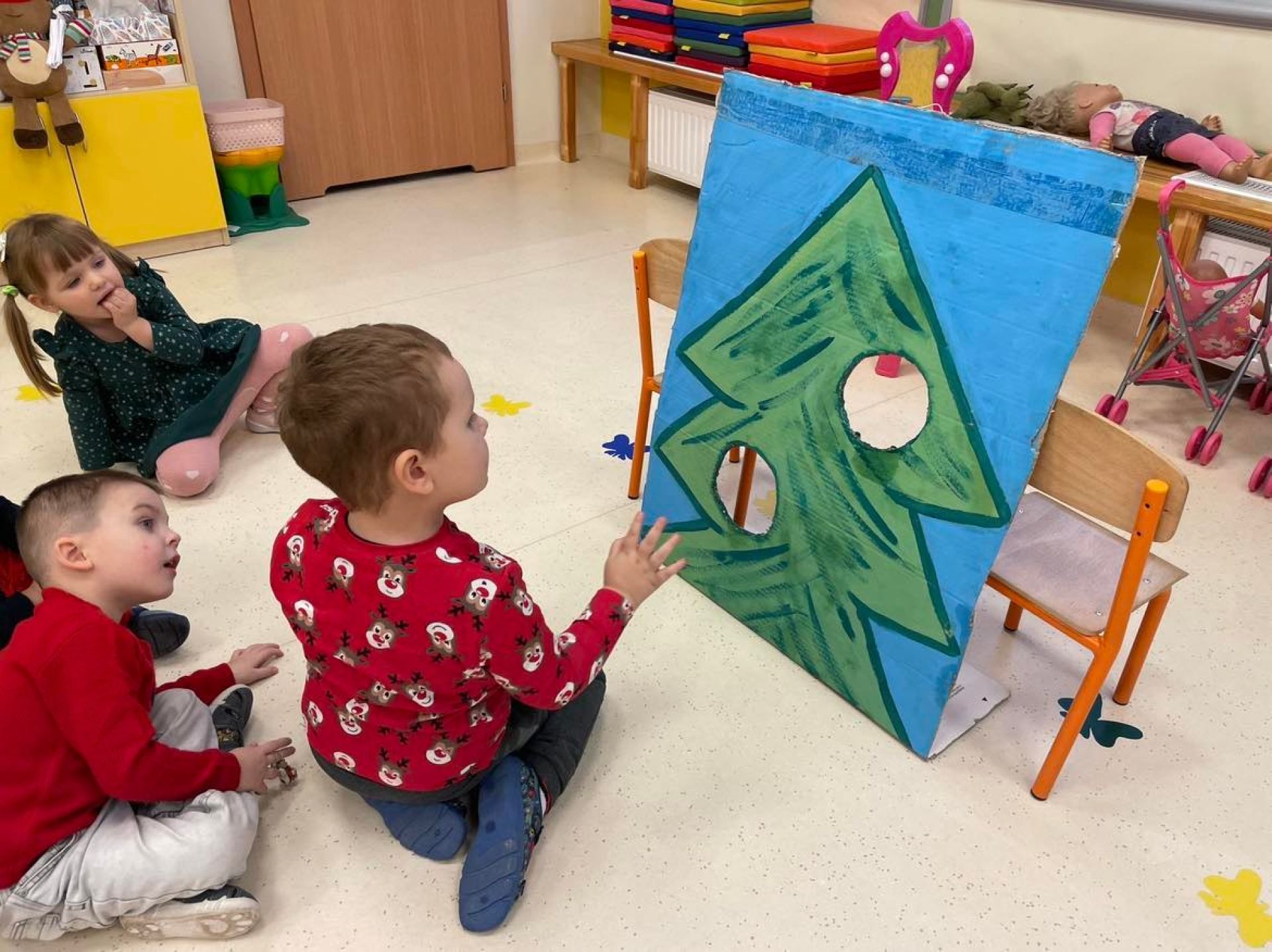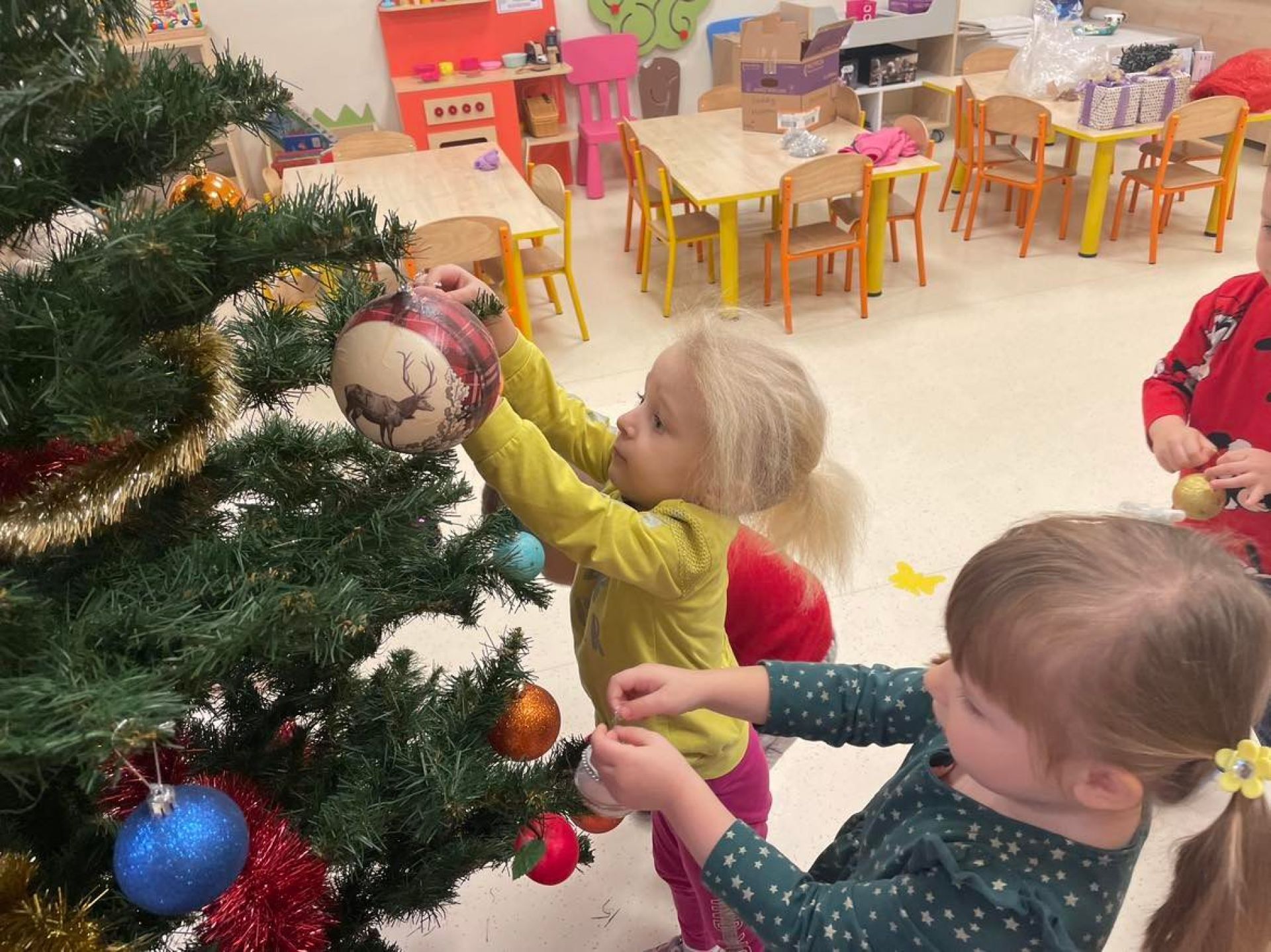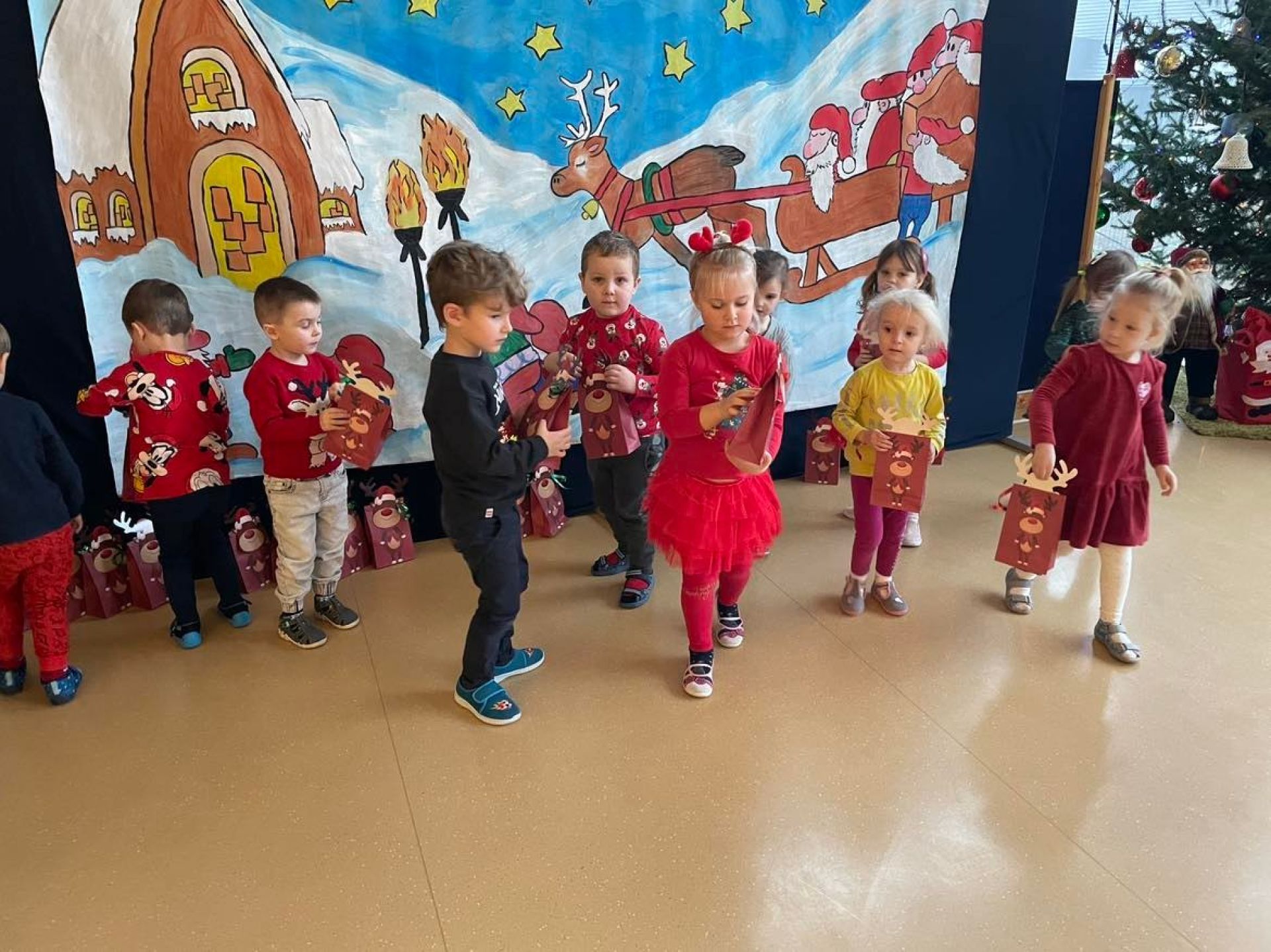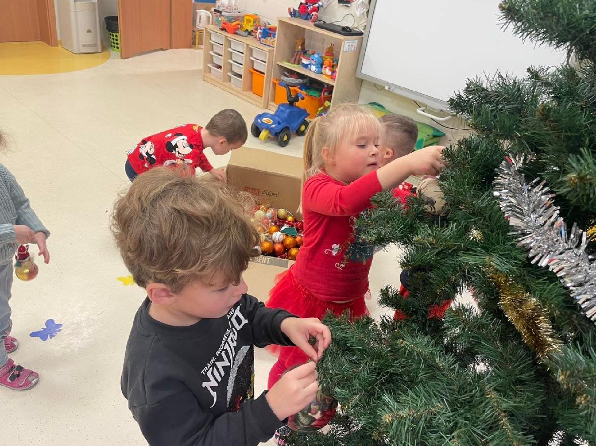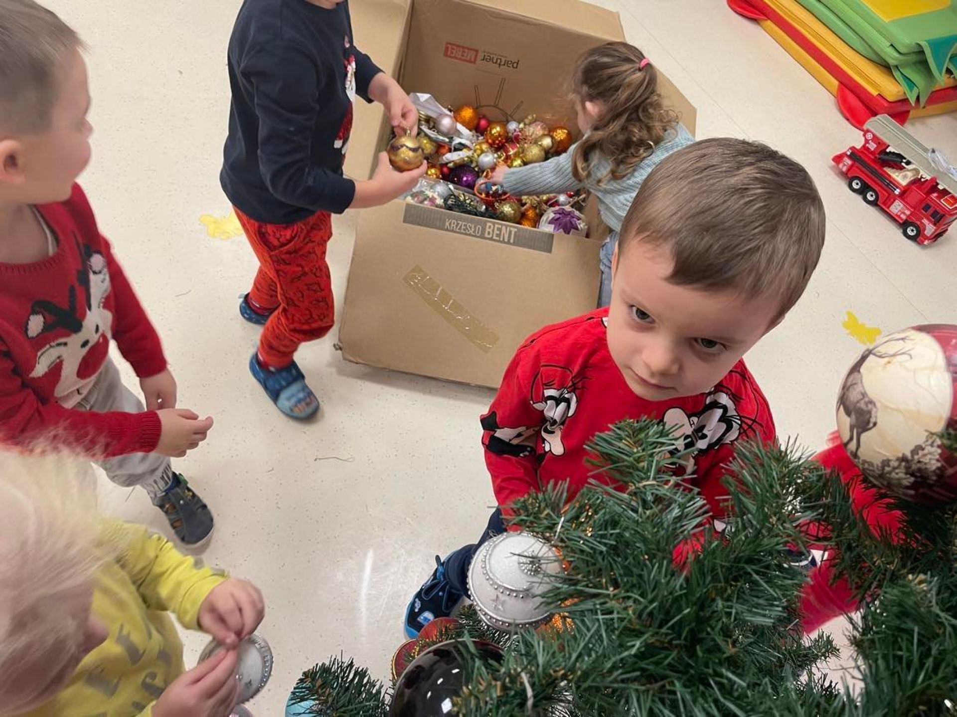 W dniu dzisiejszym odwiedził nas "Bano Show", który zaprezentował nam niesamowite przedstawienie o Elfie, Rudolfie i oczywiście Mikołaju.Nie skończyło się na samym przedstawieniu... Mikołaj wręczył dzieciom słodki upominek. Następnie dzieci ubierały w swoich salach choinkę. Motylki z wielką radością zawieszały ozdoby. Sala przygotowana,teraz wspólnie będziemy wyczekiwać Świąt Bożego Narodzenia.