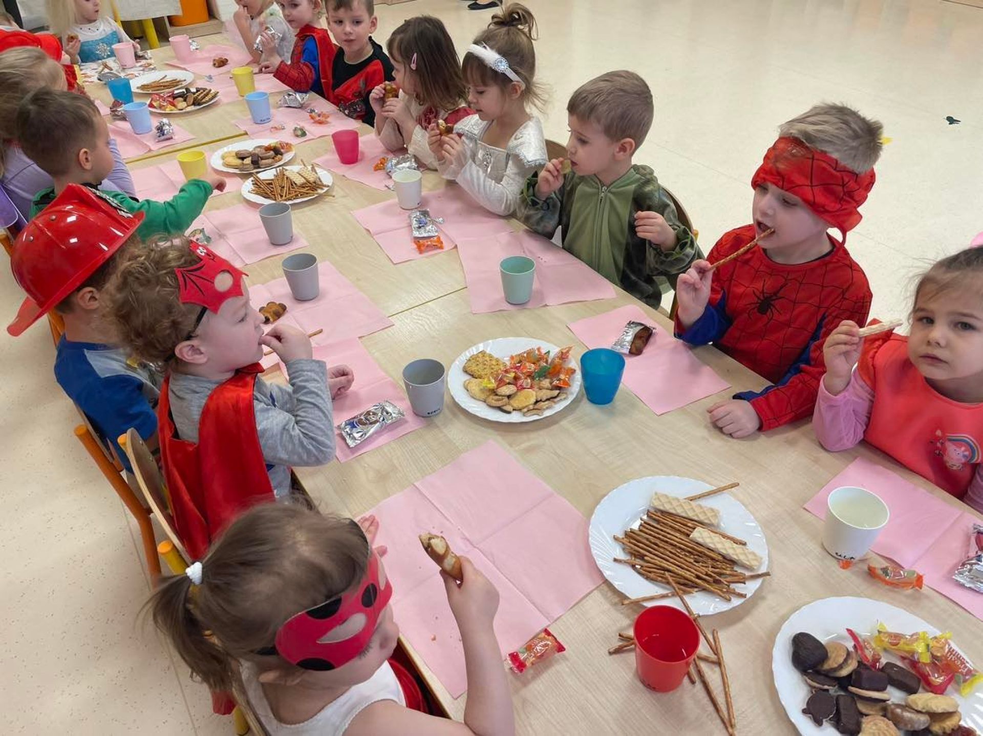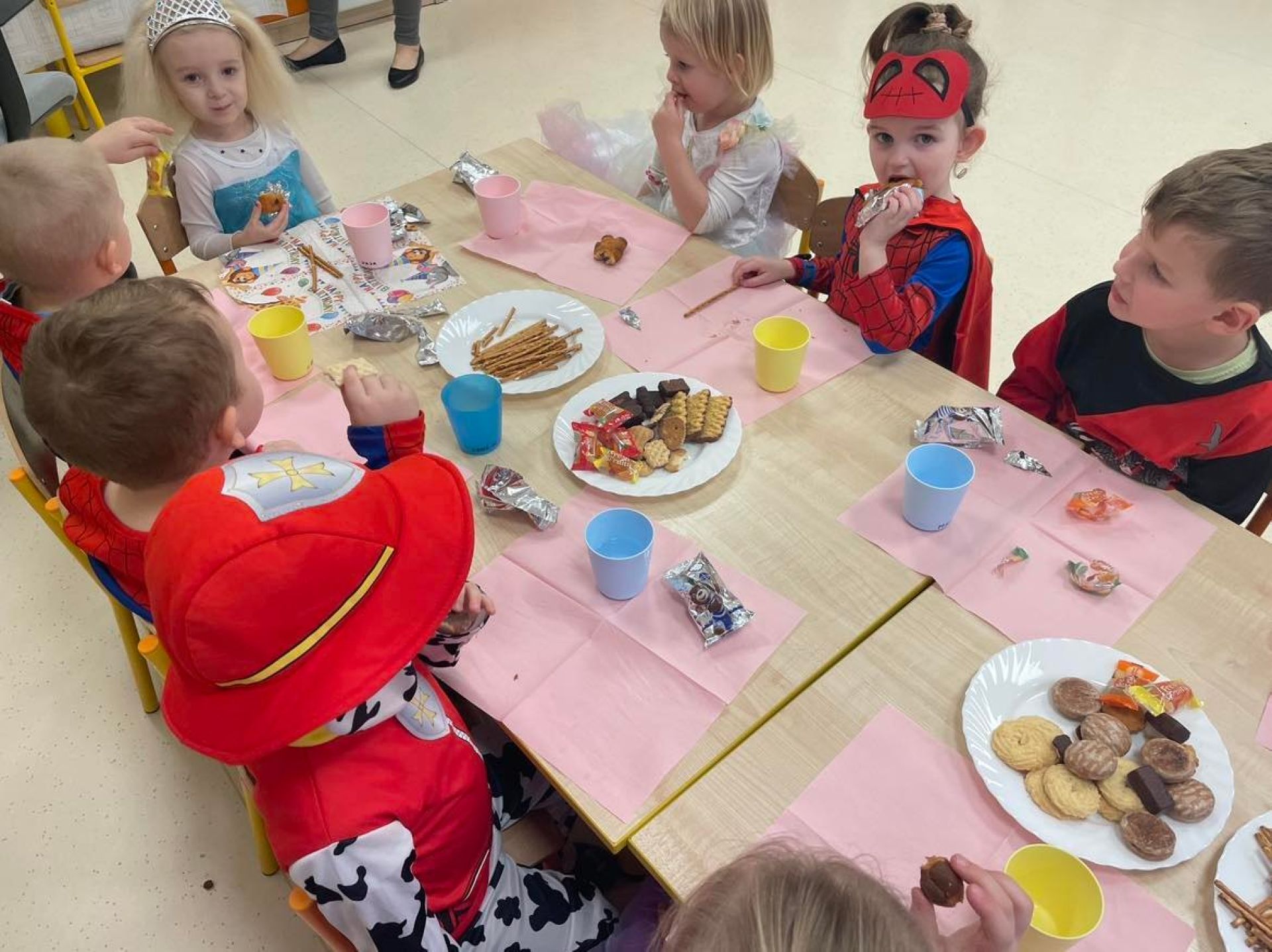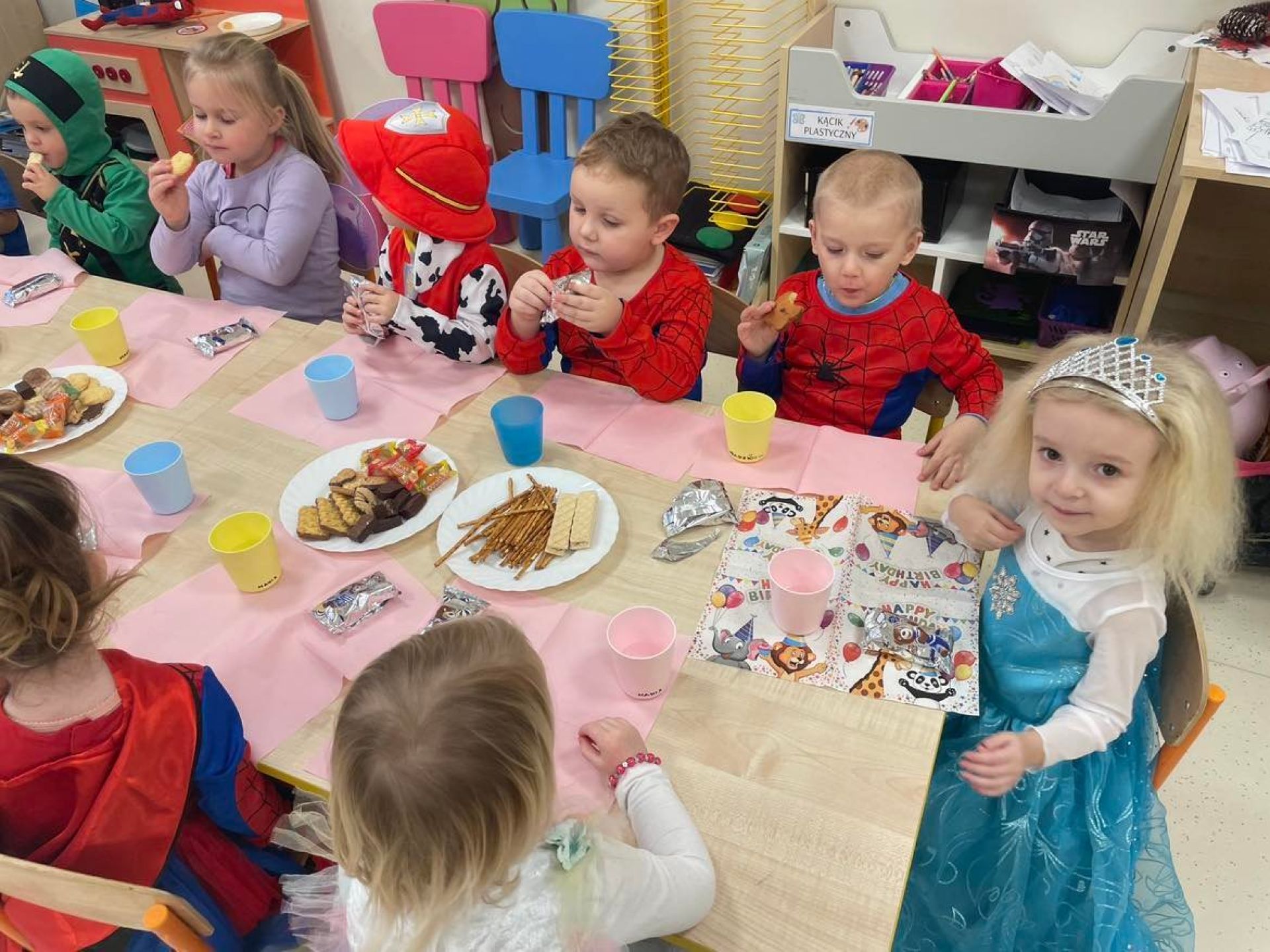 W dniu dzisiejszym wszystkie dzieci z przedszkola miały bal karnawałowy. Dzieci były pieknie przebrane, chętnie brały udział w zabach,które prowadził Bano Show. Na zakonczenie wspaniałej zabawy czekał na dzieci słodki poczęstunek.