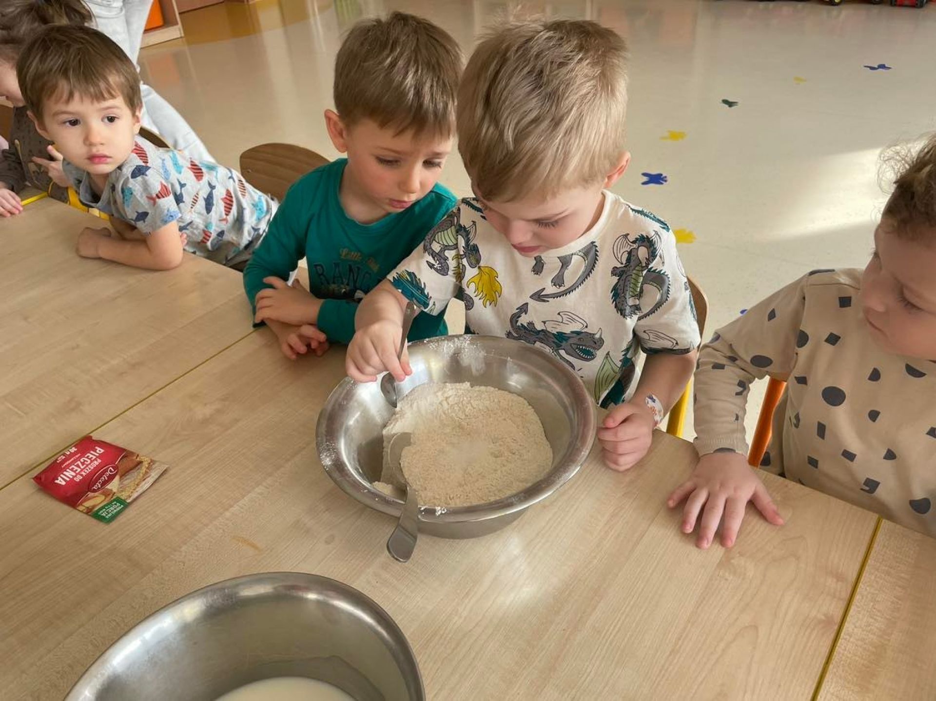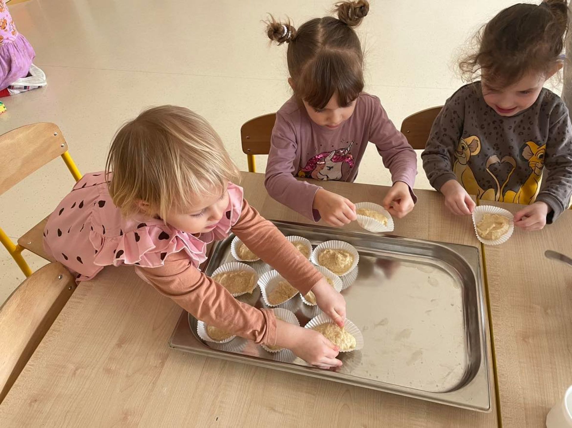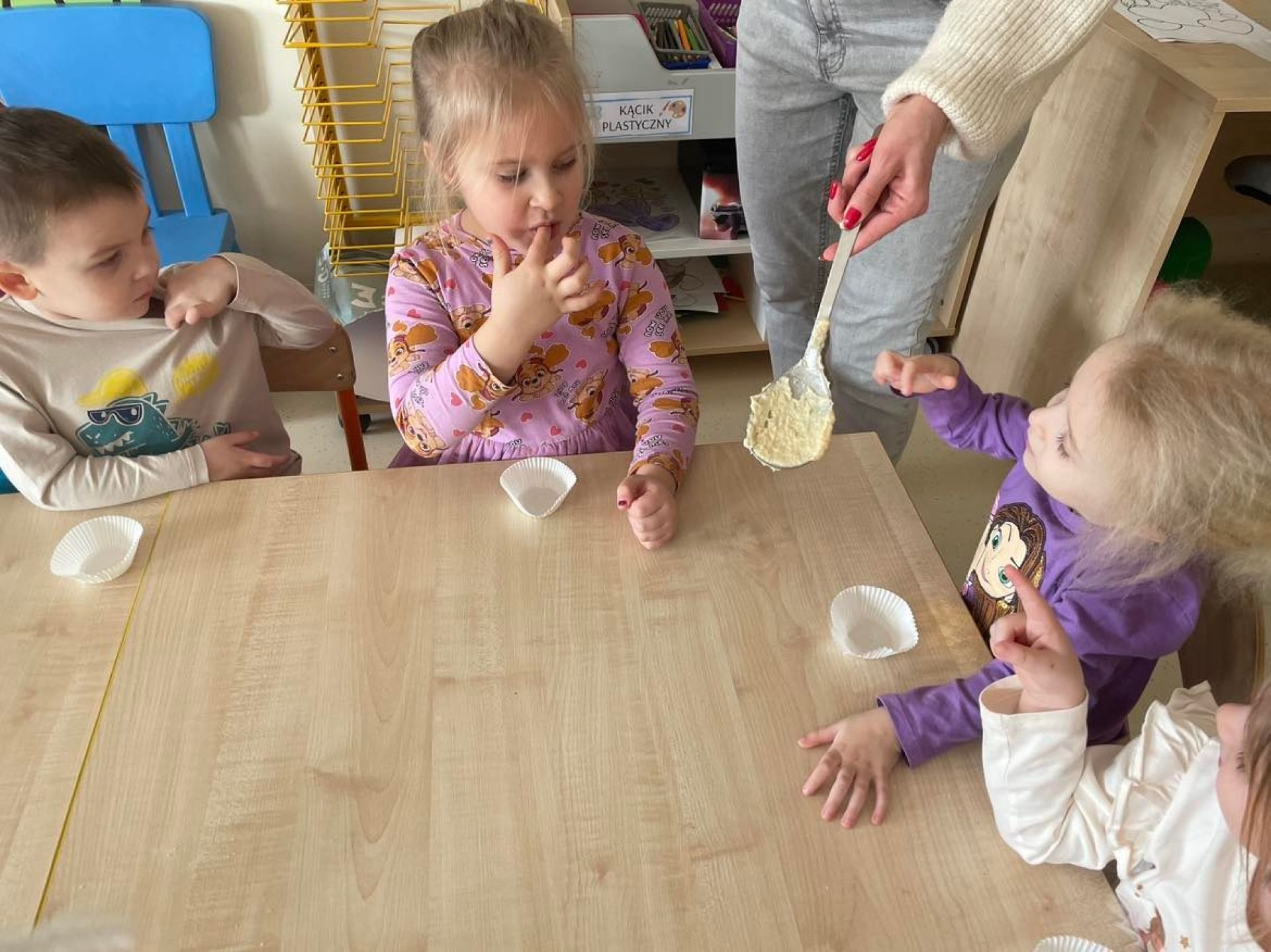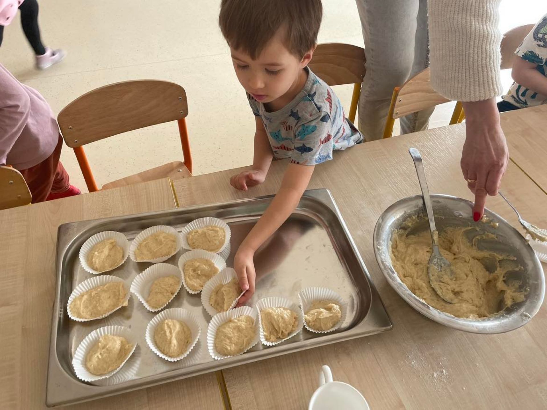 Motylki świętowały dziś tłusty czwartek wypiekając przepyszne babeczki waniliowe. Dzieci uczestniczyły w tworzeniu ciasta na babeczki, pomagały w sypaniu mąki oraz cukru, nalewały mleko ,poznawały zapach wanilii. Wszystkie dzieci były również poznać naszą przedszkolną kuchnię, widziały w jakim piekarniku babeczki się piekły. Jak już wszystko było gotowe,babeczki z wielkim apetytem zostały zjedzone. Na podwieczorek każdy przedszkolak otrzymał do zjedzenia pączka. Był to bardzo smakowity dzień.