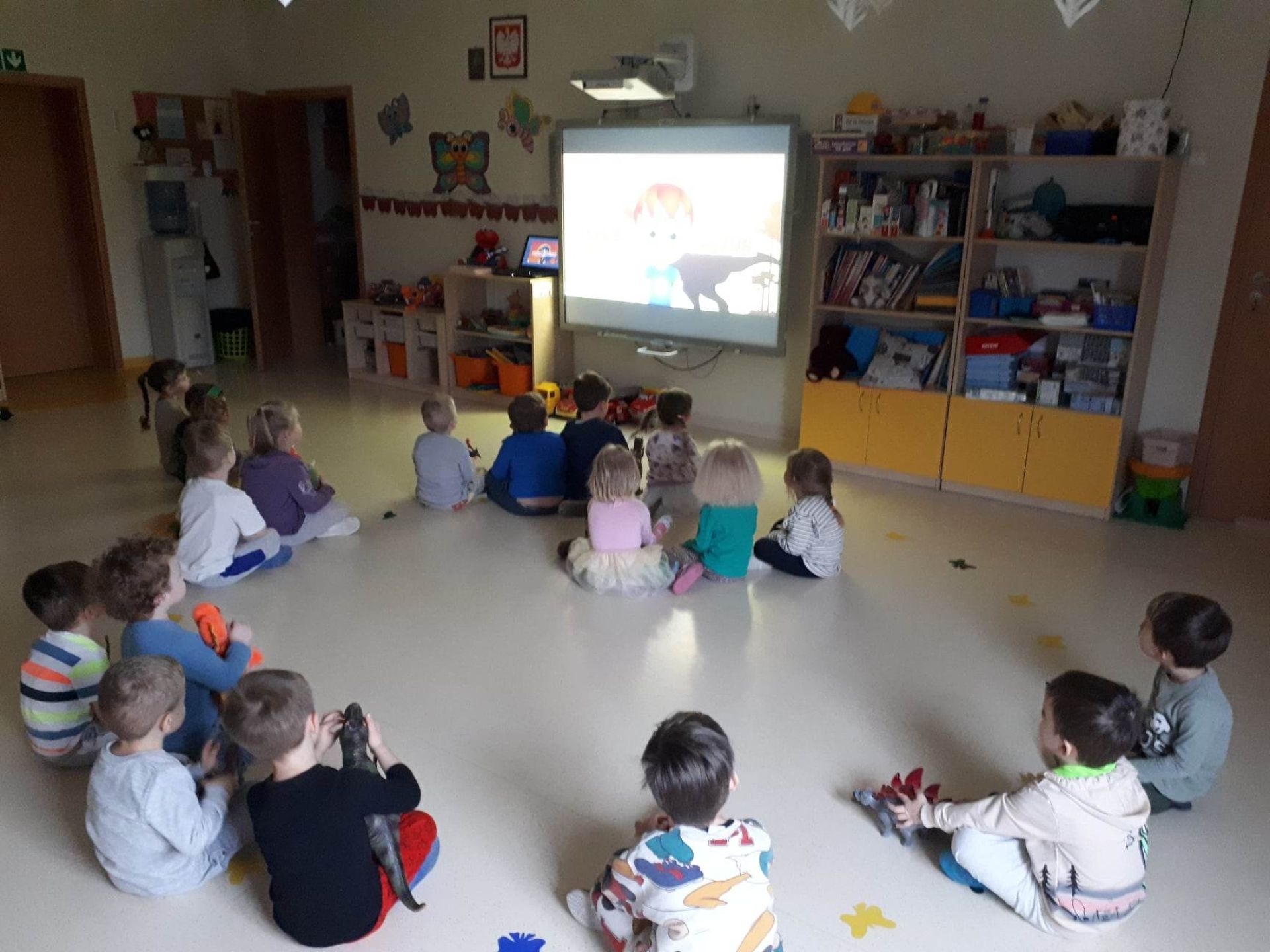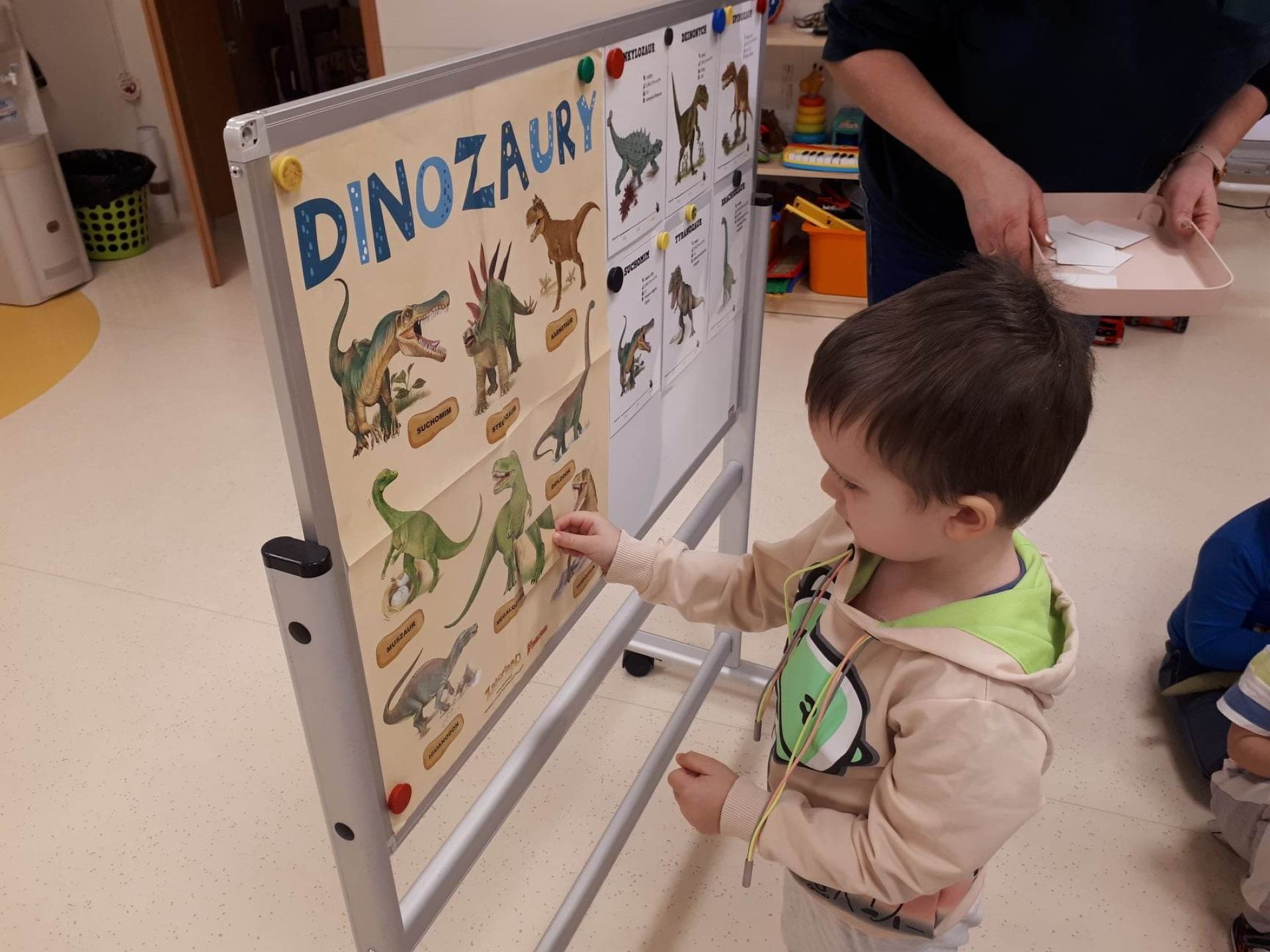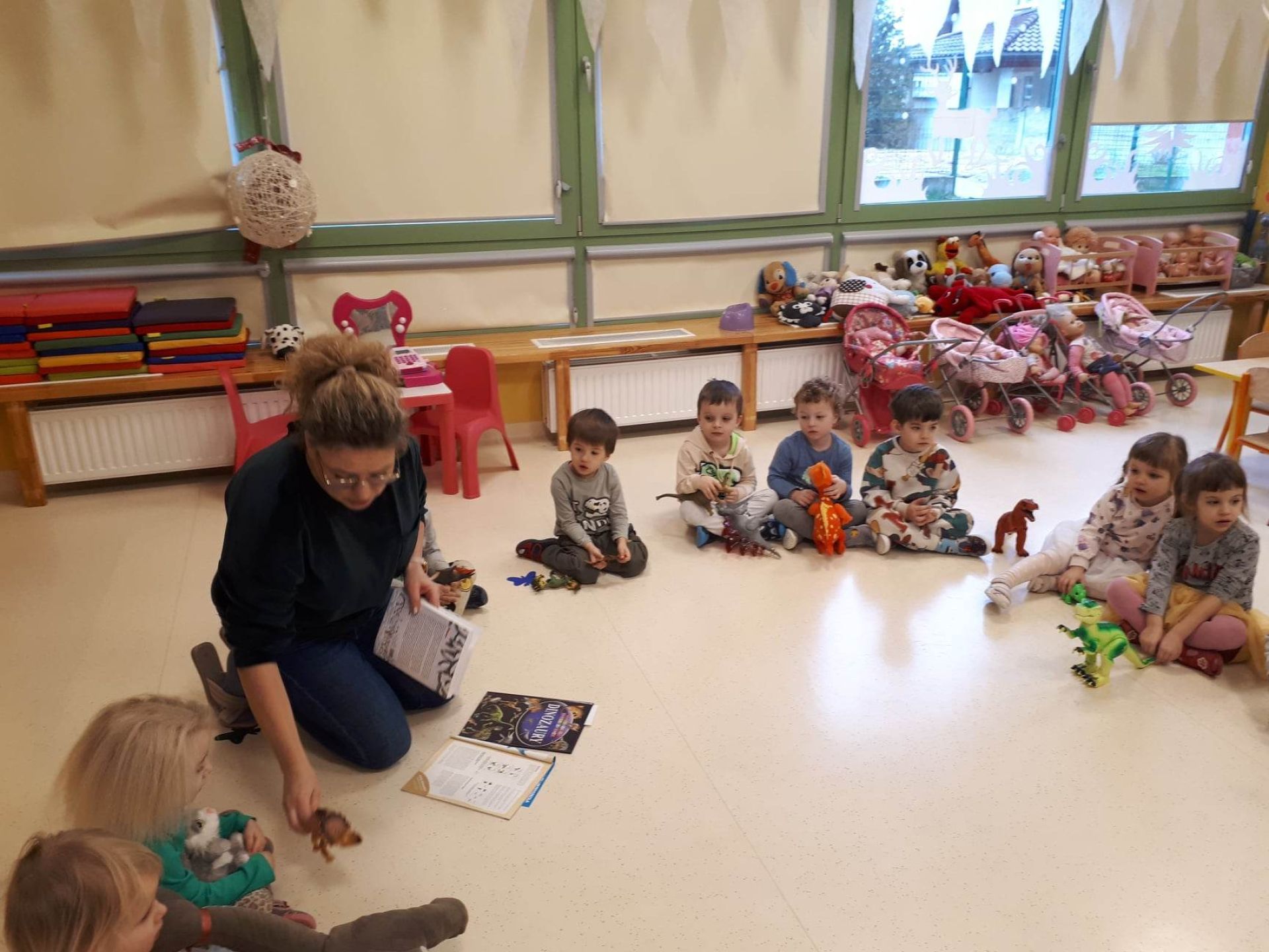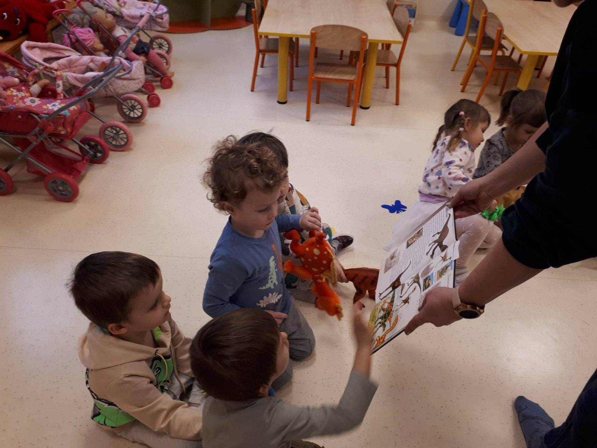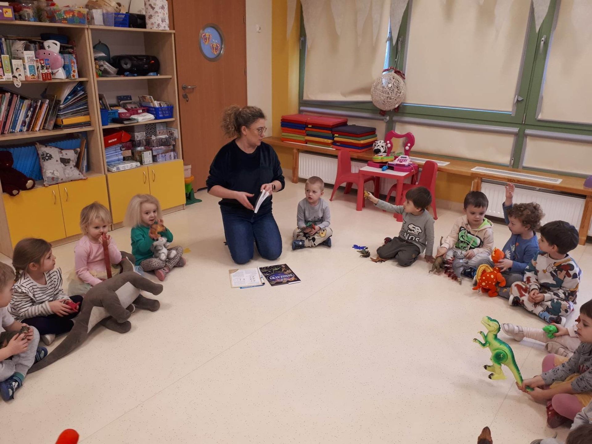 W dniu dzisiejszym Motylki obchodziły Światowy Dzień Dinozaura. Dzieci poznały historię dinozaurów, bawiły się w paleontologów, tańczyły ze swoimi dinozaurami. Dzięki wspólnej pracy powstał gigantyczny Diplodok który zadomowił się na drzwiach naszej sali. Na zakończenie każde dziecko miało zrobione zdjęcie w masce i opasce dinozaura.