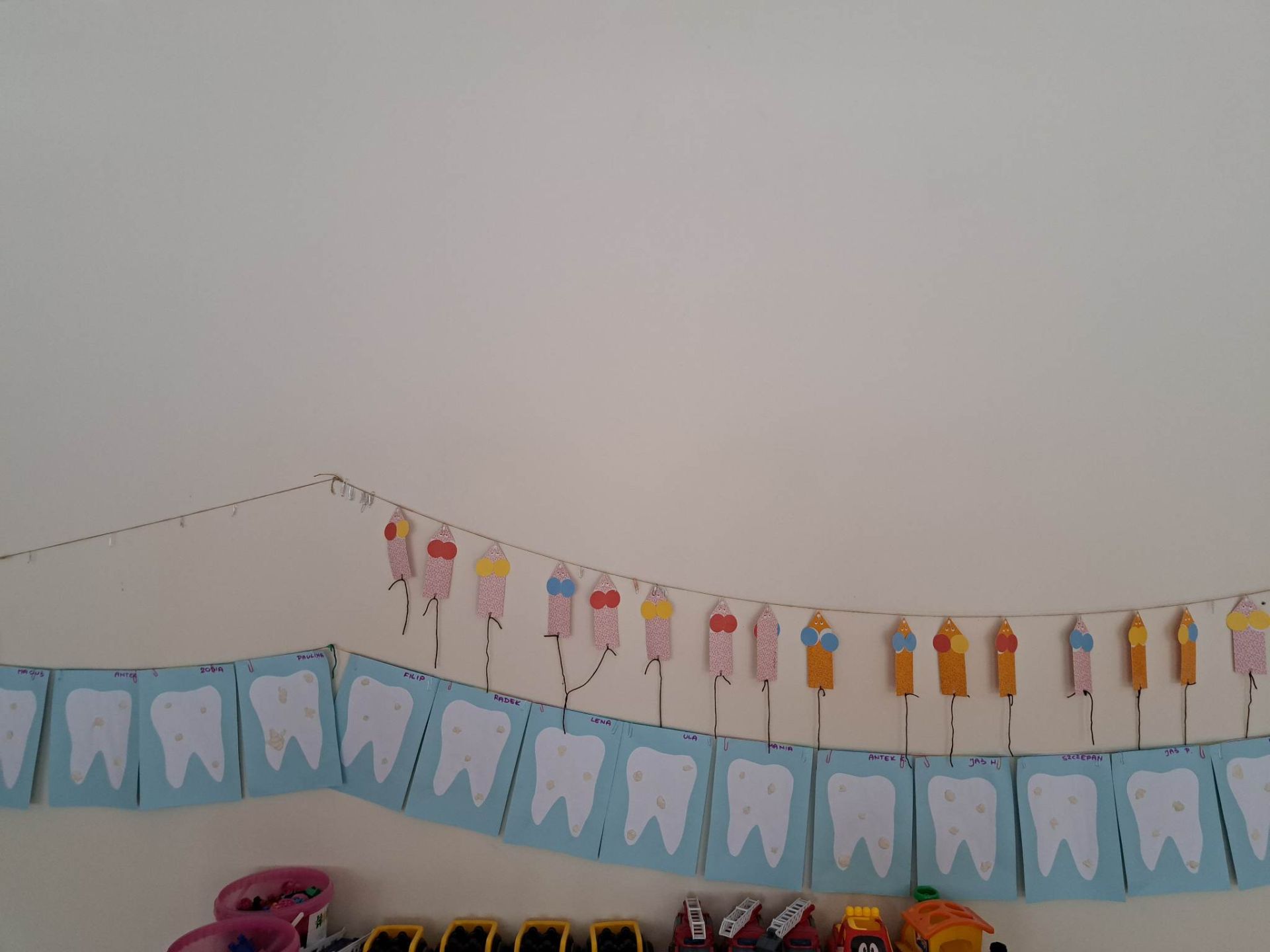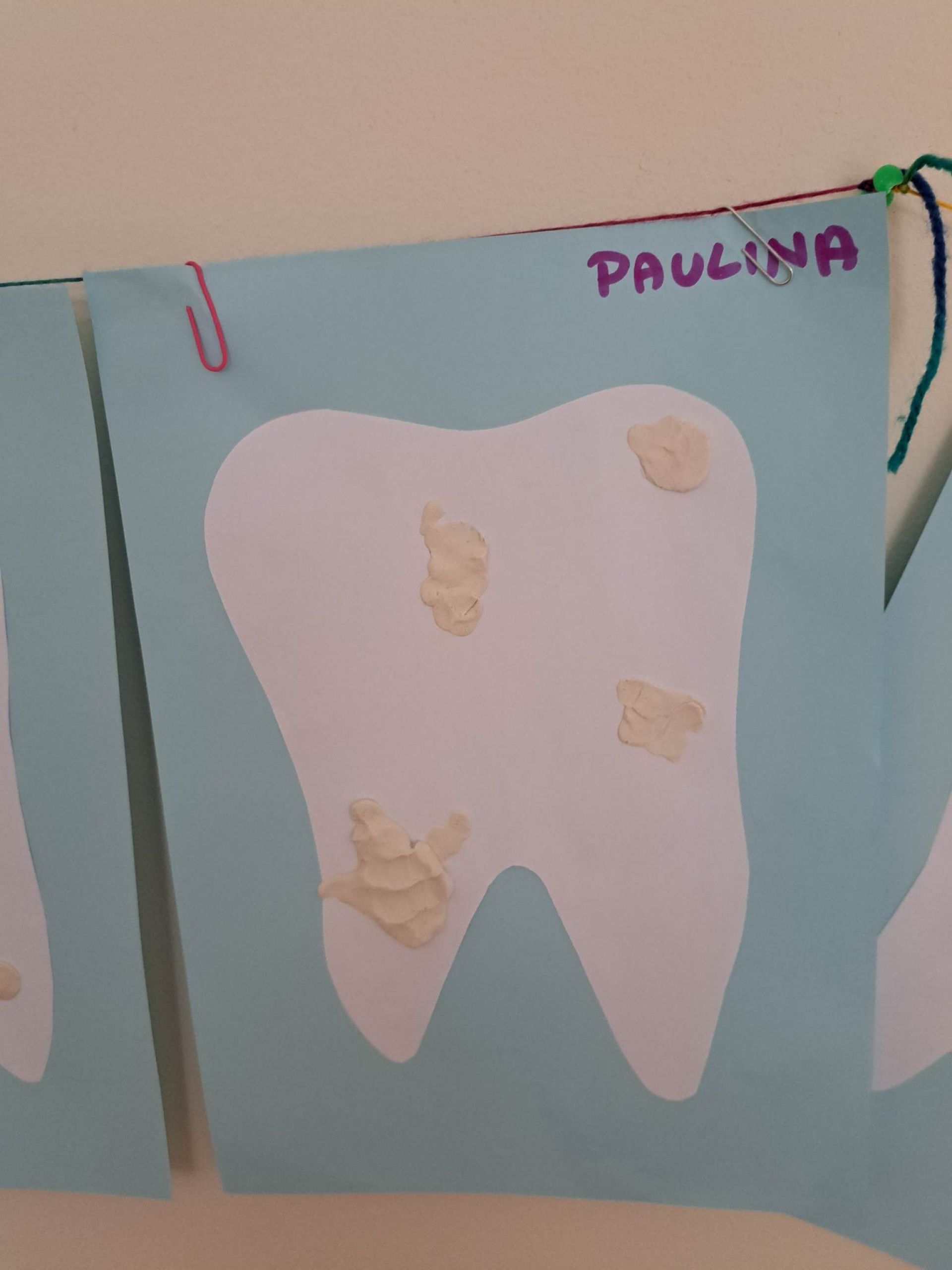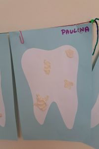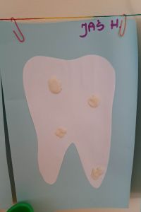 W dniu dzisiejszym Motylki obchodziy Dzień Dentysty. Dzieci poznały zawód dentysty , dowiedziały się jak dbać o zęby i wykonały prace plastyczne zaklejając w zębach dziury plasteliną .