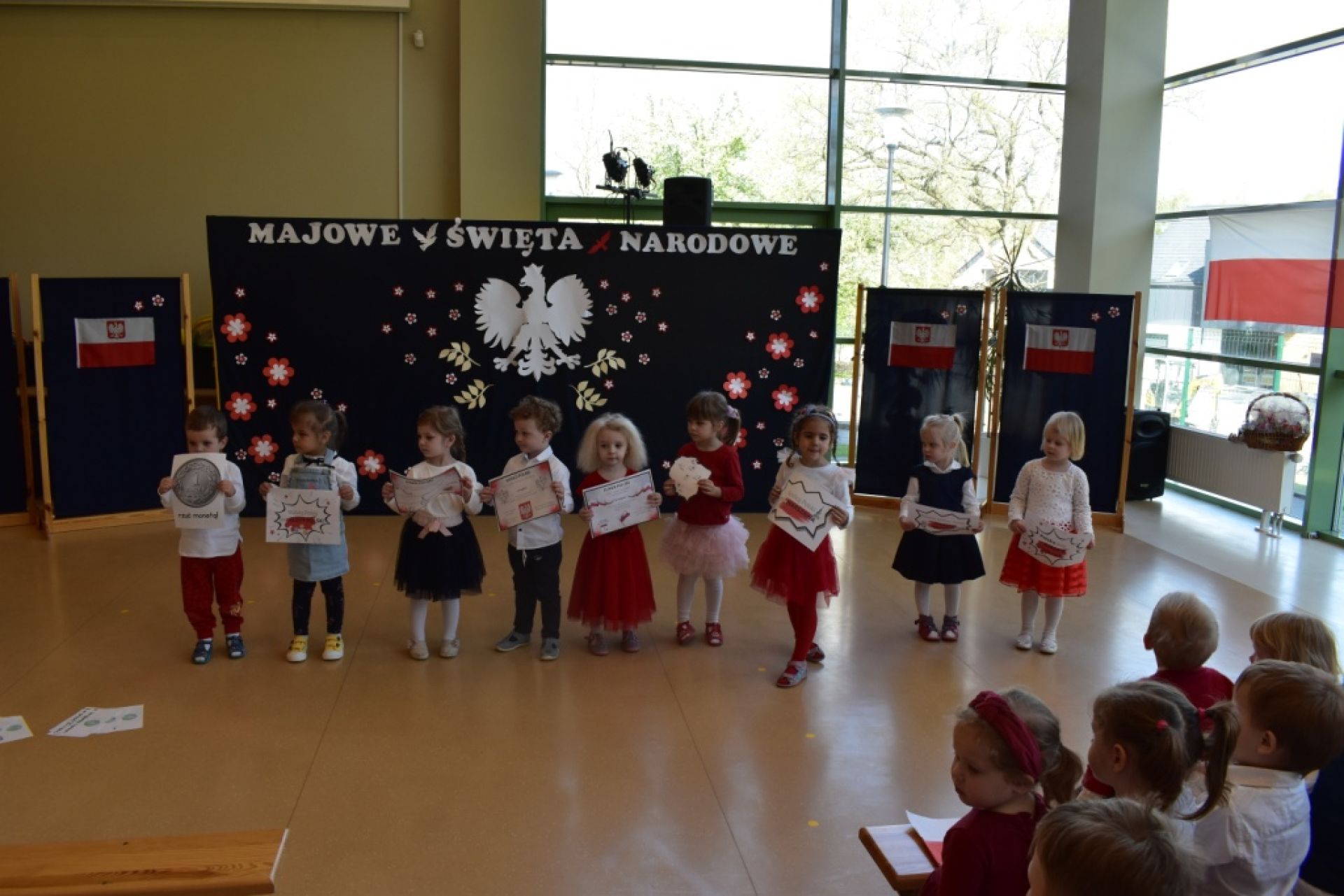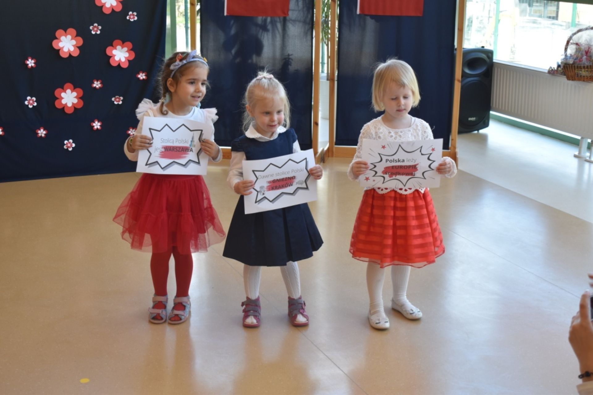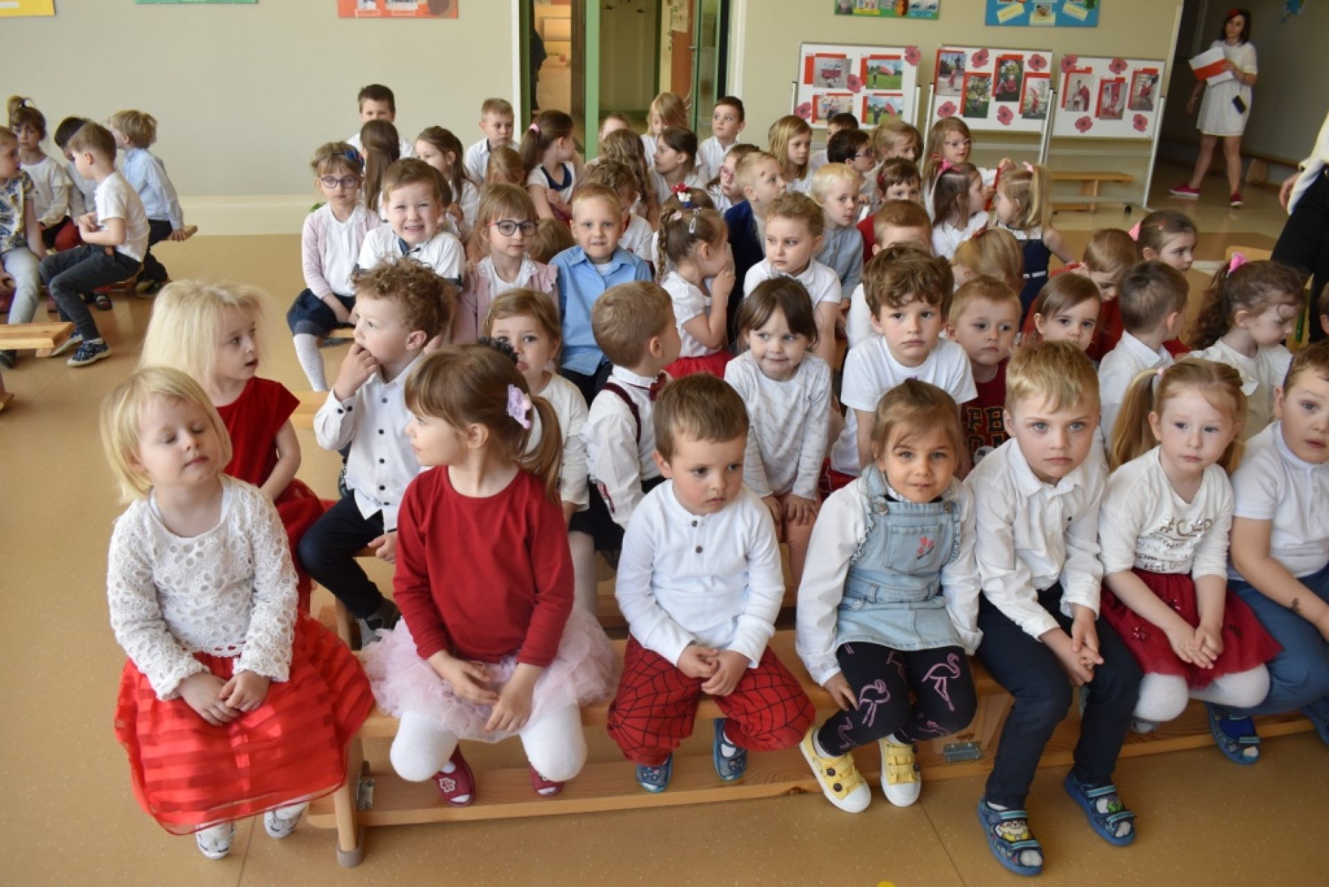 Dzieci uczestniczyły w uroczystości Dnia Flagi. Jeżyki zapoznały się z symbolami narodowymi i obchodzonym 2 maja świętem flagi państwowej, kształtowały postawy patriotyczne oraz poczucie szacunku do symboli narodowych.