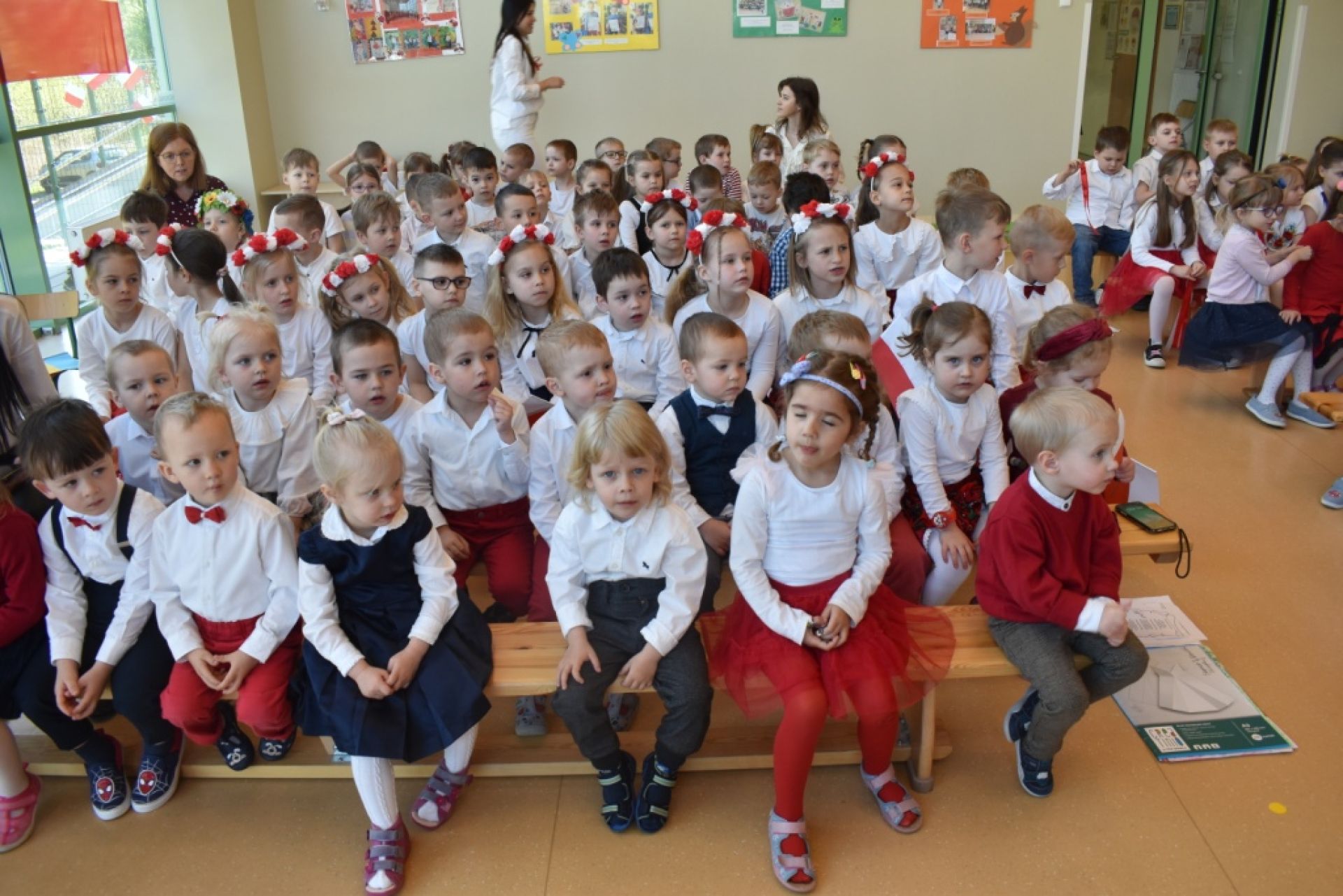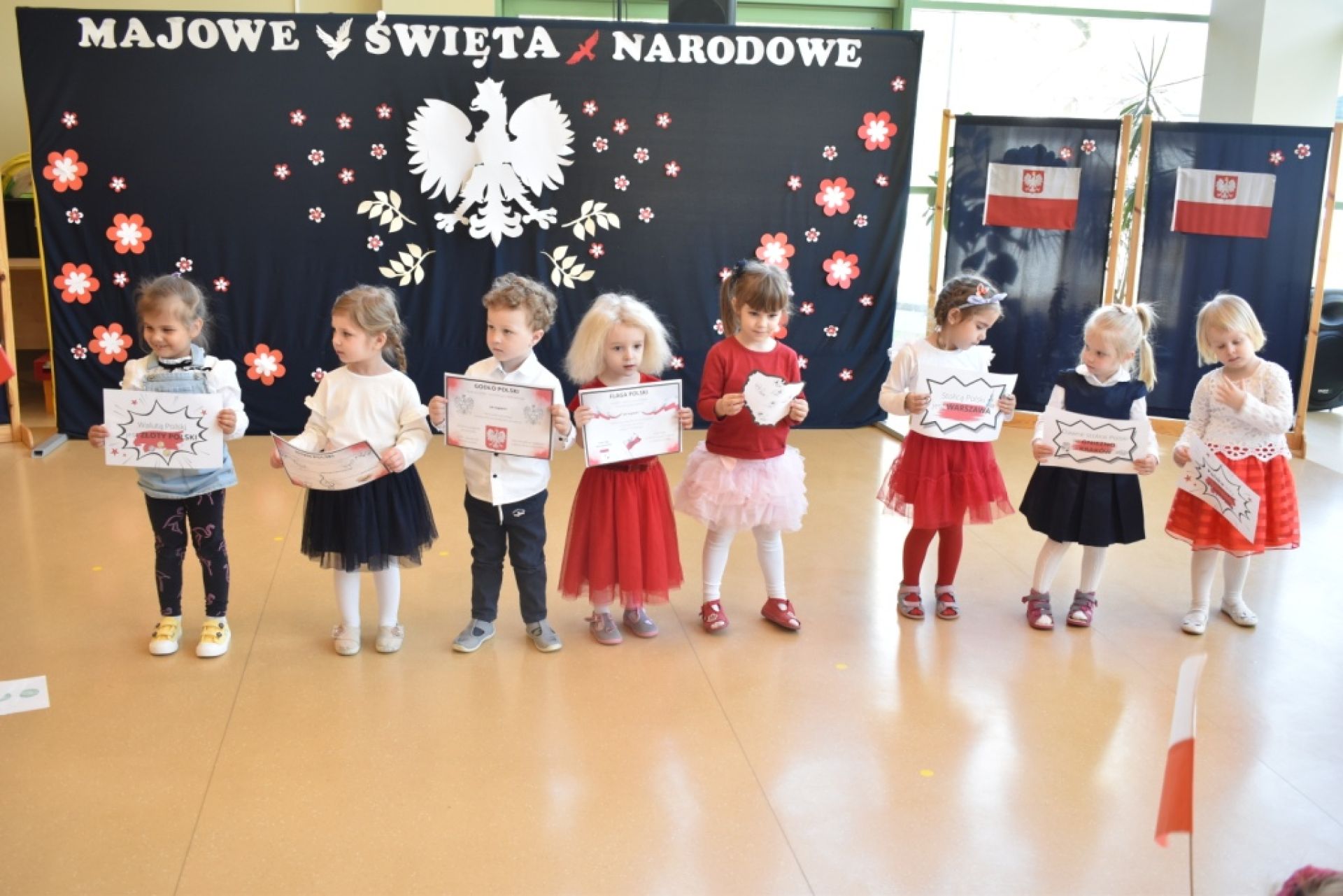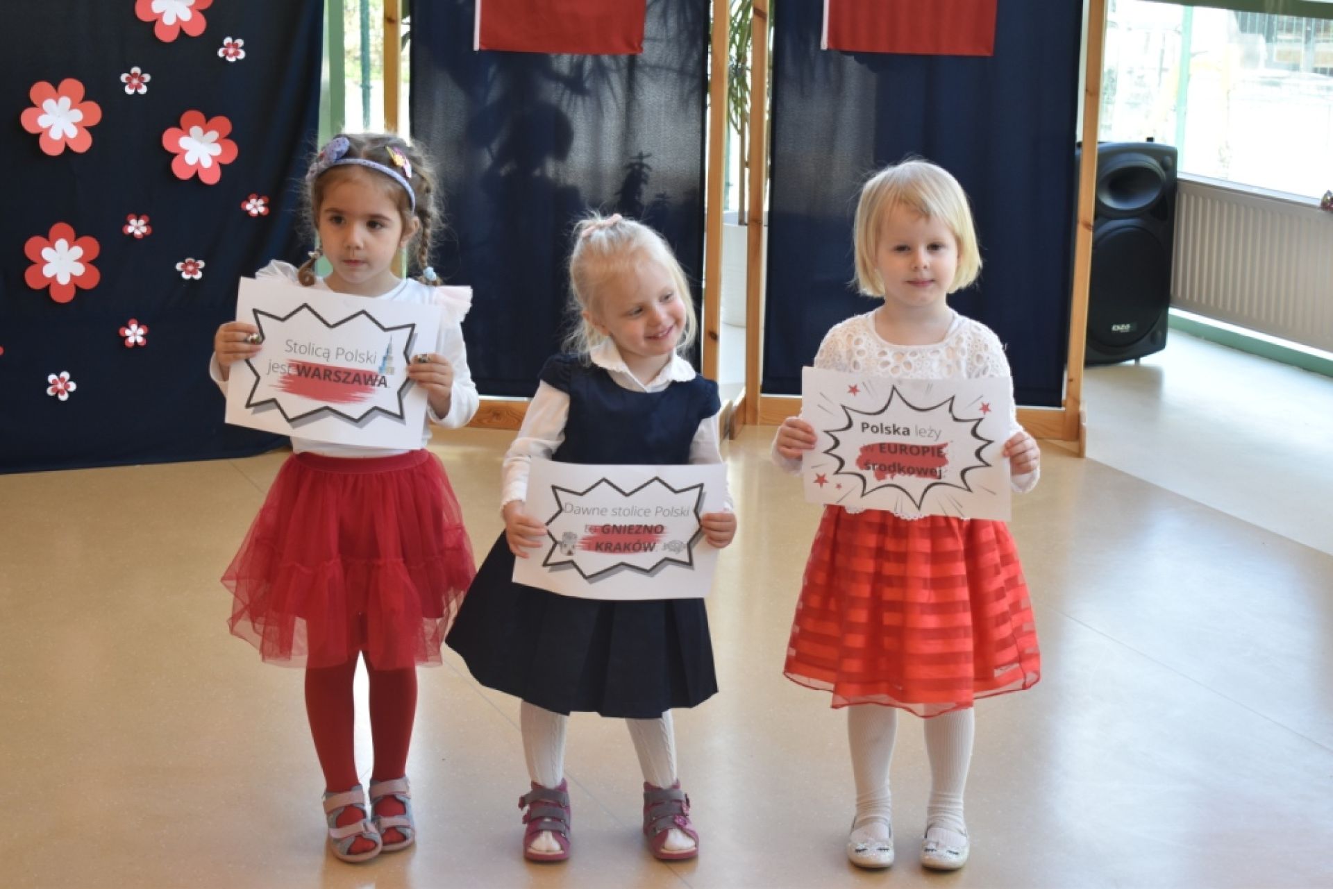 Dzieci uczestniczyły w uroczystości Dnia Flagi. Jeżyki zapoznały się z symbolami narodowymi i obchodzonym 2 maja świętem flagi państwowej, kształtowały postawy patriotyczne oraz poczucie szacunku do symboli narodowych.