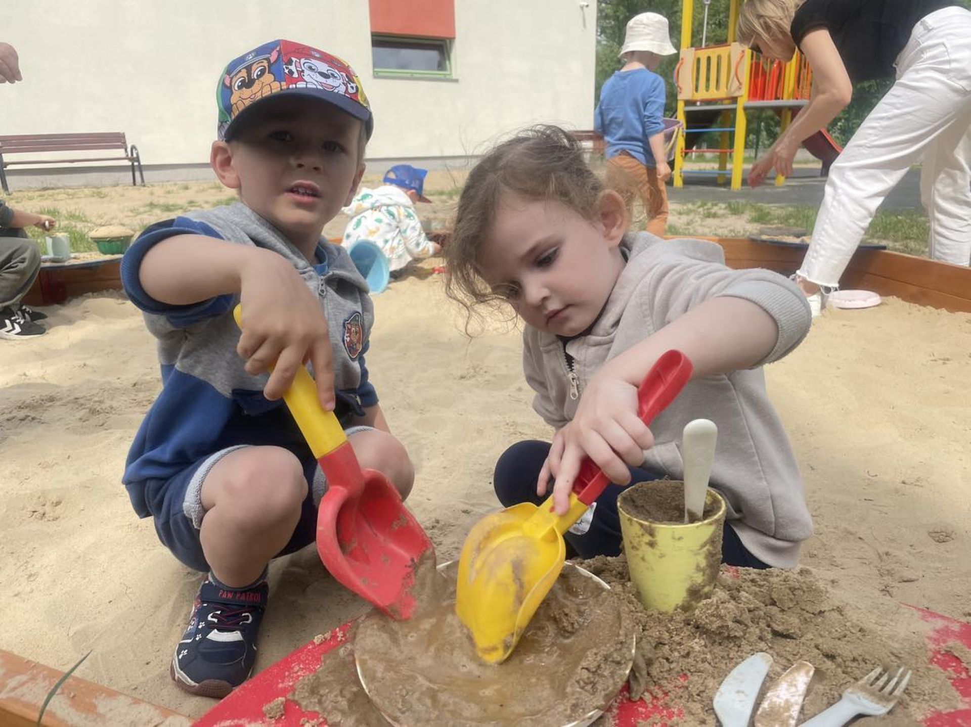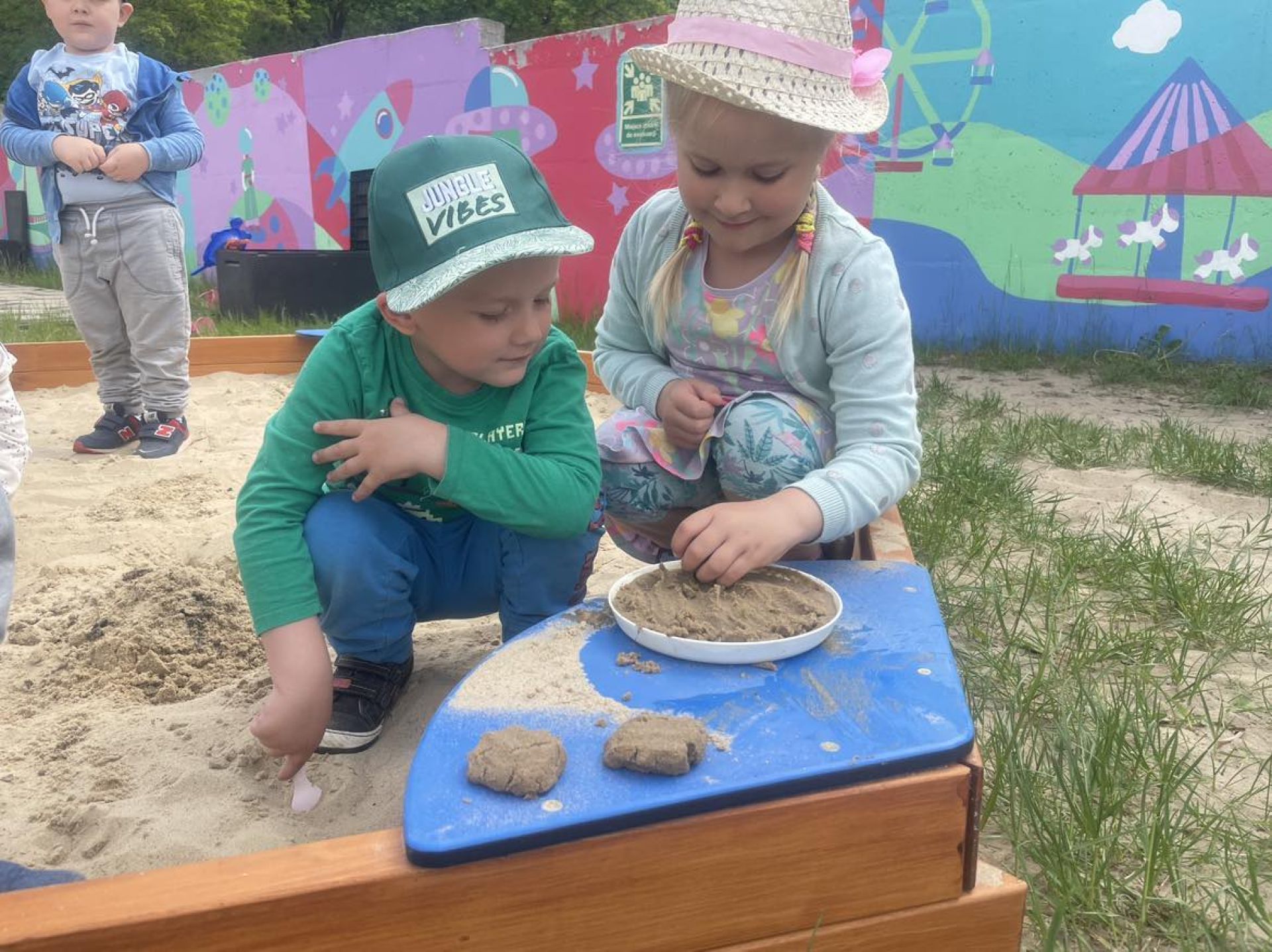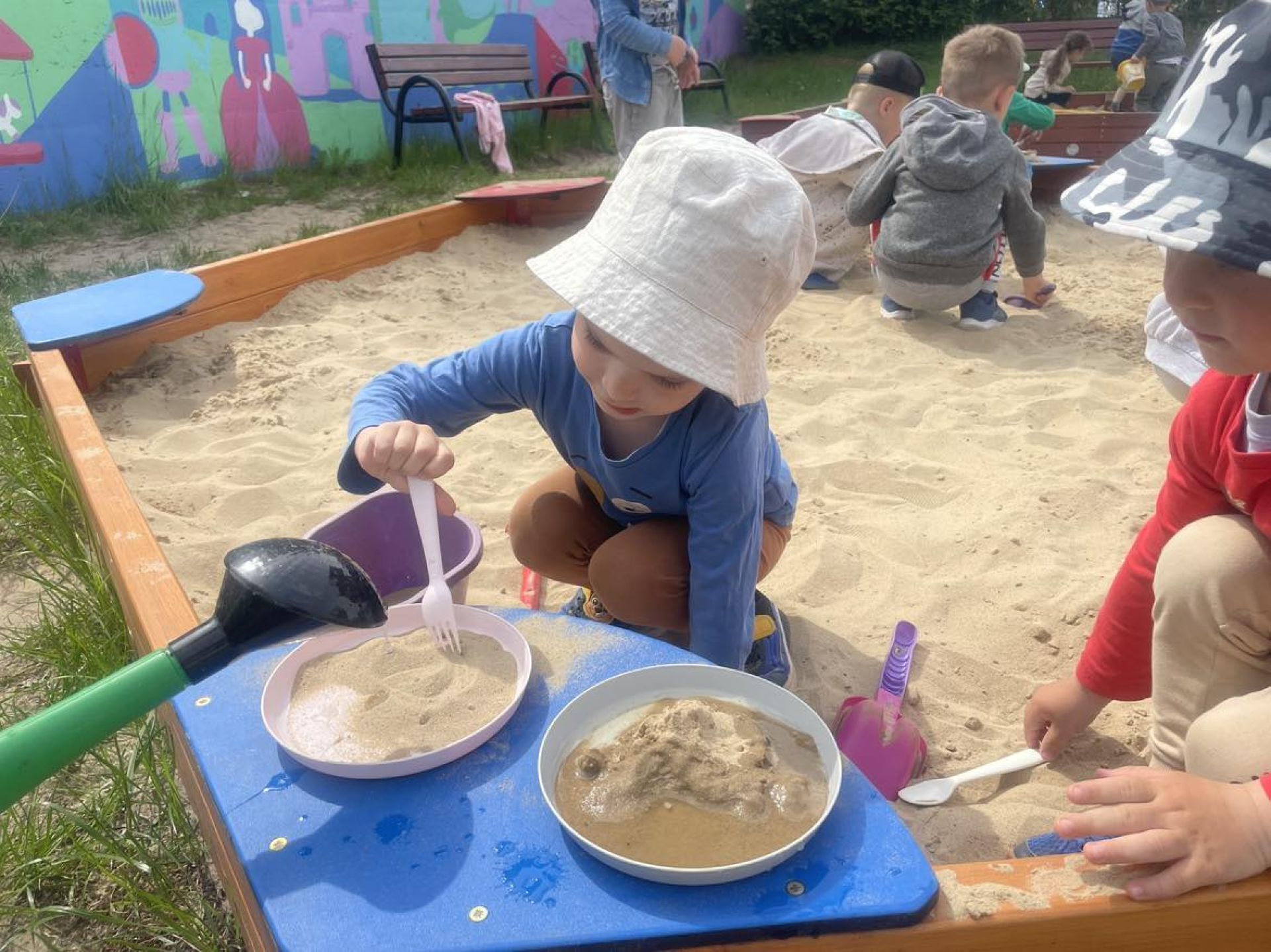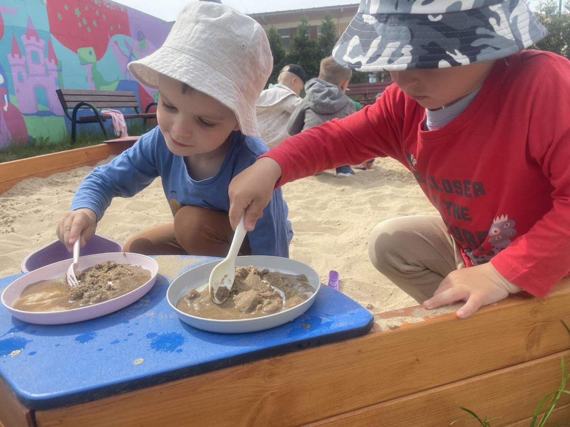 Dzis w ramach Projektu edukacyjnego " Z darami natury świat nie jest ponury" dzieci z grupy Motylki świetnie bawiły się "gotując" w kuchni błotnej.
