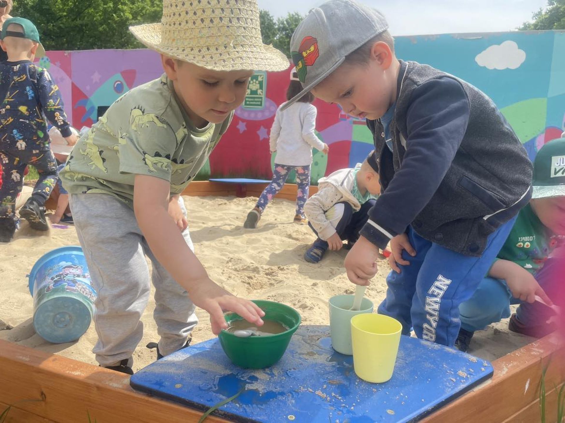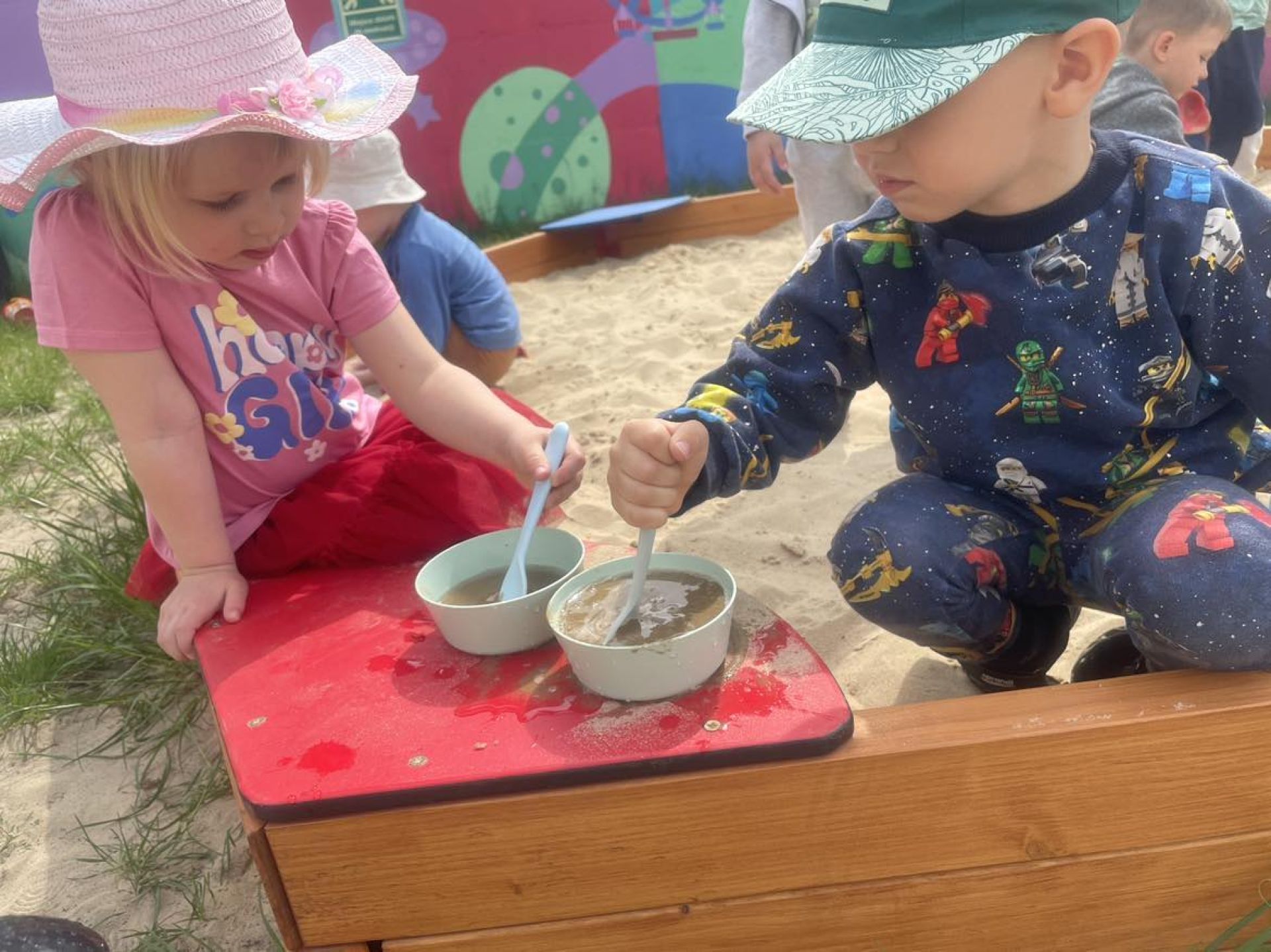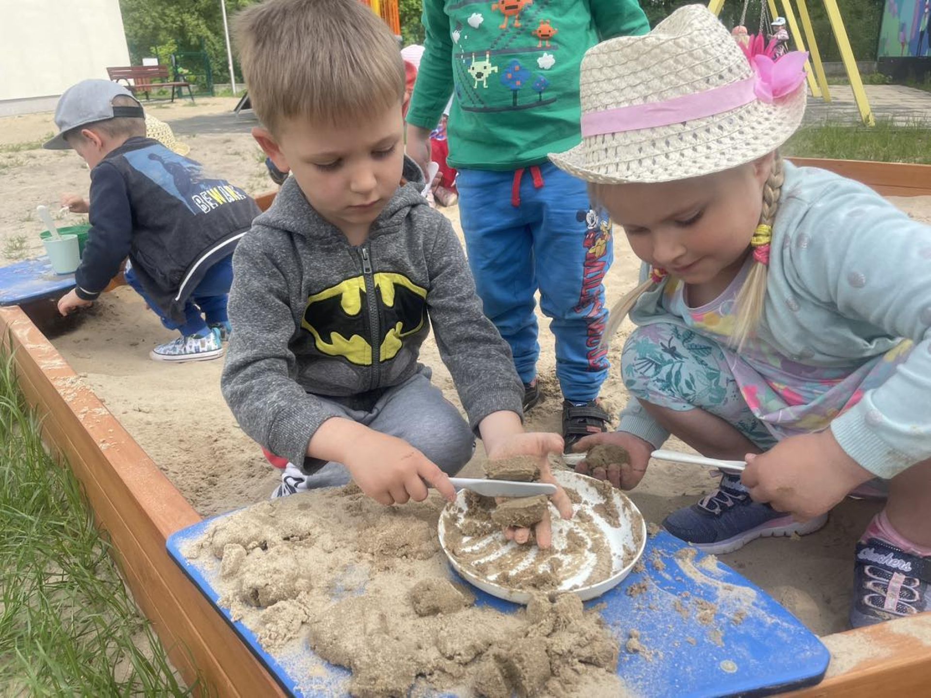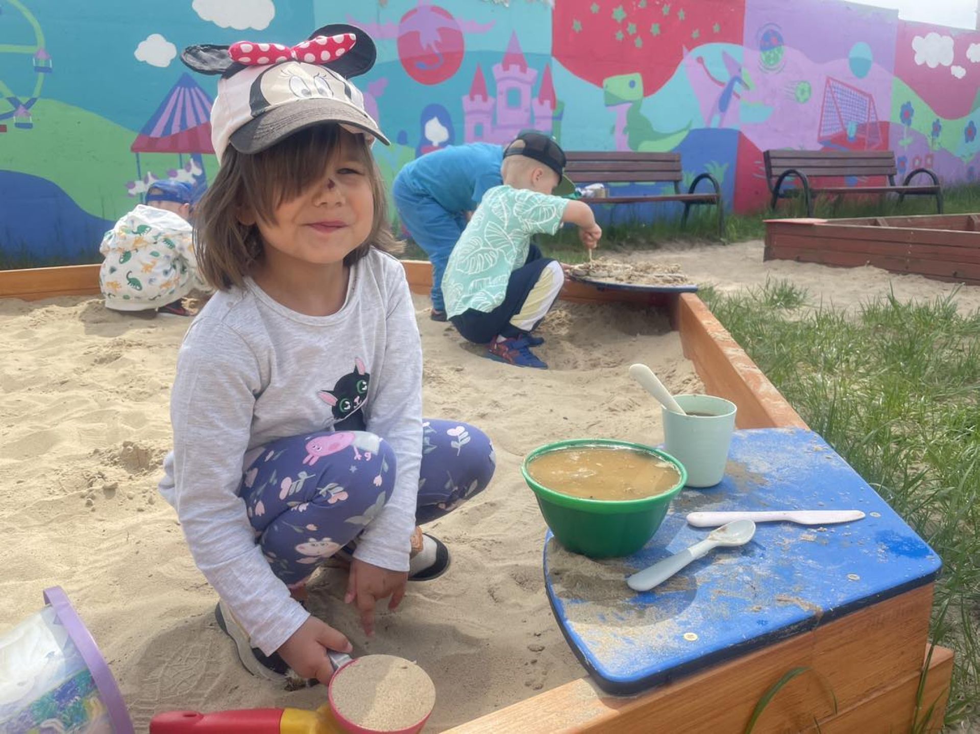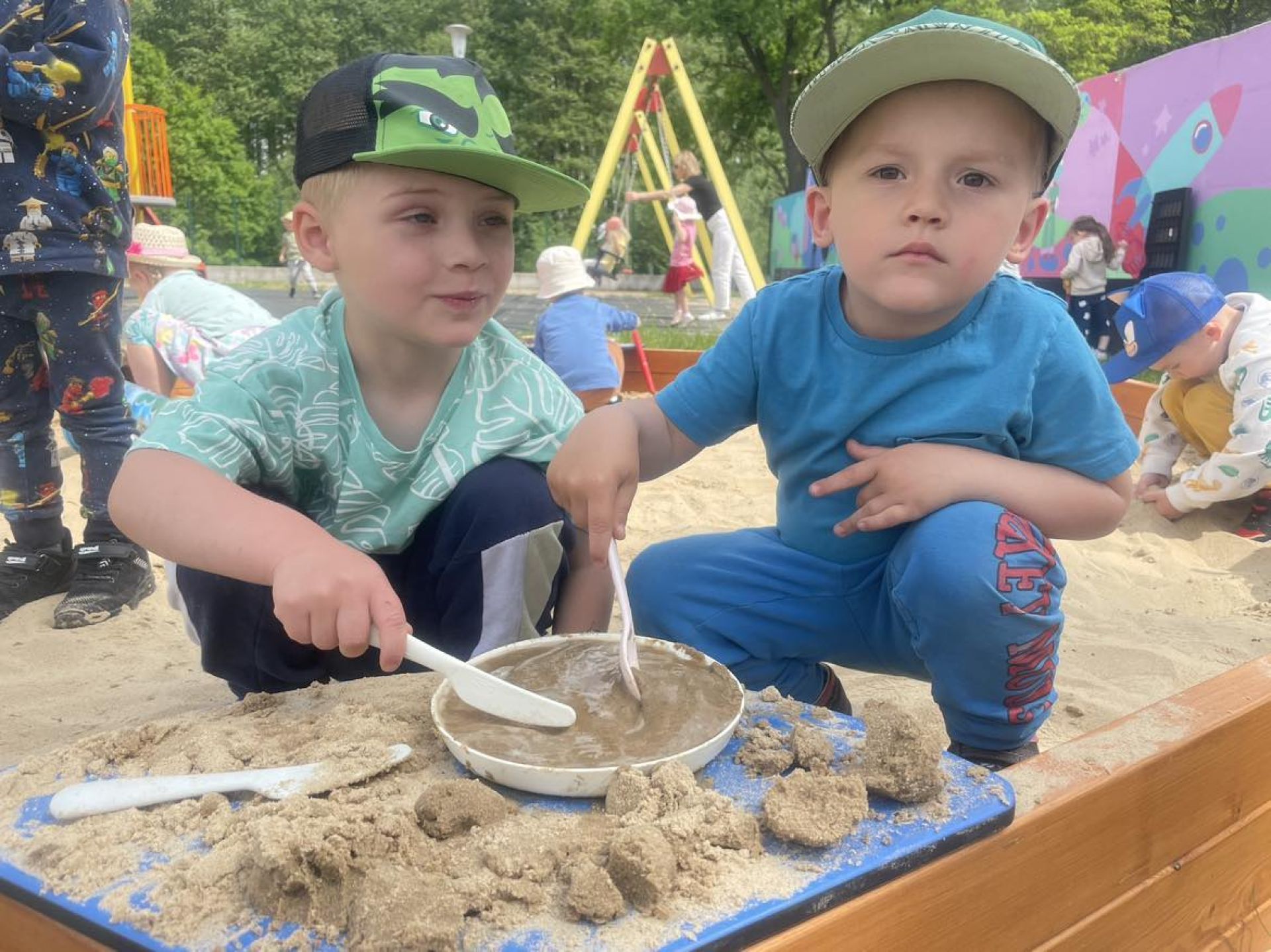 Dzis w ramach Projektu edukacyjnego " Z darami natury świat nie jest ponury" dzieci z grupy Motylki świetnie bawiły się "gotując" w kuchni błotnej.