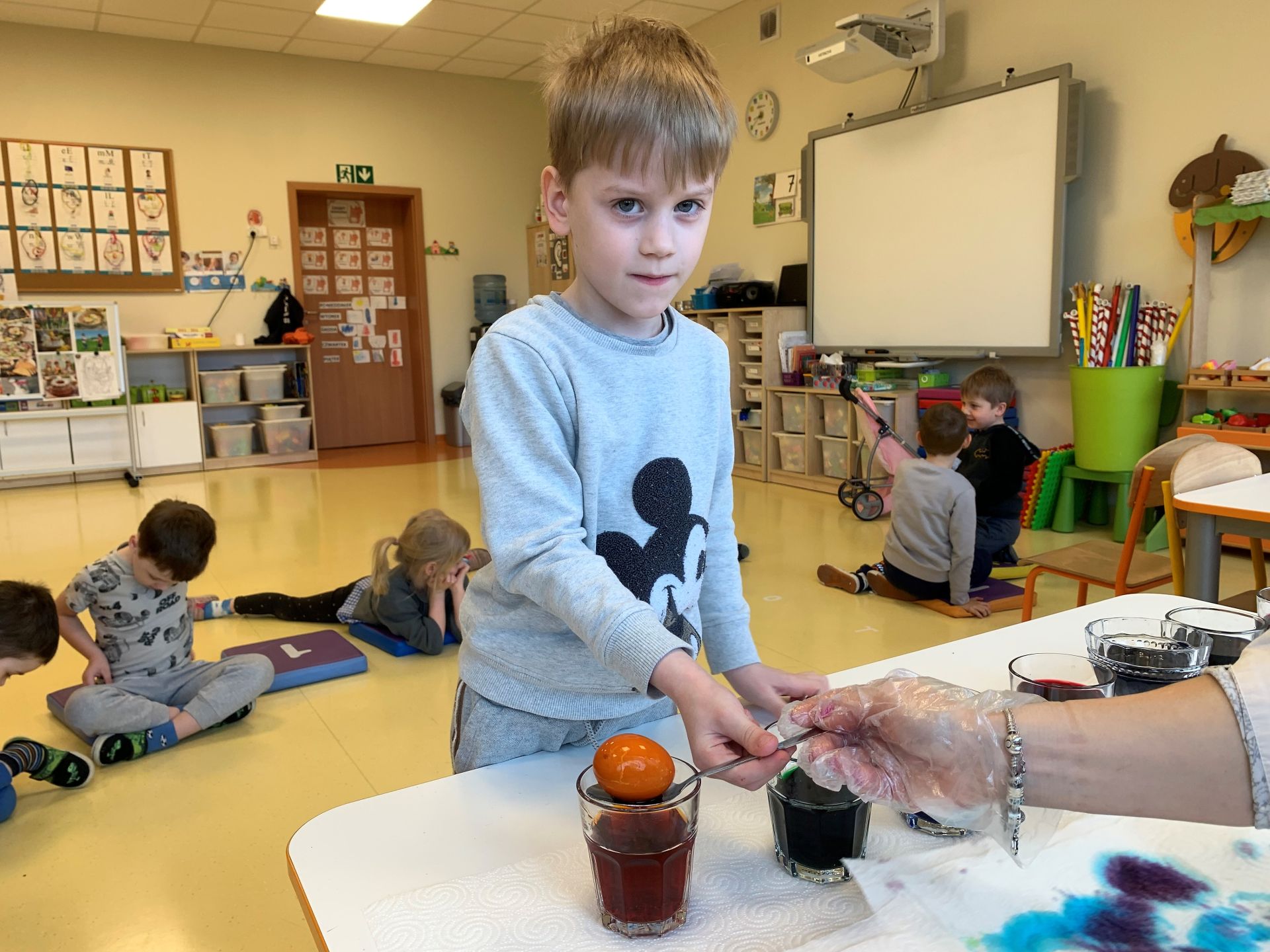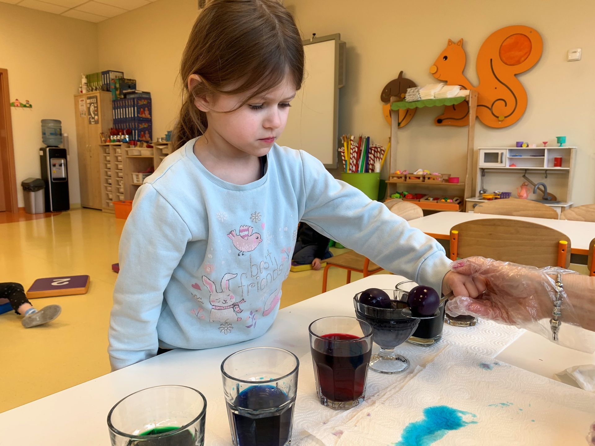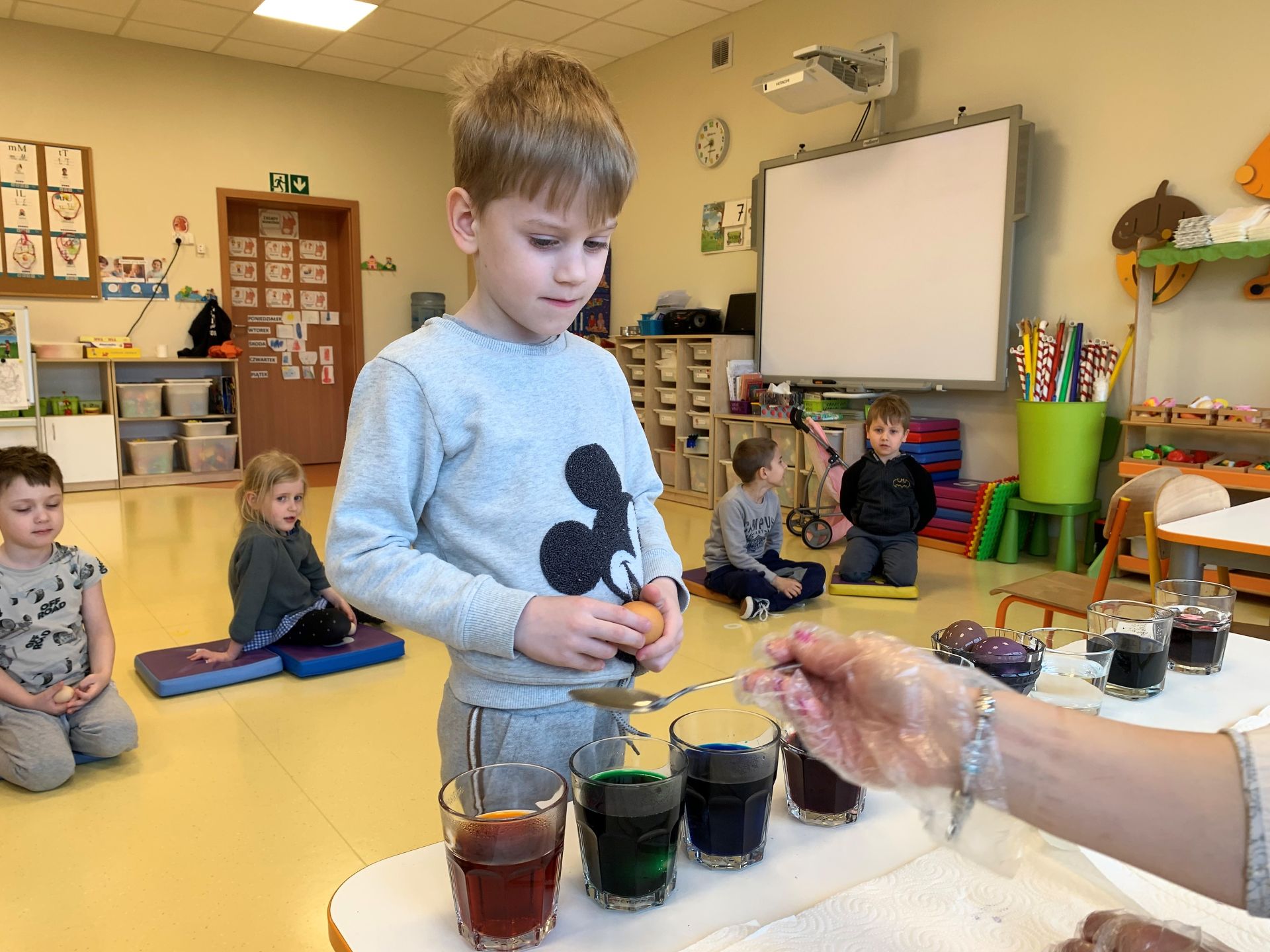 Dnia 7 kwietnia 2023 r. barwiliśmy jajka wielkanocne.