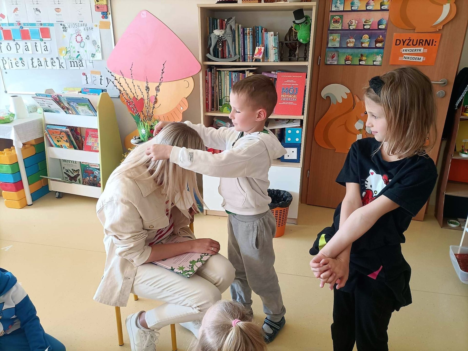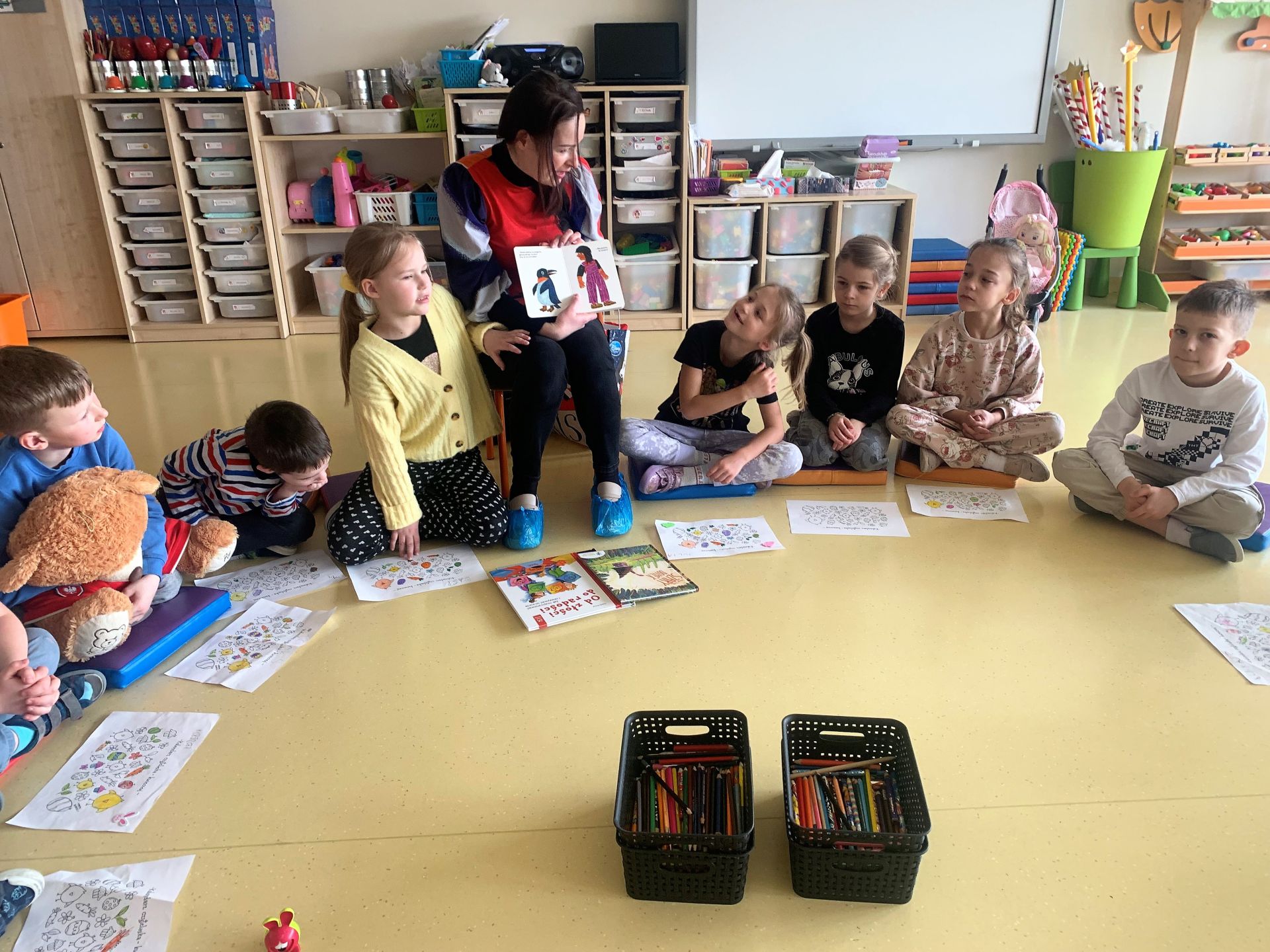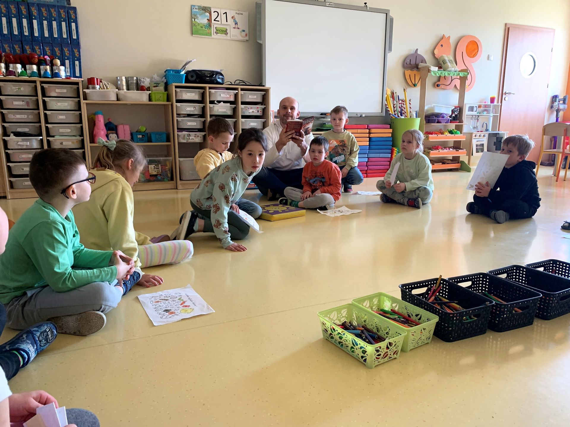 W kwietniu 2023 r. rozpoczęliśmy cykl spotkań z książką "Poczytajki z rodzicami". Chętni rodzice czytają dzieciom wybrane pozycje literatury dziecięcej. W nagrodę za każdą wysłuchaną opowieść dzieci kolorują jeden obrazek z "Kalendarza Czytelnika". Dziękujemy wszystkim za włączenie się do akcji i zachęcamy kolejnych rodziców.