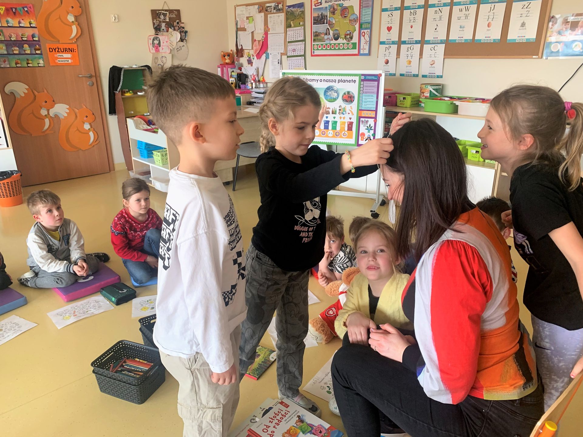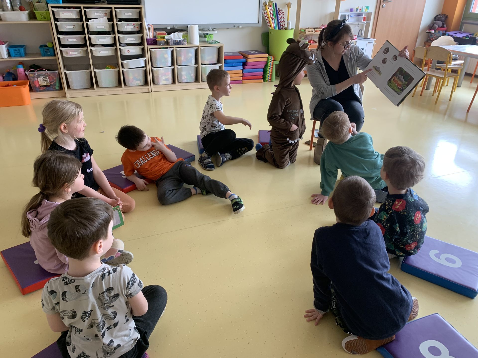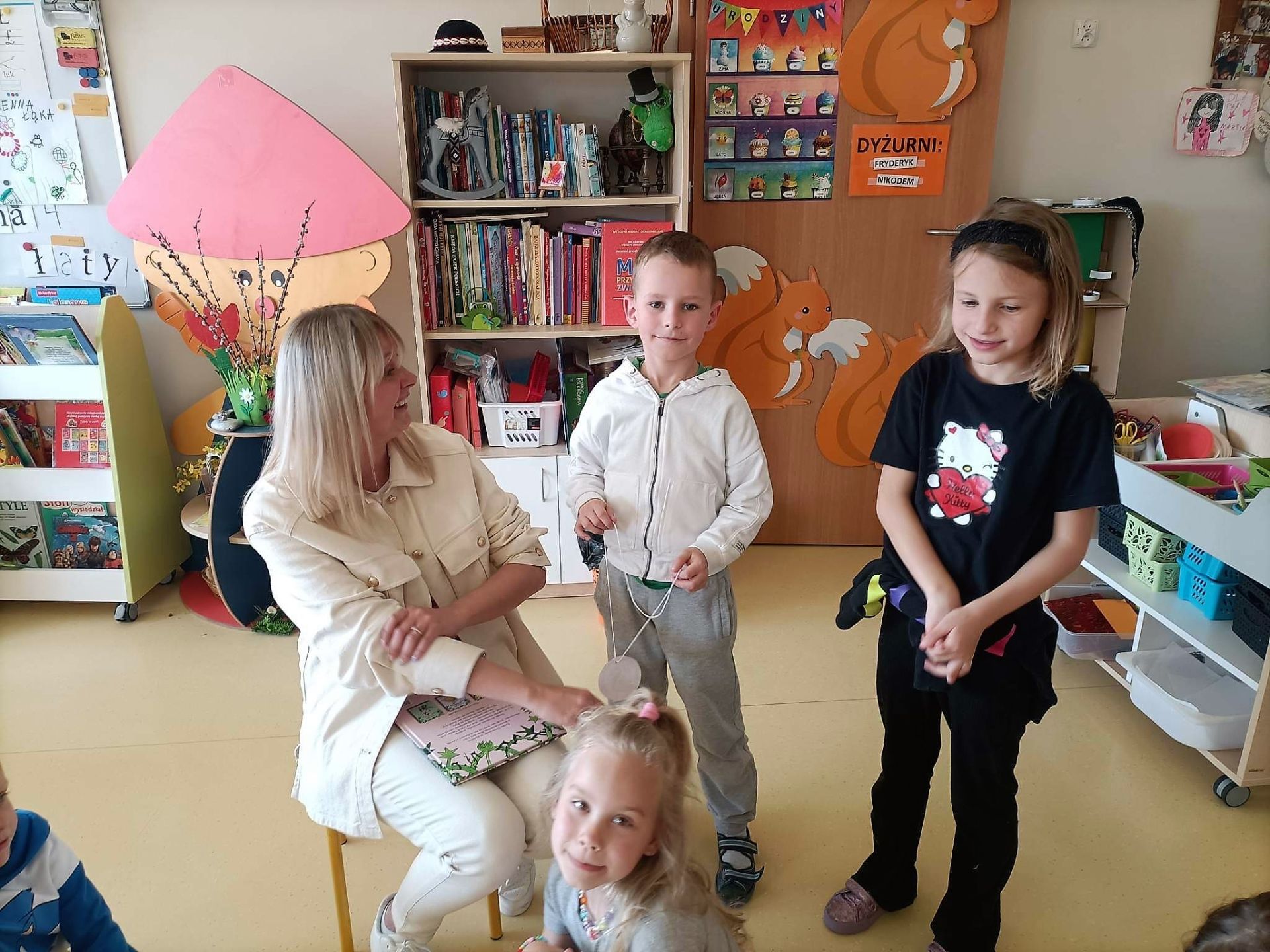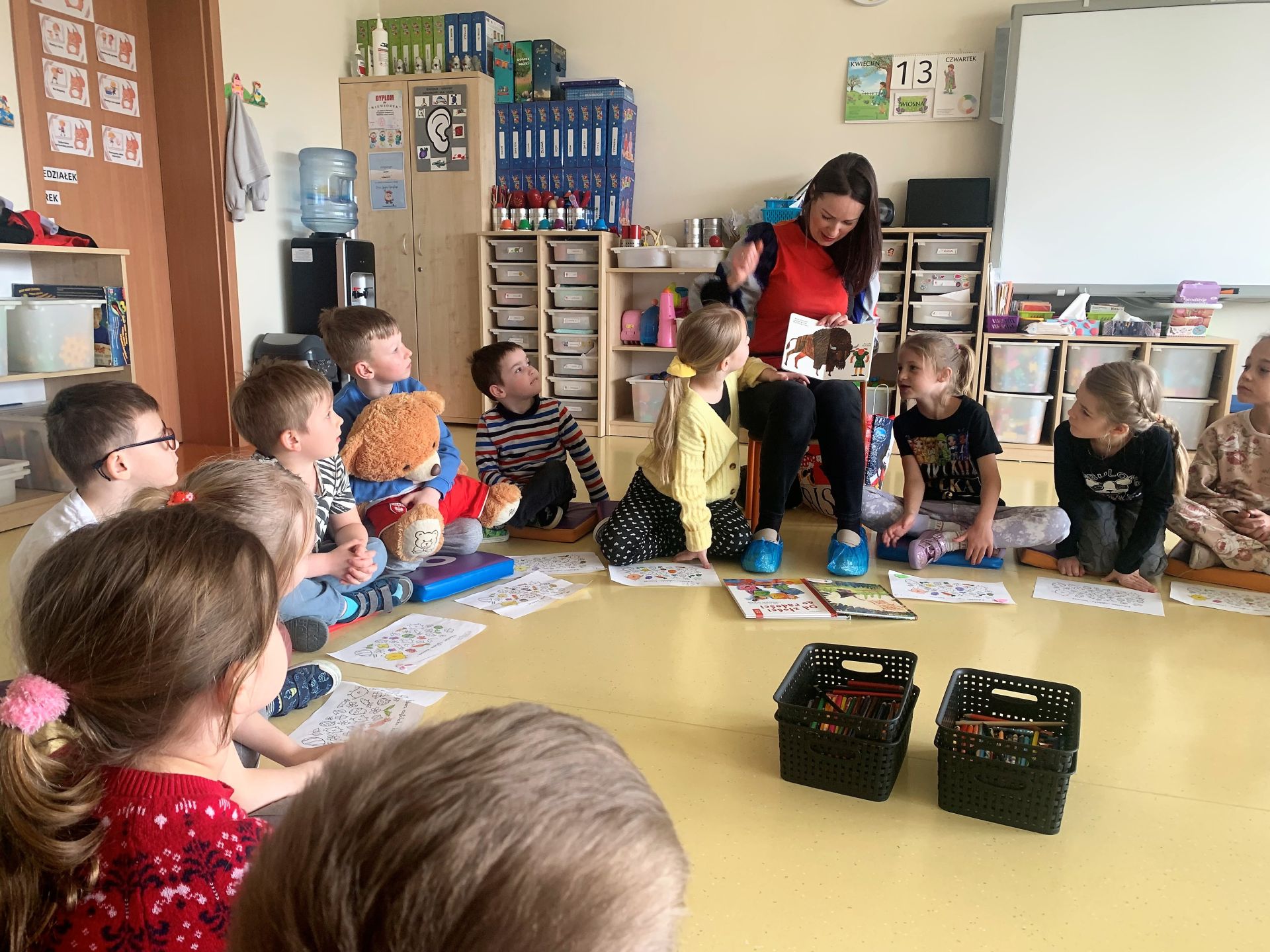 W kwietniu 2023 r. rozpoczęliśmy cykl spotkań z książką "Poczytajki z rodzicami". Chętni rodzice czytają dzieciom wybrane pozycje literatury dziecięcej. W nagrodę za każdą wysłuchaną opowieść dzieci kolorują jeden obrazek z "Kalendarza Czytelnika". Dziękujemy wszystkim za włączenie się do akcji i zachęcamy kolejnych rodziców.