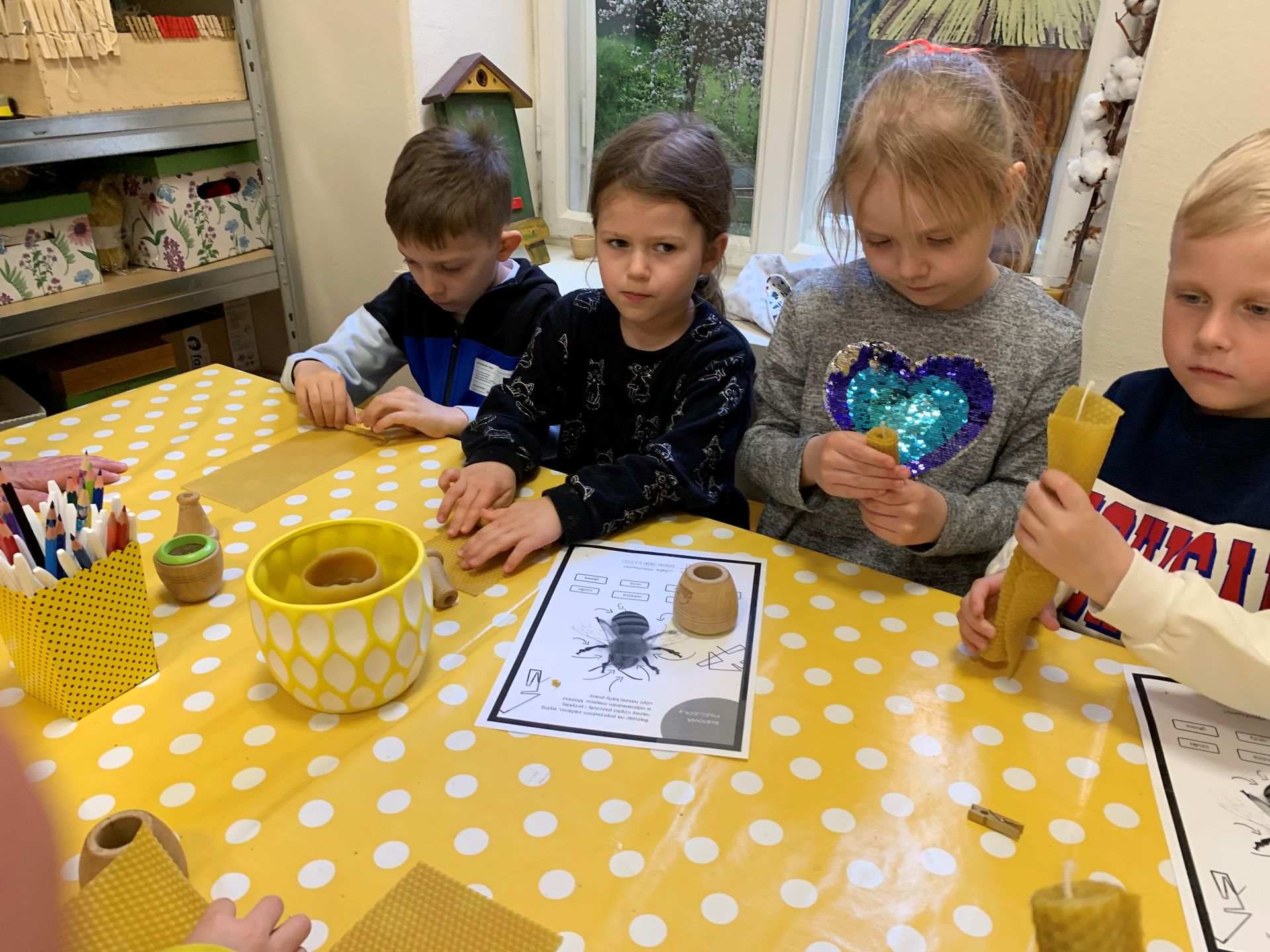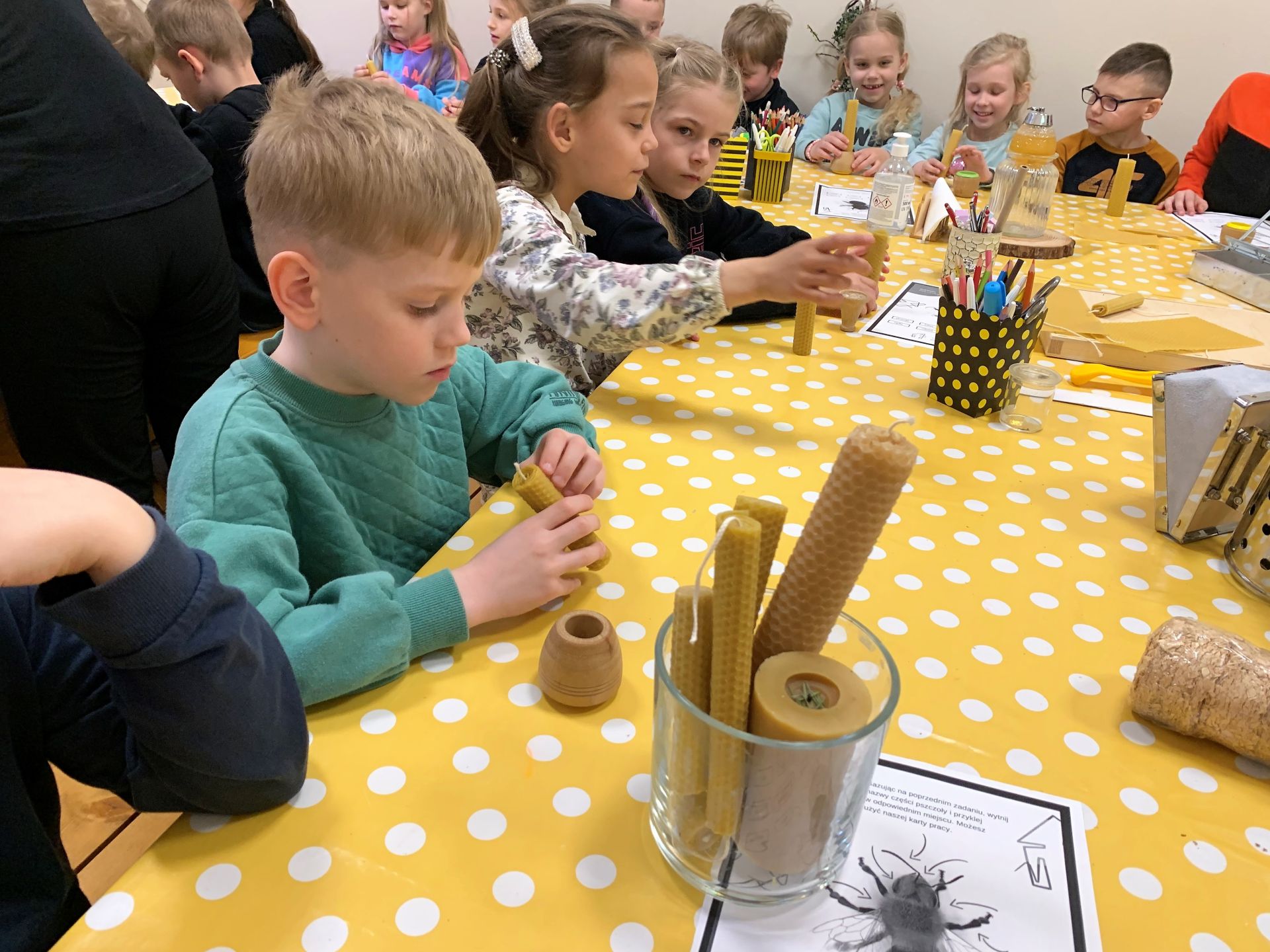 Dnia 26 kwietnia udaliśmy sie do Sklepu Pszczelarskiego "Cuda Pszczele" w Toruniu. Wzięliśmy udziałw warsztatach o miodzie i pszczołach. Poznaliśmy tajniki pracy pszczelarza oraz ciekawostki o życiu i pracy pszczół. Każdy z nas wykonał pachnącą świeczkę z wosku pszczelego.