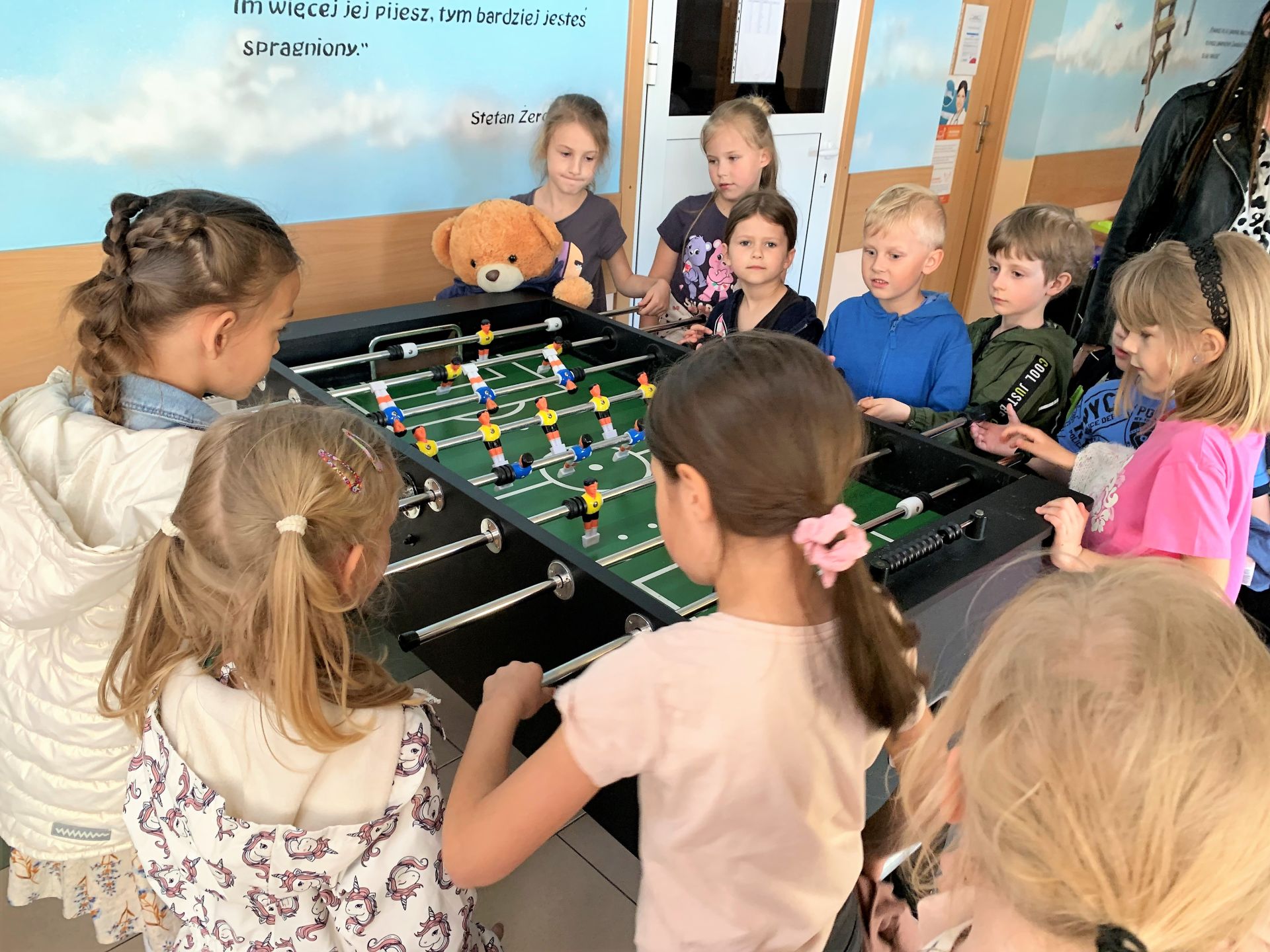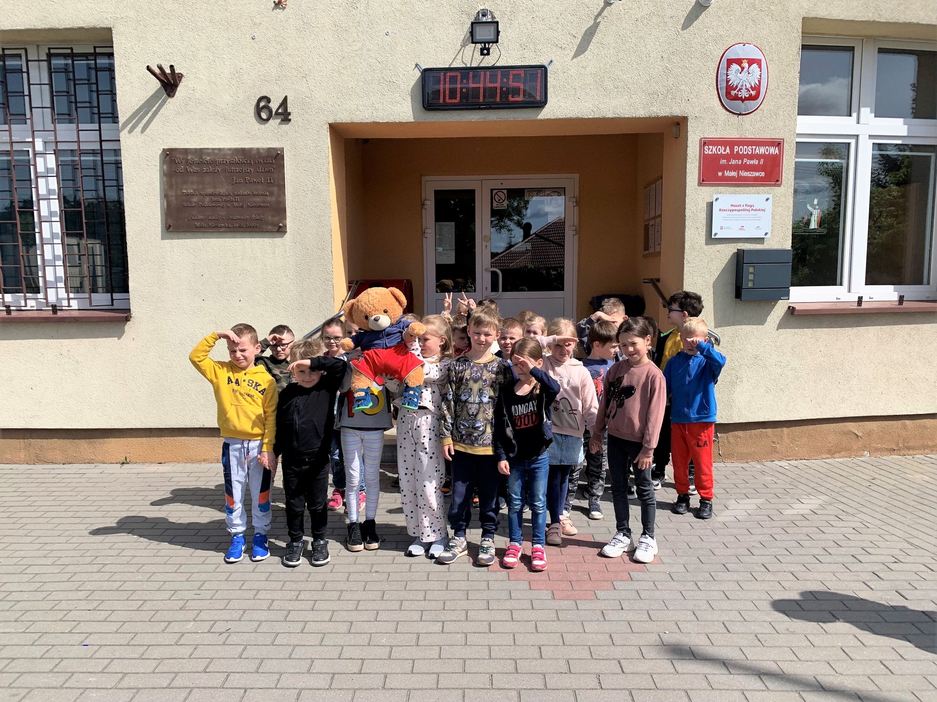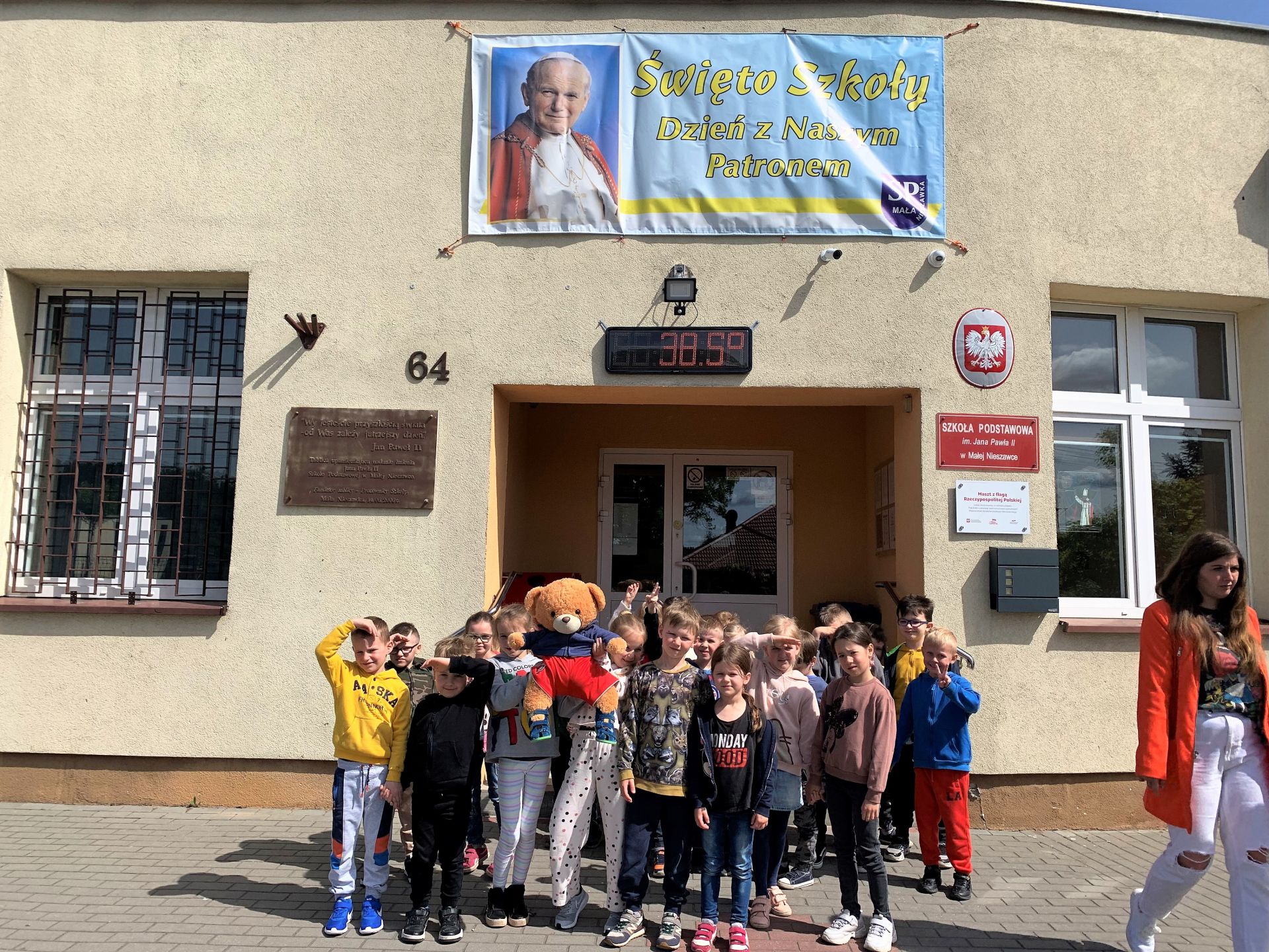 Dnia 18 maja 2023 r. odwiedziliśmy zaprzyjaźnioną Szkołę Podstawową w Małej Nieszawce. Wzięliśmy udział w pokazowej lekcji matematyki siedząc na testowanych obecnie przez szkołę piłkach - krzesełkach. Po lekcji zwiedziliśmy szkołę, zajrzeliśmy do świetlicy szkolnej, biblioteki, stołówki, obejrzeliśmy salę gimnastyczną. Na zakończenie wspólnie z klasą 1a bawiliśmy się na boisku i placu zabaw na terenie szkoły.