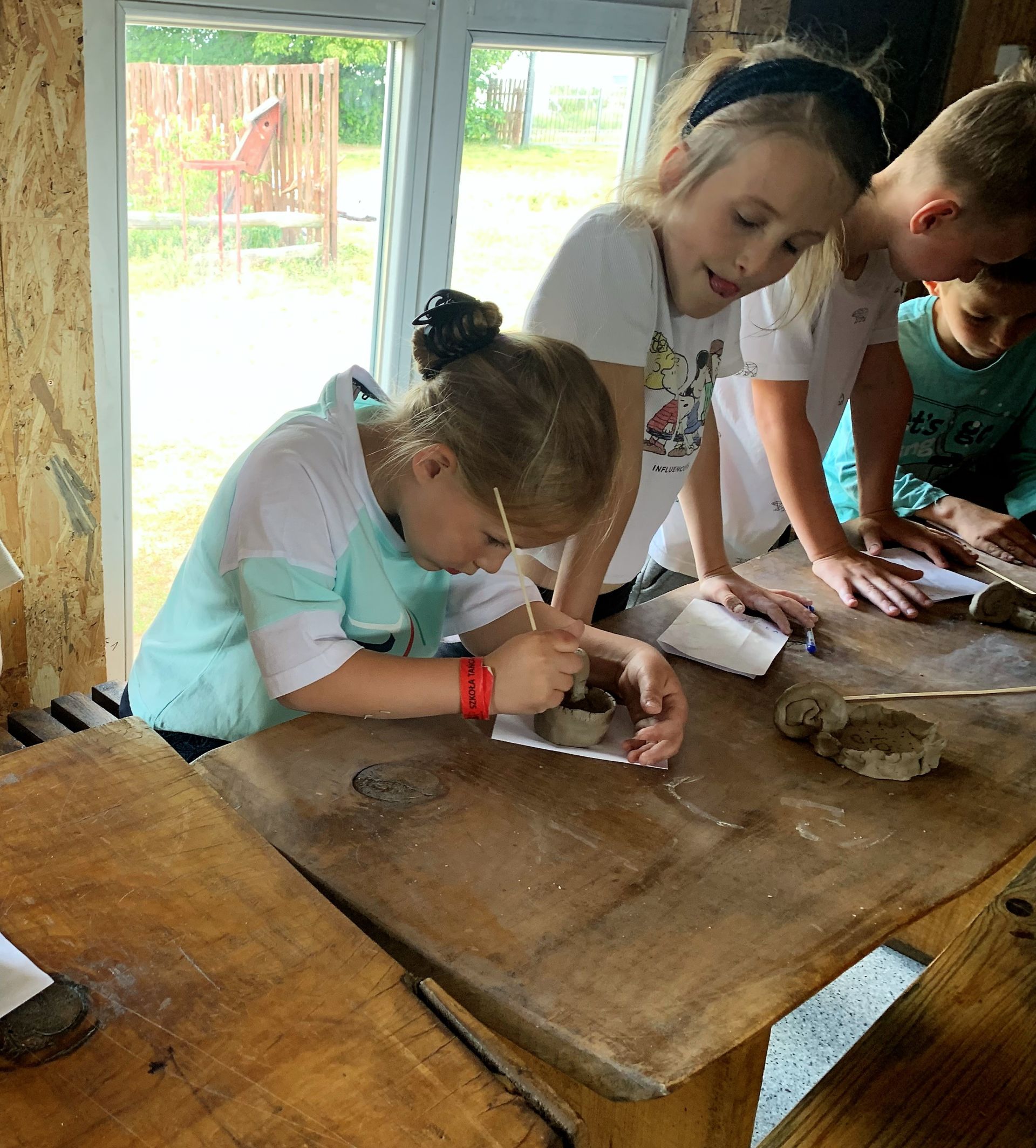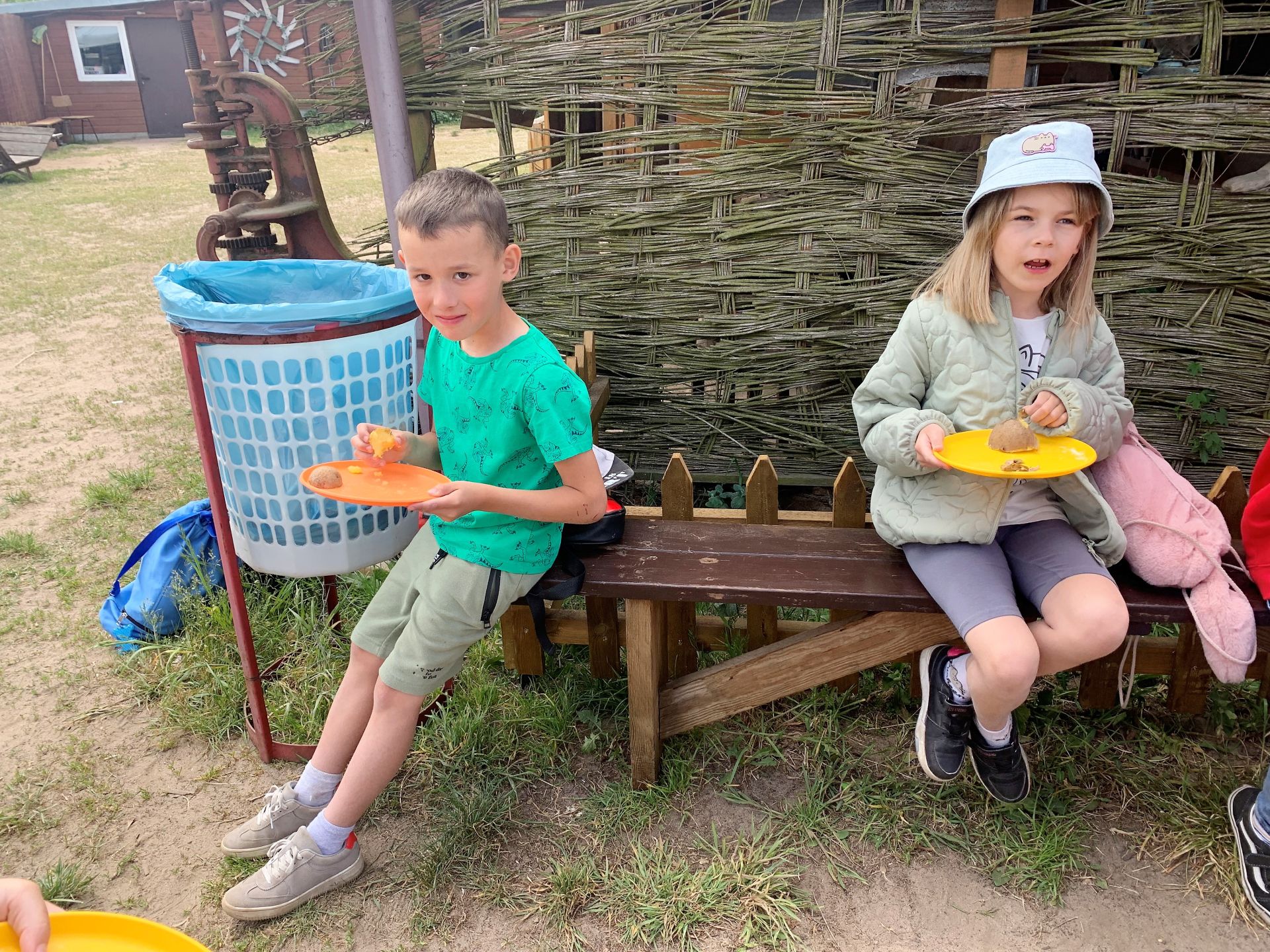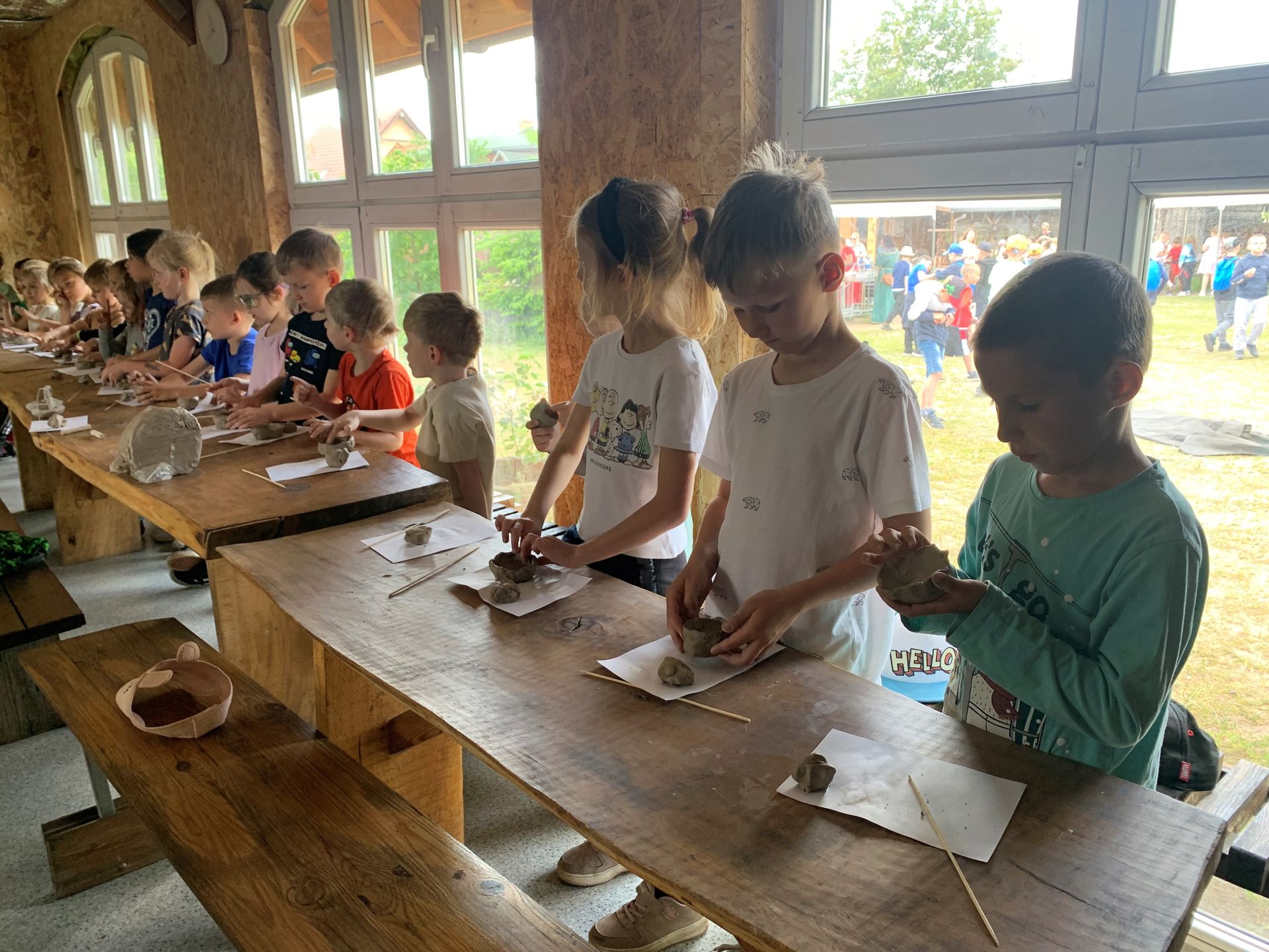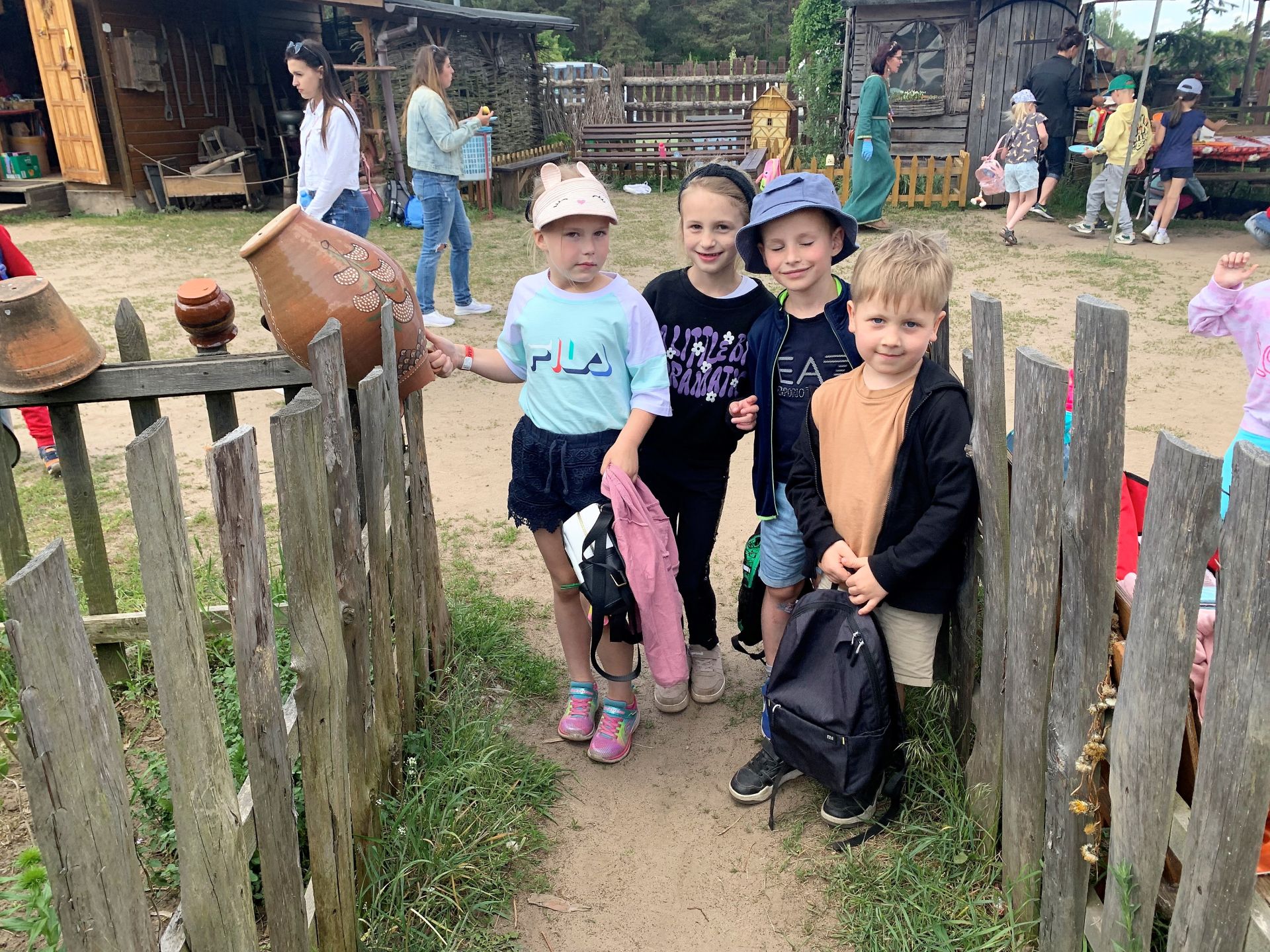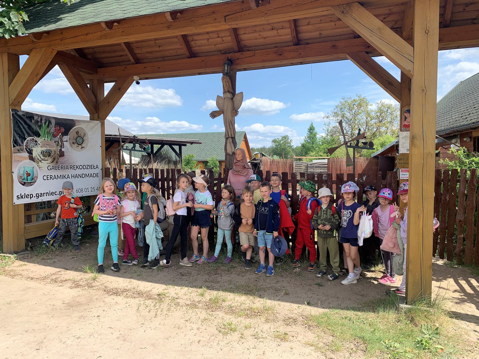 Dnia 29 maja 2023 r. odwiedziliśmy Wioskę Ginących Zawodów w Koronowie. Podczas wycieczki wzięliśmy udział w dwóch warsztatach: garncarskich i igłą wyszywane. W takcie pobytu w skansenie zwiedziliśmy zagrodę kowala, tkacza oraz woźniczego. Bardzo smakowały nam ziemniaki z parownika babci oraz kiełbaski, które samodzielnie piekliśmy w ognisku. Na zakończenie wycieczki odwiedziliśmy alpaki, z którymi się zaprzyjaźniliśmy.