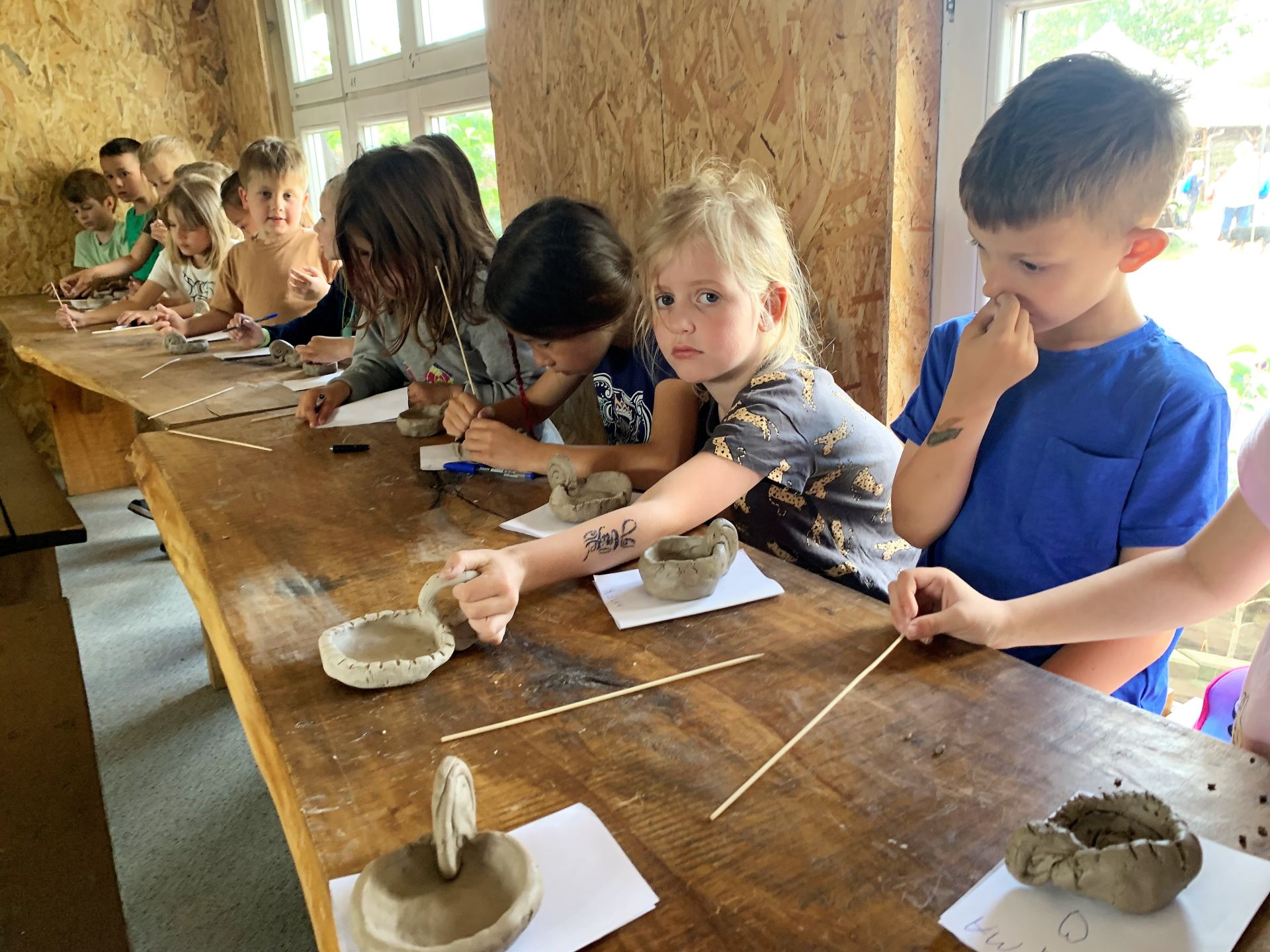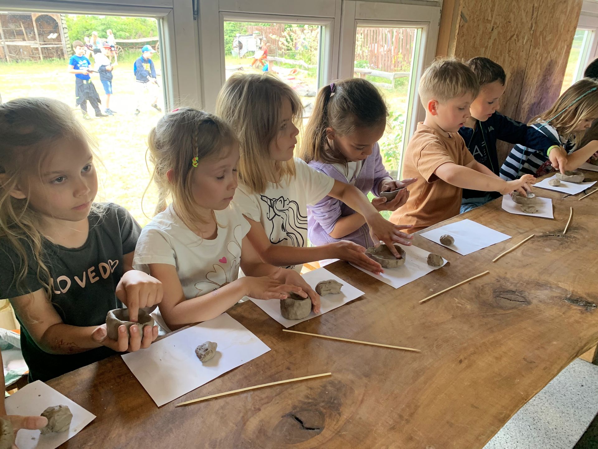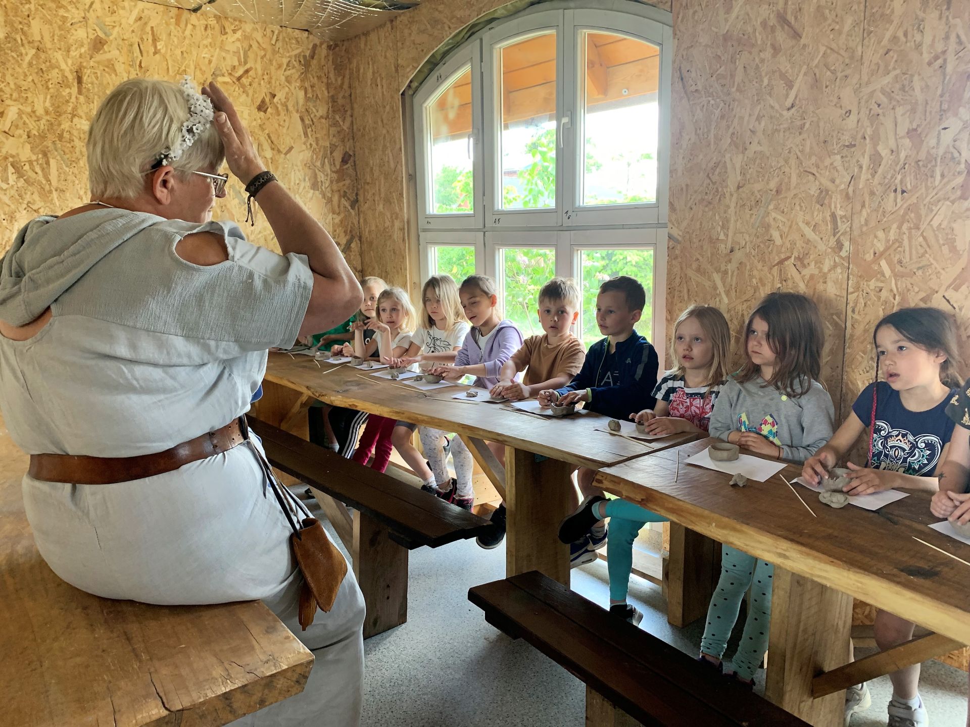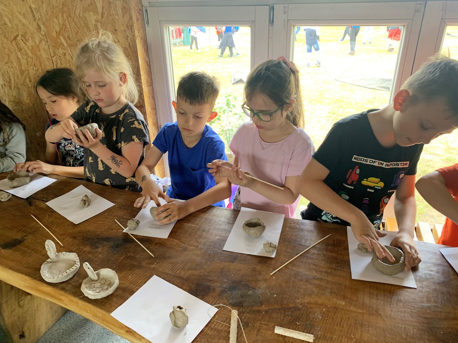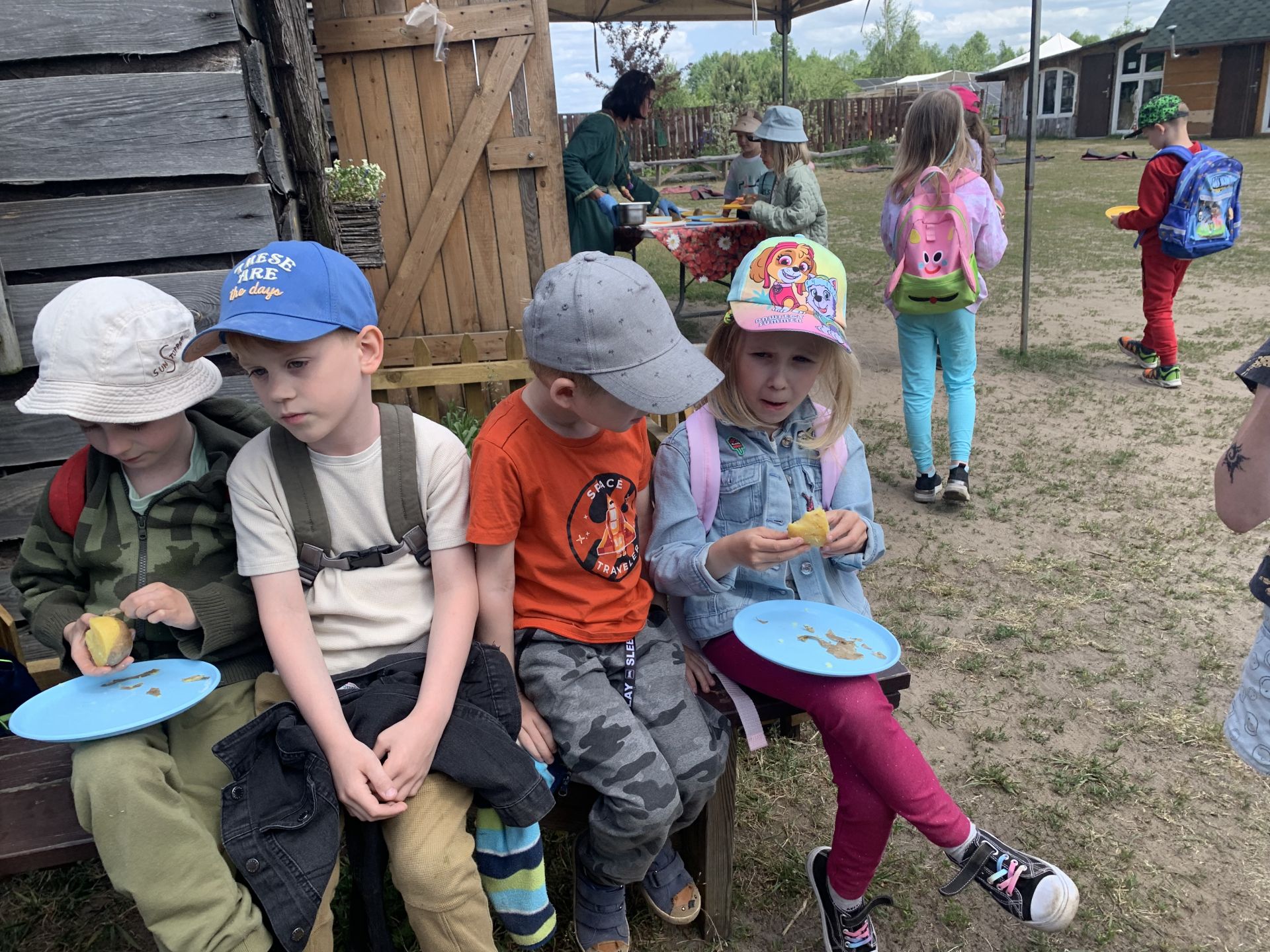 Dnia 29 maja 2023 r. odwiedziliśmy Wioskę Ginących Zawodów w Koronowie. Podczas wycieczki wzięliśmy udział w dwóch warsztatach: garncarskich i igłą wyszywane. W takcie pobytu w skansenie zwiedziliśmy zagrodę kowala, tkacza oraz woźniczego. Bardzo smakowały nam ziemniaki z parownika babci oraz kiełbaski, które samodzielnie piekliśmy w ognisku. Na zakończenie wycieczki odwiedziliśmy alpaki, z którymi się zaprzyjaźniliśmy.