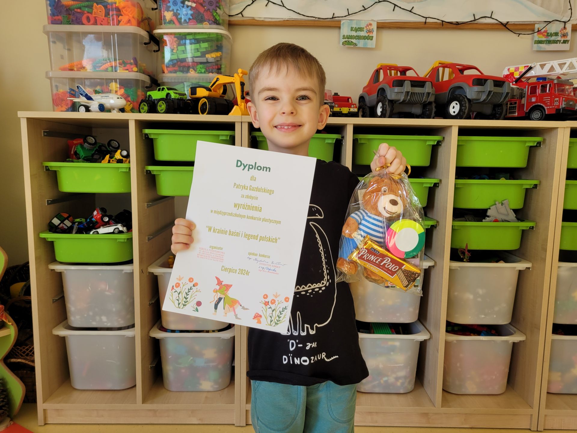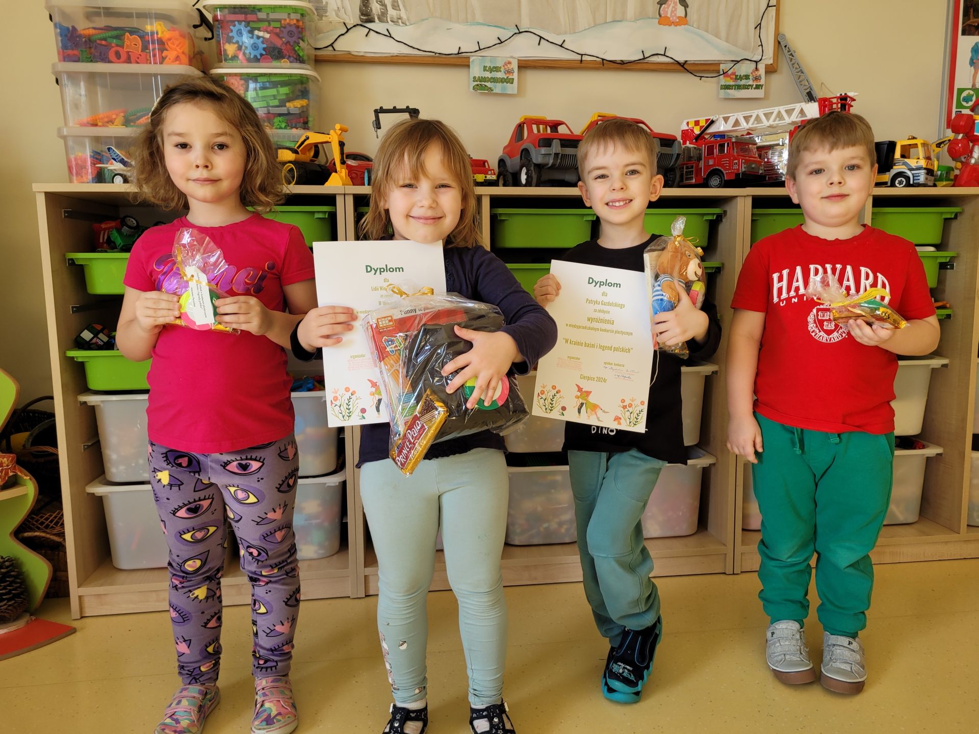 Dzieci z naszej grupy wzięły udział w konkursie plastycznym ,,W krainie baśni i legend polskich". Był to konkurs międzyprzedszkolny pod patronatem Szkoły Podstawowej im. Kornela Makuszyńskiego w Cierpicach.