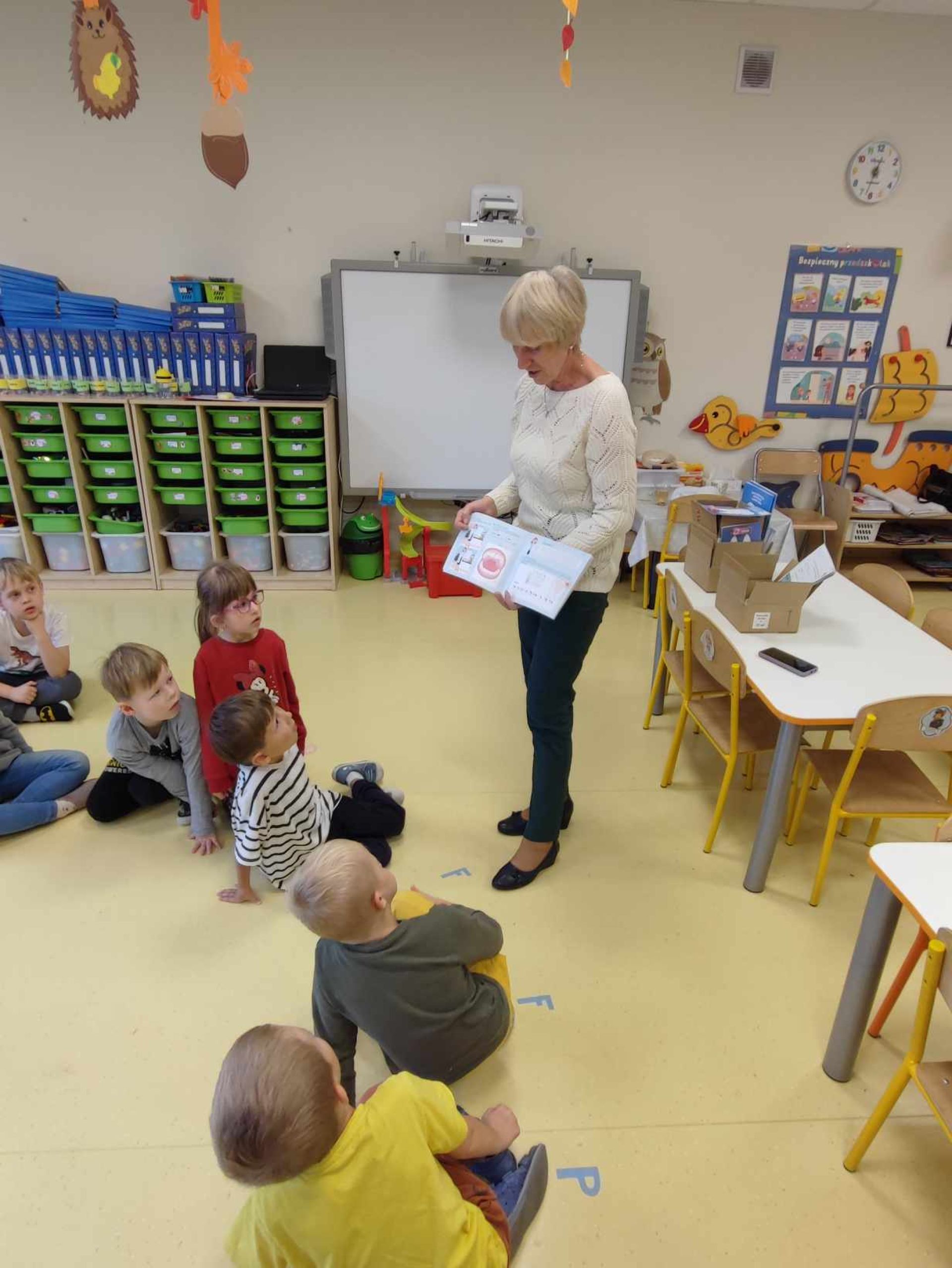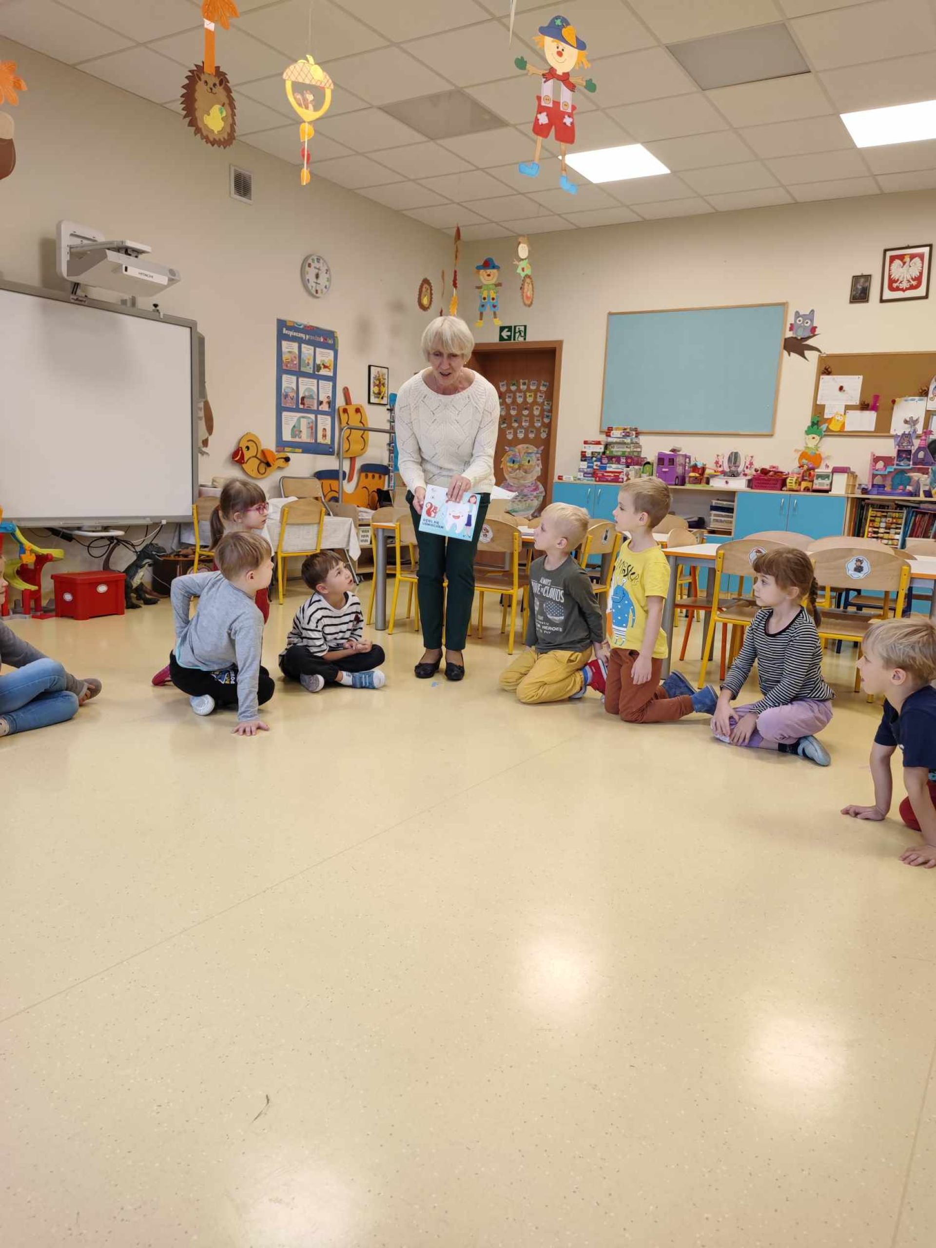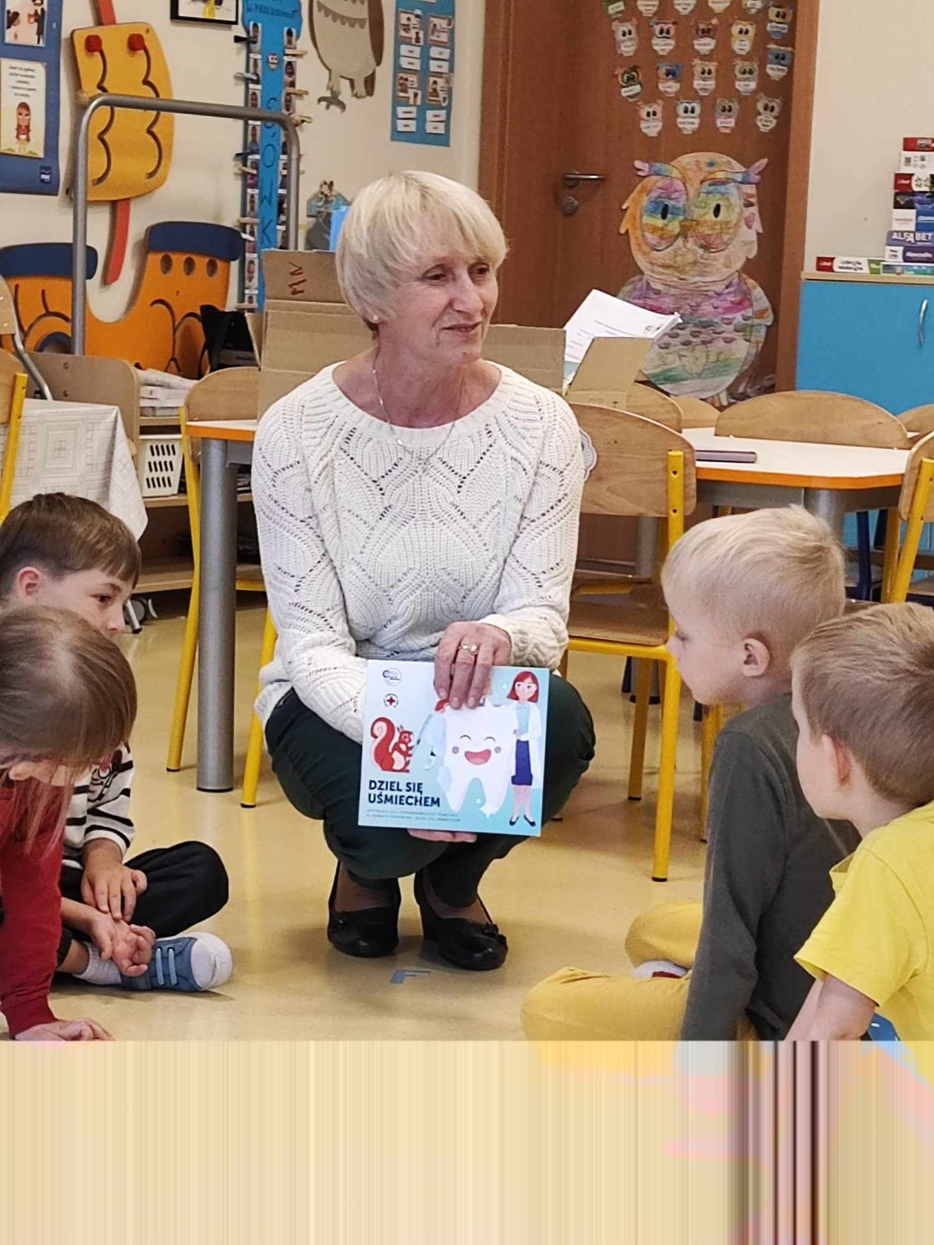 W ramach Programu "Dziel się uśmiechem" dzieci z naszej grupy wzięły udział w zajęciach edukacyjnych na temat prawidłowej higieny jamy ustnej. Zajęcia poprowadziła p. Brygidą Czapiewską, która jest ratownikiem medycznym, pielęgniarką oraz aktywnie uczestniczy w tym programie. Dzieci otrzymały również atrakcyjne materiały edukacyjne oraz wskazówki jak dbać o ząbki w domu.