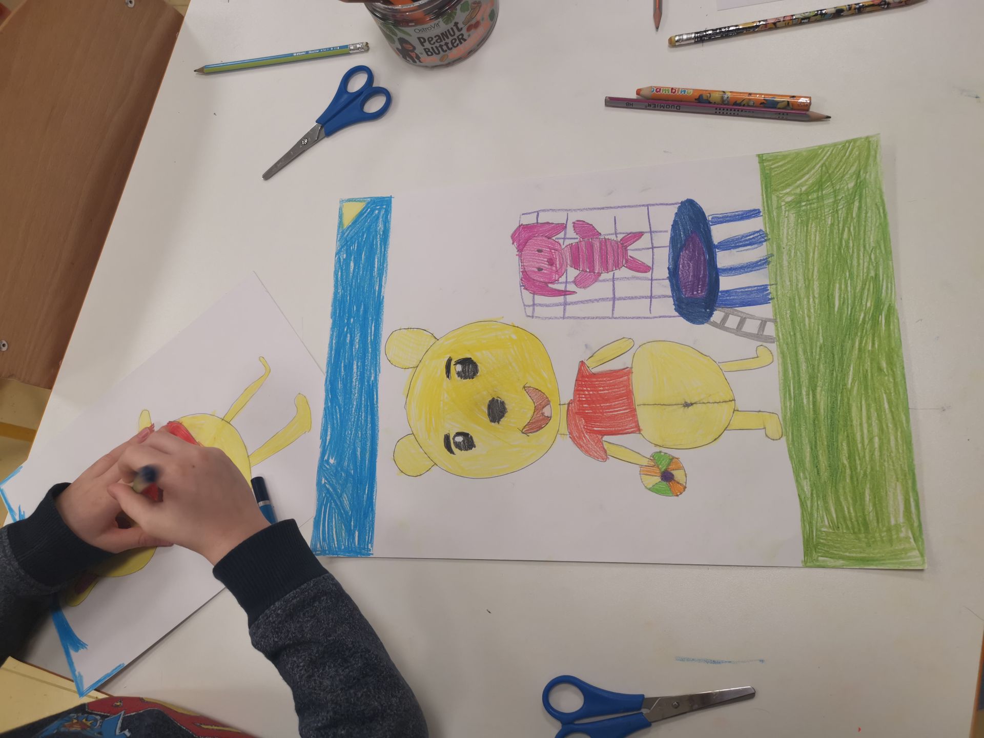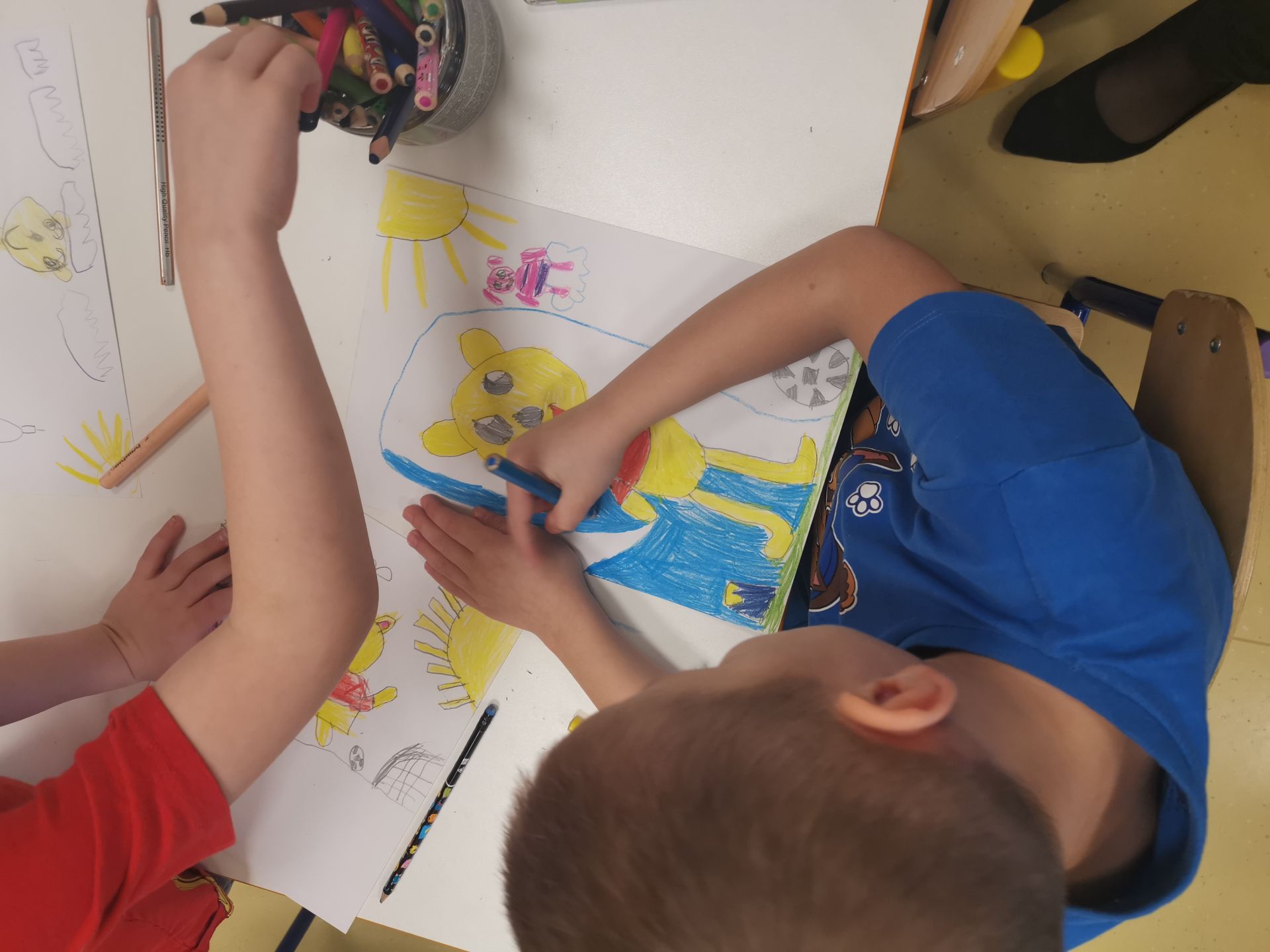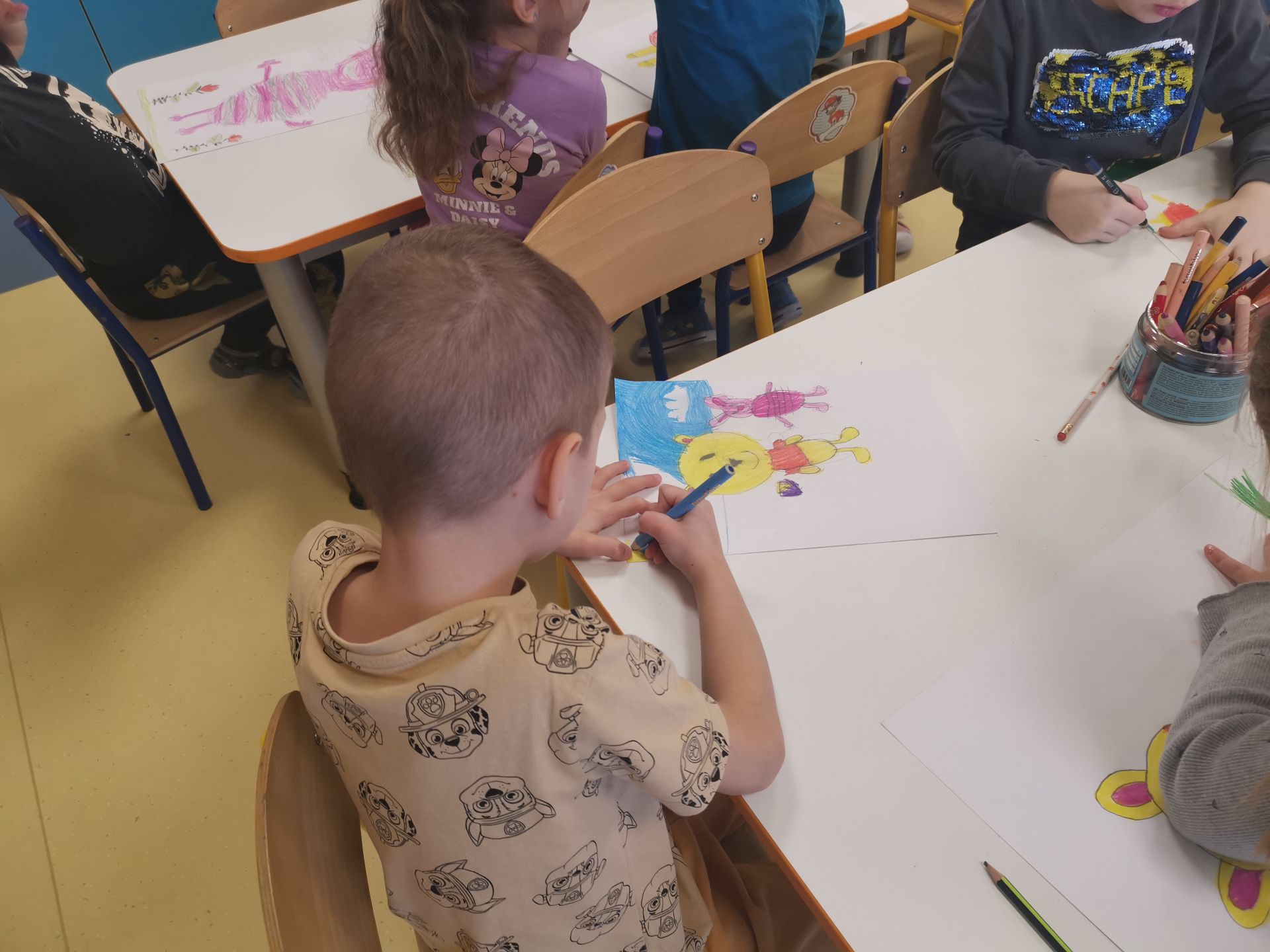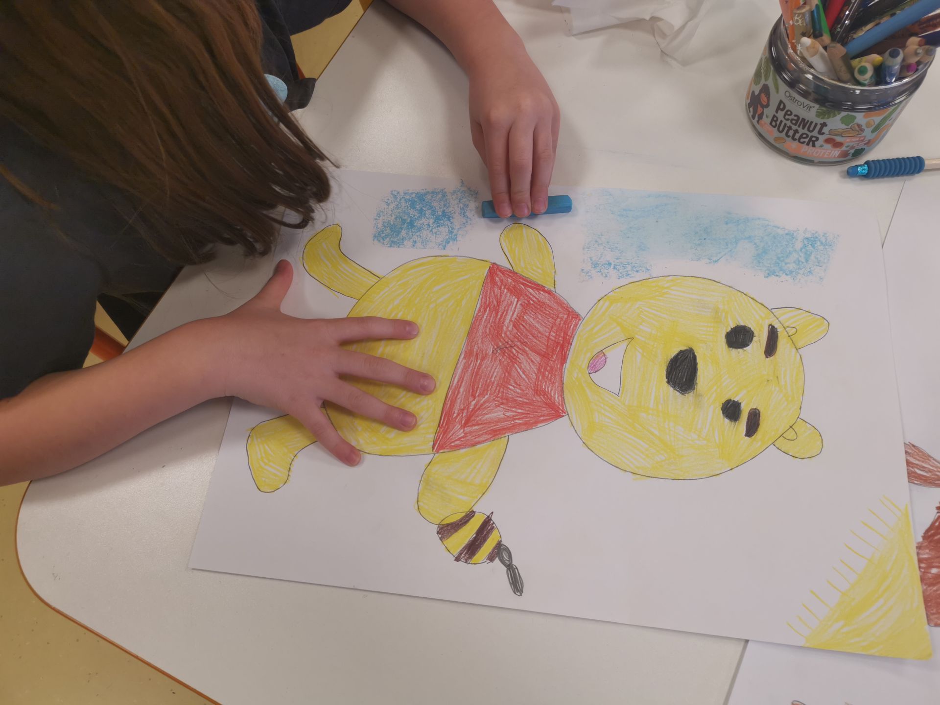W poniedziałek nasza sala zmieniła się na chwile w Stumilowy las...miejsce w którym mieszka Kubuś Puchatek i przyjaciele. Poczytaliśmy wspólnie o przygodach Kubusia Puchatka, zajadaliśmy się przysmakiem misia czyli słodkim miodkiem. Były zagadki i wyścigi....Na koniec zajęc Sówki stworzyły cudowne prace plastyczne. Kredki pastelowe wyczarowały Kubusiowe cuda!