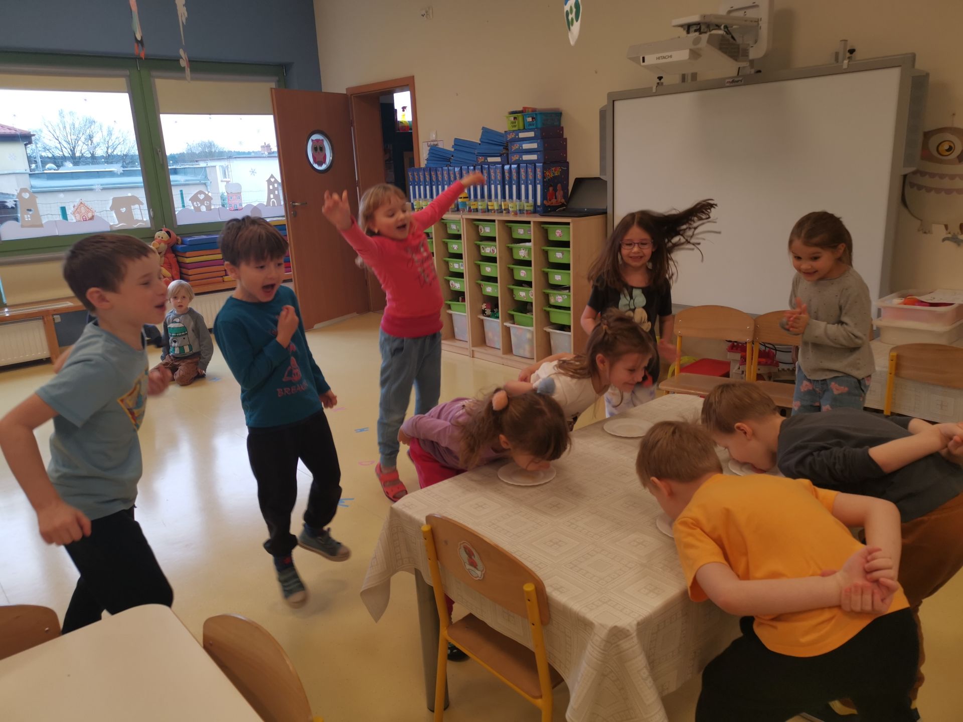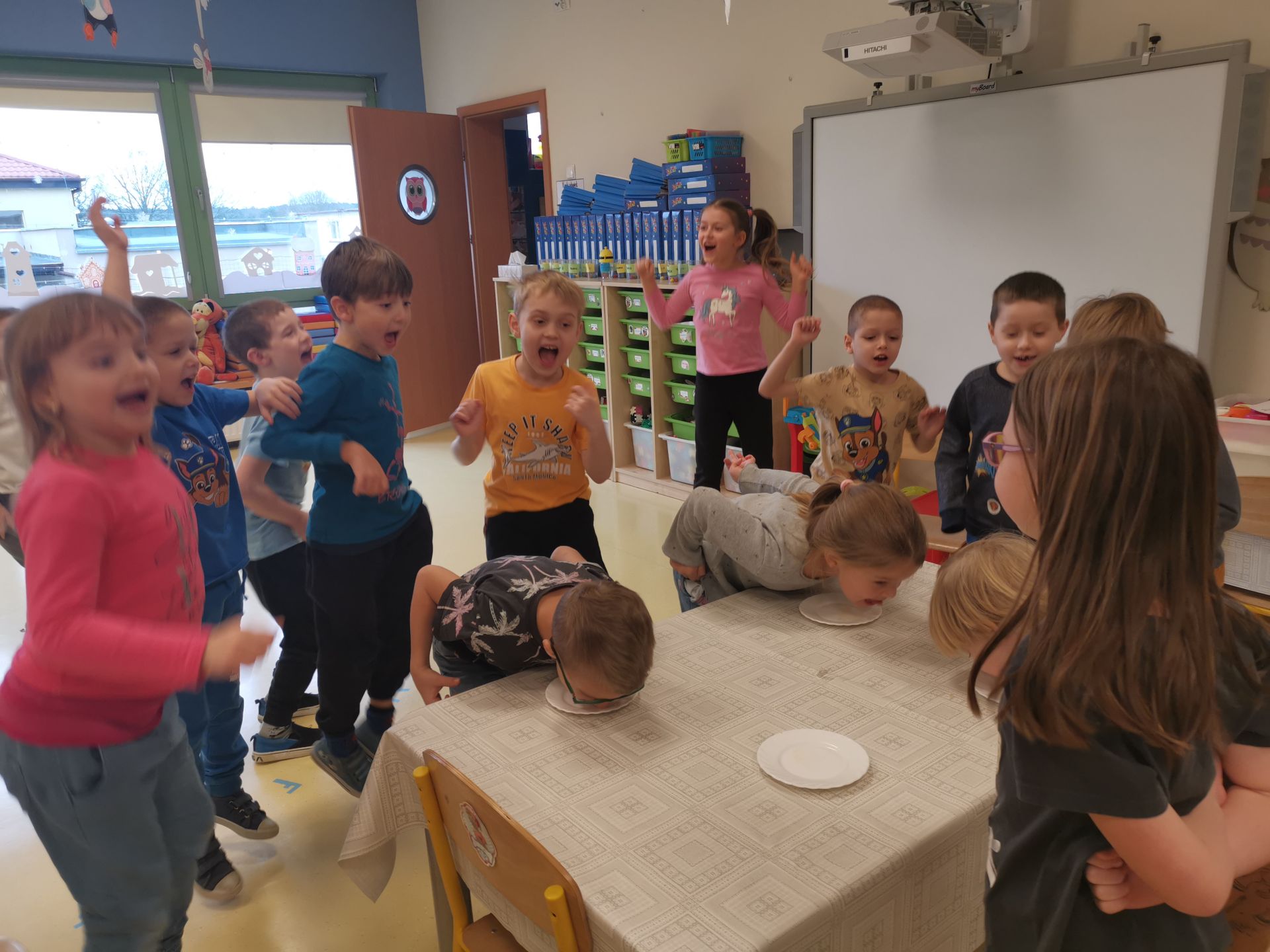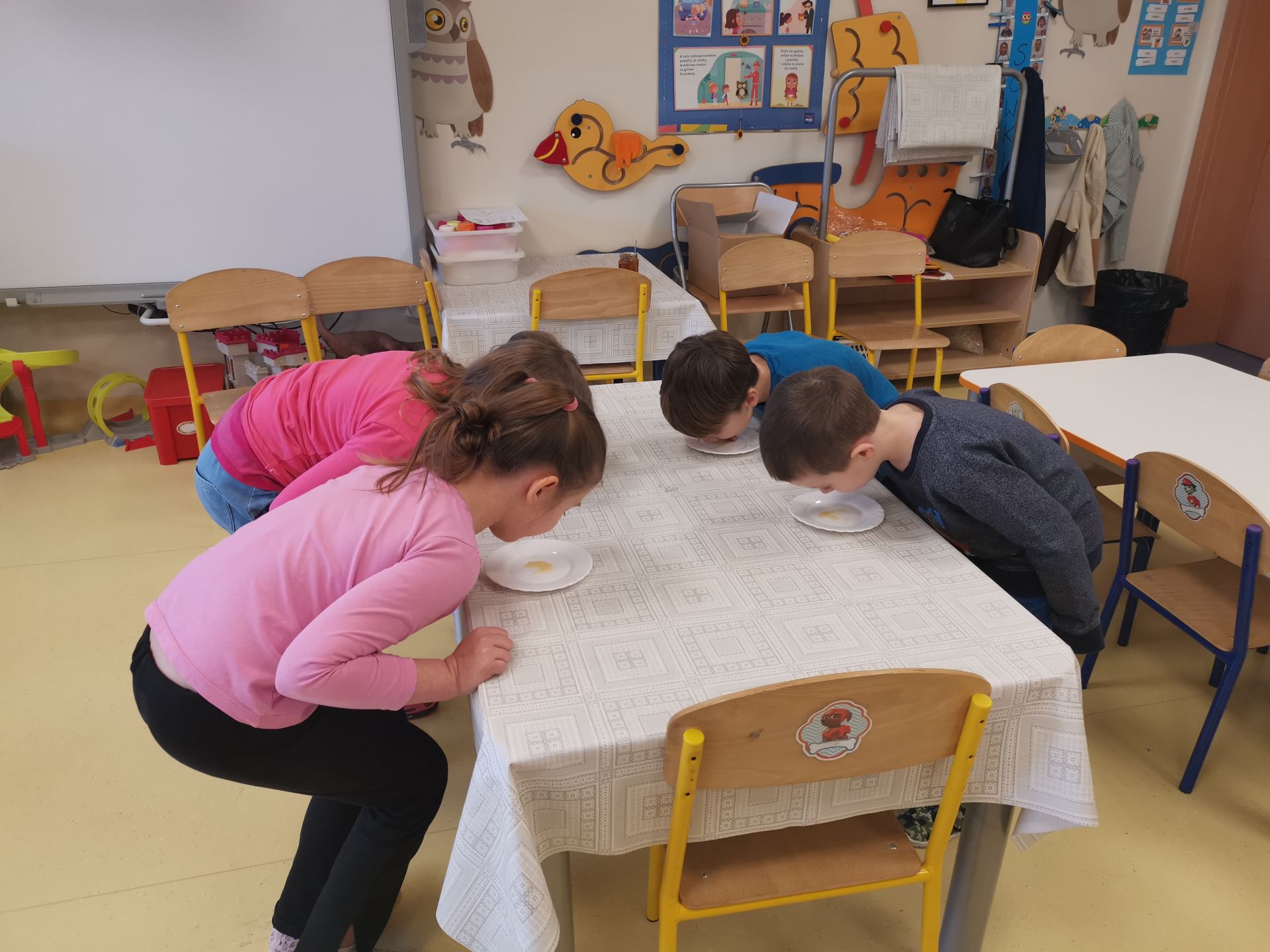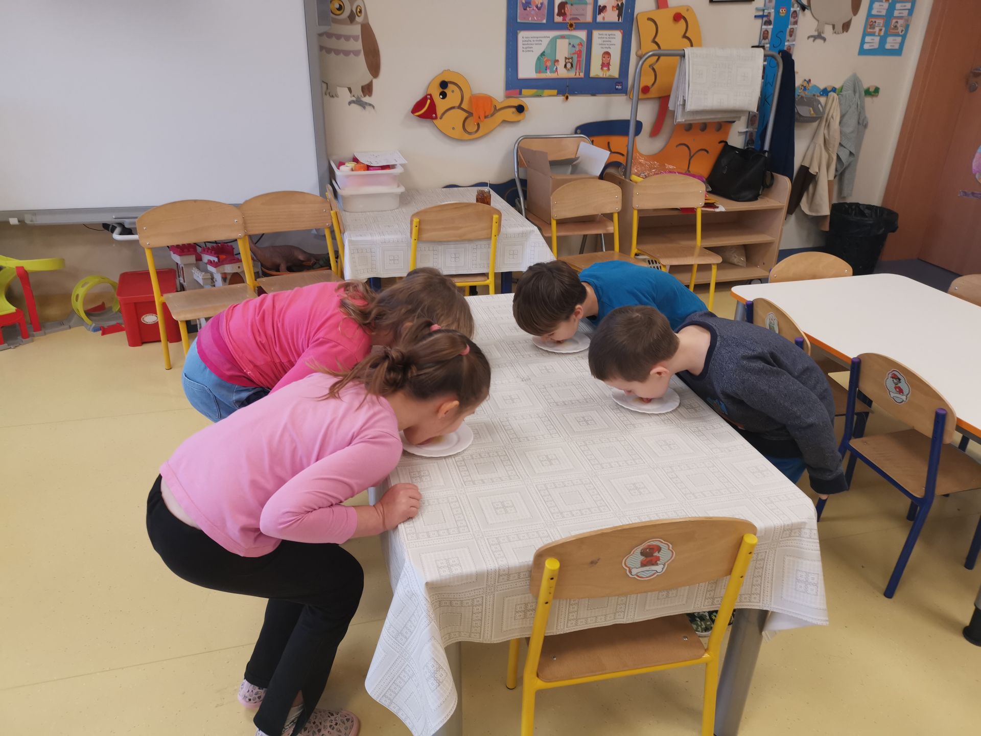 W poniedziałek nasza sala zmieniła się na chwile w Stumilowy las...miejsce w którym mieszka Kubuś Puchatek i przyjaciele. Poczytaliśmy wspólnie o przygodach Kubusia Puchatka, zajadaliśmy się przysmakiem misia czyli słodkim miodkiem. Były zagadki i wyścigi....Na koniec zajęc Sówki stworzyły cudowne prace plastyczne. Kredki pastelowe wyczarowały Kubusiowe cuda!