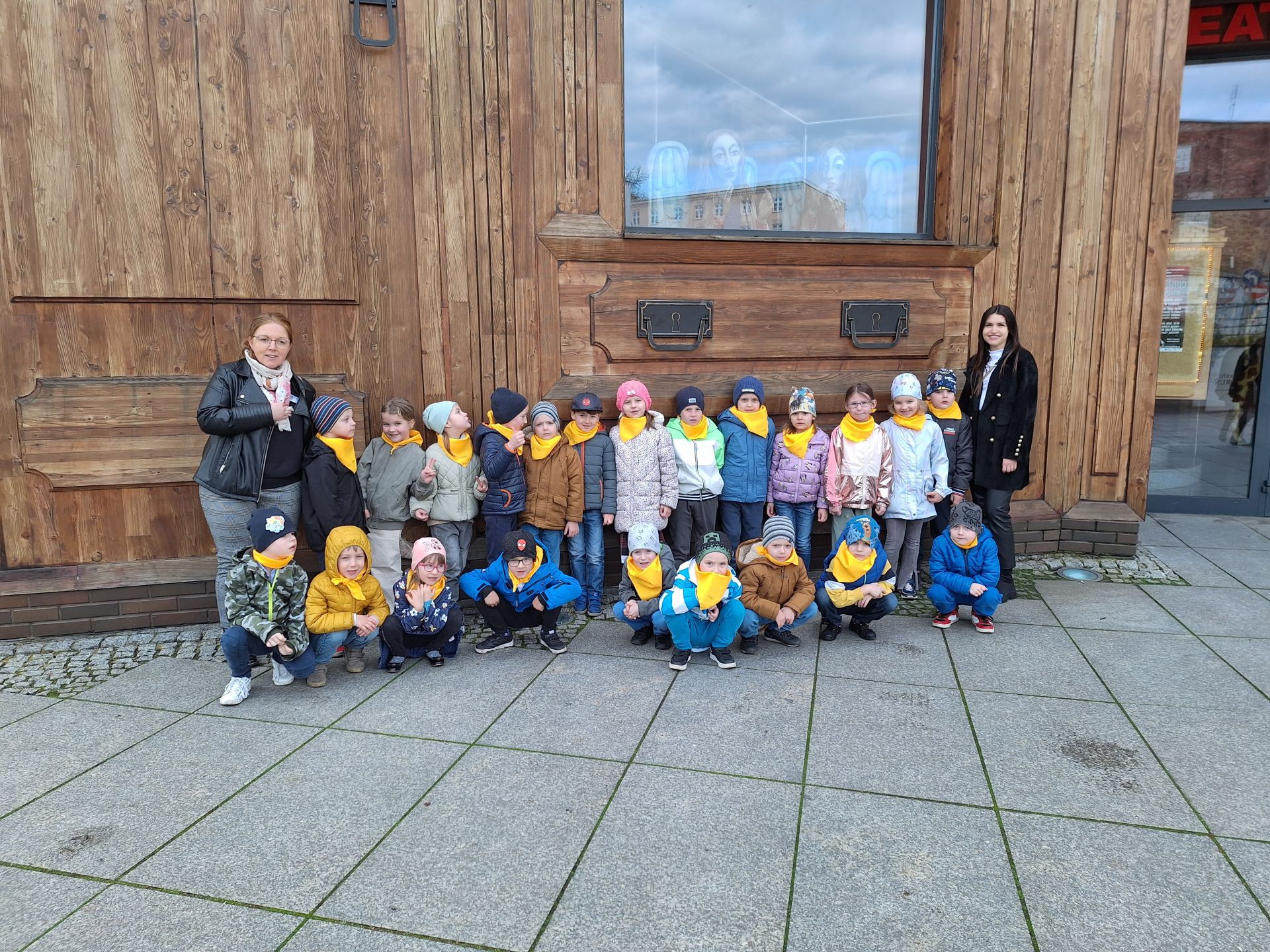 5 kwietnia dzieci z grupy Sówki wzięły udział w wycieczce do Baju Pomorskiego w Toruniu na spektakl "Słońce świeci wszystkim". Wizyta w teatrze odbyła się z okazji Międzynarodowego Dnia Teatru. Dzieci poznały historię Niedźwiedźia, który mieszka w zoo i pozazdrościł wolności Wronie....
