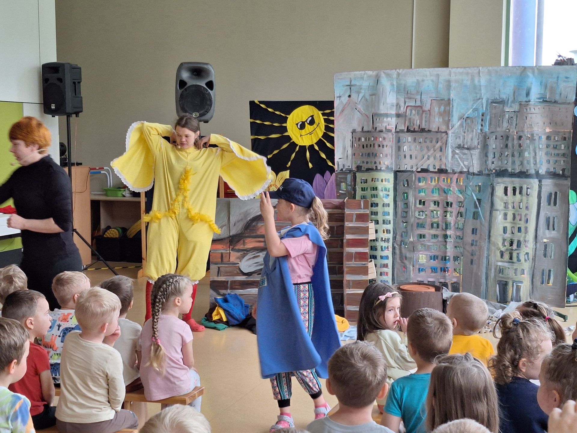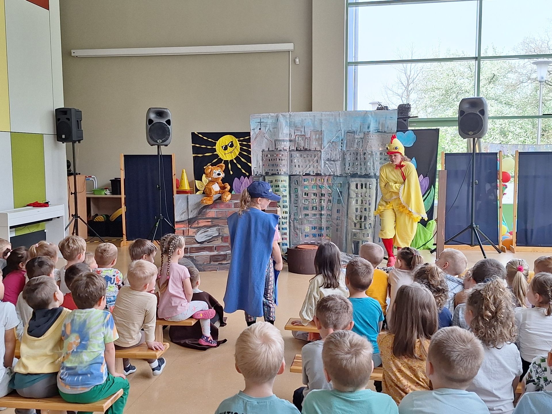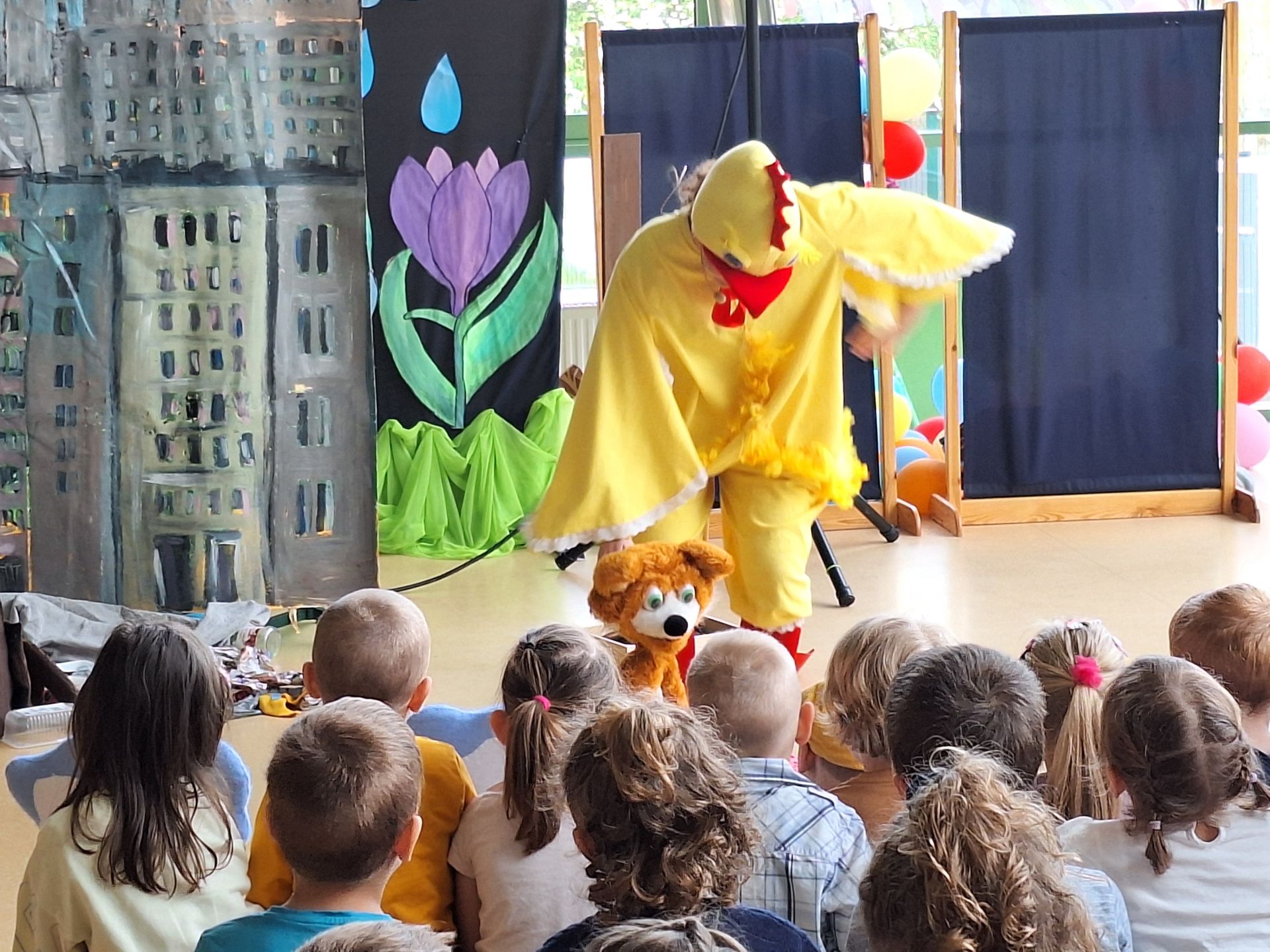 Dzisiaj w naszym przedszkolu odbył się spektakl w wykonaniu Teatru MagMowcy pt. "Pisklę poznaje świat" w ramach Międzynarodowego Dnia Teatru. Spektakl edukacyjny o charakterze interaktywnym zaangażował przedszkolaki do wspólnej zabawy i utrwalił wiedzę jak należy dbać o naszą planetę, o nasze środowisko. Całość finansowana przez Radę Rodziców, której serdecznie dziękujemy.