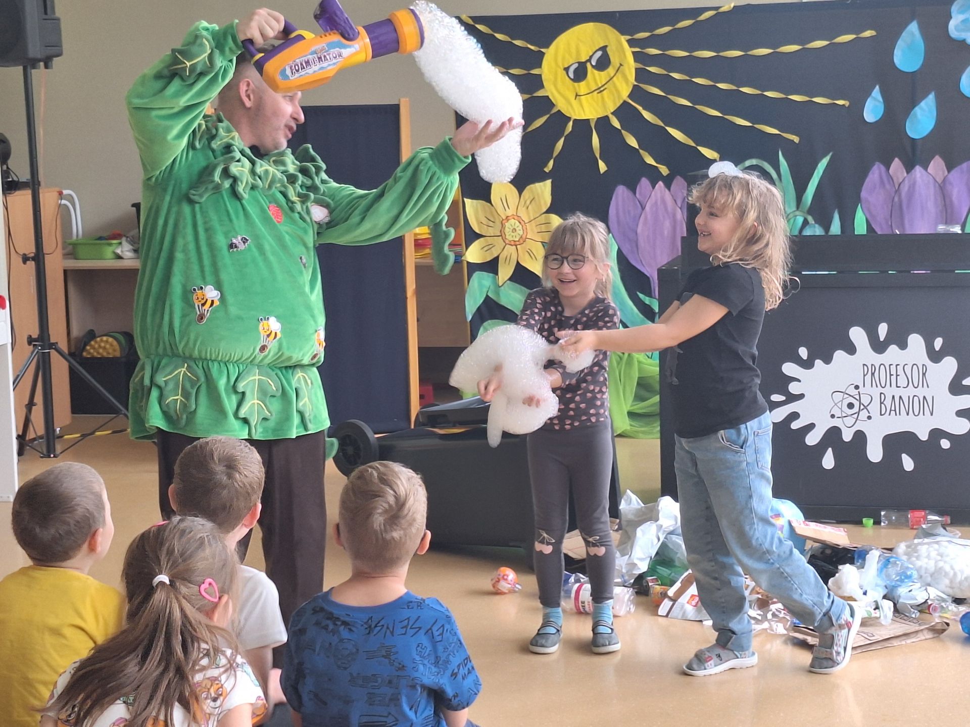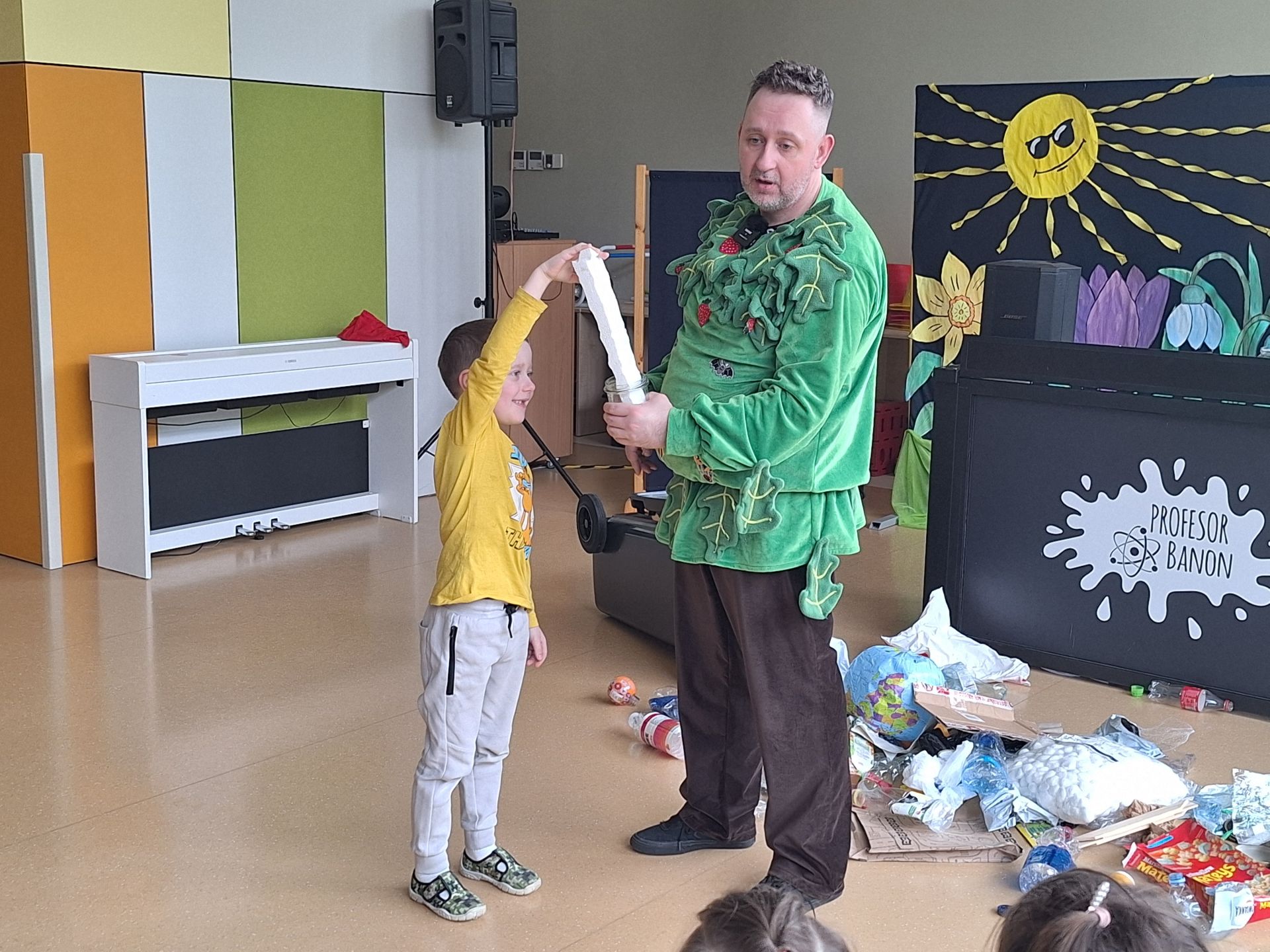 Dziś w naszym przedszkolu Profesor Banon w sposób kreatywny, ciekawy i zaskakujący pokazał dzieciom jak segregować śmieci, jak zmniejszyć ilość śmieci i co ciekawego ze śmieci można zrobić....Było super! bardzo się dzieciom podobało! :)
