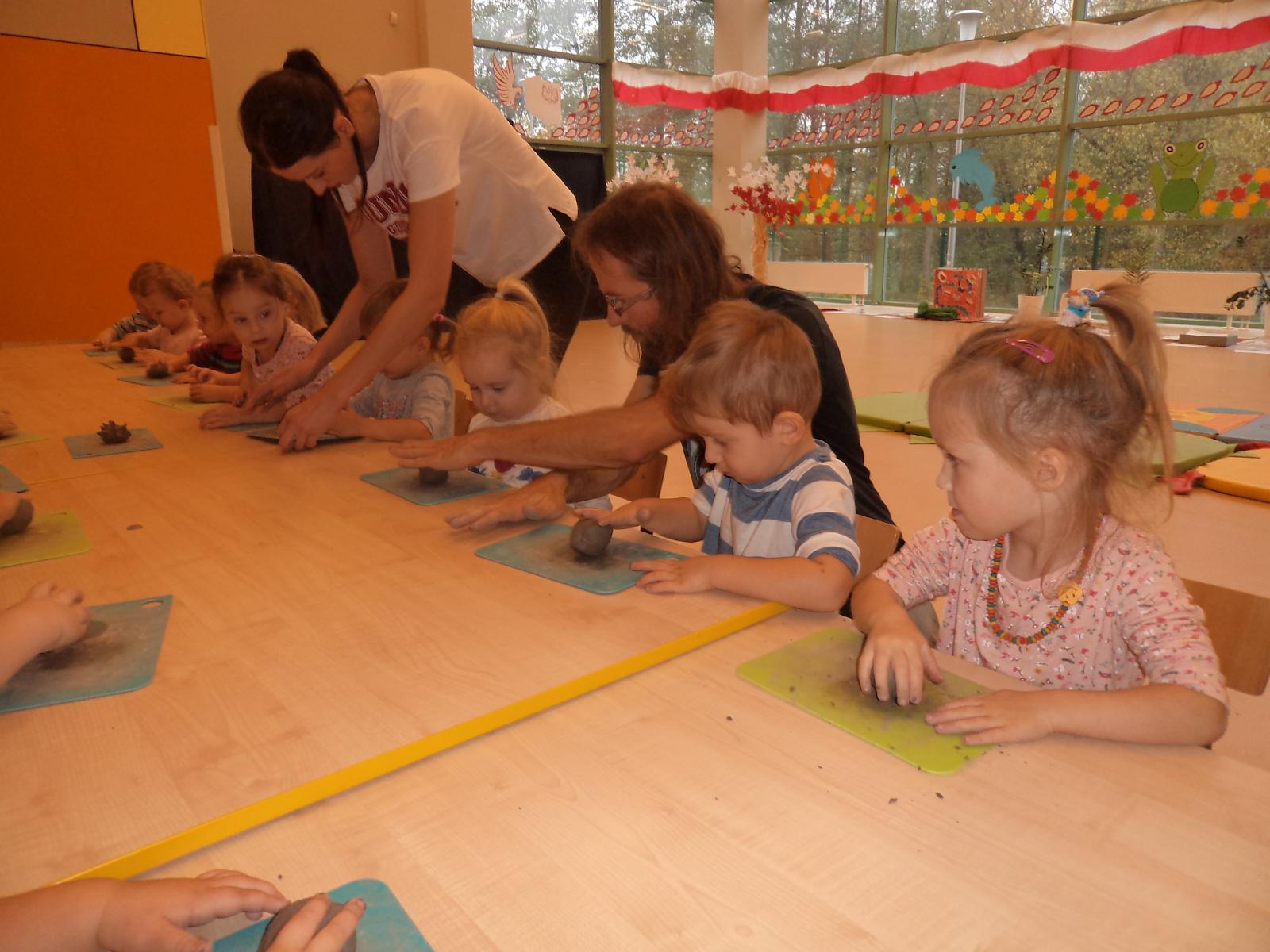 Dnia 25.10.2018r. w naszym przedszkolu odbyły się pierwsze w tym roku szkolnym warsztaty lepienia z gliny. Biedroneczki początkowo przyglądały się uważnie Panu prowadzącemu zajęcia, który zademonstrował sposób wykonania jeżyka, a następnie ochoczo zabrały się do pracy, aby ulepić własnego jeża. Lepienie z gliny, to wcale nie jest łatwa sprawa :)