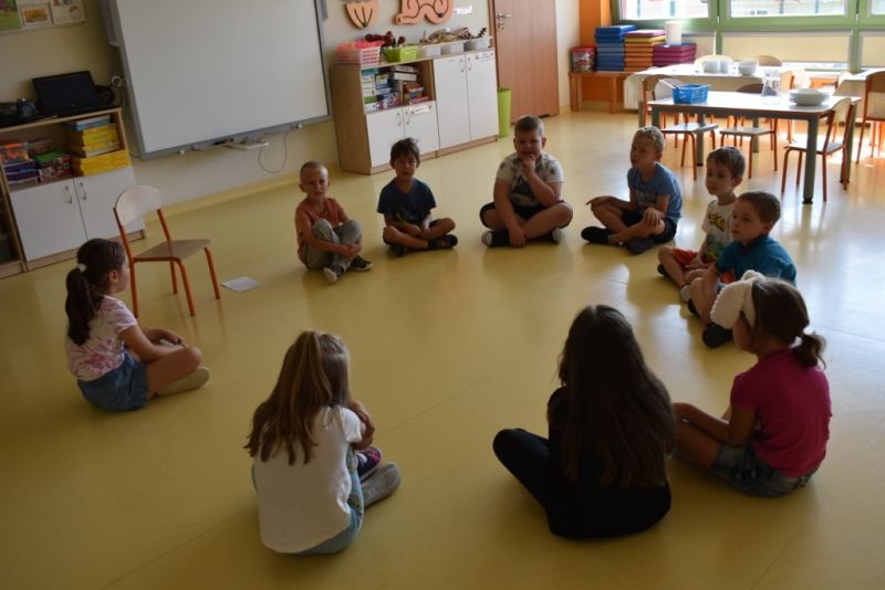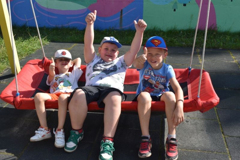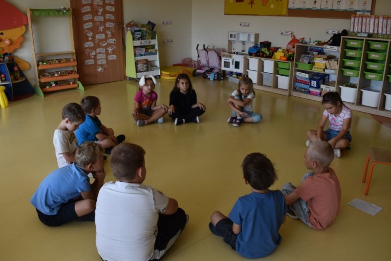 Pierwsze dni w przedszkolu upłynęły nam radośnie i wesoło. Dzieci poznały naszą salę, grupę, dzieci, kąciki. Aktywnie, radośnie i wesoło spędziły czas na naszym placu zabaw. Tego dnia wszystkim dzieciom towarzyszył uśmiech i dobry humor.