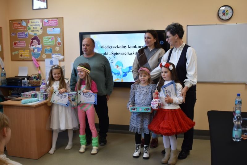 22 października w Szkole Podstawowej im. Jana Pawła II w Małej Nieszawce odbył się XVIII Międzyszkolny Konkurs Piosenki "Śpiewać każdy może". Naszą grupę i jednocześnie całe przedszkole reprezentowała trójka wspaniałych solistów: Oliwia Łączkowska, Maja Niebrzegowska oraz Nikodem Dakowicz. Nasi artyści zaprezentowali się cudownie, a I miejsce zdobyła Maja Niebrzegowska. Naszym małym artystom dziękujemy za godne reprezentowanie naszej grupy oraz przedszkola i życzymy wielu kolejnych sukcesów. Organizatorom gratulujemy kolejnego udanego przedsięwzięcia i dziękujemy za zaproszenie.