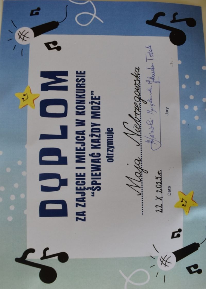Sukces w Międzyszkolnym Konkursie Piosenki "Śpiewać każdy może"- 22.10.2025r.