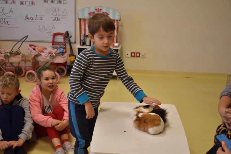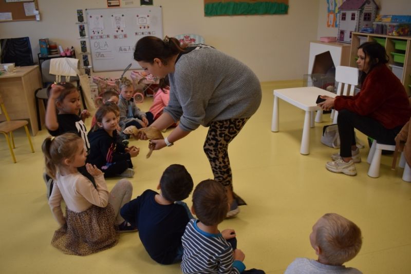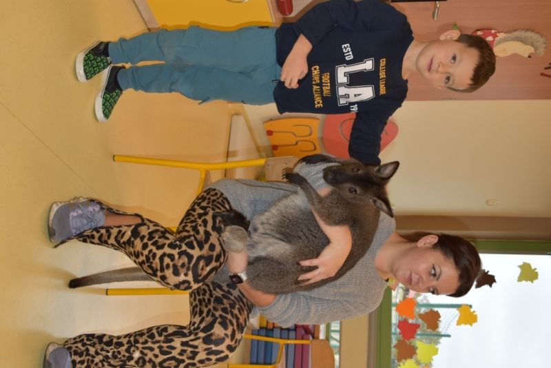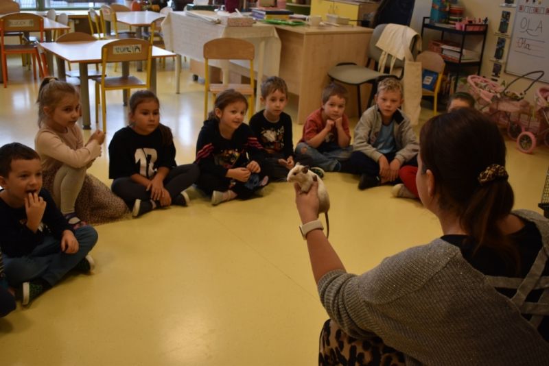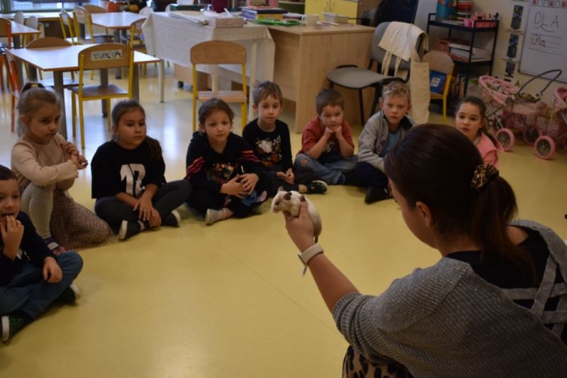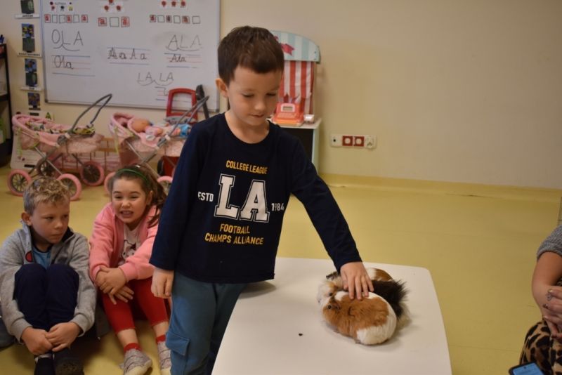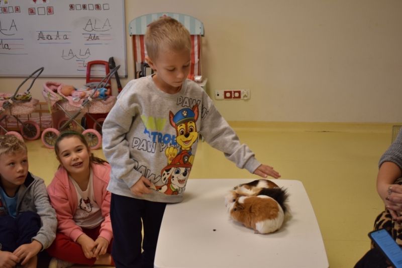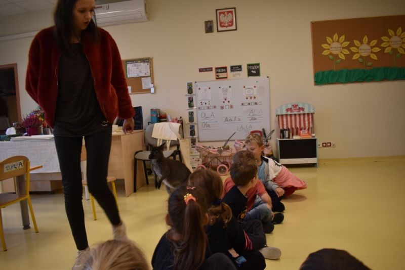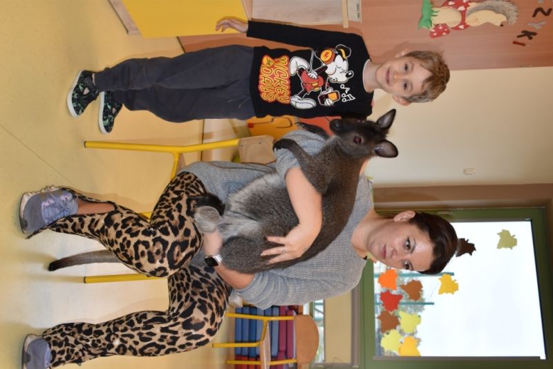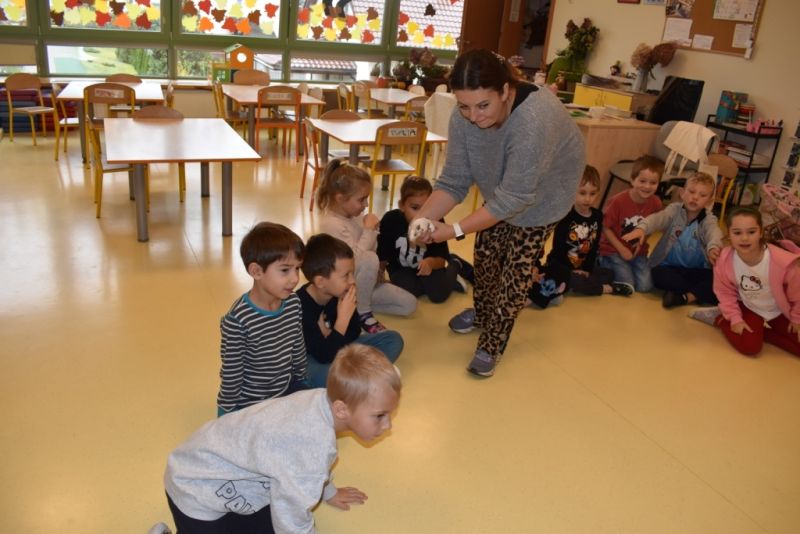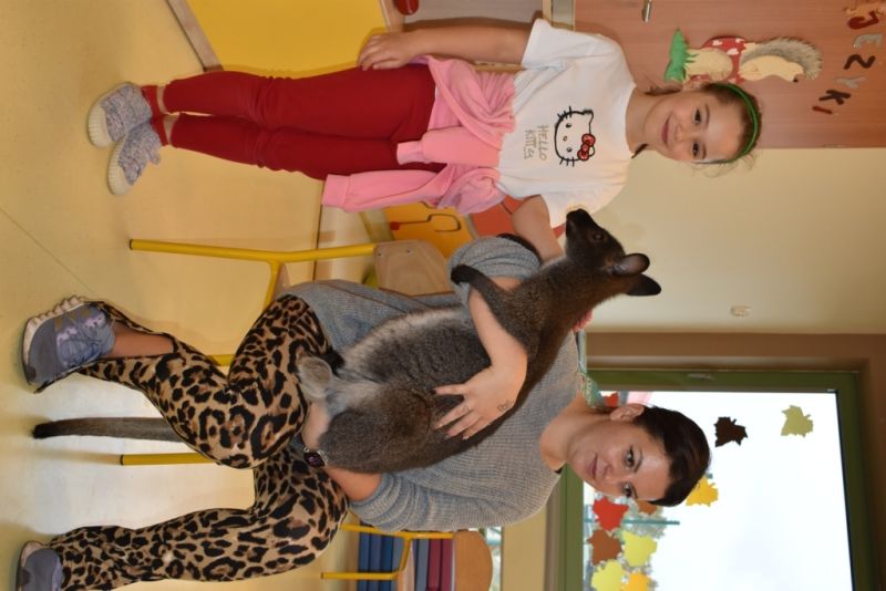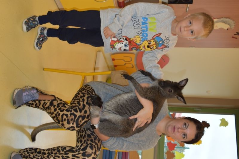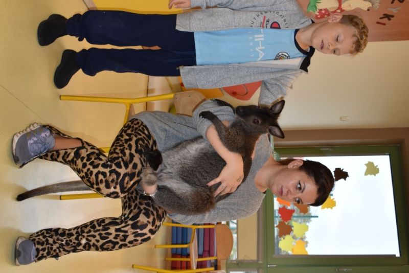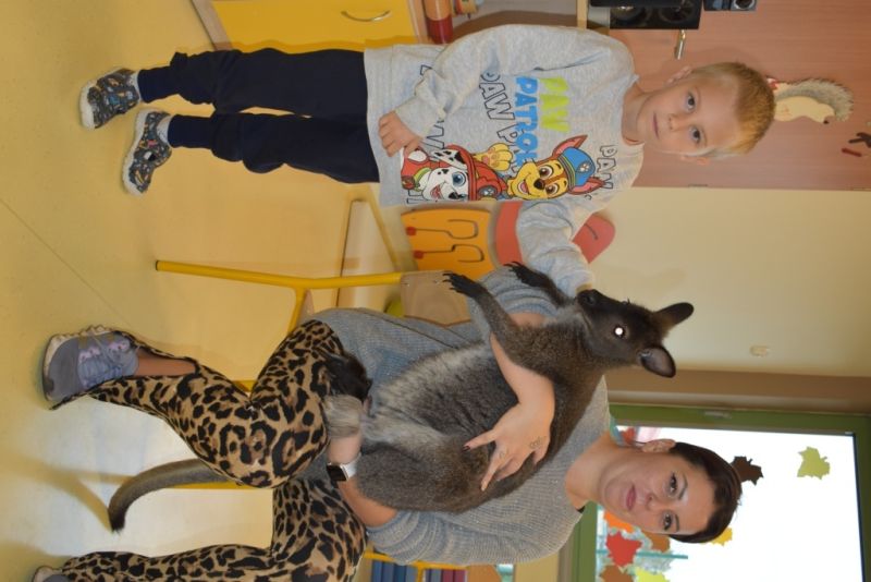 28 października odbyły się zajęcia ze zwierzątkami prowadzone przez Zagrodę Przysieki.Przyjechały do nas : Koszatniczki, Świnki Morskie Tchórzofretka, Królik miniaturowy, Żółw, Szynszyle, Lisek Polarny oraz Kangurek Franek. Dzieci poznały zwierzęta i ciekawostki dotyczące tych zwierzątek. Mogły dotknąć te zwierzęta, zrobić pamiątkowe zdjęcia. To były ciekawe zajęcia edukacyjne, które wzbogaciły naszą wiedzą o zwierzętach. Dzieci z naszej grupy były bardzo zadowolone.