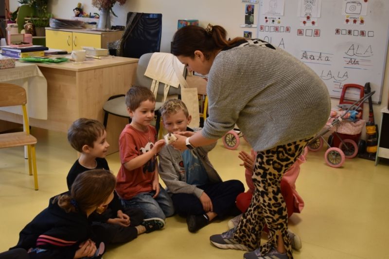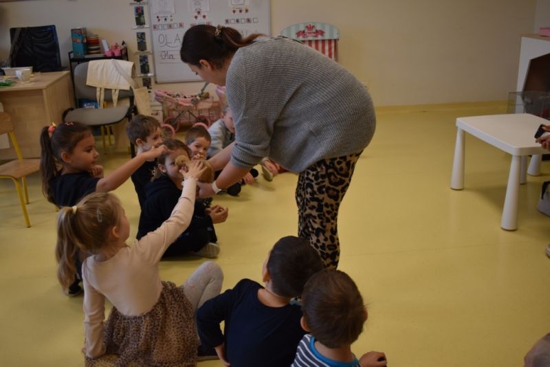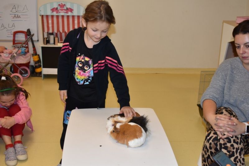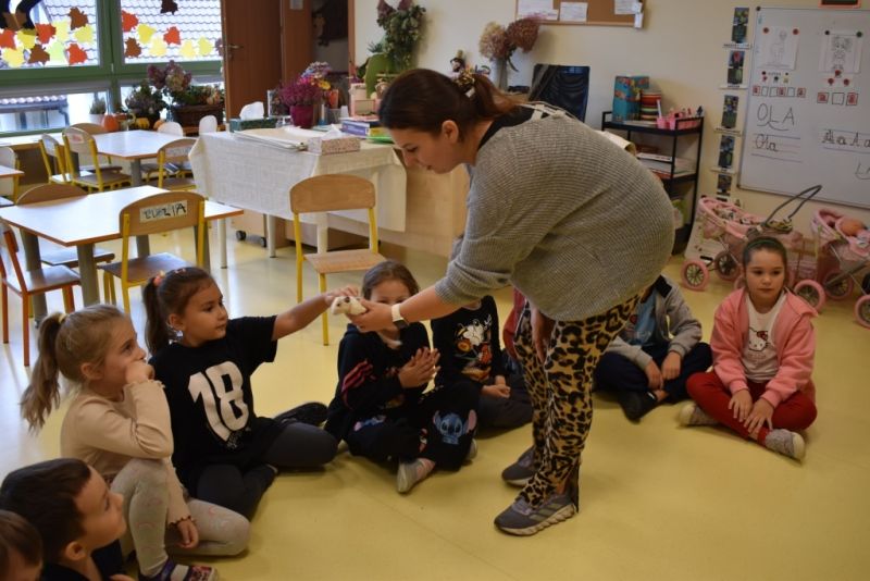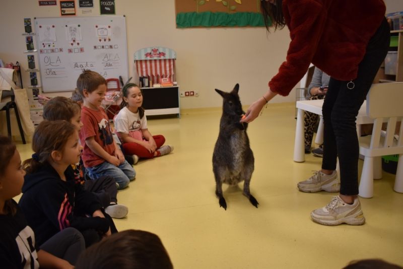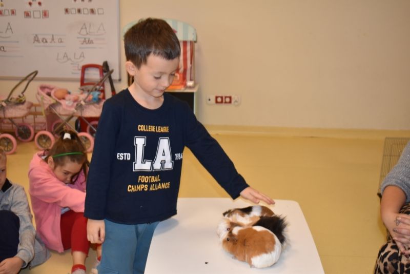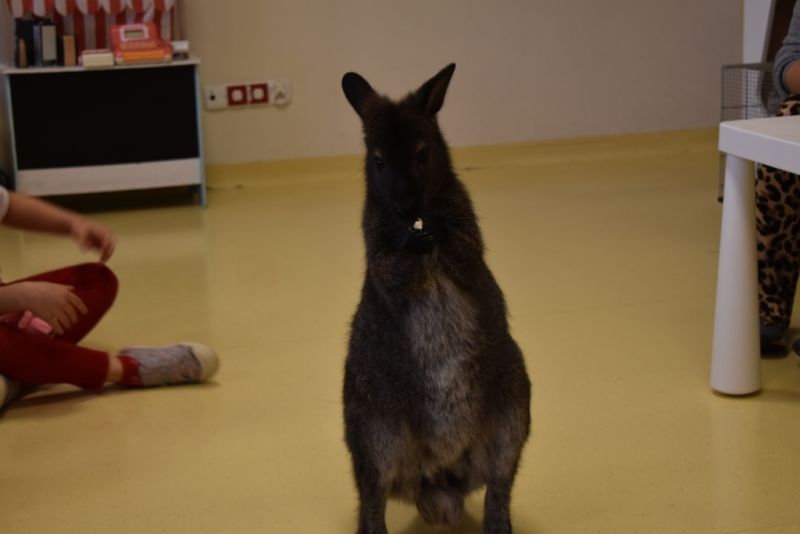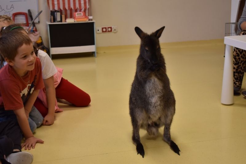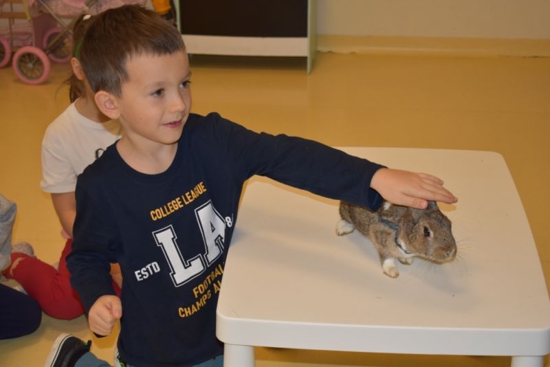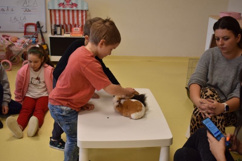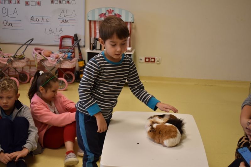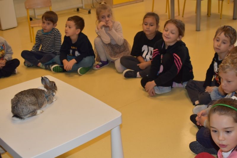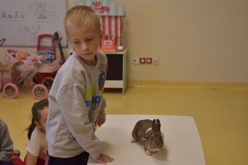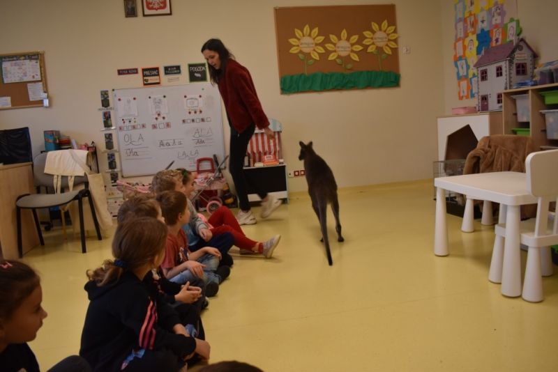 28 października odbyły się zajęcia ze zwierzątkami prowadzone przez Zagrodę Przysieki.Przyjechały do nas : Koszatniczki, Świnki Morskie Tchórzofretka, Królik miniaturowy, Żółw, Szynszyle, Lisek Polarny oraz Kangurek Franek. Dzieci poznały zwierzęta i ciekawostki dotyczące tych zwierzątek. Mogły dotknąć te zwierzęta, zrobić pamiątkowe zdjęcia. To były ciekawe zajęcia edukacyjne, które wzbogaciły naszą wiedzą o zwierzętach. Dzieci z naszej grupy były bardzo zadowolone.