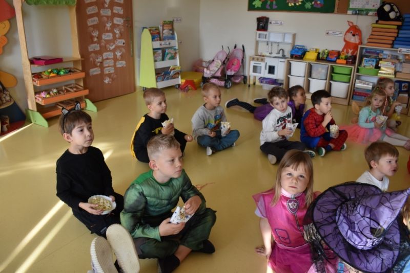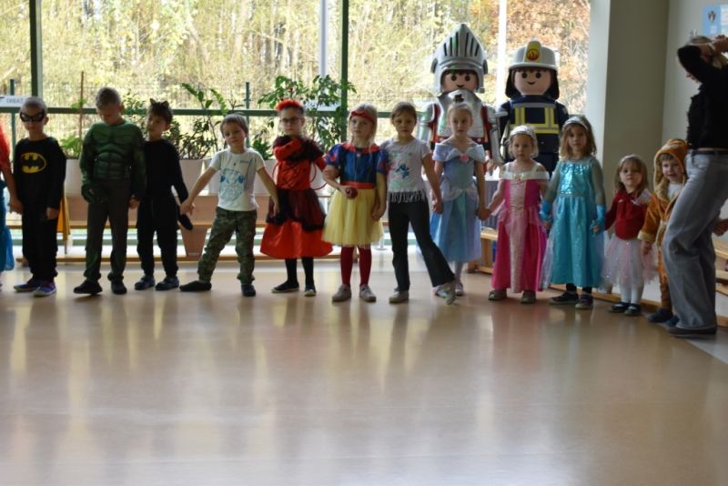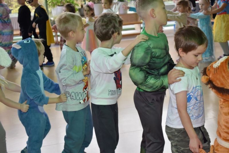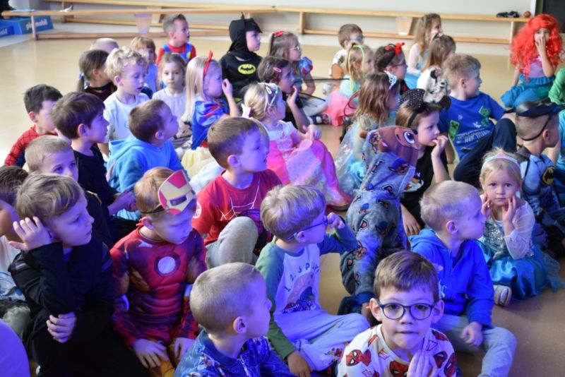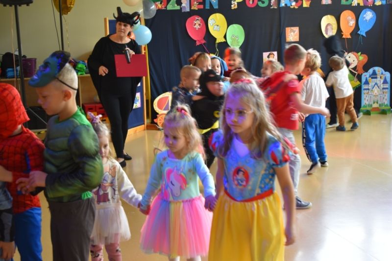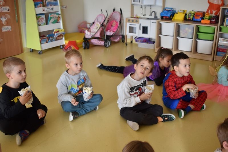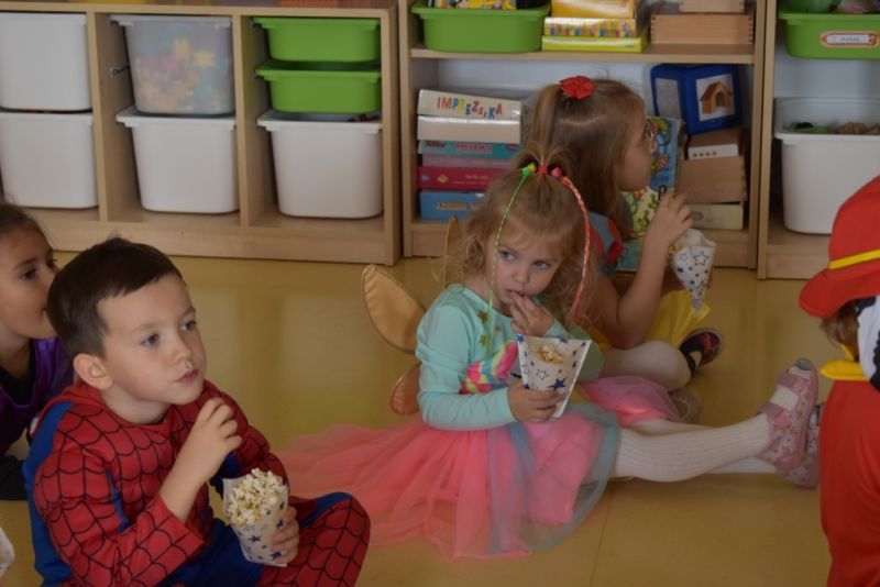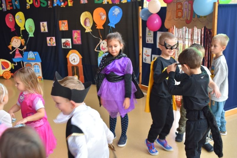 Dzisiaj obchodziliśmy w przedszkolu Dzień Postaci z Bajek. Wszystkie dzieciprzybyły do przedszkola przebrane za rozmaitych bohaterów z bajek lub miały na sobie odzież z nadrukami bajkowych postaci. Zaraz po śniadaniu zebraliśmy się w auli, gdzie odbyła się dyskoteka z okazji naszego święta. Mieliśmy okazję rozwiązywać tematyczne zagadki, rozpoznawać melodię ze znanych bajek oraz nazywać bohaterów z bajek. Okazało się, że dzieci znają doskonale wszystkie bajki i są ich miłośnikami. Zarówno dzieci jak i Panie świetnie się bawiły. Na koniec w salach odbyło się wspólne oglądanie bajek wraz z pysznym pop cornem. Dziękujemy wszystkim za wspaniałą, radosną zabawę.